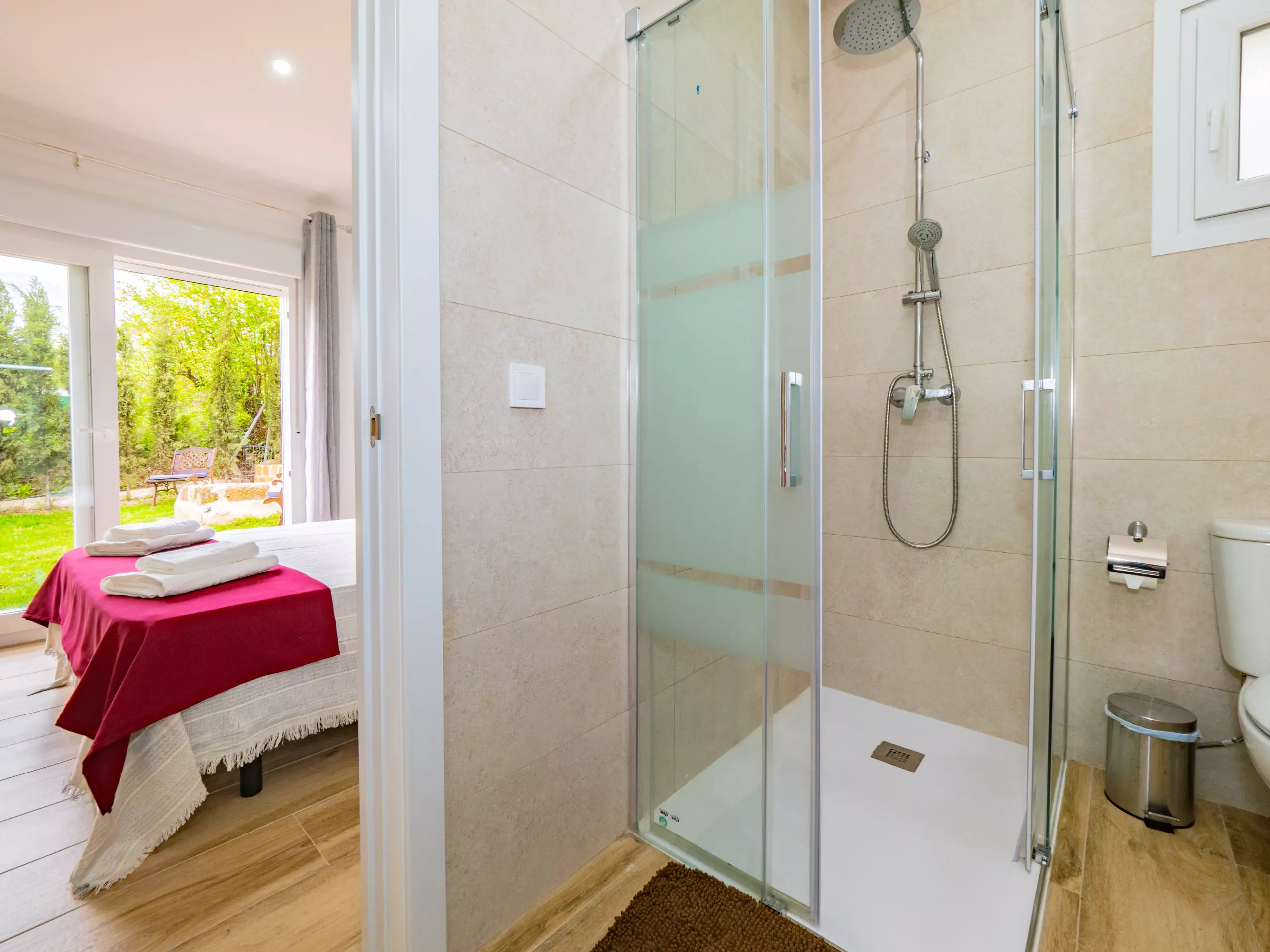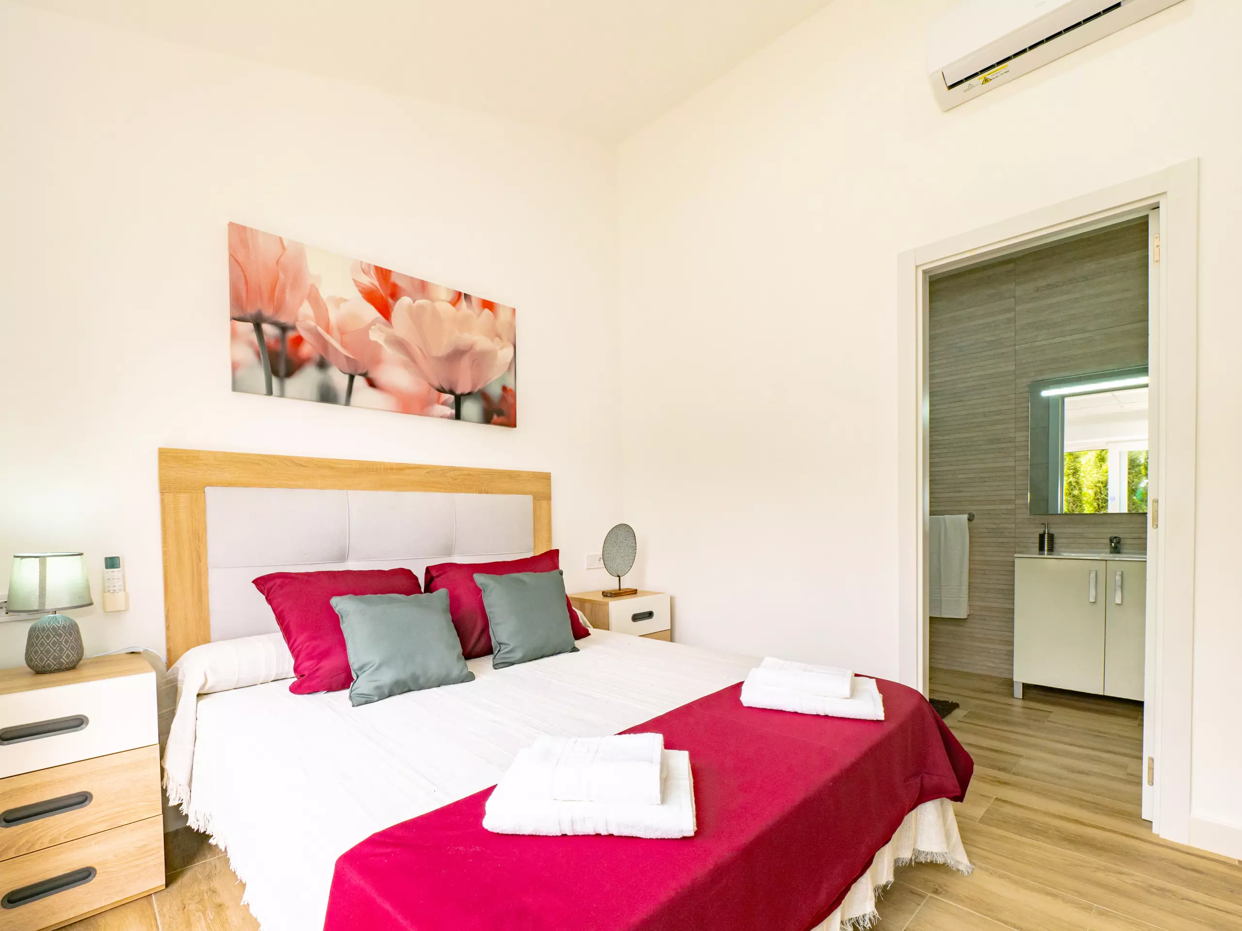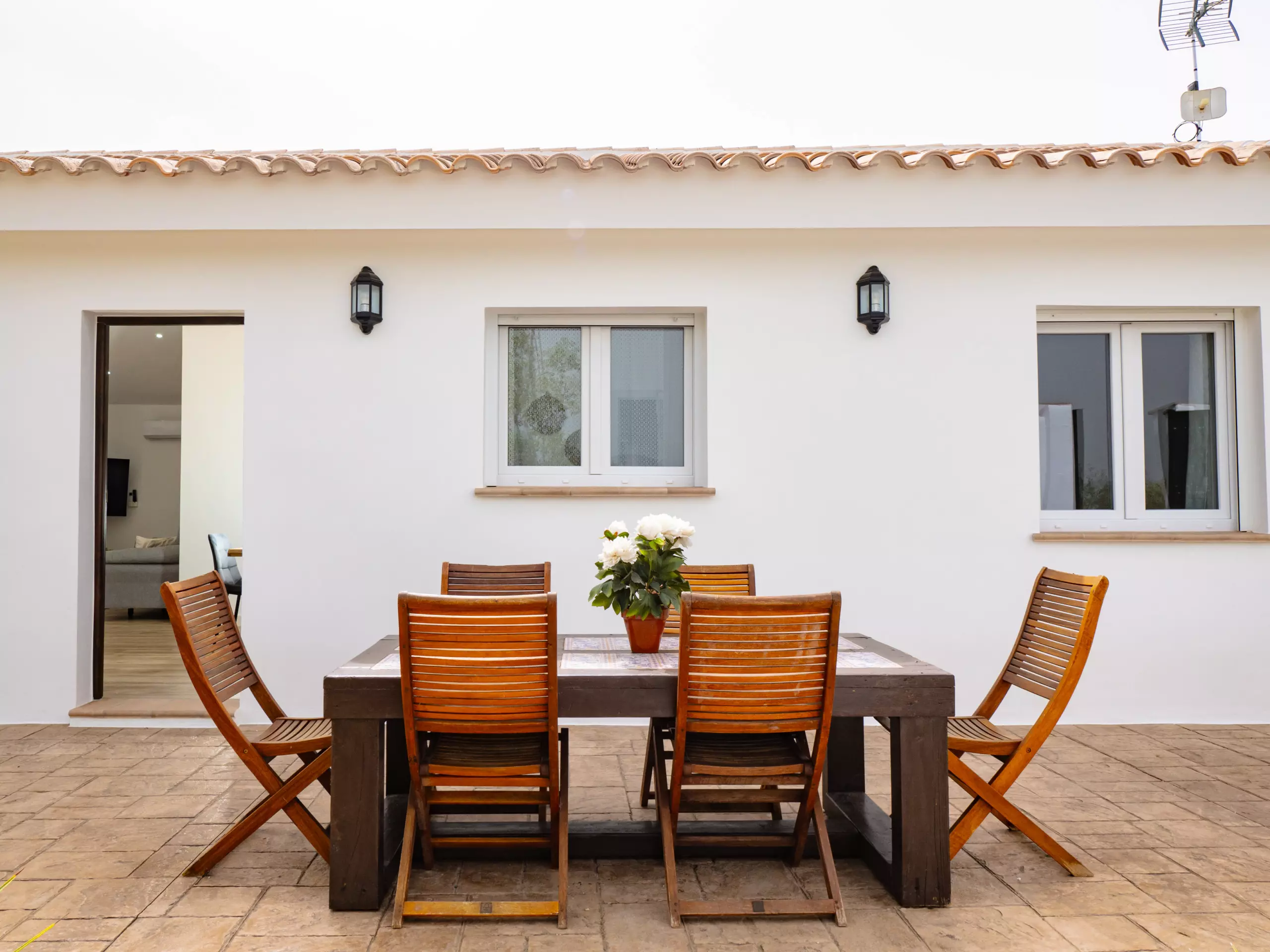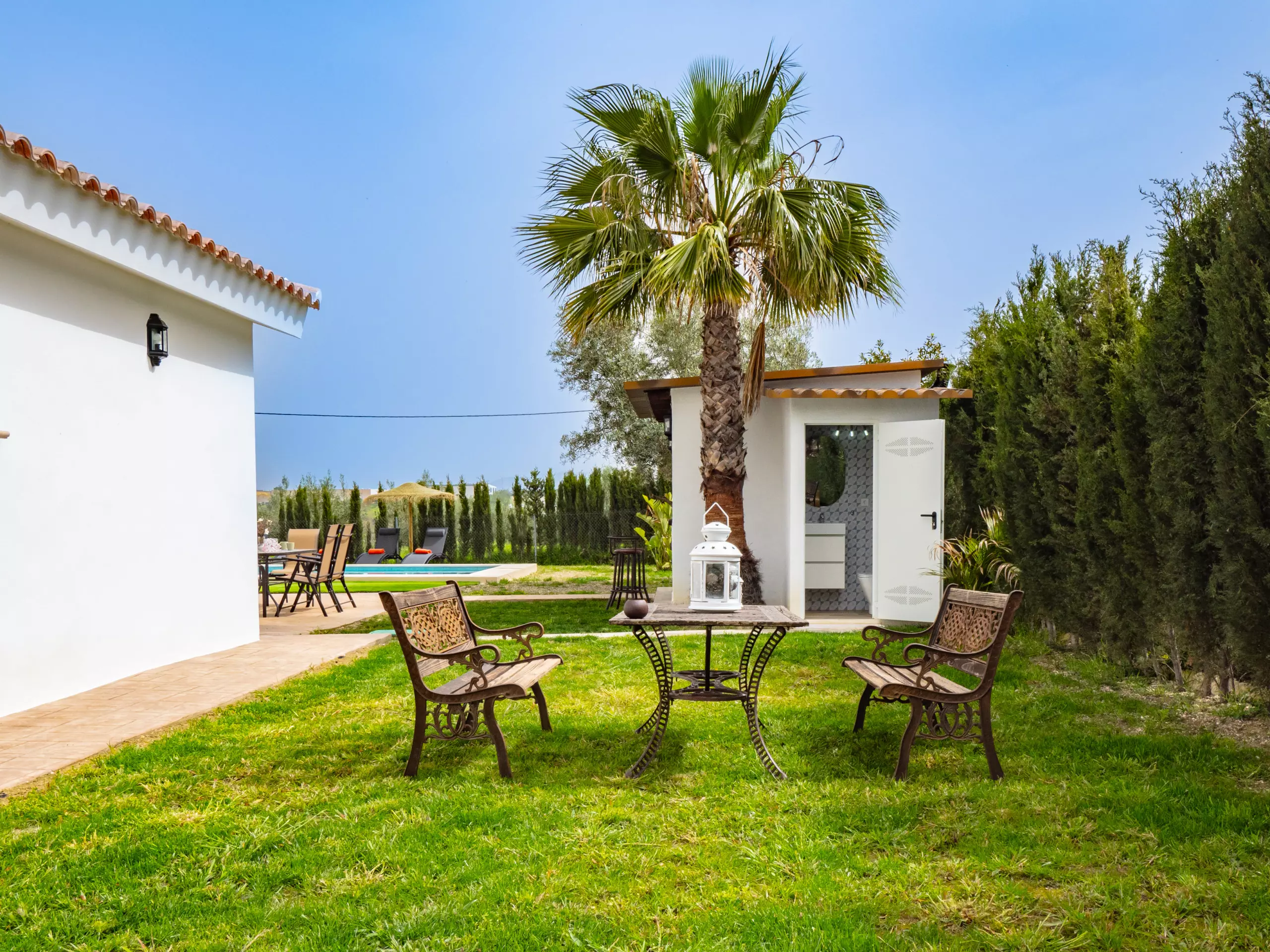 La distribution comprend deux chambres avec des lits doubles, une avec deux lits simples, une salle de bain attenante dans la chambre principale et une deuxième salle de bain complète, ainsi que des toilettes extérieures près de la piscine pour plus de commodité. La climatisation, le chauffage et l'accès internet wifi garantissent un séjour confortable à toute période de l'année.