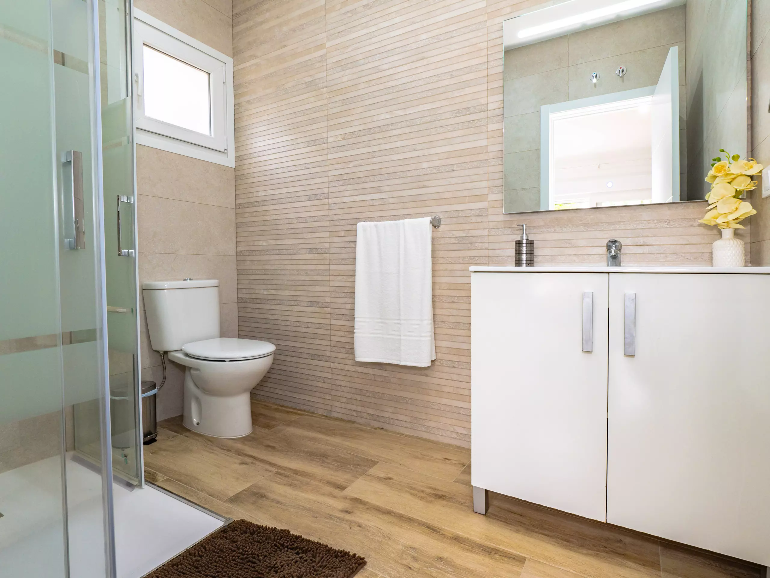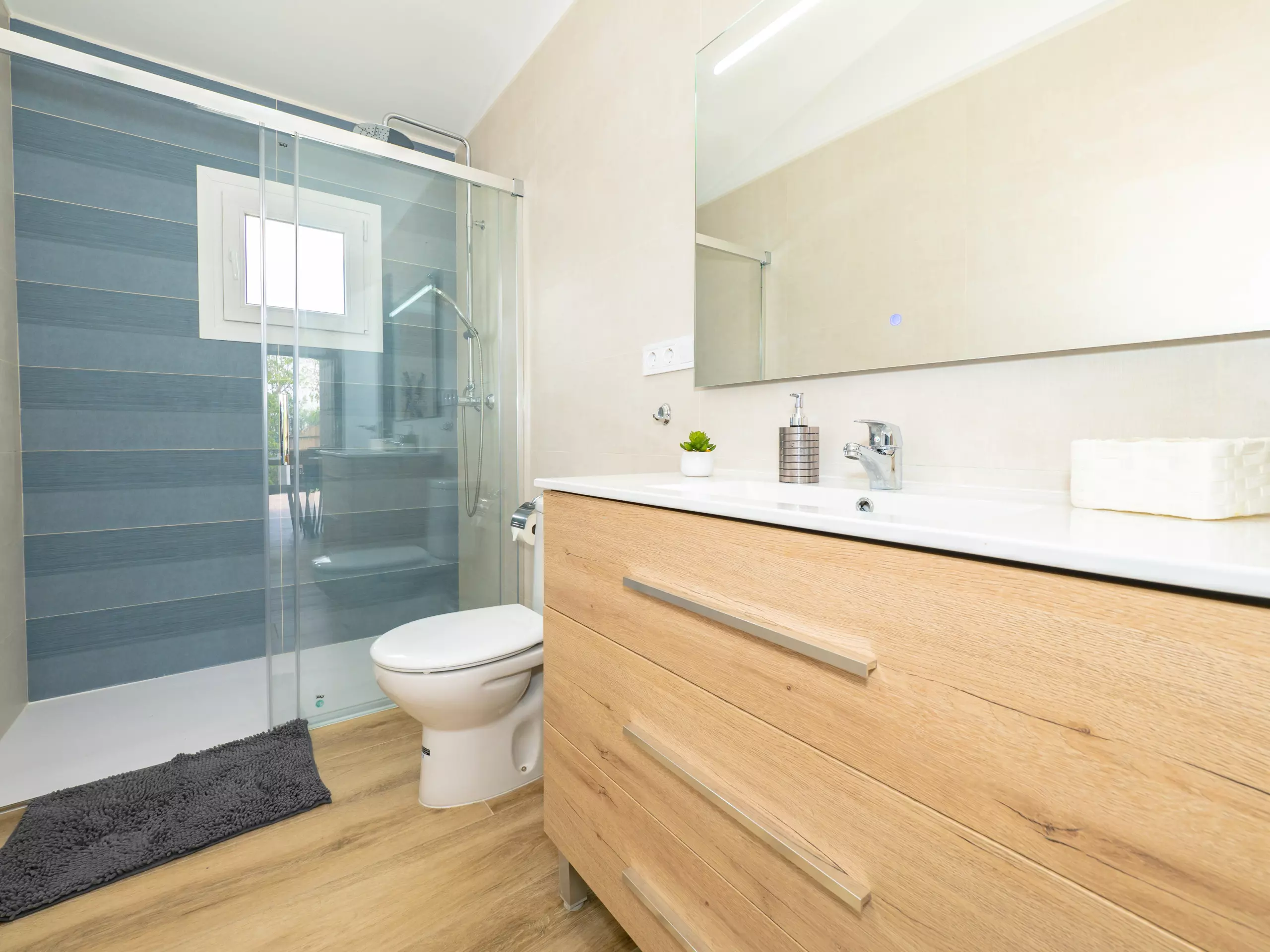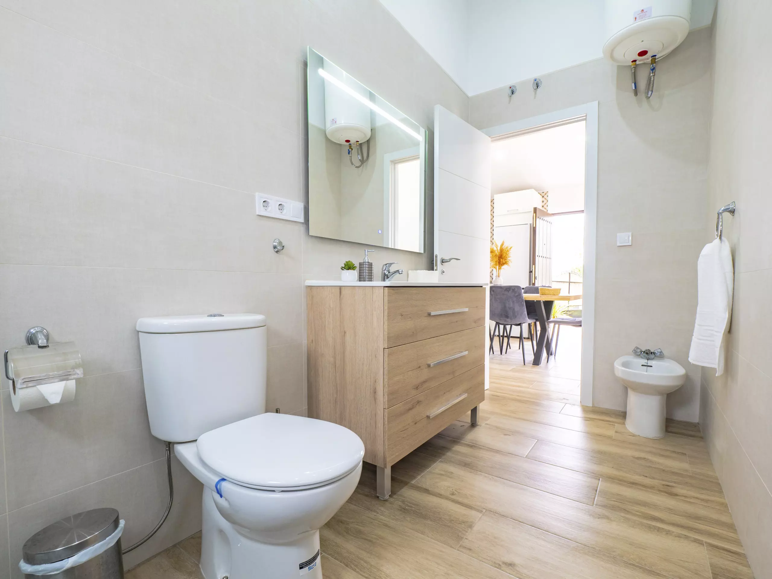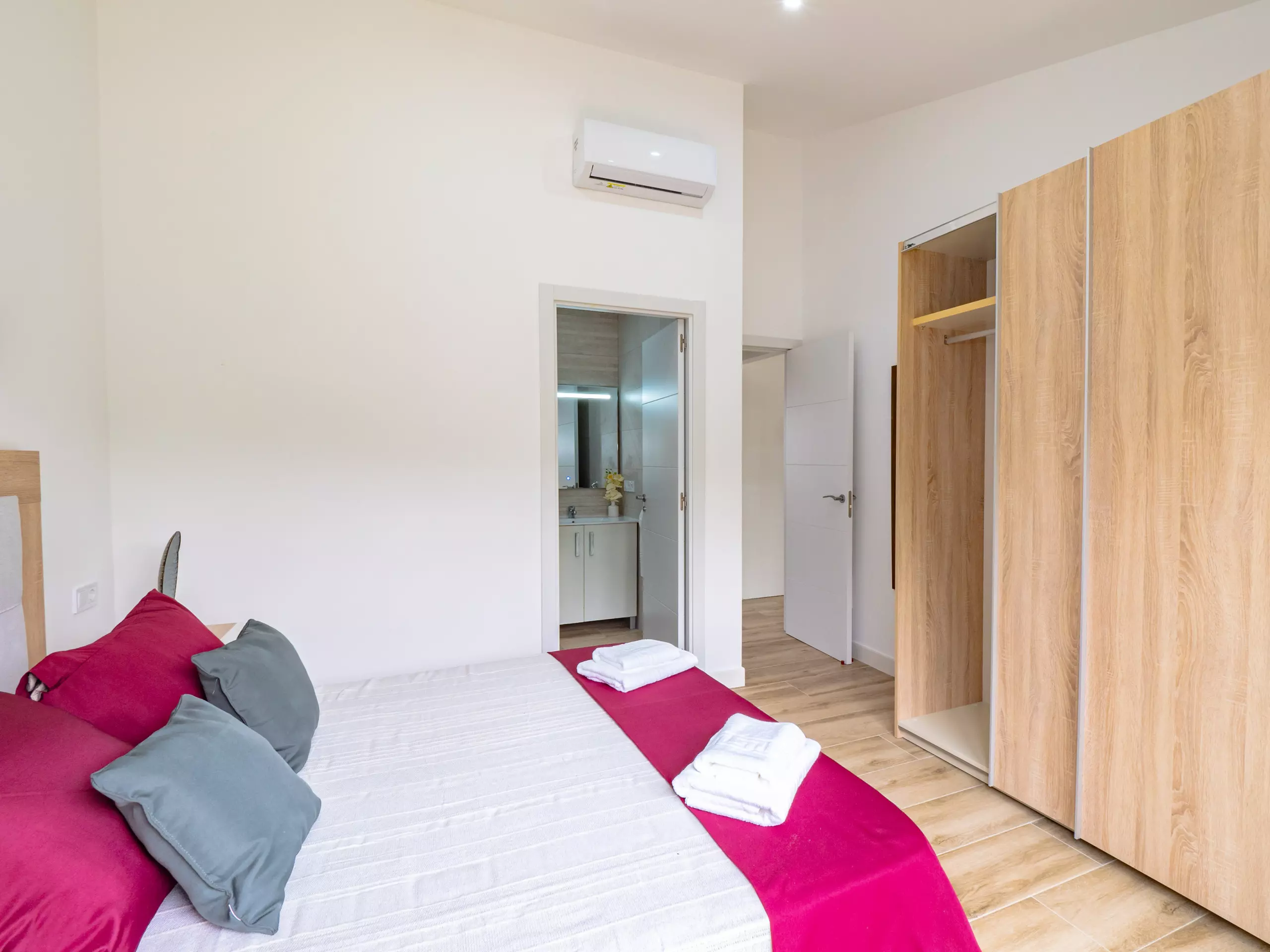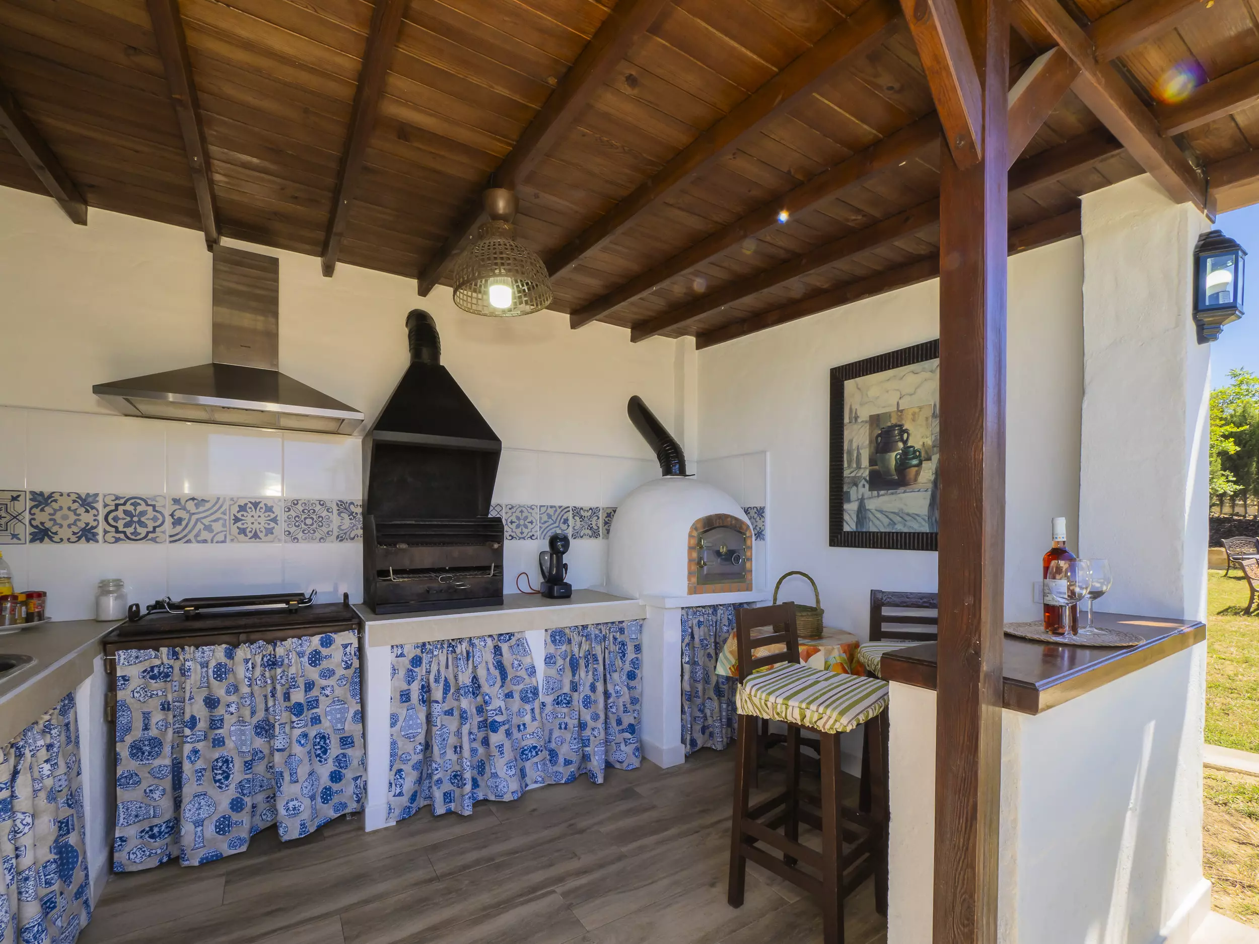 La distribution comprend deux chambres avec des lits doubles, une avec deux lits simples, une salle de bain attenante dans la chambre principale et une deuxième salle de bain complète, ainsi que des toilettes extérieures près de la piscine pour plus de commodité. La climatisation, le chauffage et l'accès internet wifi garantissent un séjour confortable à toute période de l'année.