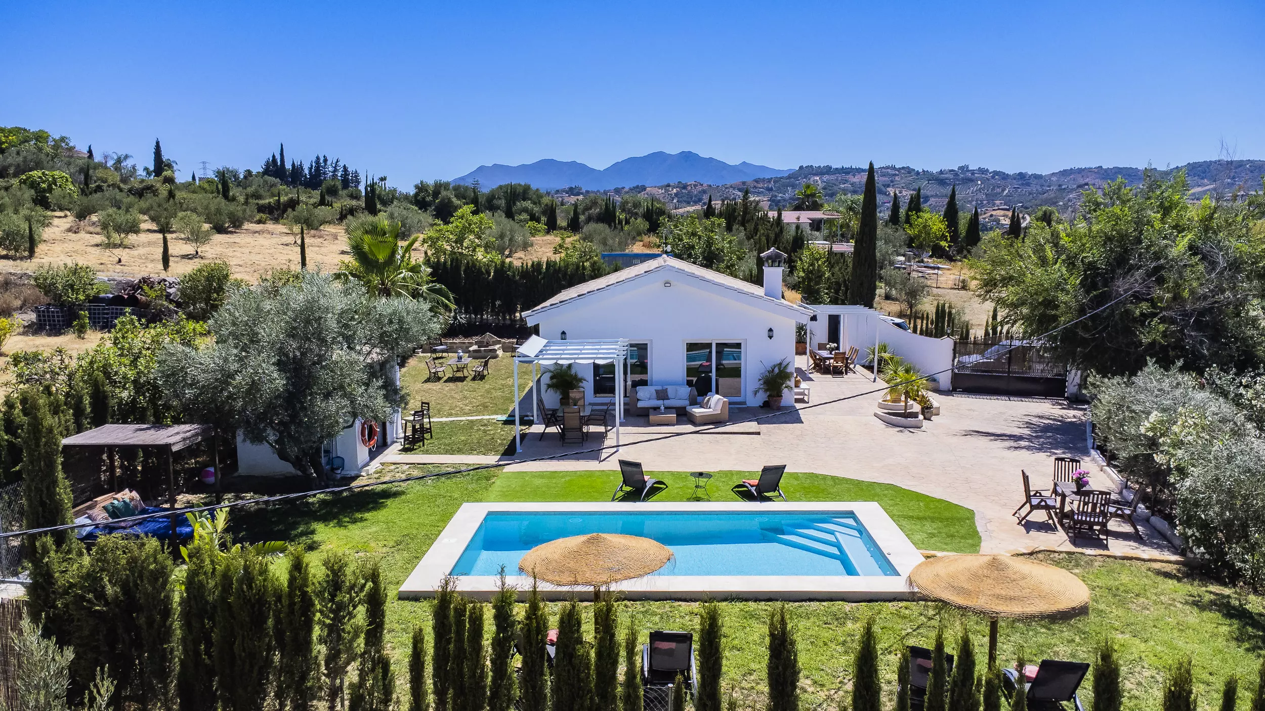 Située à quelques minutes en voiture de villages comme Alhaurín el Grande et Coín, l'emplacement offre un accès facile aux centres commerciaux et aux services urbains, ainsi que d'excellentes connexions pour explorer l'intérieur de Malaga et la côte. La zone est idéale pour les activités de plein air, avec des terrains de golf à proximité et des espaces naturels parfaits pour les randonnées.