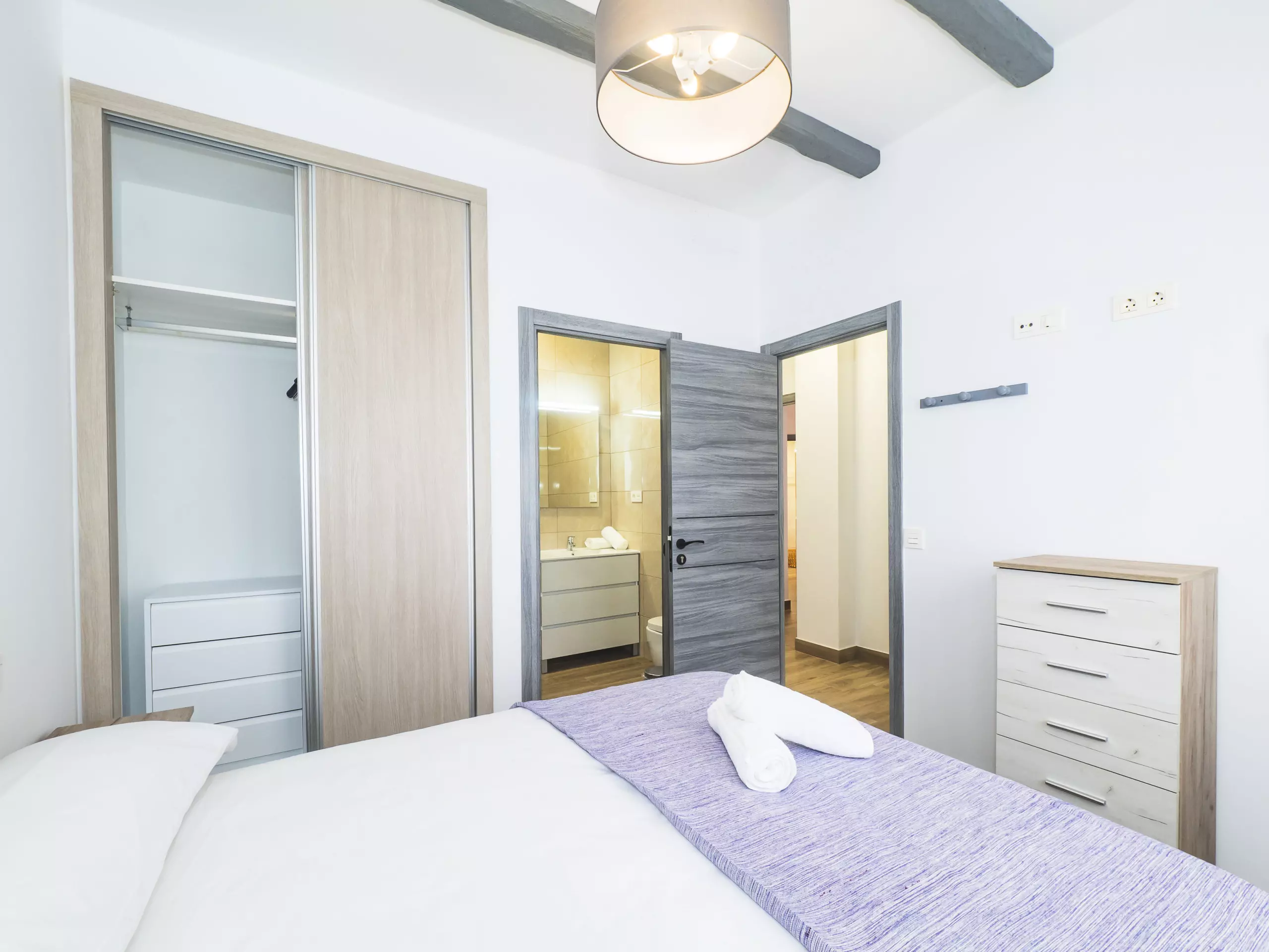 Ce logement est en réalité un ensemble de deux habitations réunies, offrant le confort de deux grands salons avec des zones de salle à manger, deux cuisines américaines entièrement équipées avec de la vaisselle et des appareils électroménagers modernes, et des toilettes auxiliaires. Les salons disposent de canapés confortables et de grandes Smart TV pour le divertissement.