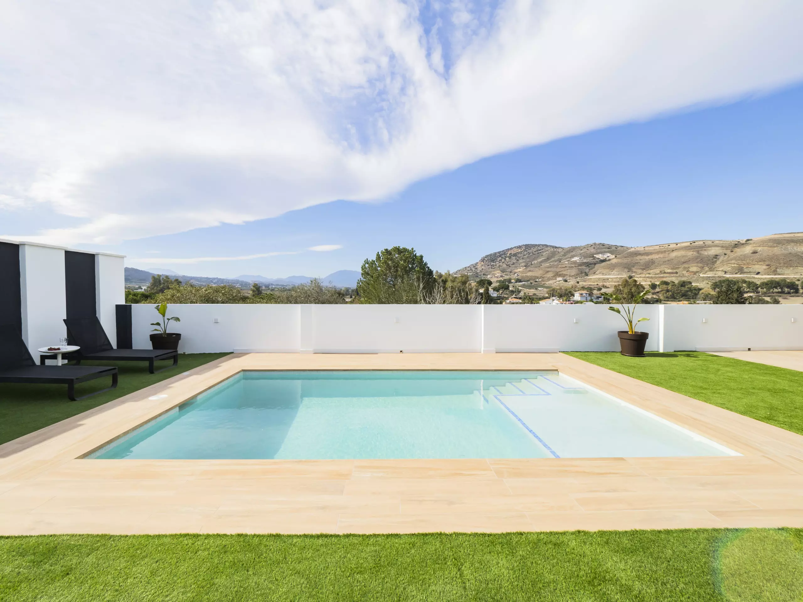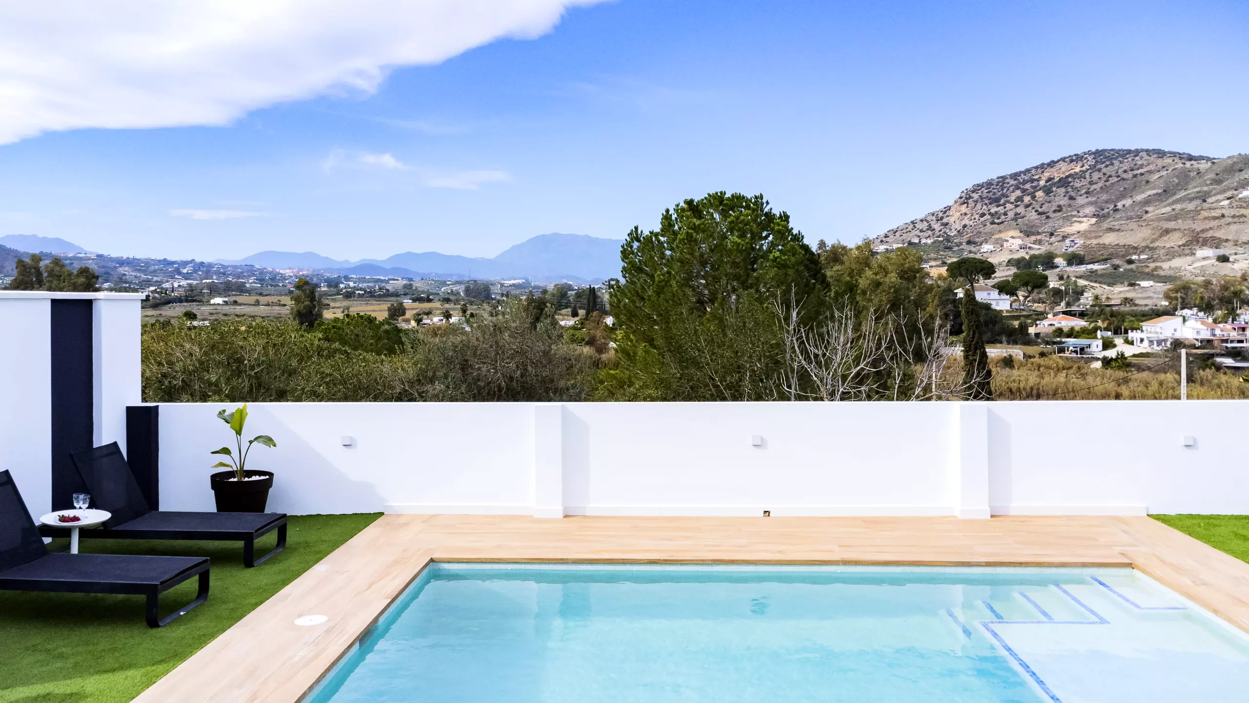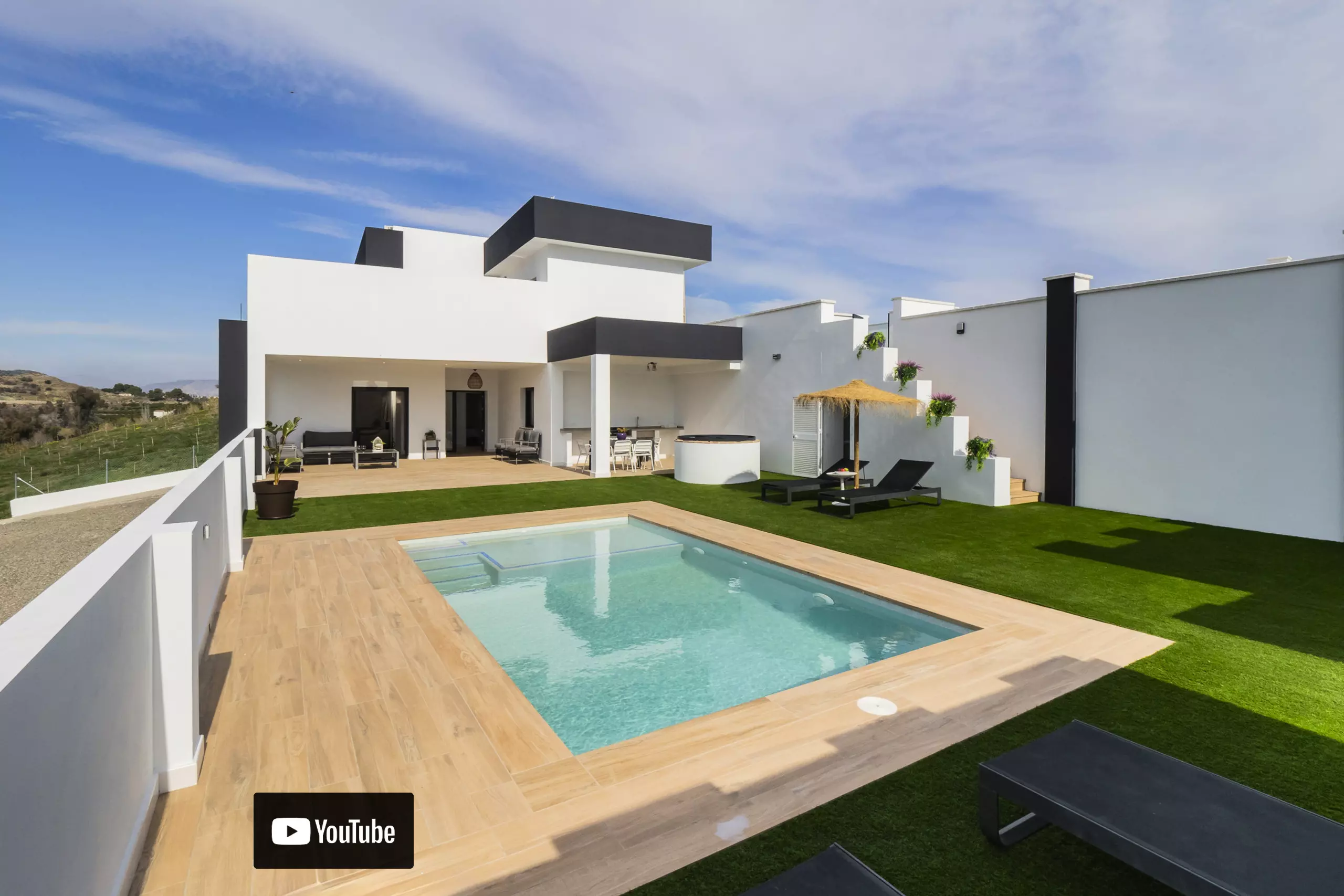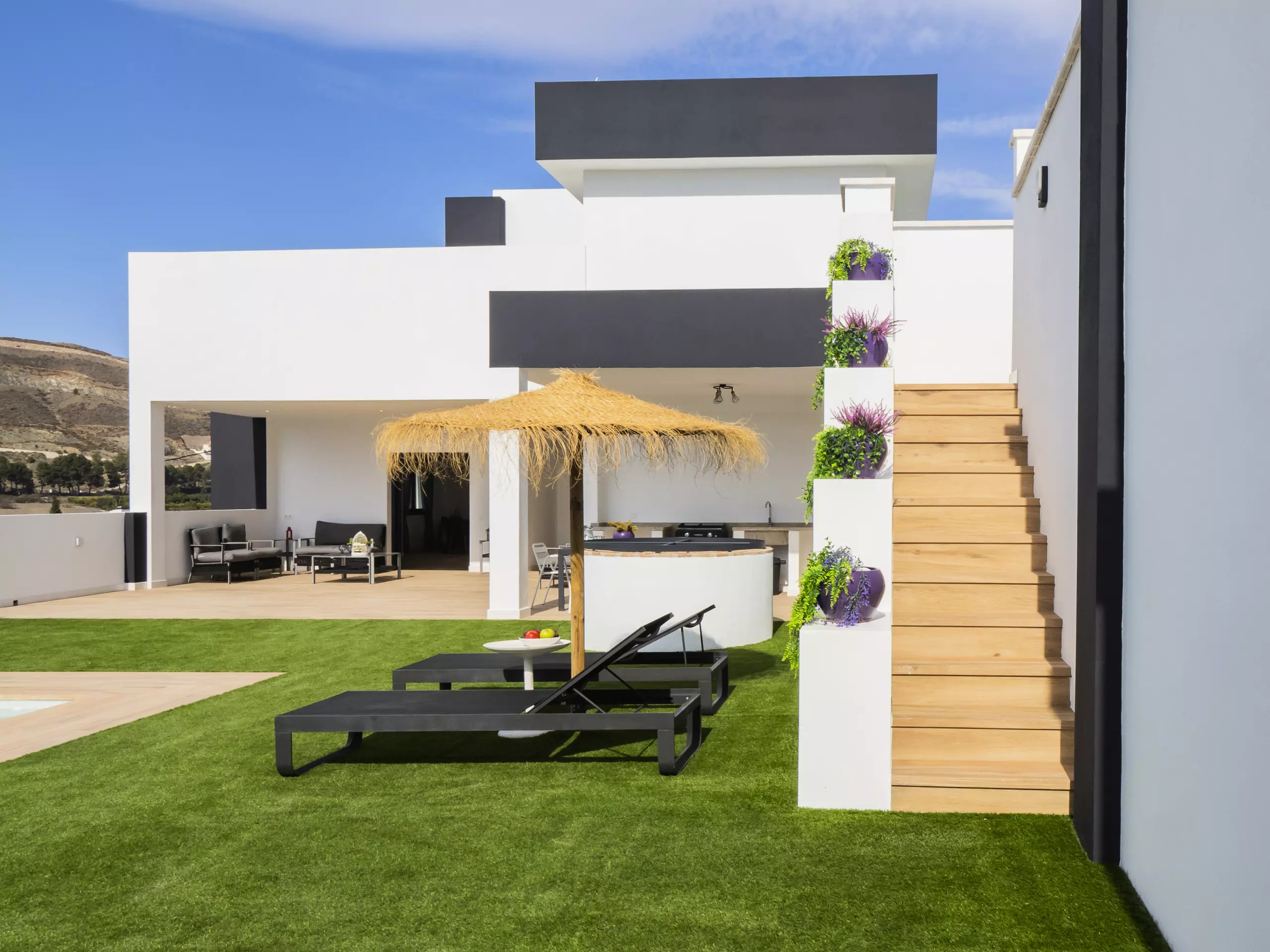 Veuillez prendre en compte que certaines zones communes peuvent être partagées en respectant la confidentialité et la cohabitation avec les invités de l'étage supérieur et les voisins locaux. L'accès à la maison se fait à travers la zone de la piscine, qui ouvre sur une terrasse couverte avec vue sur la montagne. La parcelle est clôturée et dispose d'un parking en plein air dans le même bâtiment ??.