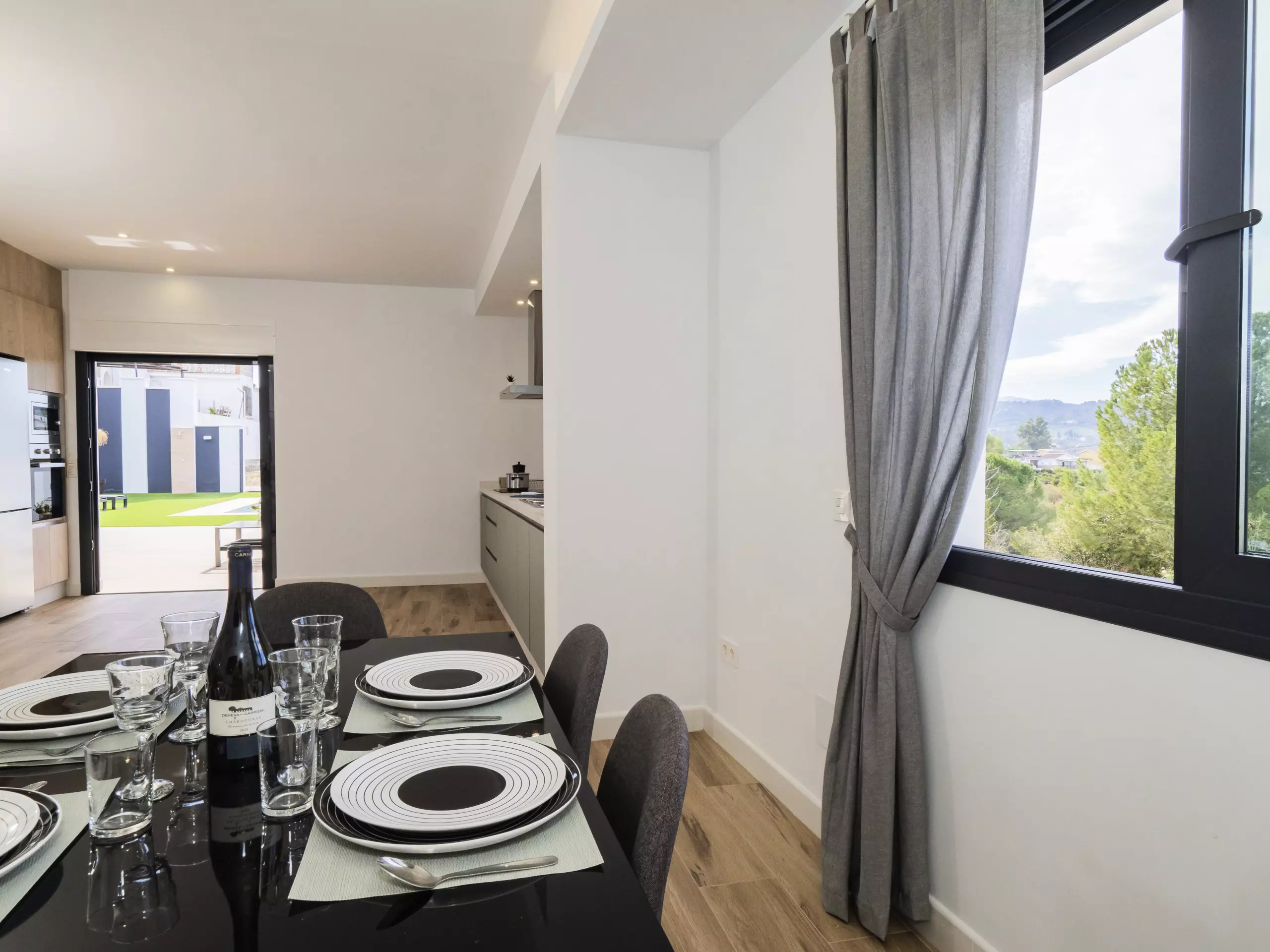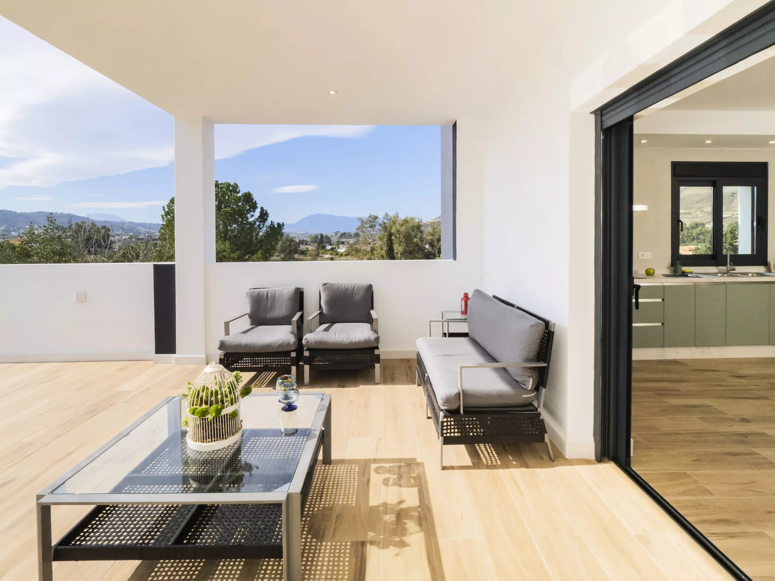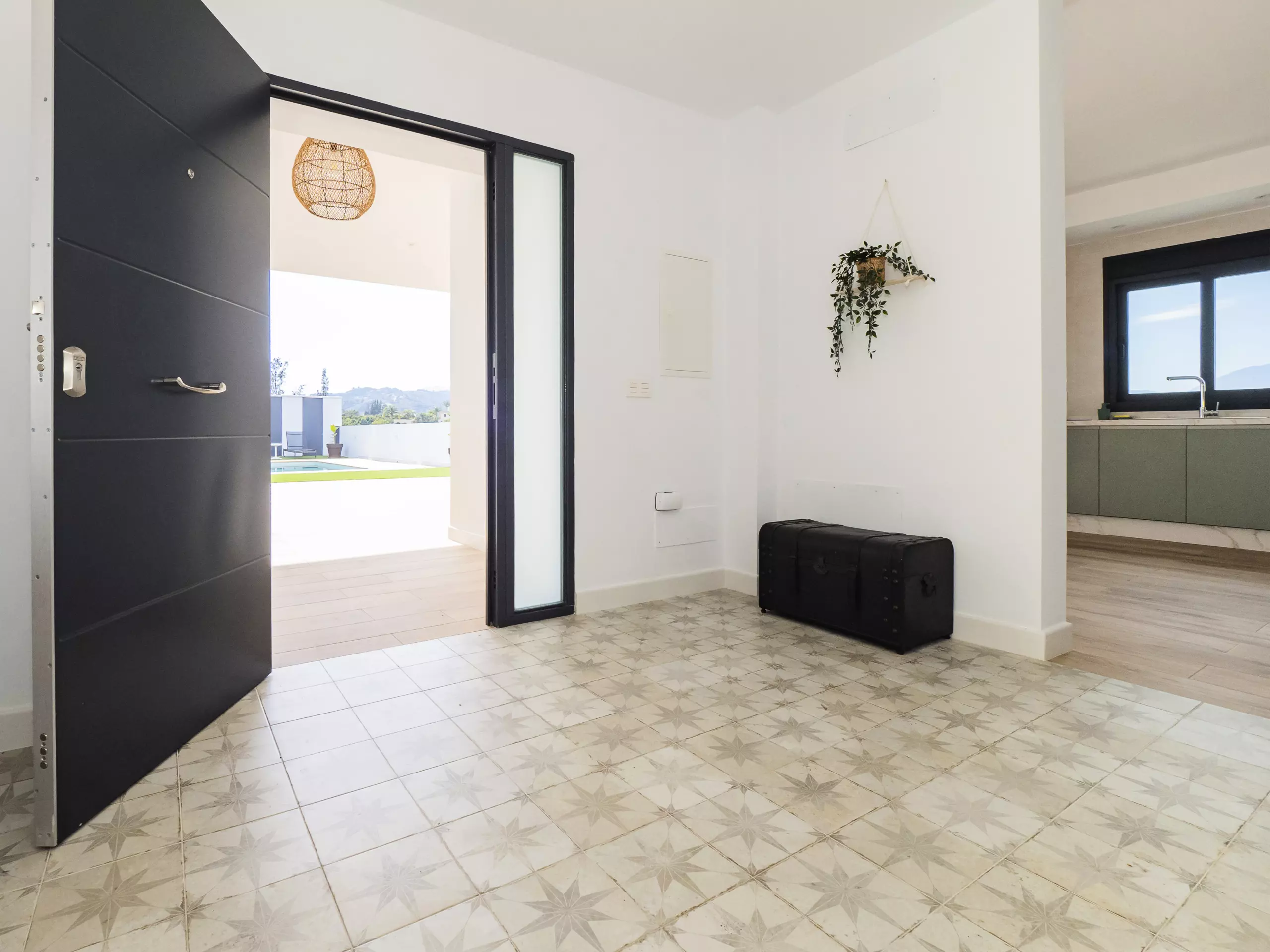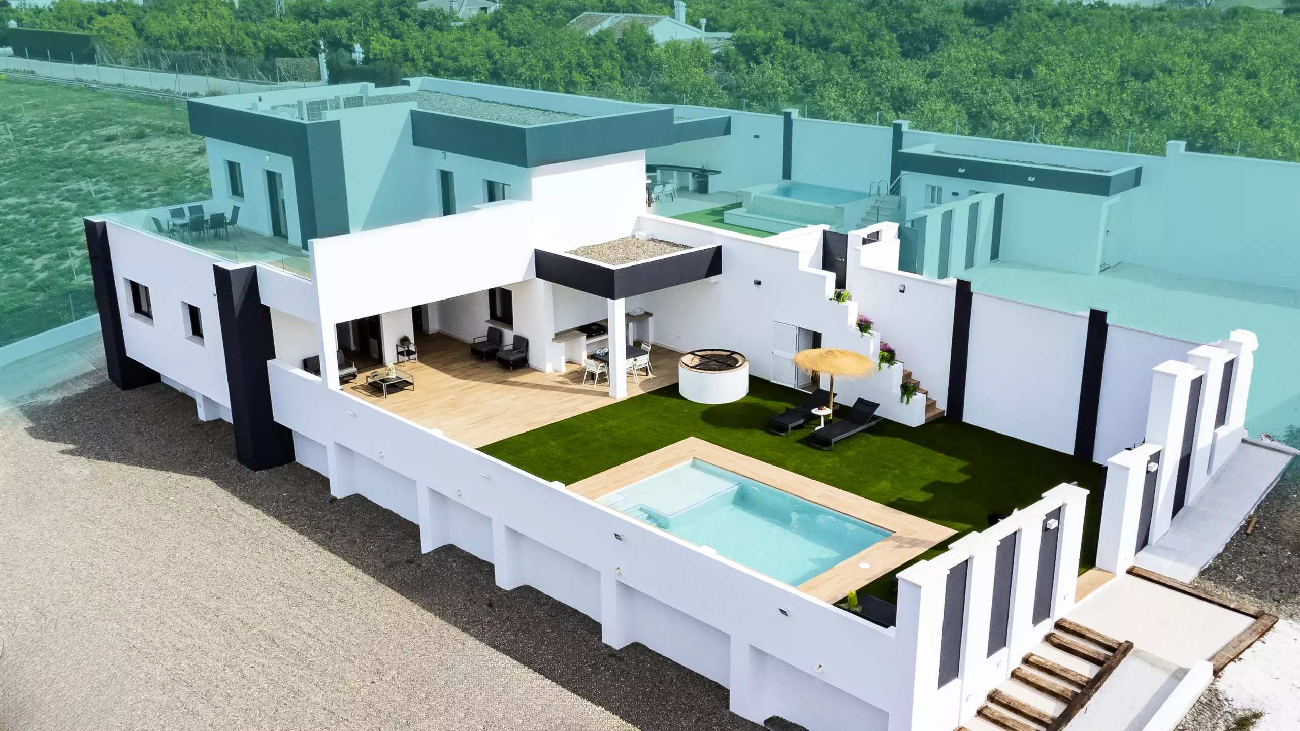 Veuillez prendre en compte que certaines zones communes peuvent être partagées en respectant la confidentialité et la cohabitation avec les invités de l'étage supérieur et les voisins locaux. L'accès à la maison se fait à travers la zone de la piscine, qui ouvre sur une terrasse couverte avec vue sur la montagne. La parcelle est clôturée et dispose d'un parking en plein air dans le même bâtiment ??.