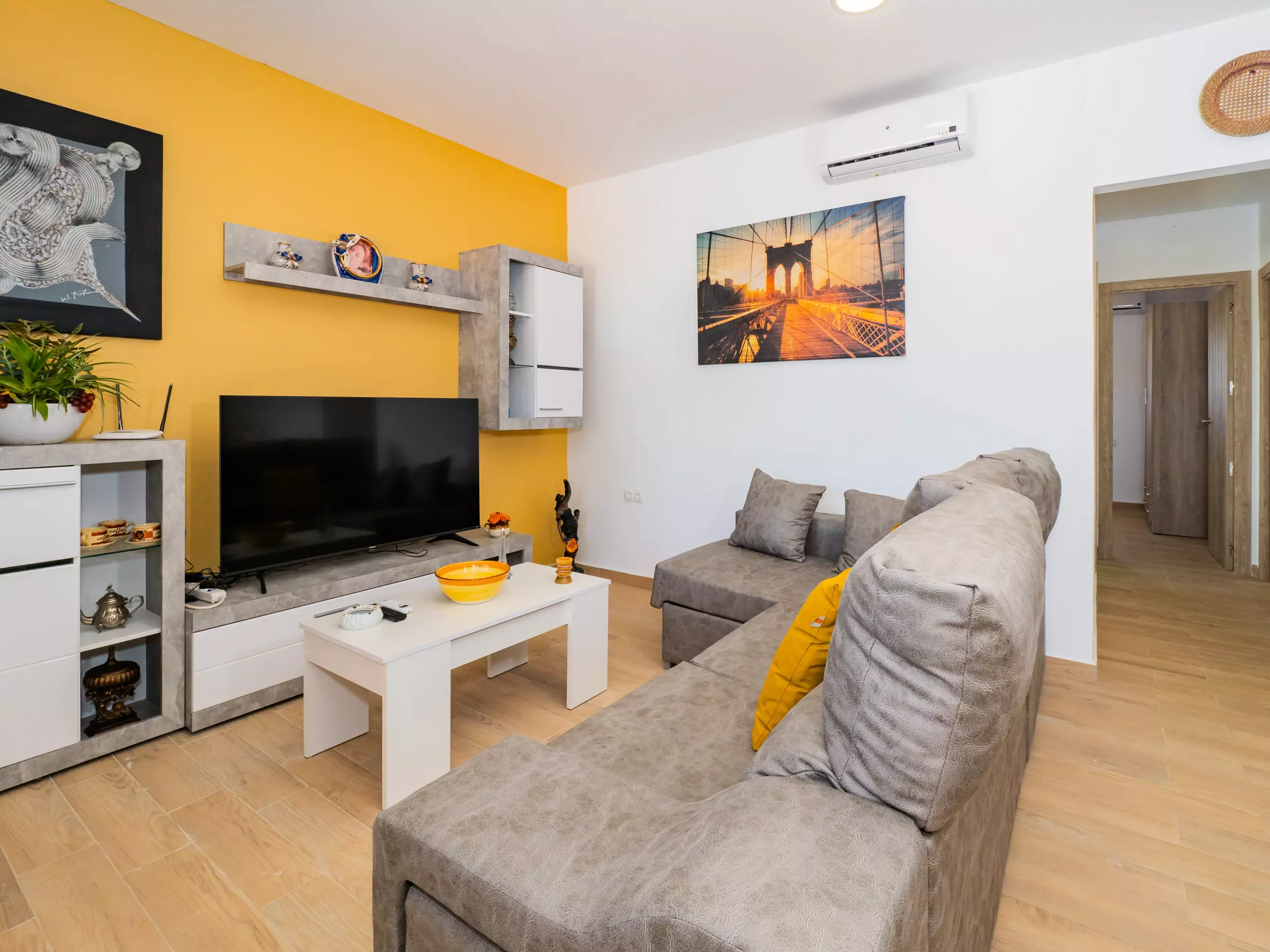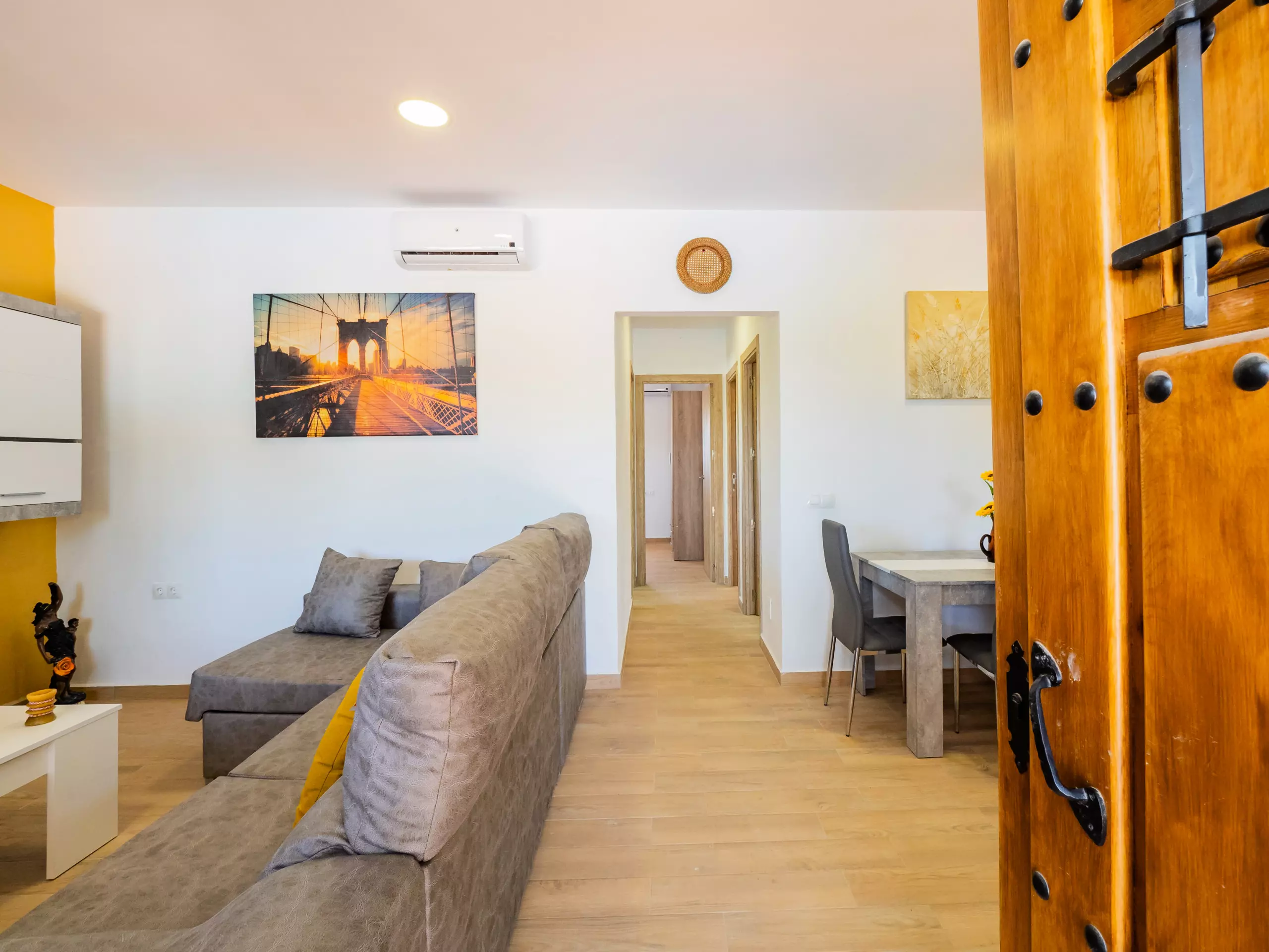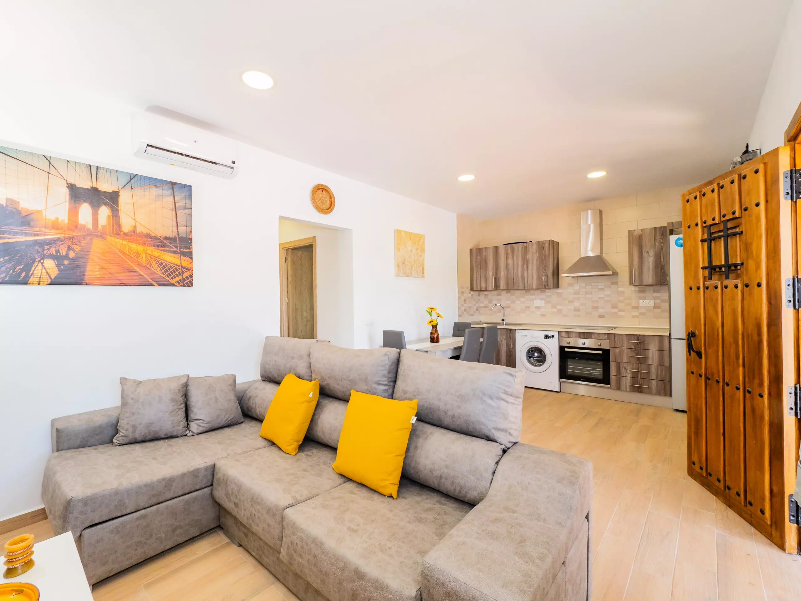 À l'intérieur, vous trouverez un salon-salle à manger moderne avec une cuisine américaine entièrement équipée : plaque vitrocéramique, réfrigérateur, four, micro-ondes, congélateur, machine à laver et tous les ustensiles nécessaires pour cuisiner confortablement. Profitez de vos repas à l'intérieur ou sur la terrasse extérieure. Le salon est un espace accueillant avec des canapés confortables, une Smart TV et une connexion internet pour votre divertissement en famille. ??