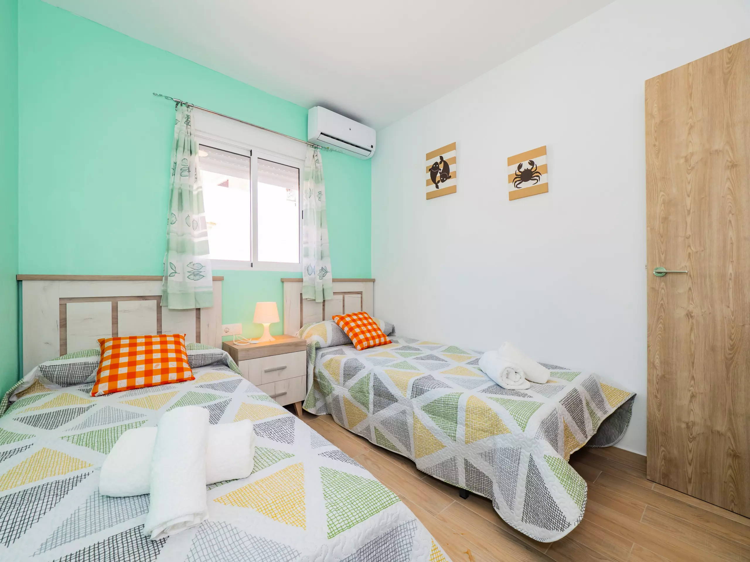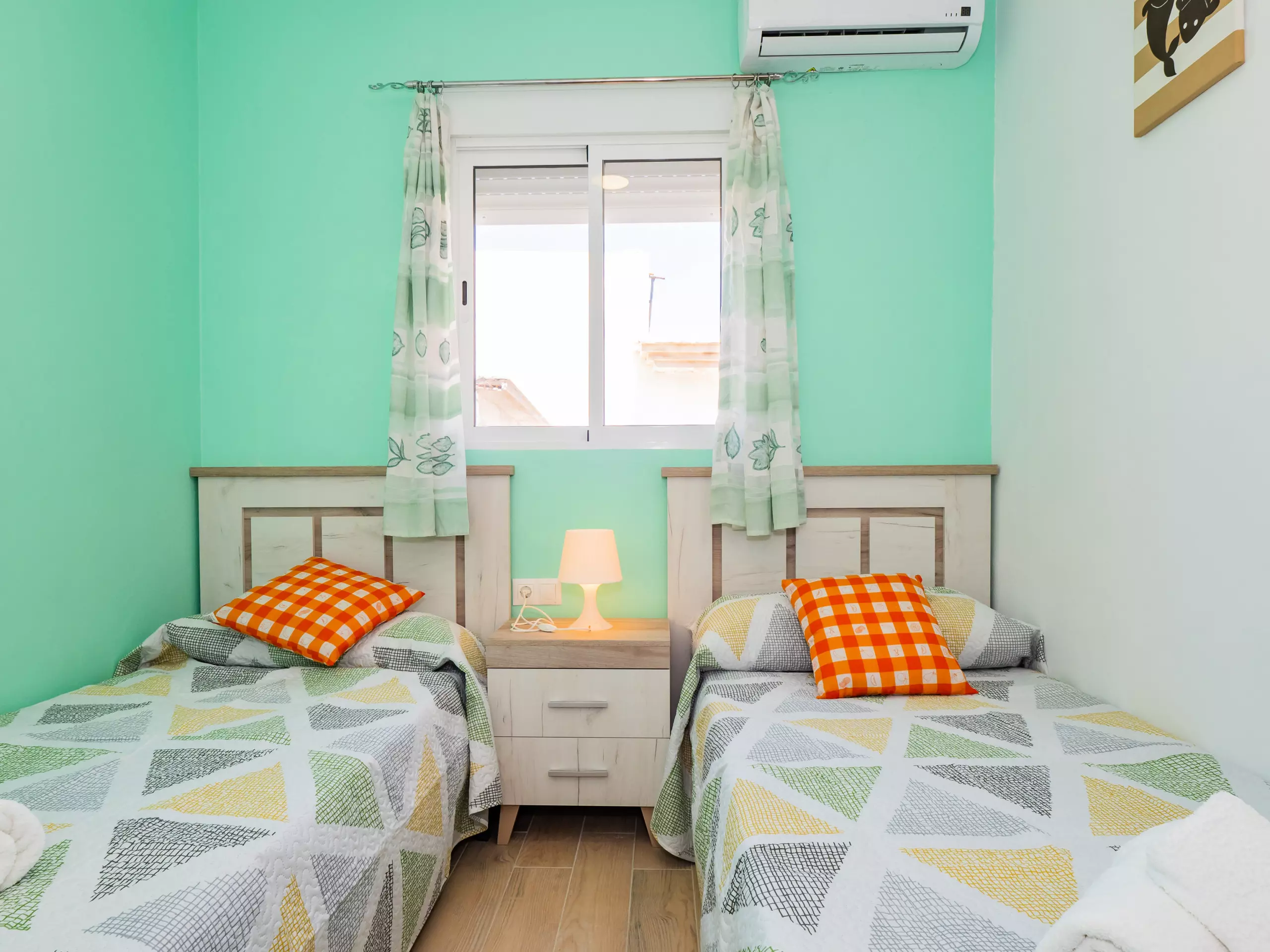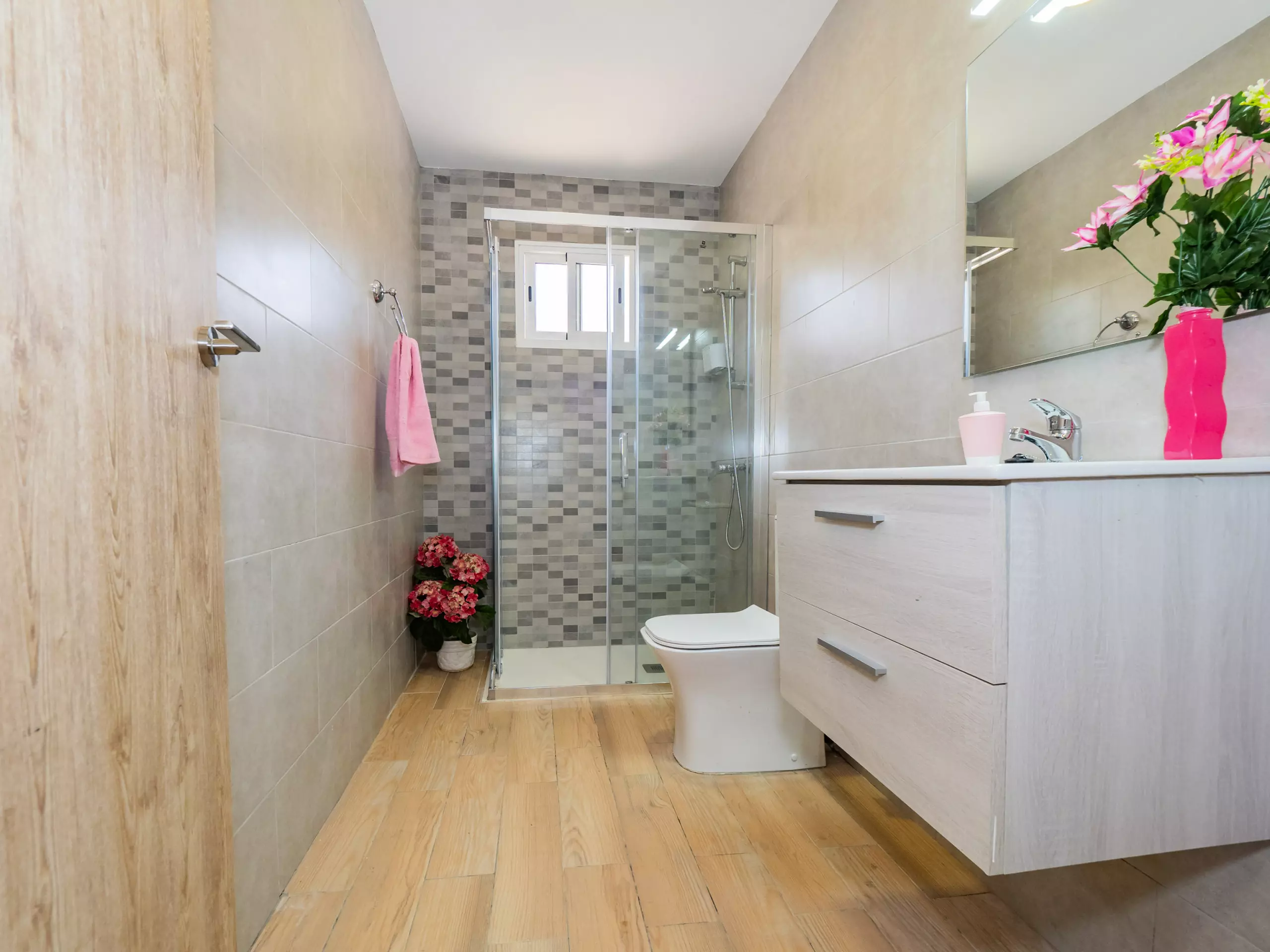 La maison dispose de 3 chambres avec climatisation et pompe à chaleur : deux avec un lit de couple et une avec deux lits individuels, idéal pour jusqu'à 6 personnes. Toutes les chambres ont des armoires et des fenêtres donnant sur l'extérieur qui apportent de la lumière naturelle. La salle de bain est spacieuse, lumineuse et équipée d'un receveur de douche. ??