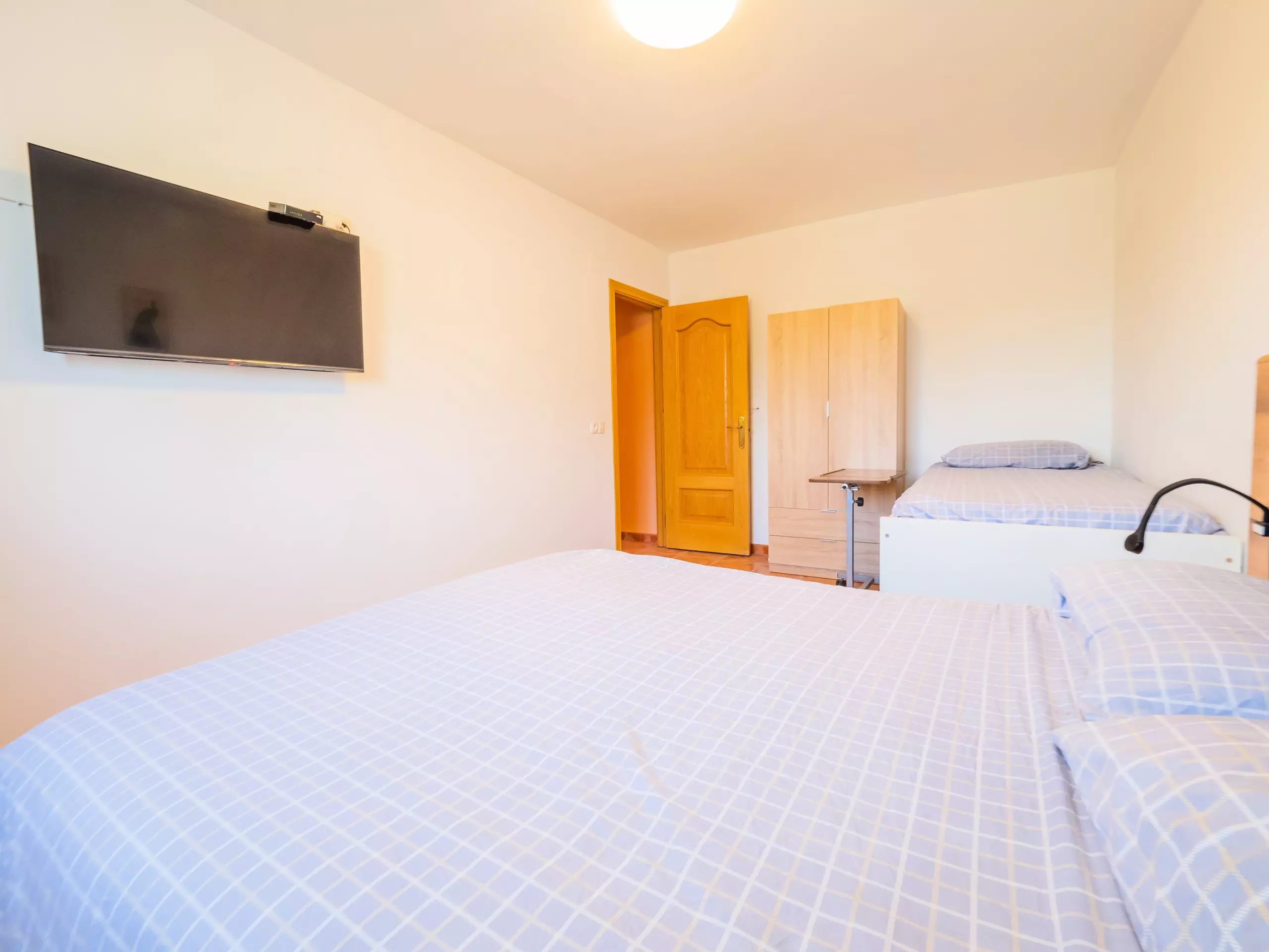 À l'intérieur, la distribution pratique relie un grand salon-salle à manger avec Smart TV et une zone de repos confortable, une cuisine indépendante entièrement équipée avec des appareils modernes tels que la plaque vitrocéramique, le réfrigérateur, le micro-ondes, le four et le lave-vaisselle, et trois chambres pouvant accueillir jusqu'à 10 personnes : deux chambres avec un lit de mariage et un lit individuel, et une avec trois lits individuels. Toutes les chambres disposent d'une fenêtre extérieure et de placards, ainsi que d'un second téléviseur pour plus de divertissement. La connexion WiFi gratuite et l'accès à Netflix vous assurent du divertissement pour toute la famille.