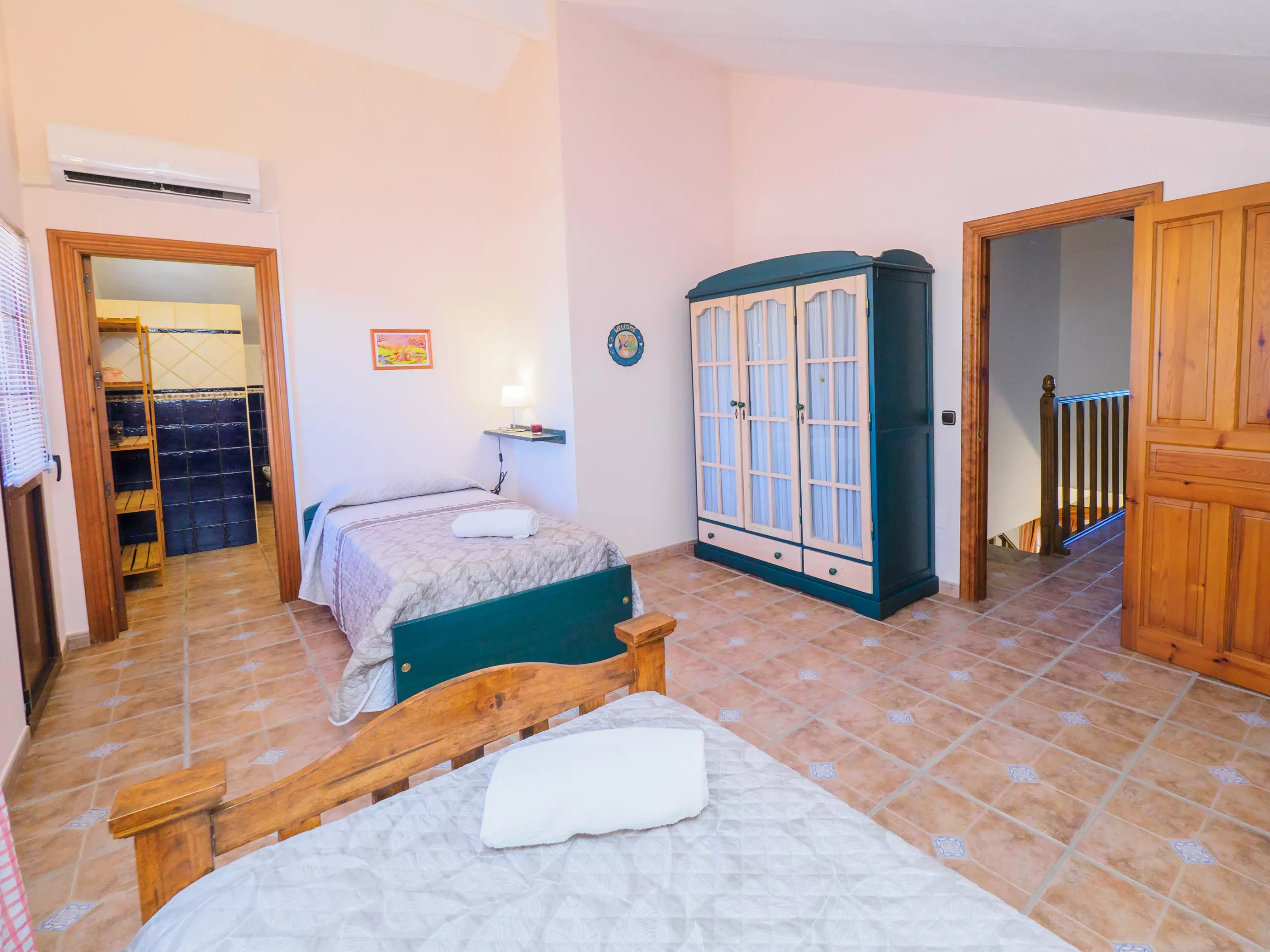 La maison est répartie sur deux étages. Au rez-de-chaussée, vous trouverez un grand hall d'entrée qui mène à une cuisine complète équipée de tous les appareils électroménagers nécessaires (plaque vitrocéramique, four, micro-ondes, réfrigérateur, congélateur, machine à laver, cafetière, grille-pain, bouilloire et presse-agrumes) pour préparer des repas simples ou élaborés. Il dispose également d'un salon confortable avec cheminée et télévision pour se réunir et se détendre, et de deux chambres (une avec un lit double et l'autre avec deux lits individuels), toutes deux avec climatisation pour votre confort. De plus, il y a une salle de bain complète à cet étage. ??