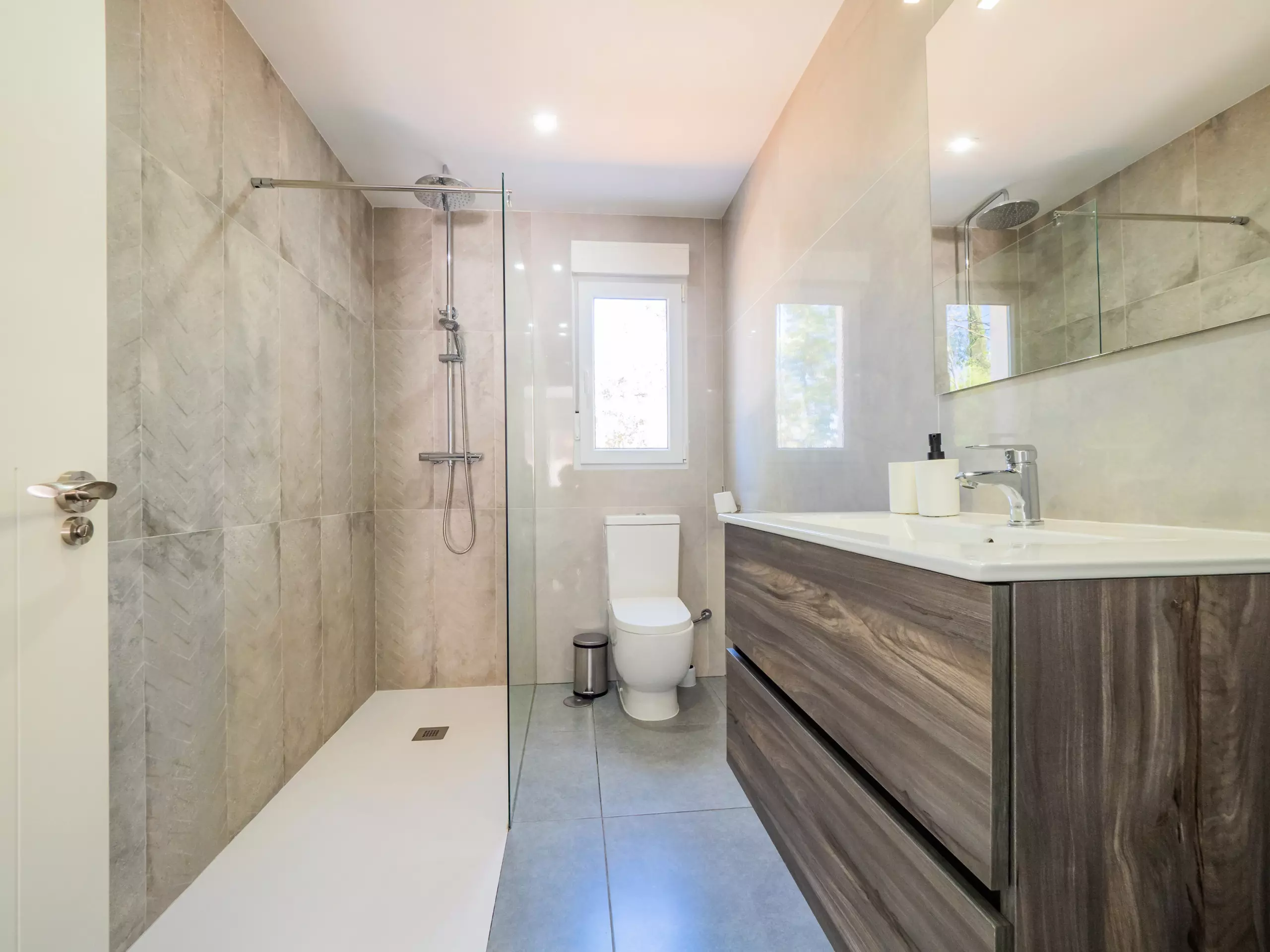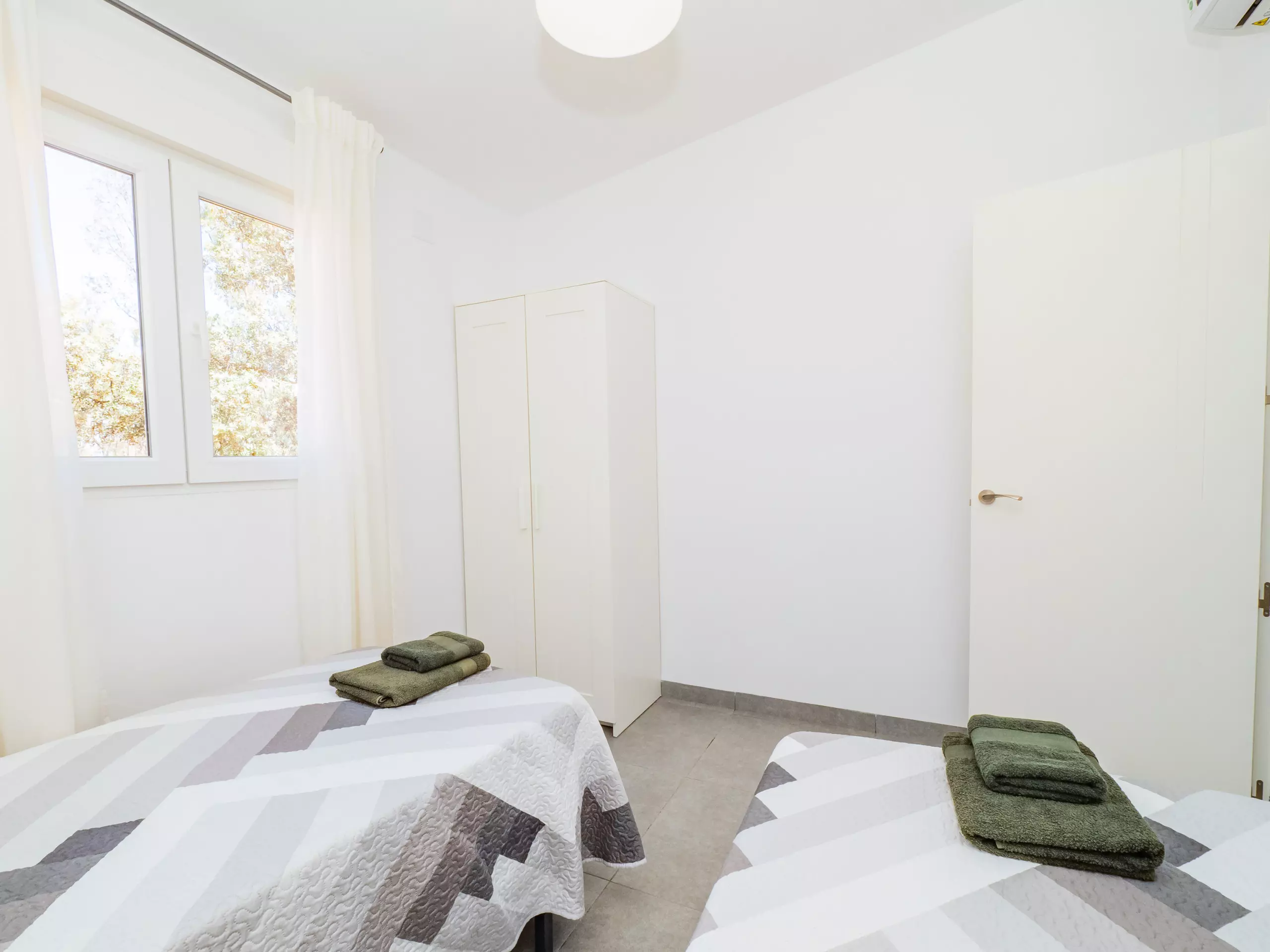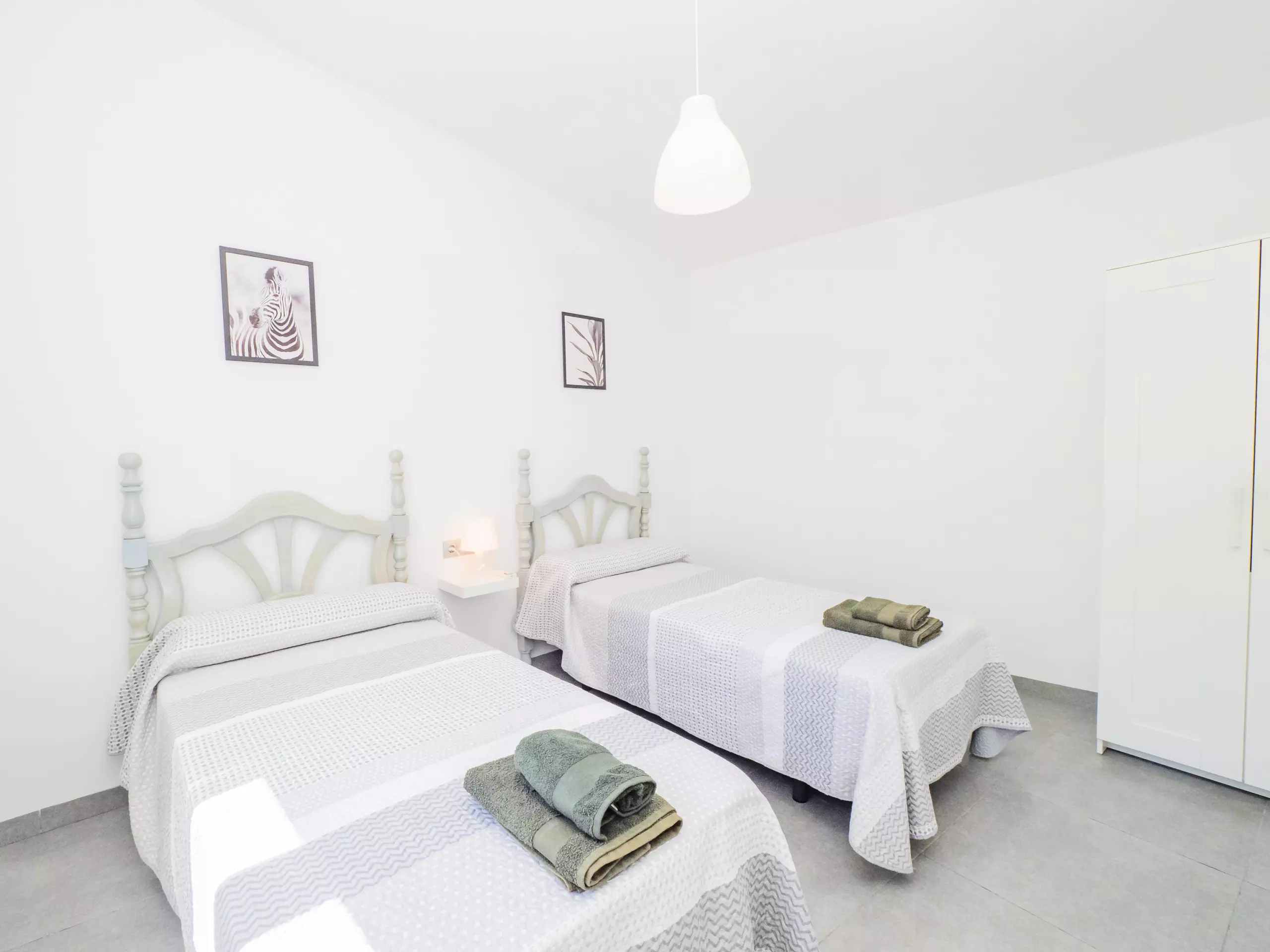 Le logement dispose de trois chambres spacieuses et lumineuses, toutes équipées de la climatisation réversible pour votre confort en toute saison. Deux chambres ont deux lits individuels chacune, et la troisième, la plus grande, dispose d'un lit de matrimonial confortable, offrant un hébergement pour jusqu'à 6 personnes dans ses 90m². La salle de bain est spacieuse et comprend une douche généreuse ?.