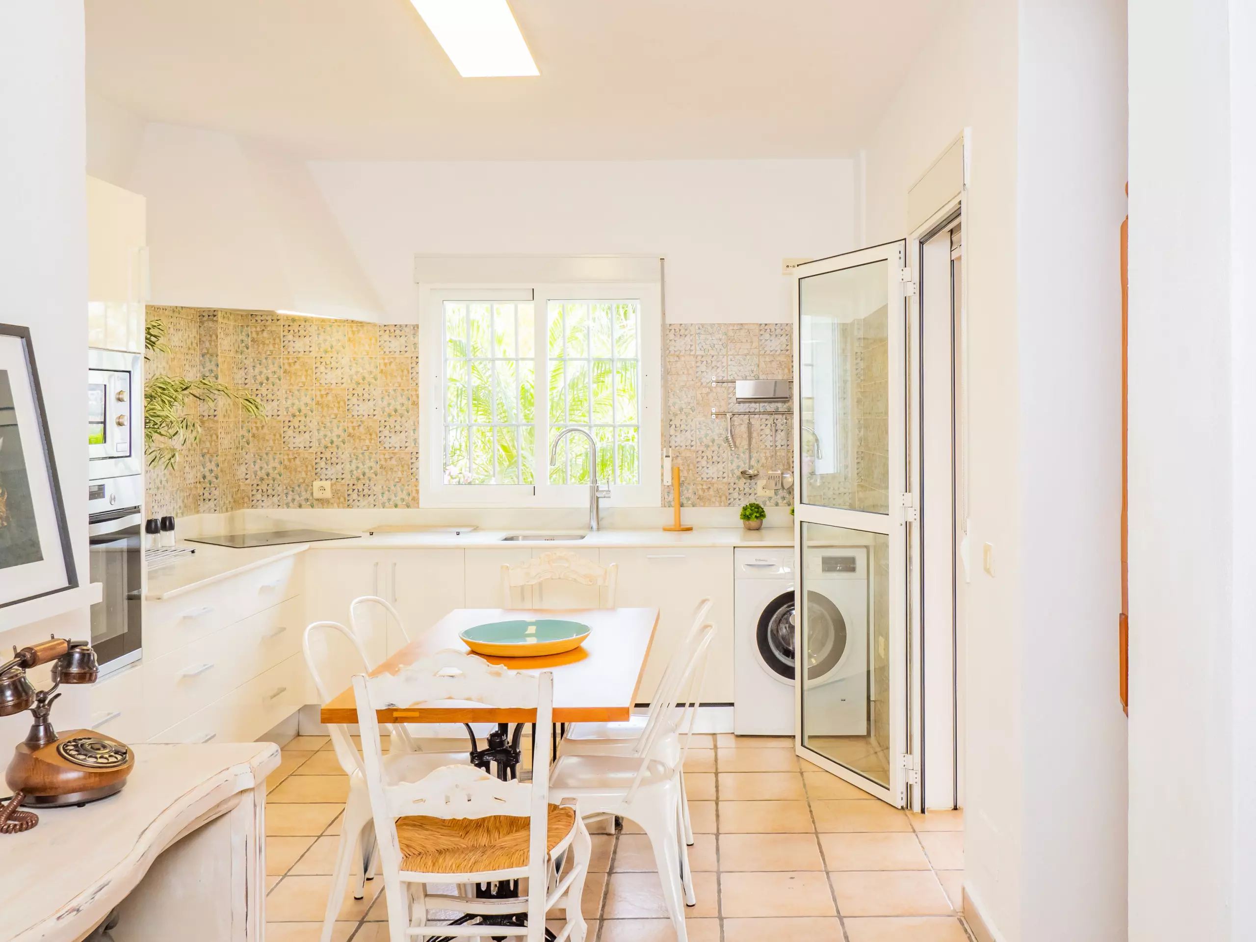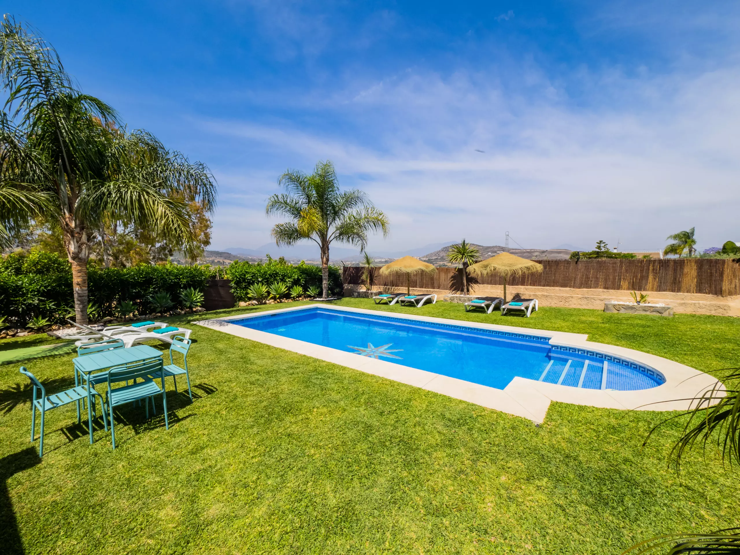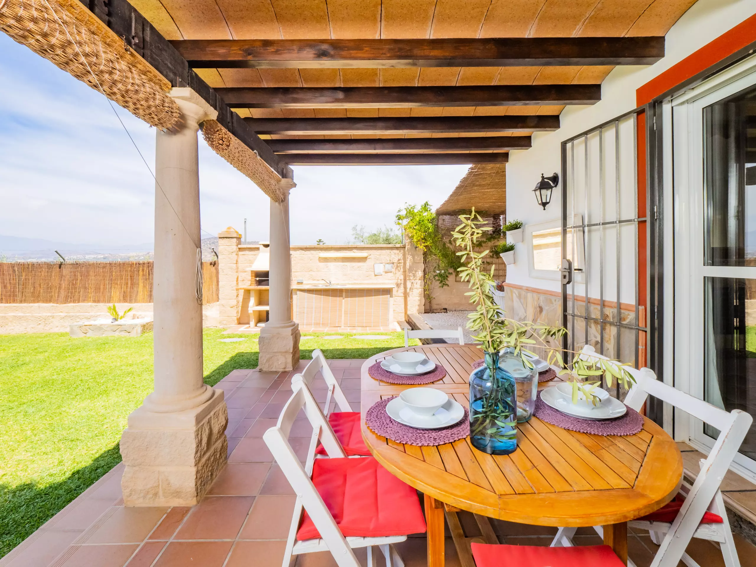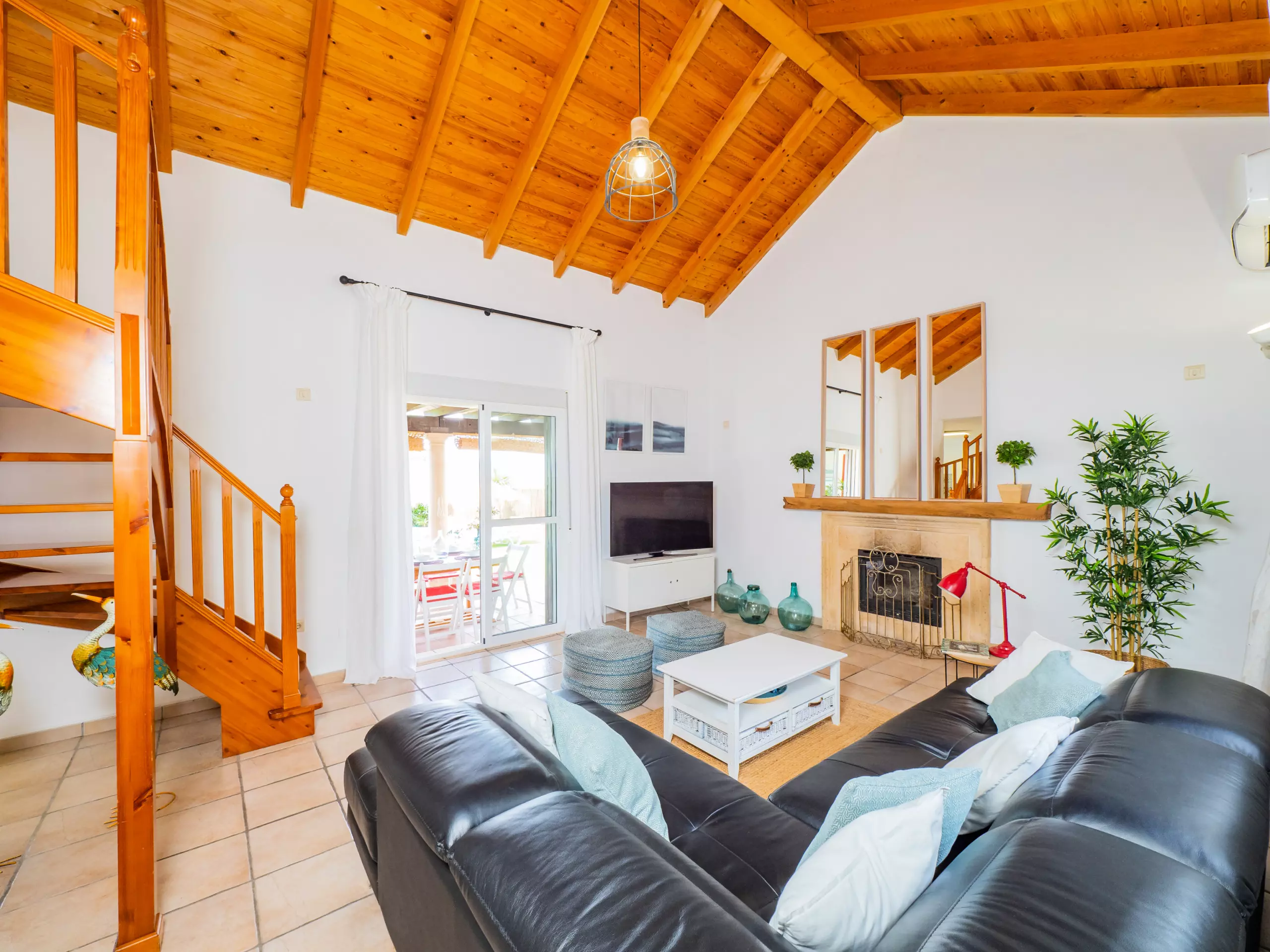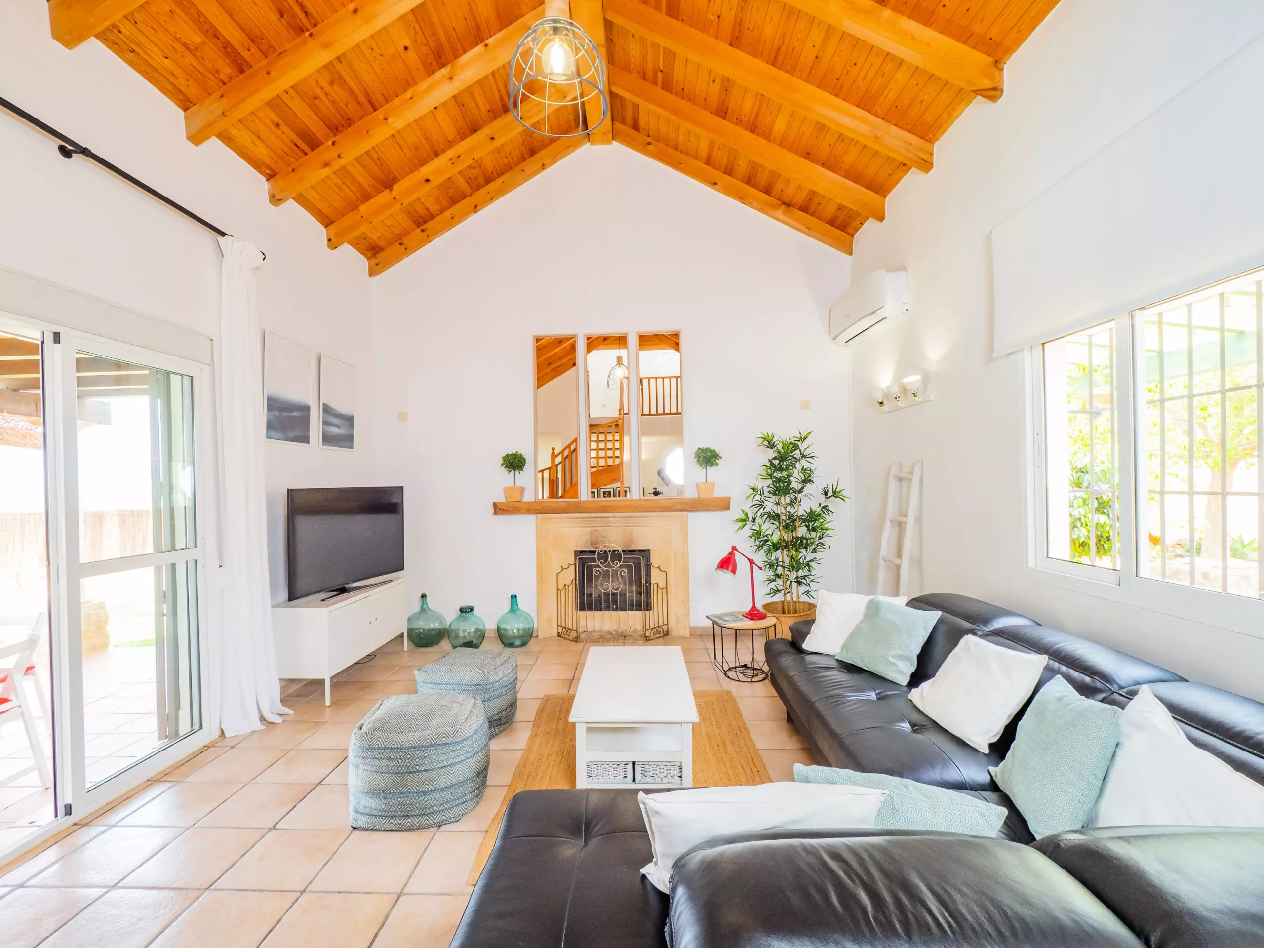 La propriété de 100 m² offre des vues relaxantes sur le jardin et la montagne, parfaite pour les familles avec des enfants, qui peuvent être surveillés confortablement depuis le salon ou la terrasse. La climatisation et le chauffage avec pompe à chaleur garantissent un confort tout au long de l'année, et le WiFi gratuit vous maintiendra connecté à tout moment. ??