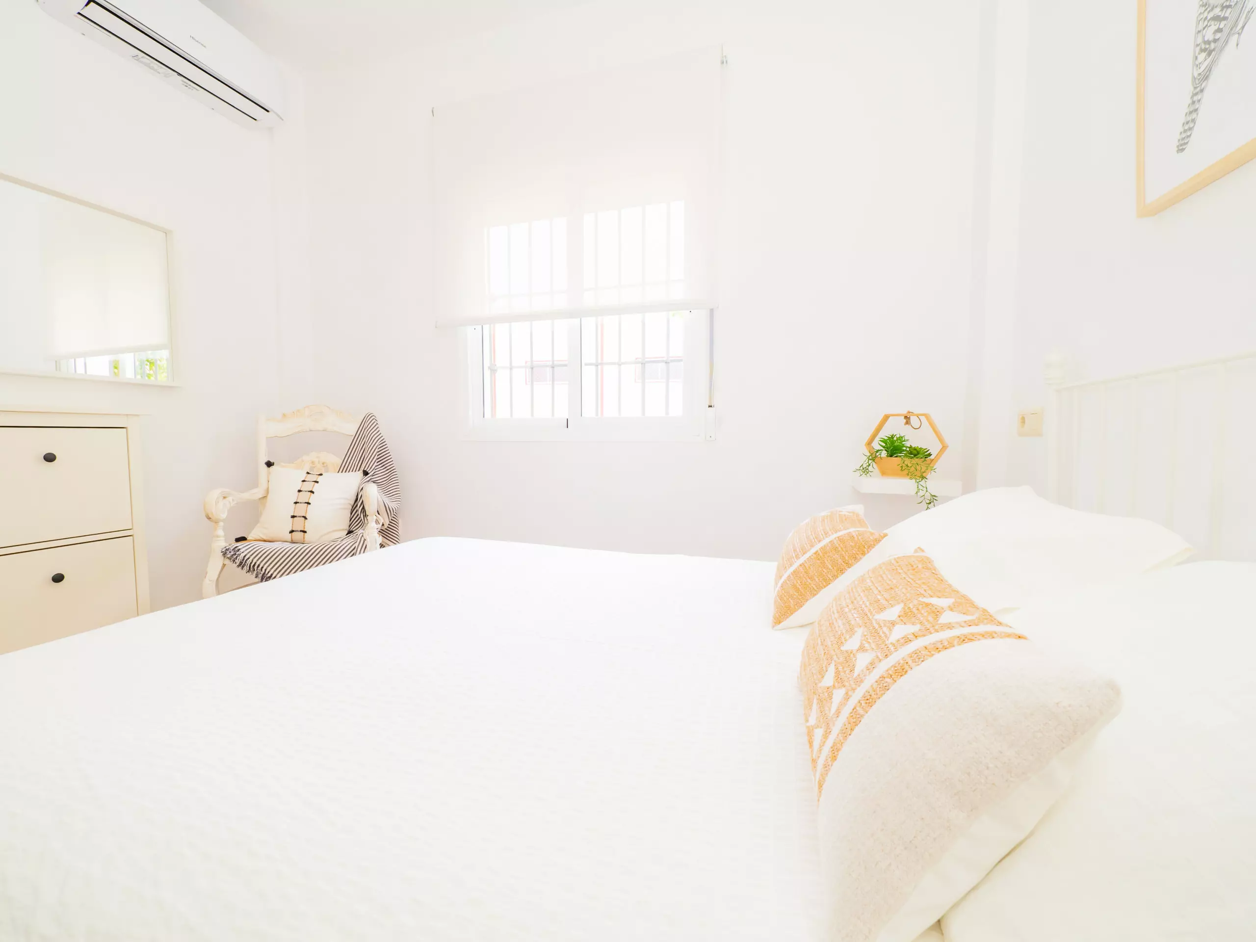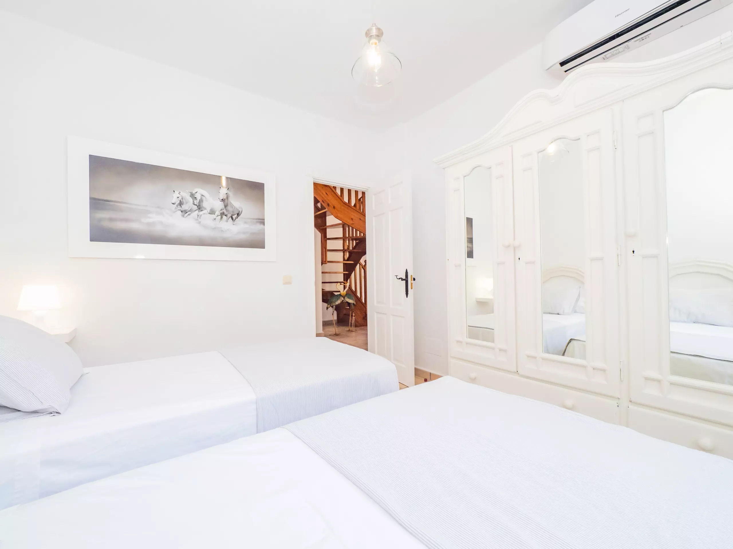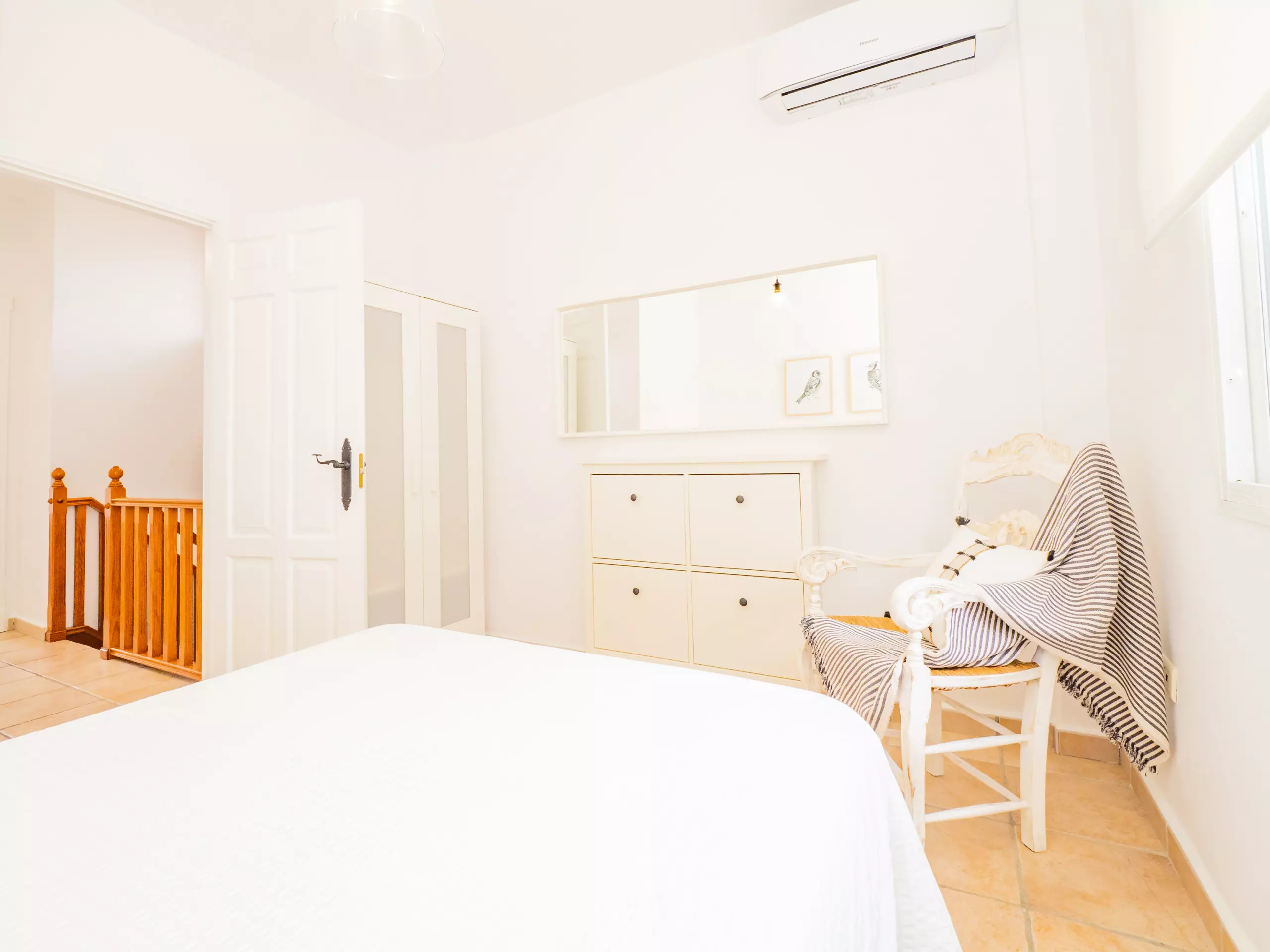 La maison a une capacité de 6 personnes, avec trois chambres spacieuses et des meubles de haute qualité. Au rez-de-chaussée, vous trouverez une chambre double et une salle de bain complète, tandis qu'à l'étage se trouve la chambre principale lumineuse avec balcon et vue sur la piscine, une deuxième chambre double extérieure avec placard intégré et une deuxième salle de bain complète. ??