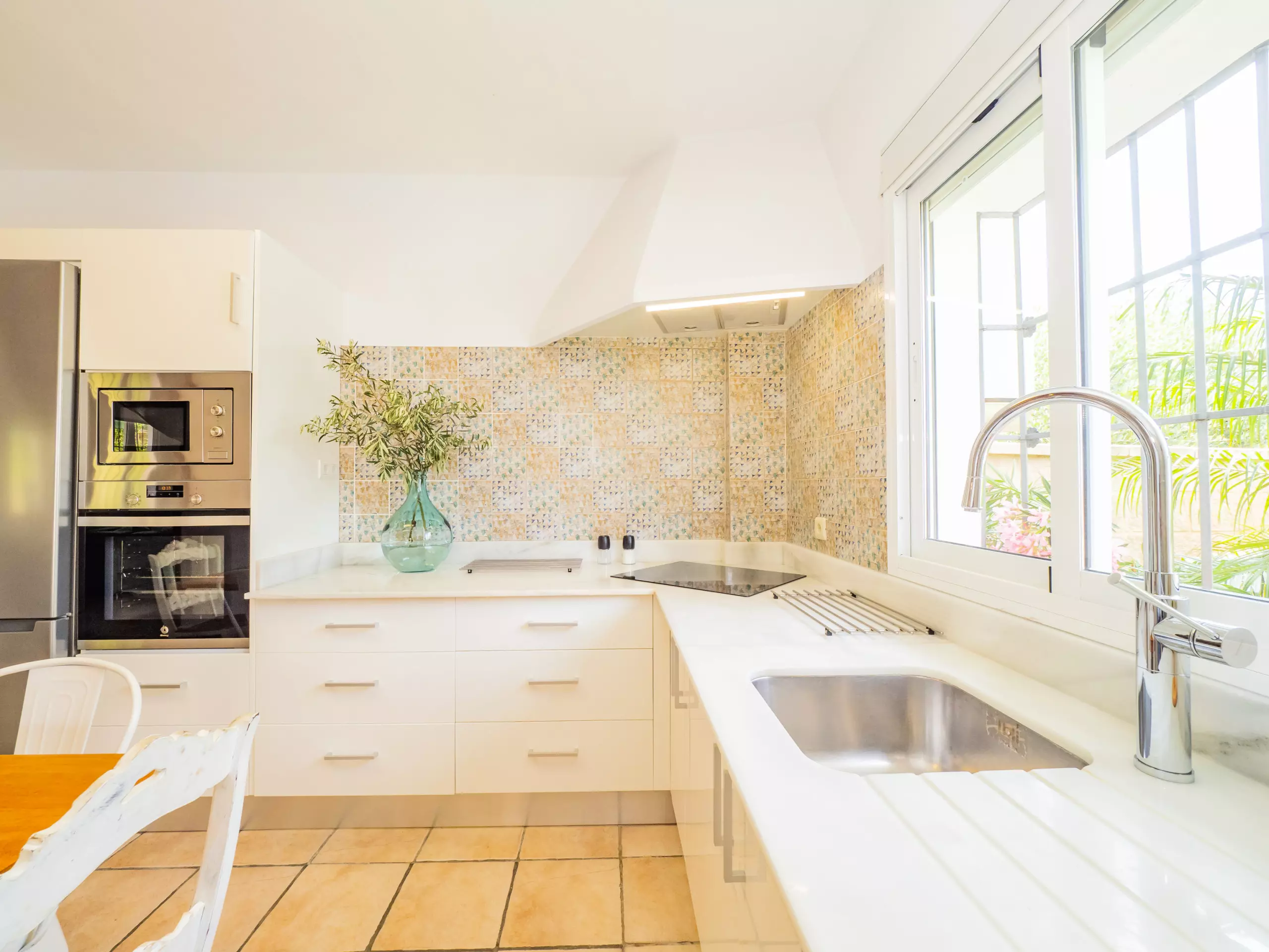 À l'intérieur, chaque coin est pensé pour votre confort : une cuisine moderne et entièrement équipée pour les amateurs de gastronomie, un grand salon avec un canapé élégant, une cheminée et un accès direct à la terrasse et à la piscine qui invite à se détendre. L'entrée directe au parking privé apporte du confort dès le premier instant.