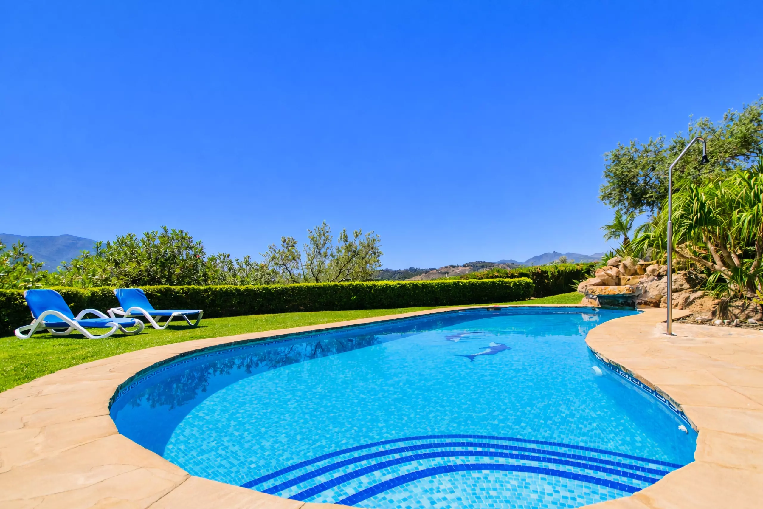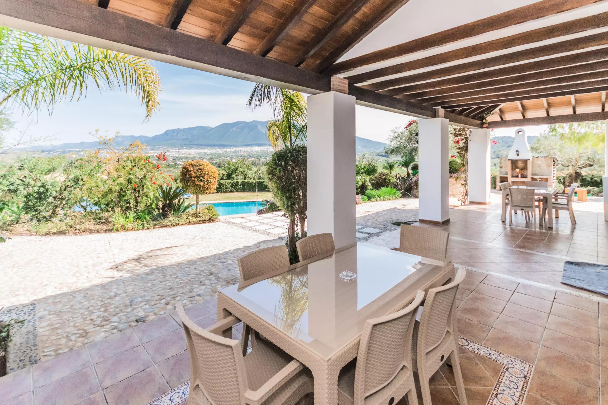 À l'extérieur, profitez du climat méditerranéen depuis la large terrasse meublée avec table et chaises, idéale pour des dîners en plein air avec des vues spectaculaires sur la montagne et le jardin ?. La piscine privée invite à se rafraîchir et à se détendre, tandis que la zone de barbecue est parfaite pour partager des moments spéciaux en compagnie.