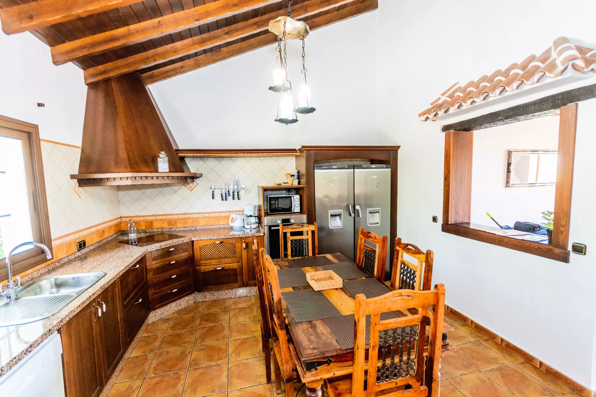L'intérieur est conçu pour votre confort, avec une cuisine indépendante entièrement équipée qui comprend une plaque vitrocéramique, un réfrigérateur, un micro-ondes, un four, un congélateur, un lave-linge, un lave-vaisselle et de petits appareils électroménagers comme une cafetière et un grille-pain. Le salon-salle à manger est accueillant, parfait pour partager des moments en groupe. De plus, il y a deux salles de bains avec baignoire, une salle de bains avec douche et un toilette supplémentaire, pour assurer que le séjour soit confortable et pratique.