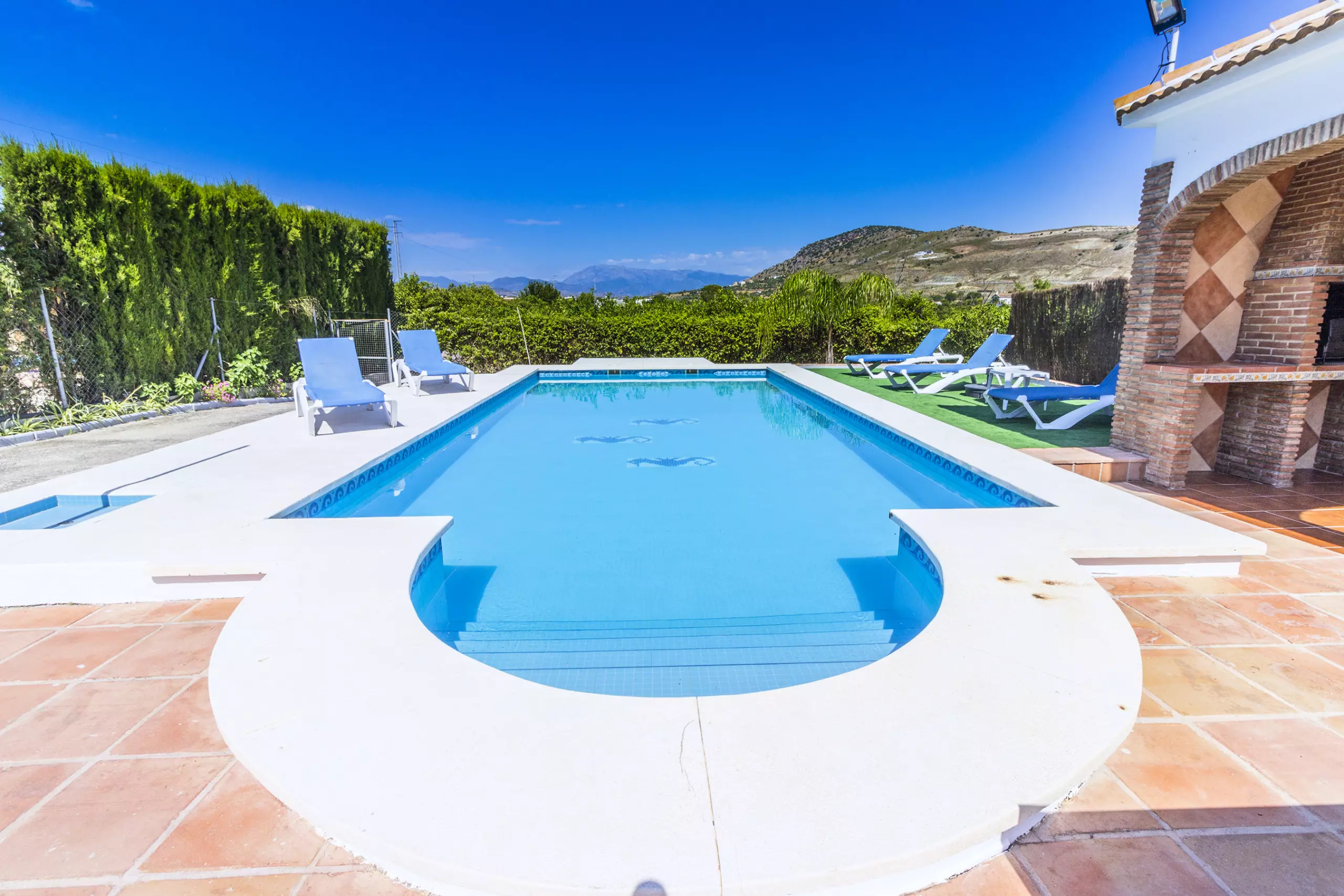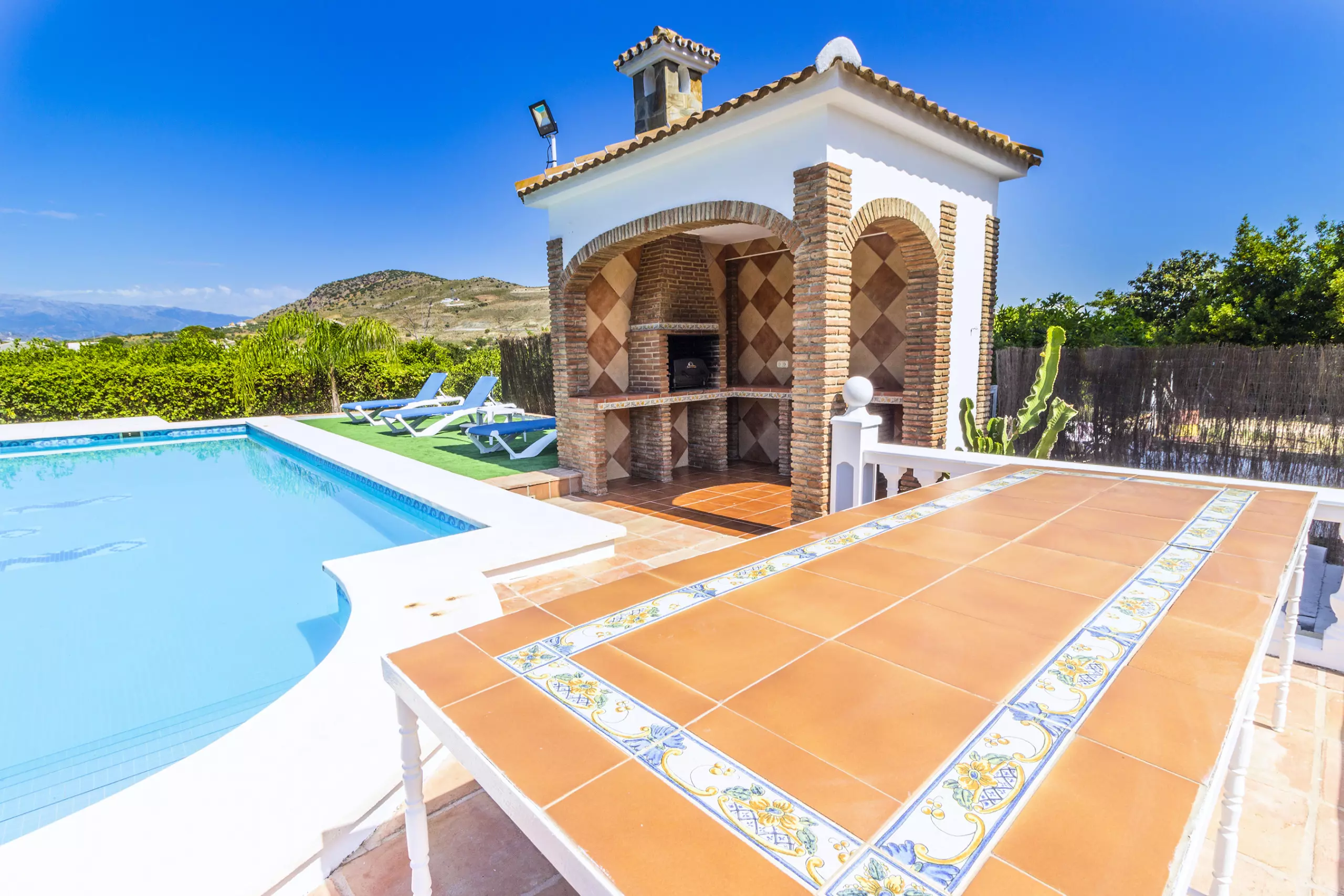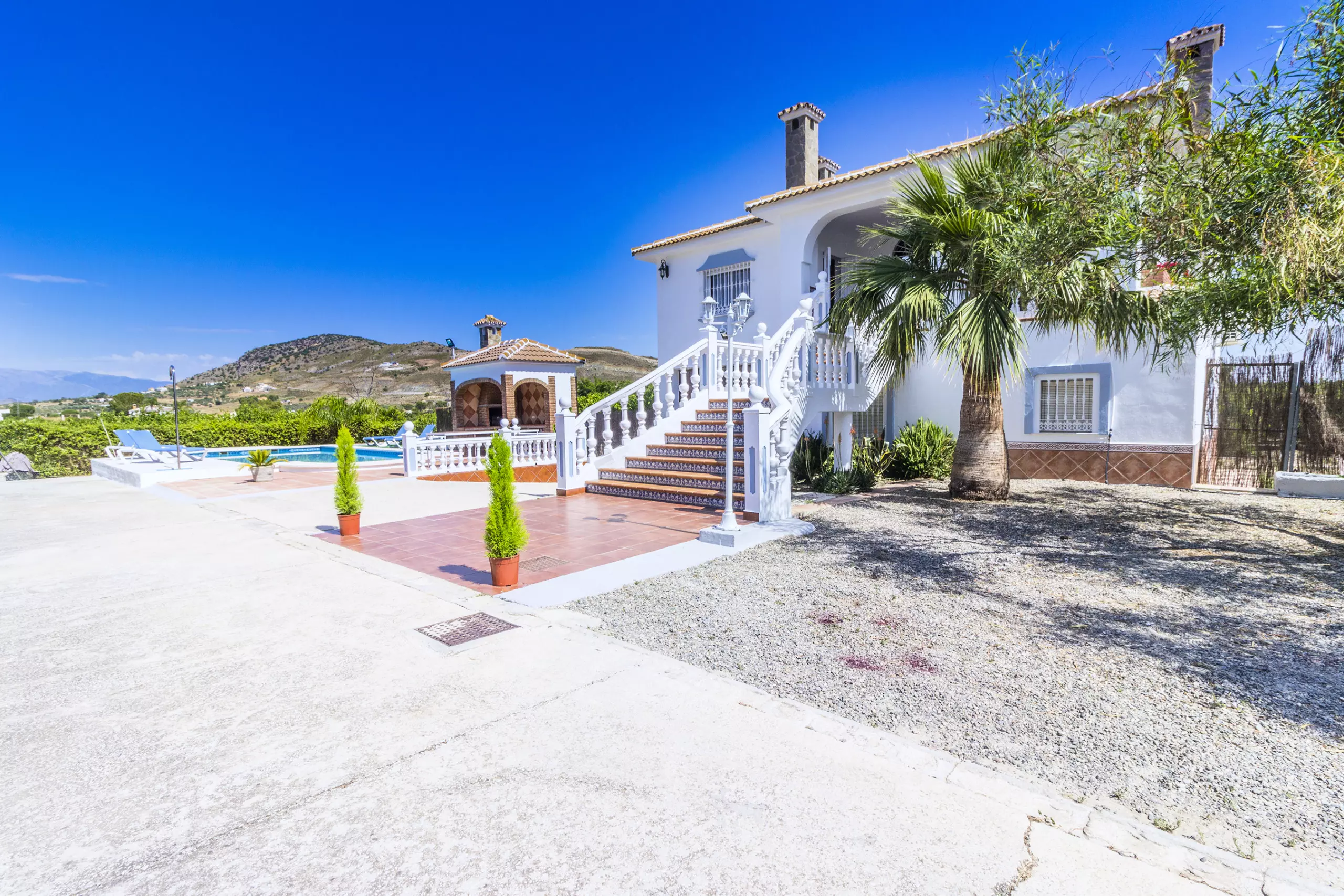 À l'extérieur, vous trouverez une terrasse ensoleillée avec table, chaises, chaises longues et barbecue, parfaite pour profiter du soleil et de la vue sur les Sierras. De plus, la piscine privée invite à se rafraîchir et à se détendre dans un environnement calme et rural. La villa dispose d'une terrasse couverte qui peut être utilisée à la fois pour manger en plein air et comme parking couvert pour deux voitures. Avec la climatisation et le chauffage par pompe à chaleur dans tout le logement, le séjour sera agréable à toute époque de l'année.