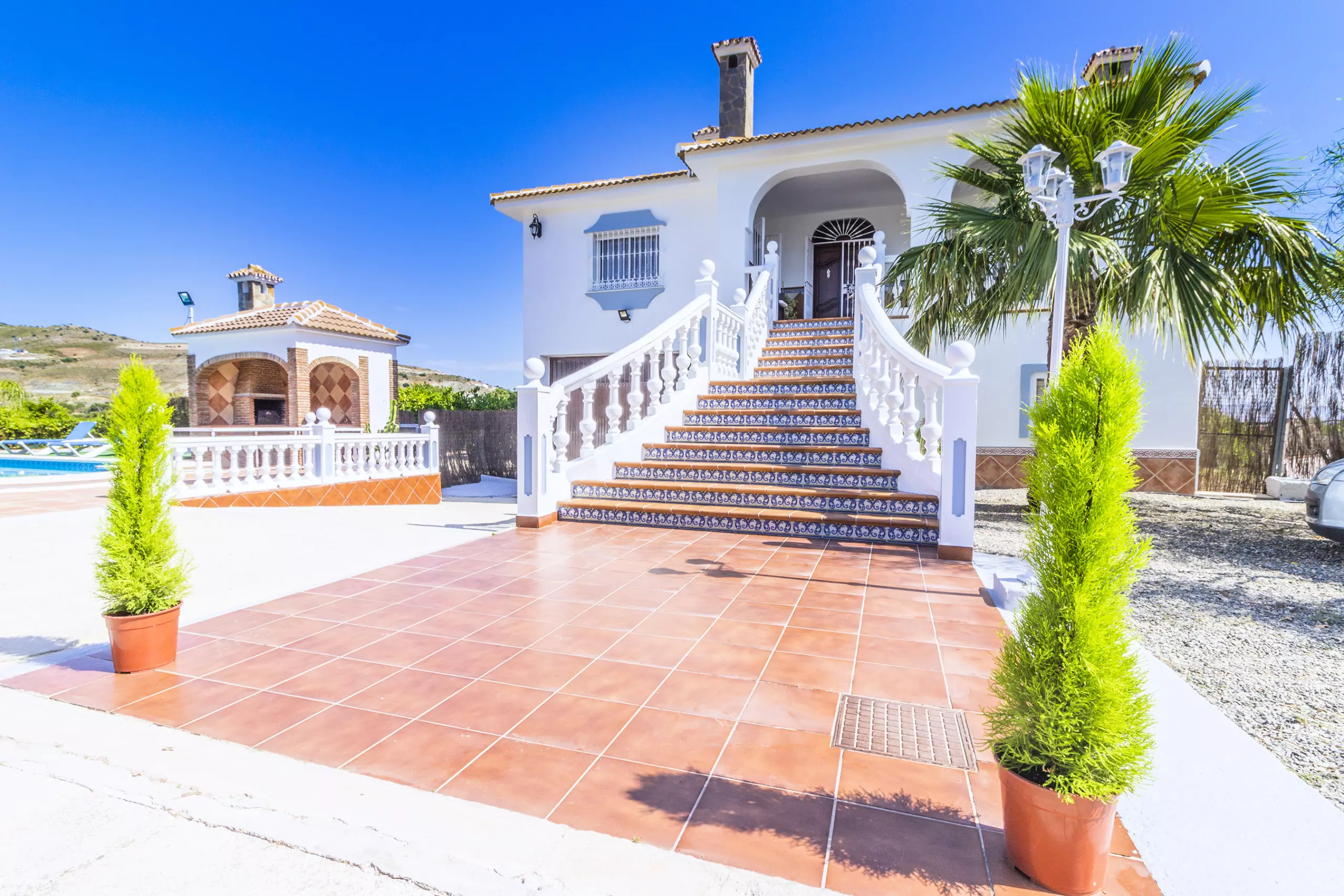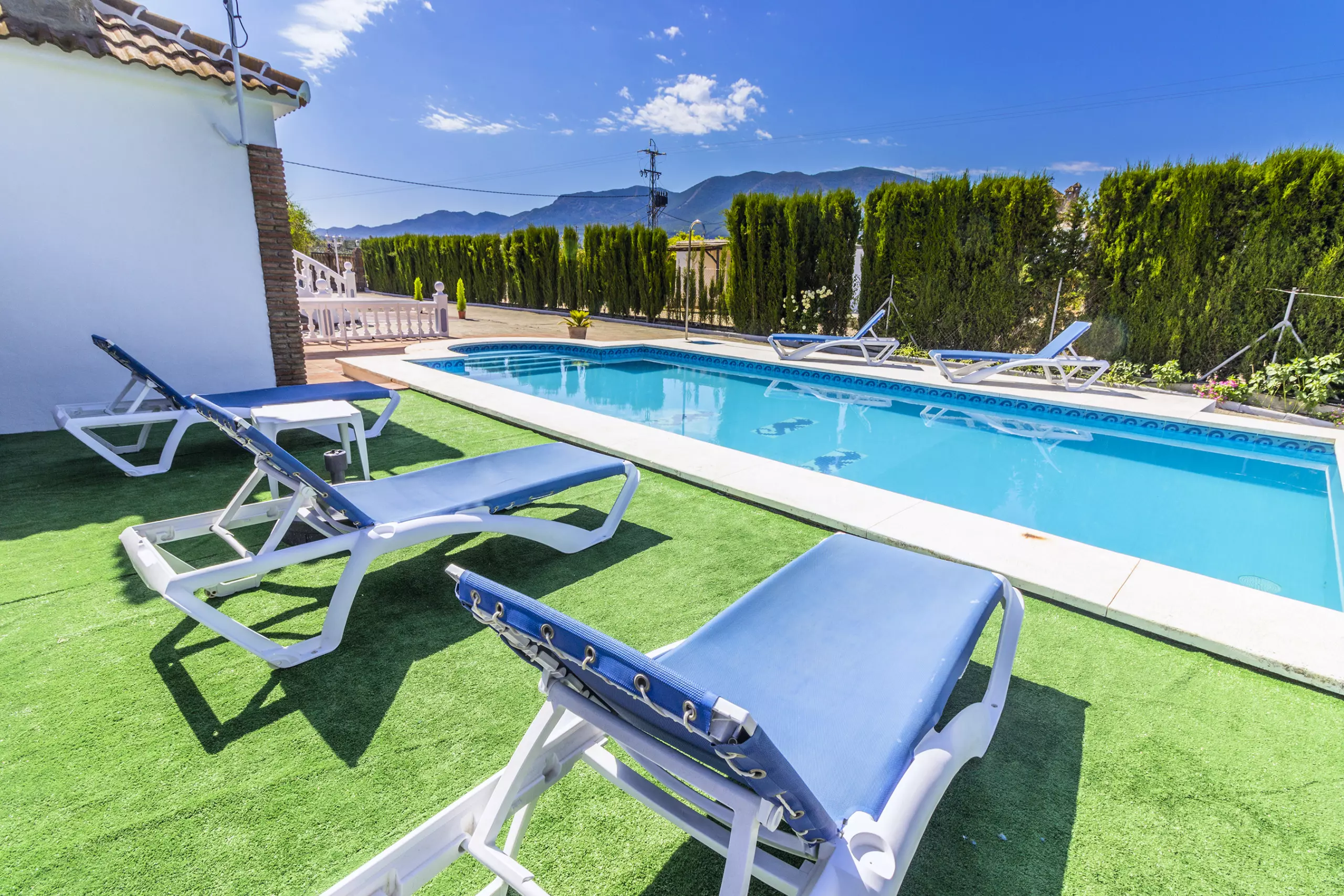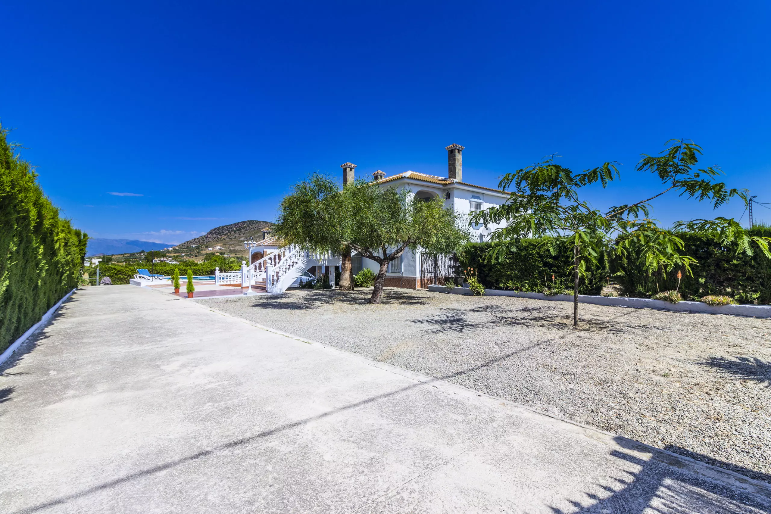 À l'extérieur, vous trouverez une terrasse ensoleillée avec table, chaises, chaises longues et barbecue, parfaite pour profiter du soleil et de la vue sur les Sierras. De plus, la piscine privée invite à se rafraîchir et à se détendre dans un environnement calme et rural. La villa dispose d'une terrasse couverte qui peut être utilisée à la fois pour manger en plein air et comme parking couvert pour deux voitures. Avec la climatisation et le chauffage par pompe à chaleur dans tout le logement, le séjour sera agréable à toute époque de l'année.