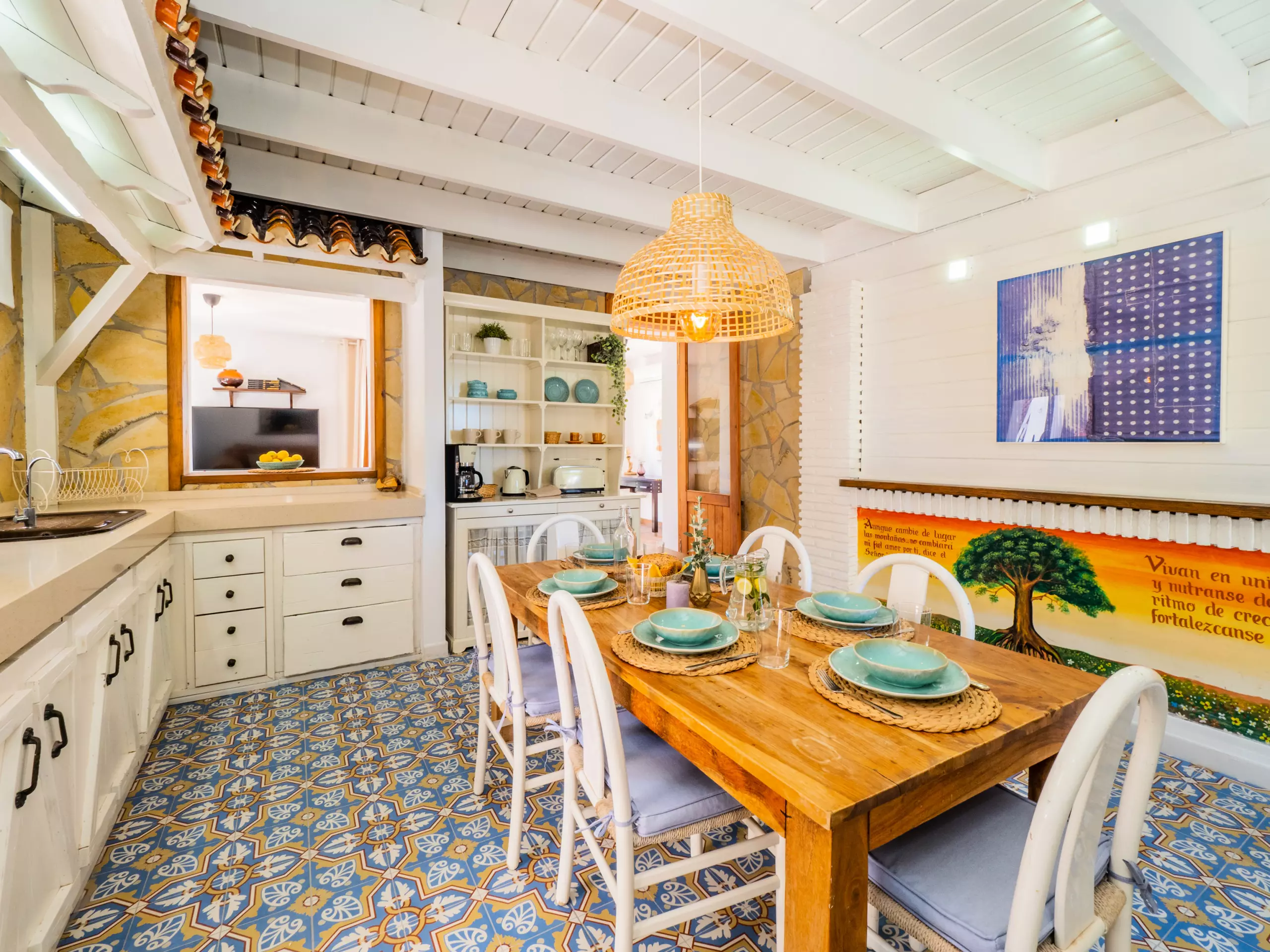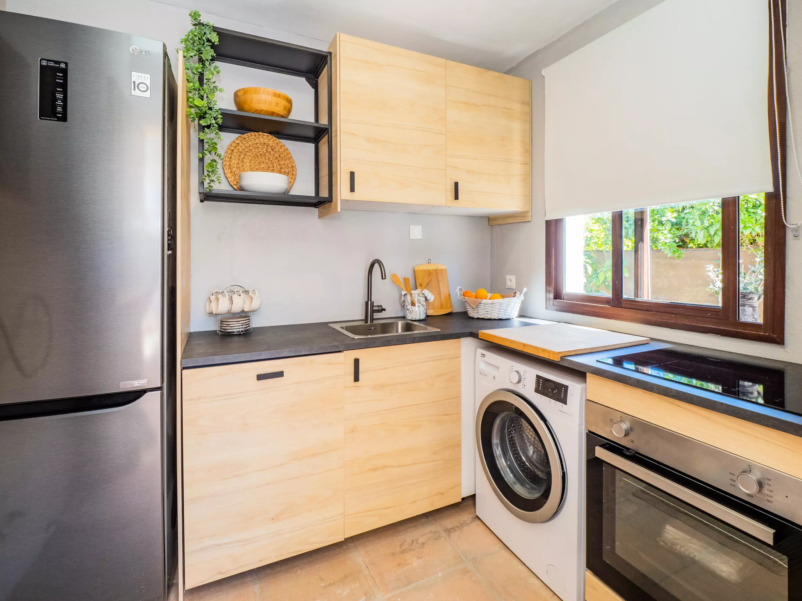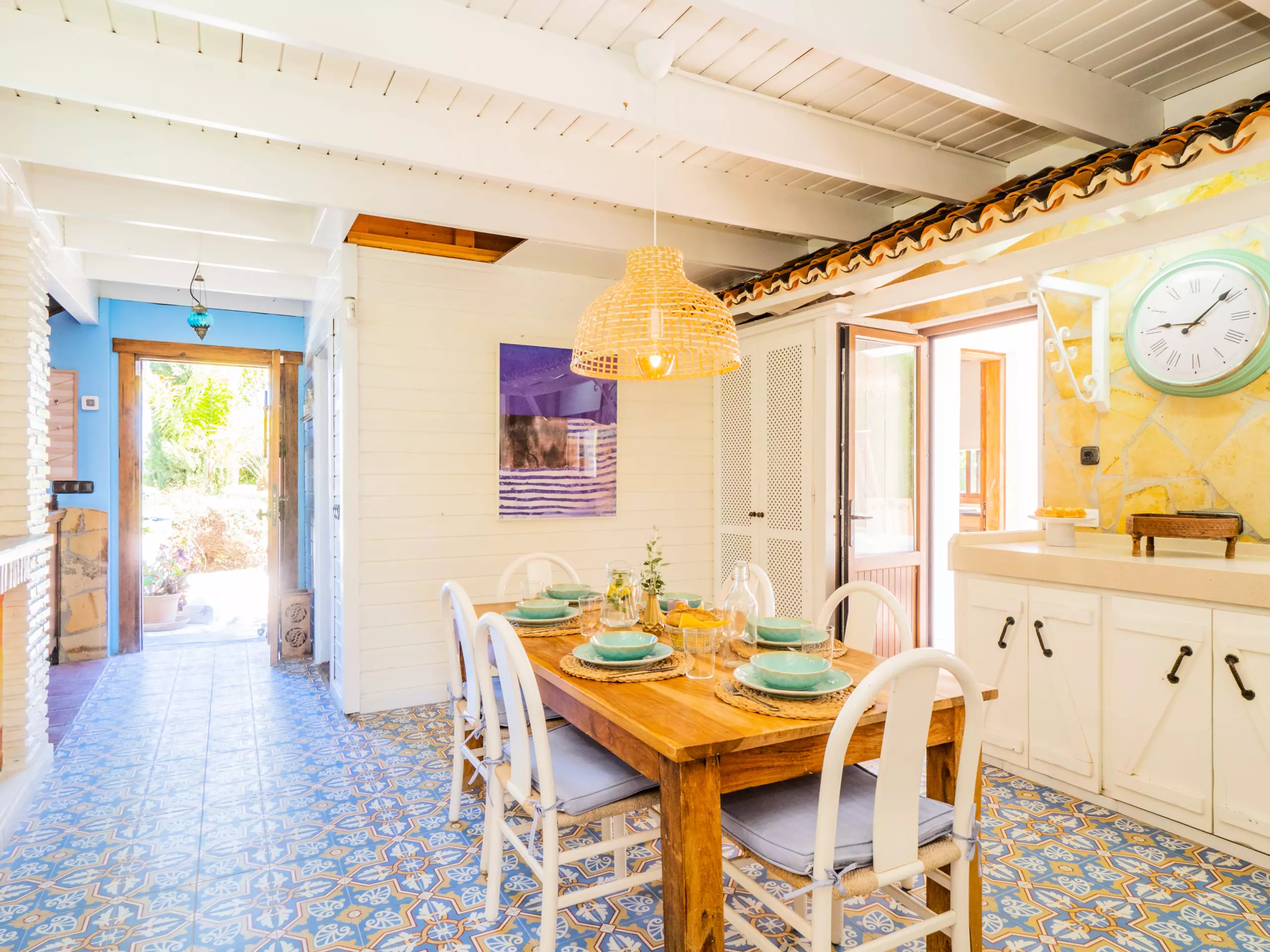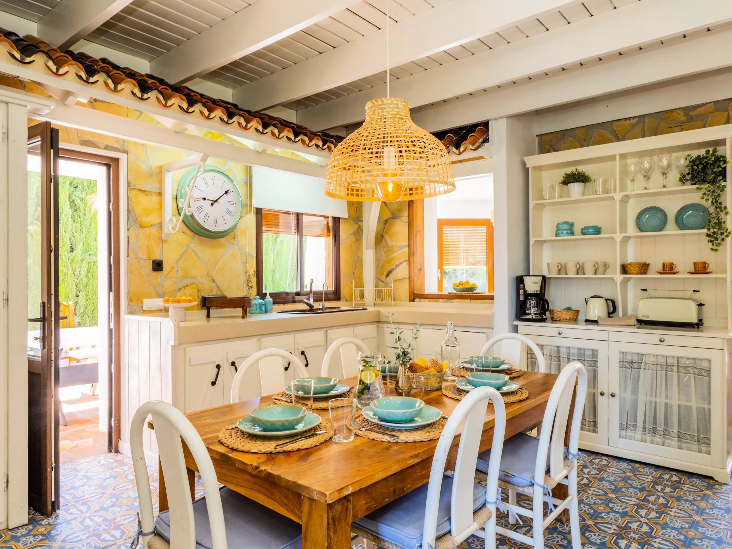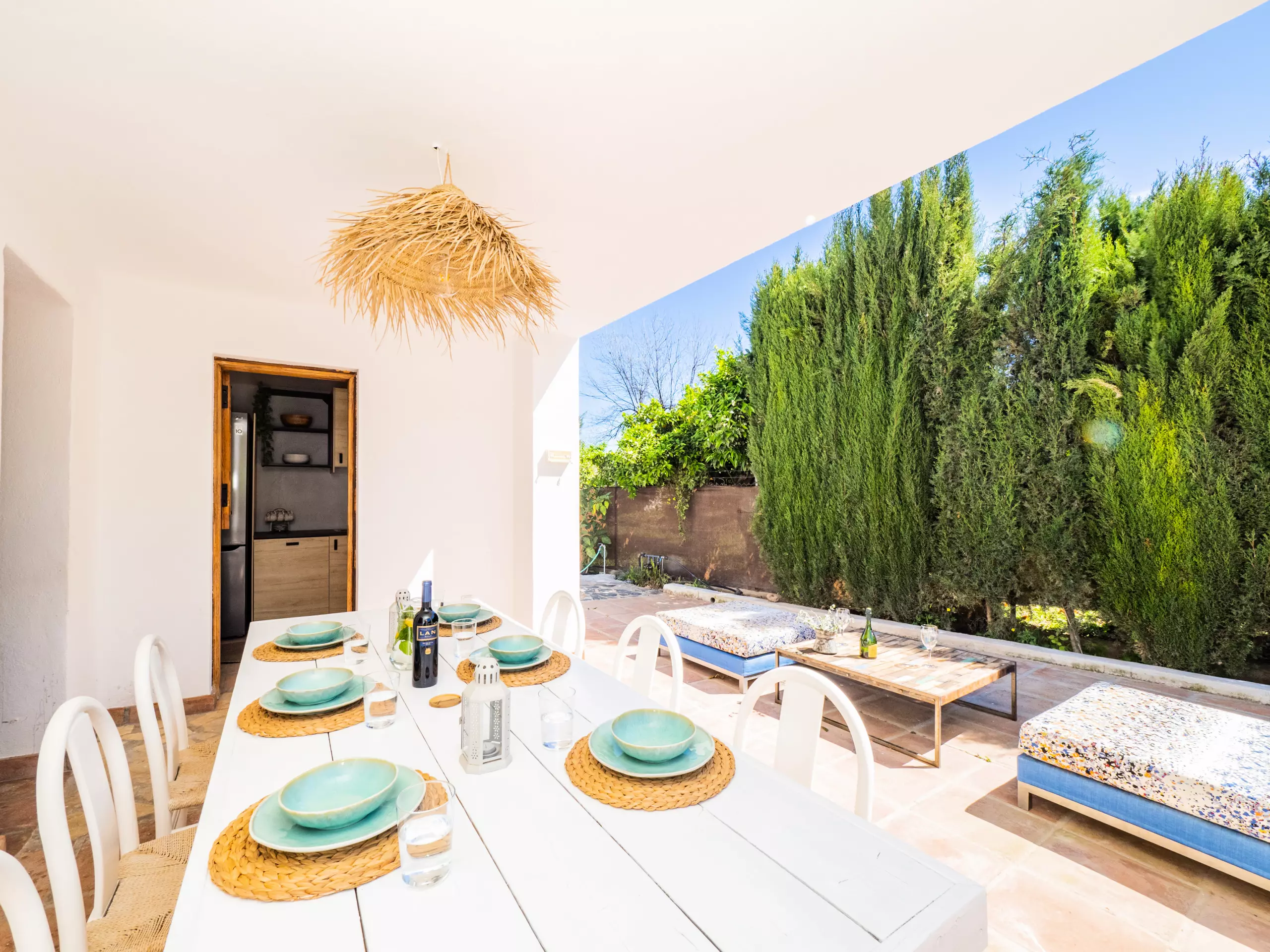 À l'extérieur, vous profiterez d'une élégante zone paysagée avec piscine, barbecue et porche, idéale pour des déjeuners ensoleillés en plein air tout en surveillant les plus petits qui jouent dans la piscine. De plus, une petite cuisine auxiliaire facilite l'organisation des repas et le rangement des ustensiles.