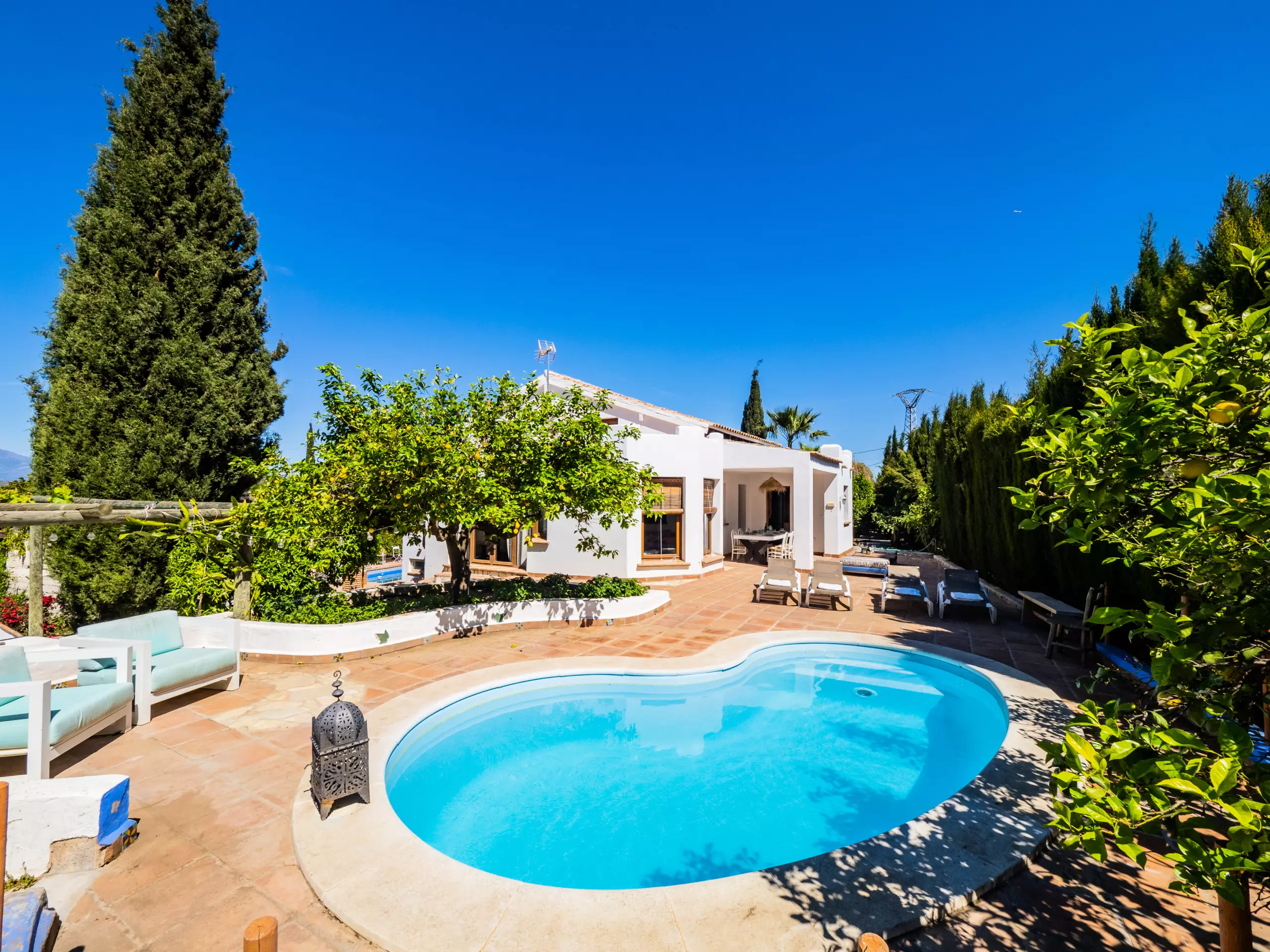 Ce charmant logement rural de deux étages est parfait pour les familles ou les groupes qui recherchent de la tranquillité et du confort dans un environnement calme, mais proche des zones urbaines comme Alhaurín el Grande. Le terrain est partagé mais chaque logement dispose d'une entrée privée et d'espaces de piscine bien délimités pour garantir l'intimité de ses invités.