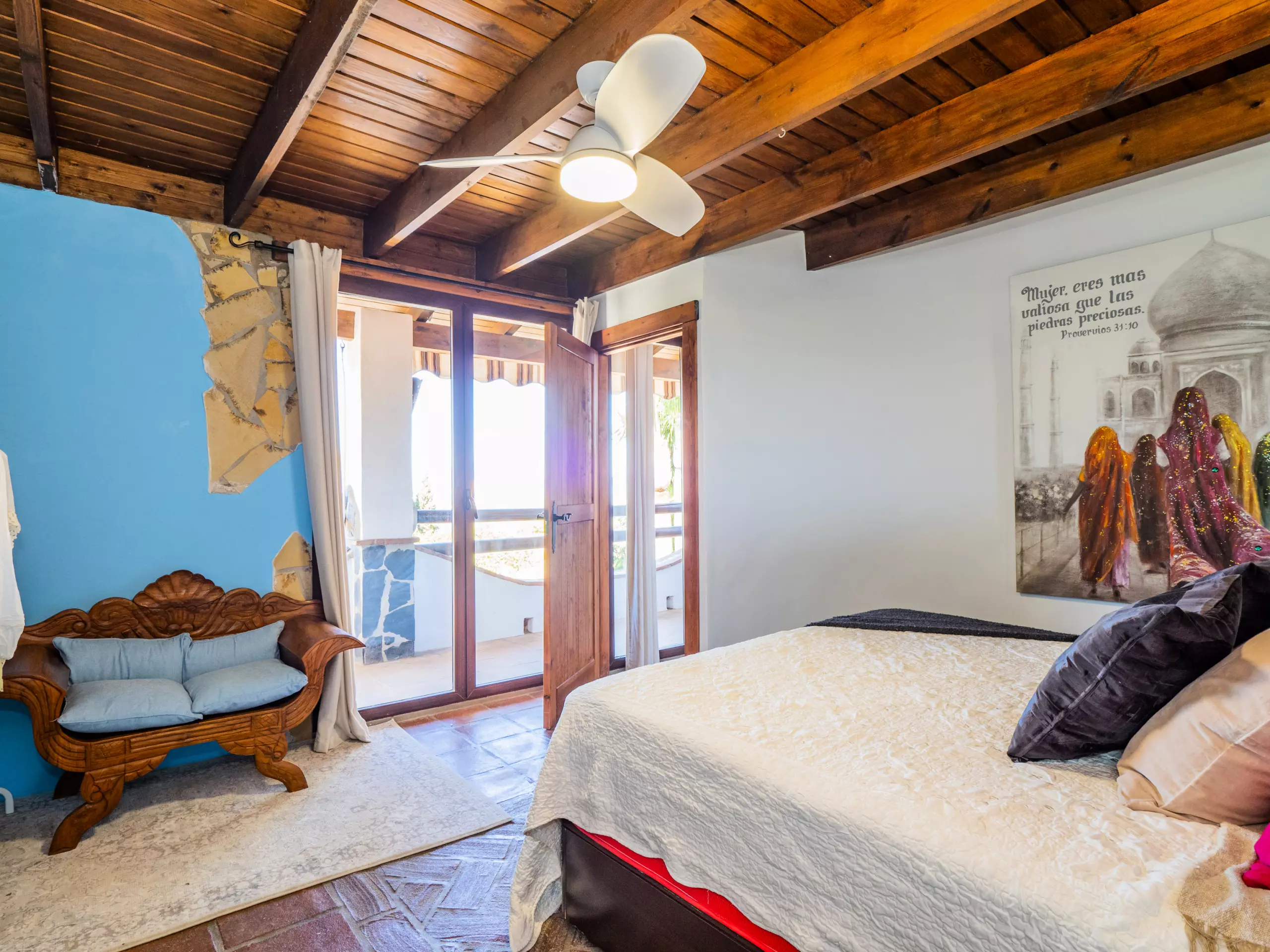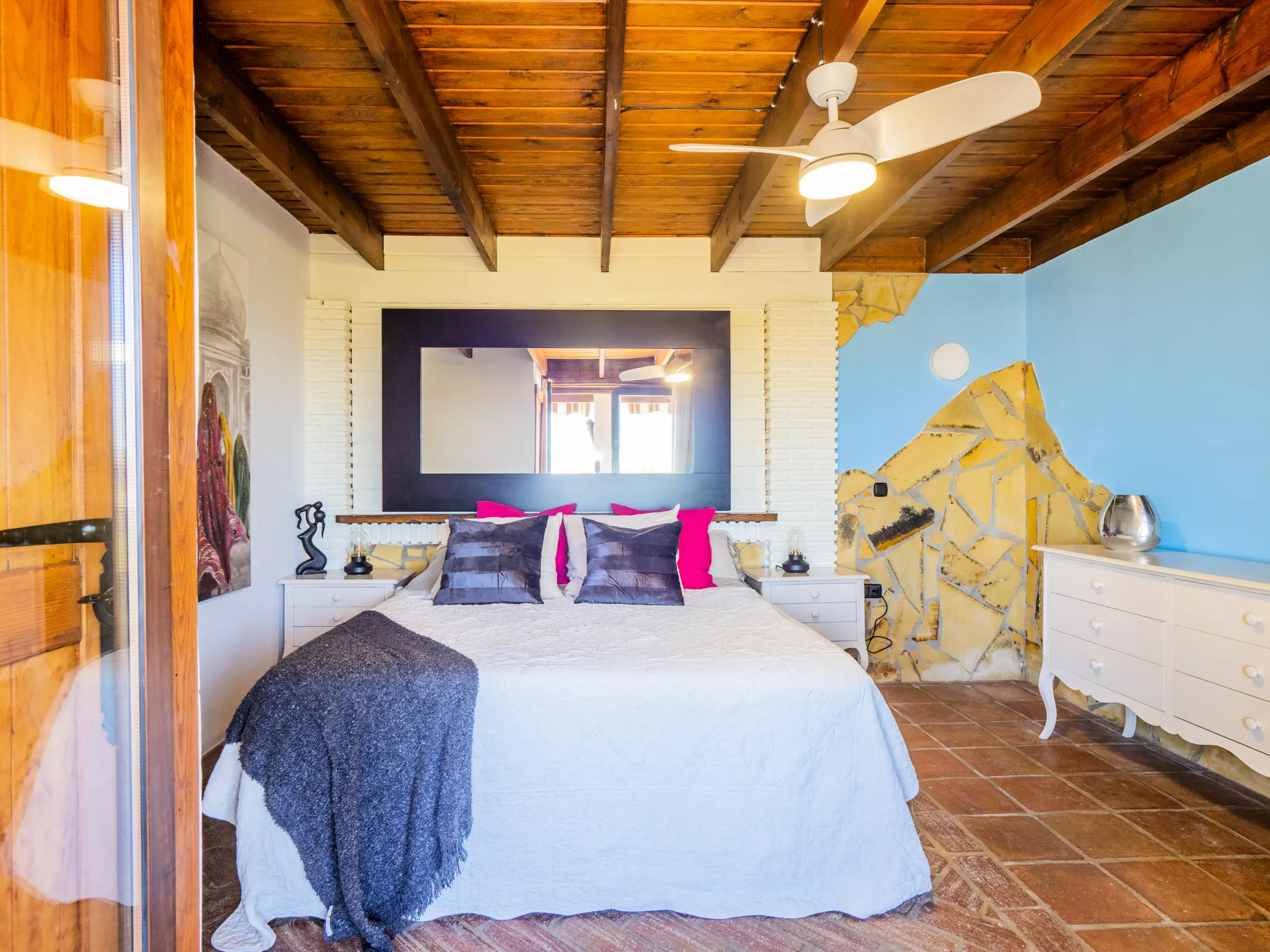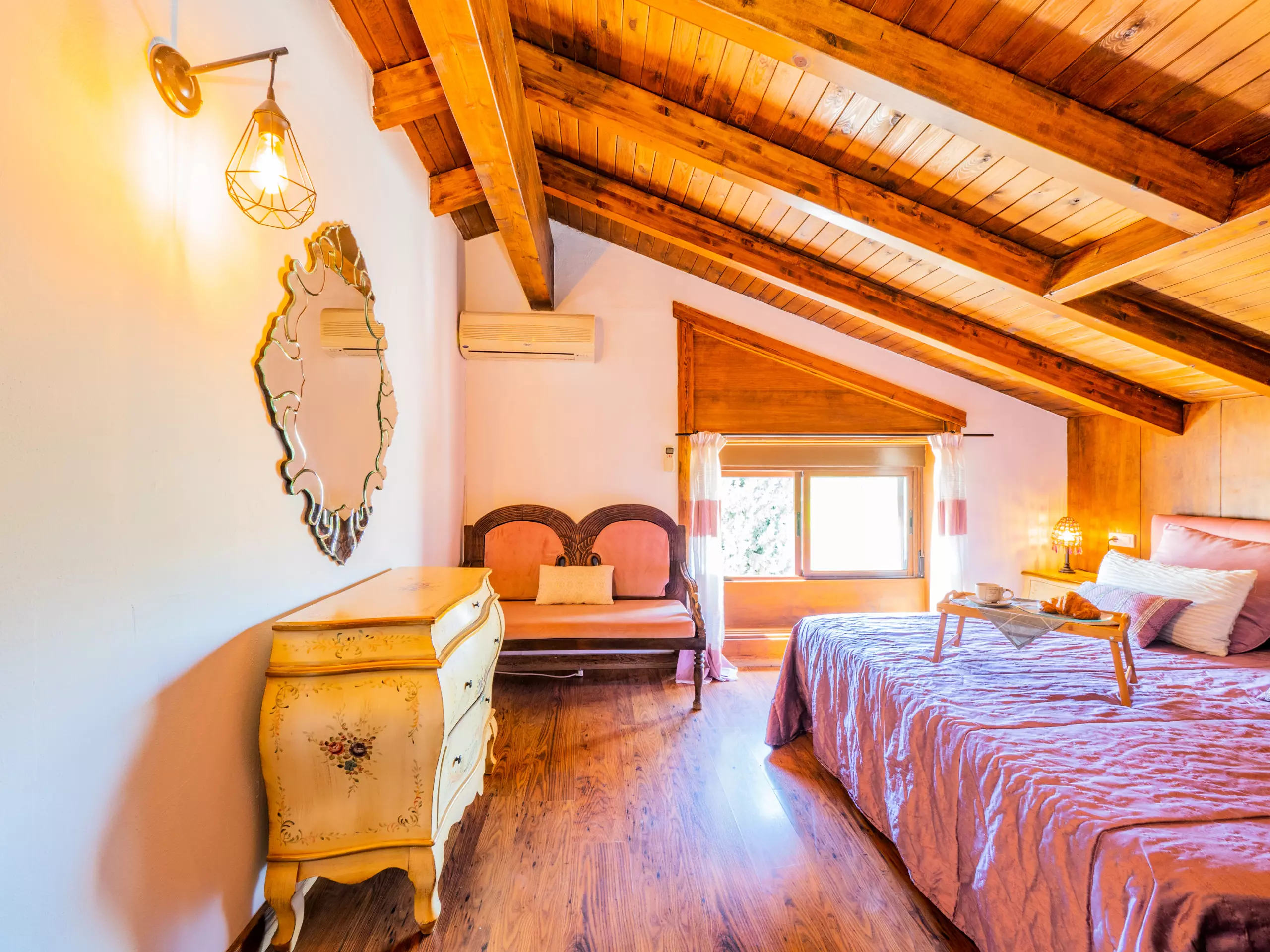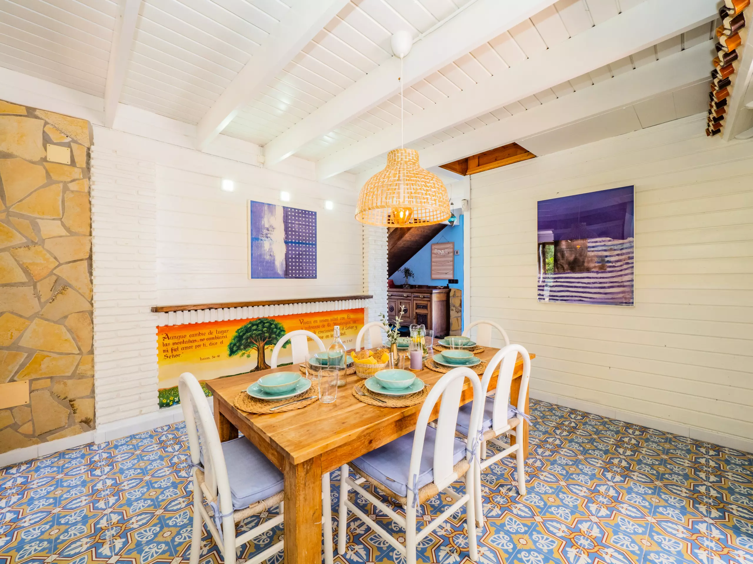 À l'étage supérieur, avec des plafonds mansardés, vous trouverez deux chambres : l'une avec un lit de couple et un dressing, et l'autre idéale pour les enfants avec deux lits individuels et un lit superposé. Ici, vous disposez également d'une deuxième salle de bain avec une douche. La maison est équipée d'une connexion wifi gratuite pour vous maintenir toujours connecté.