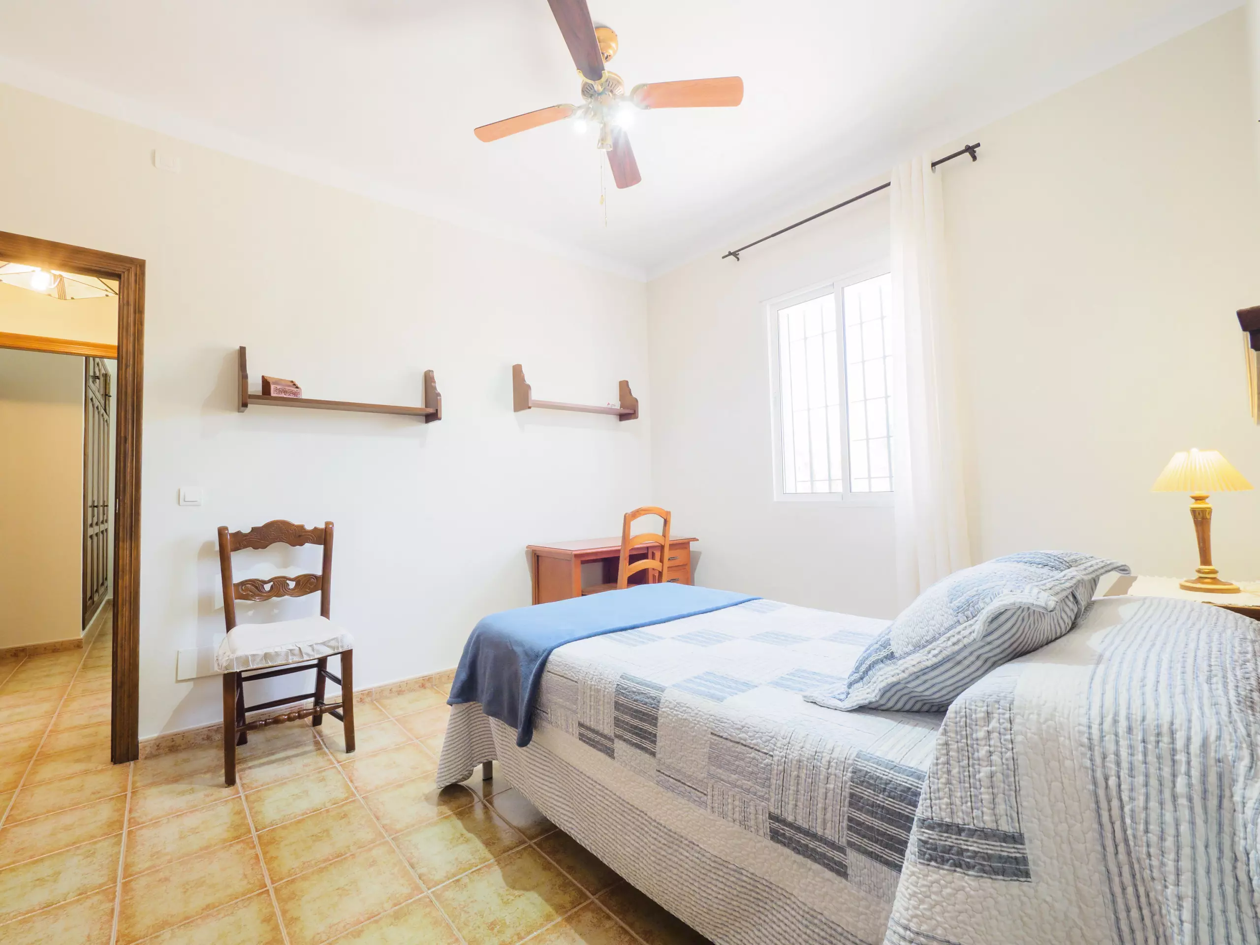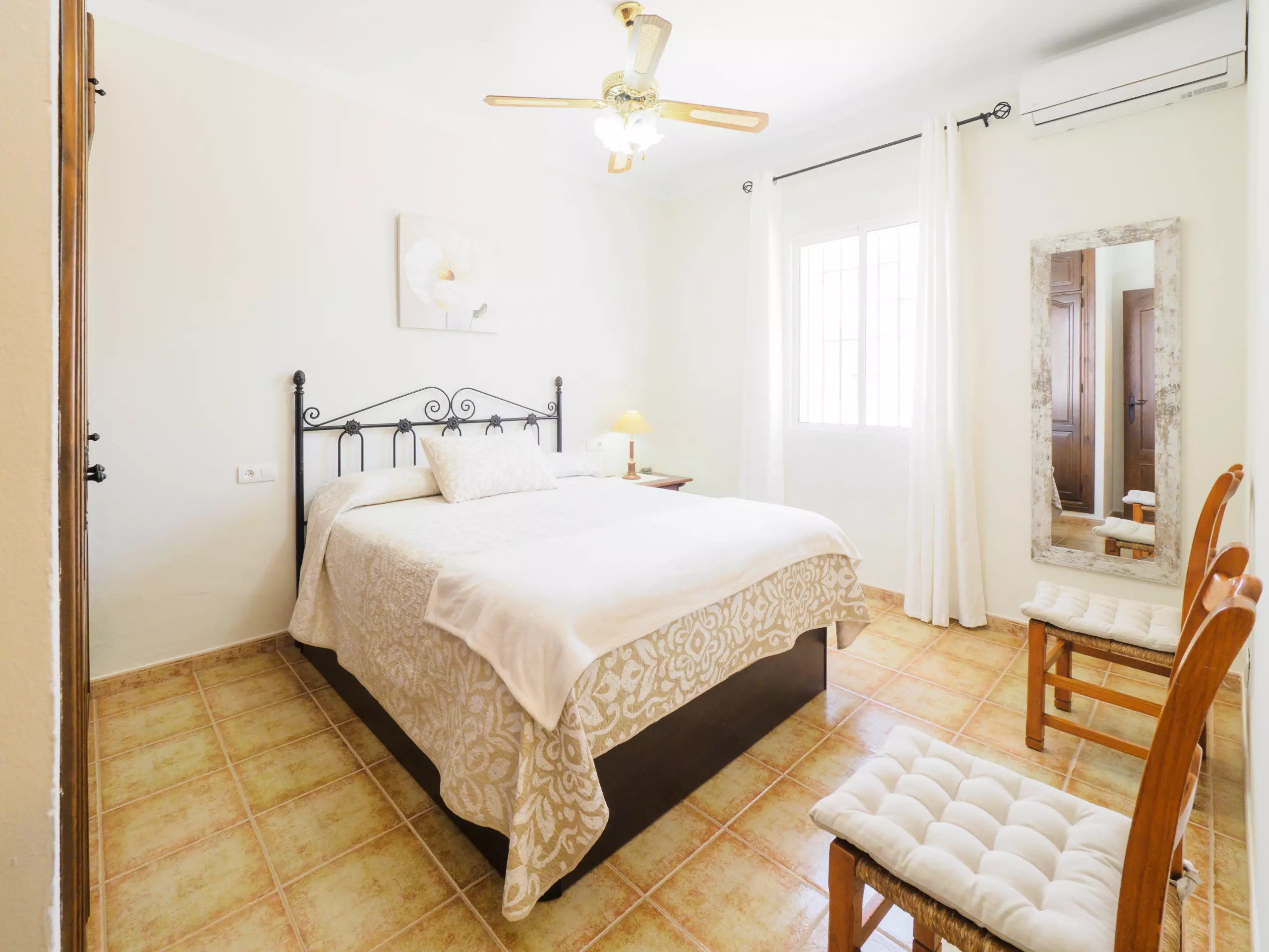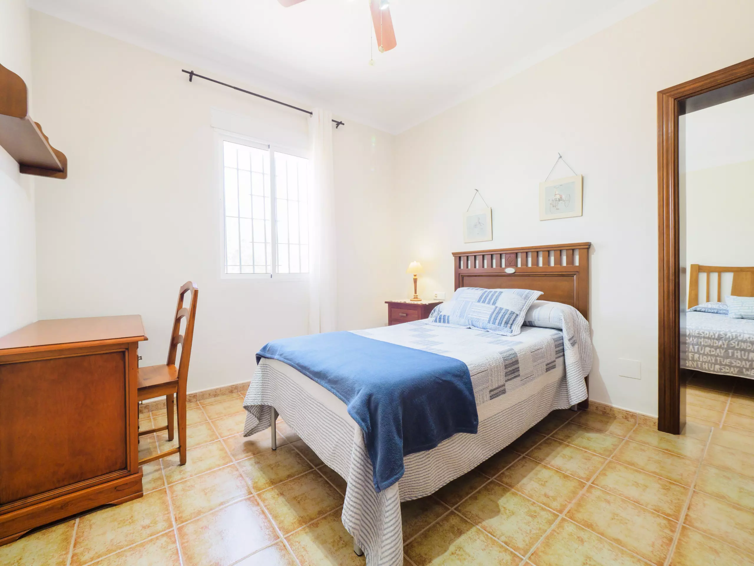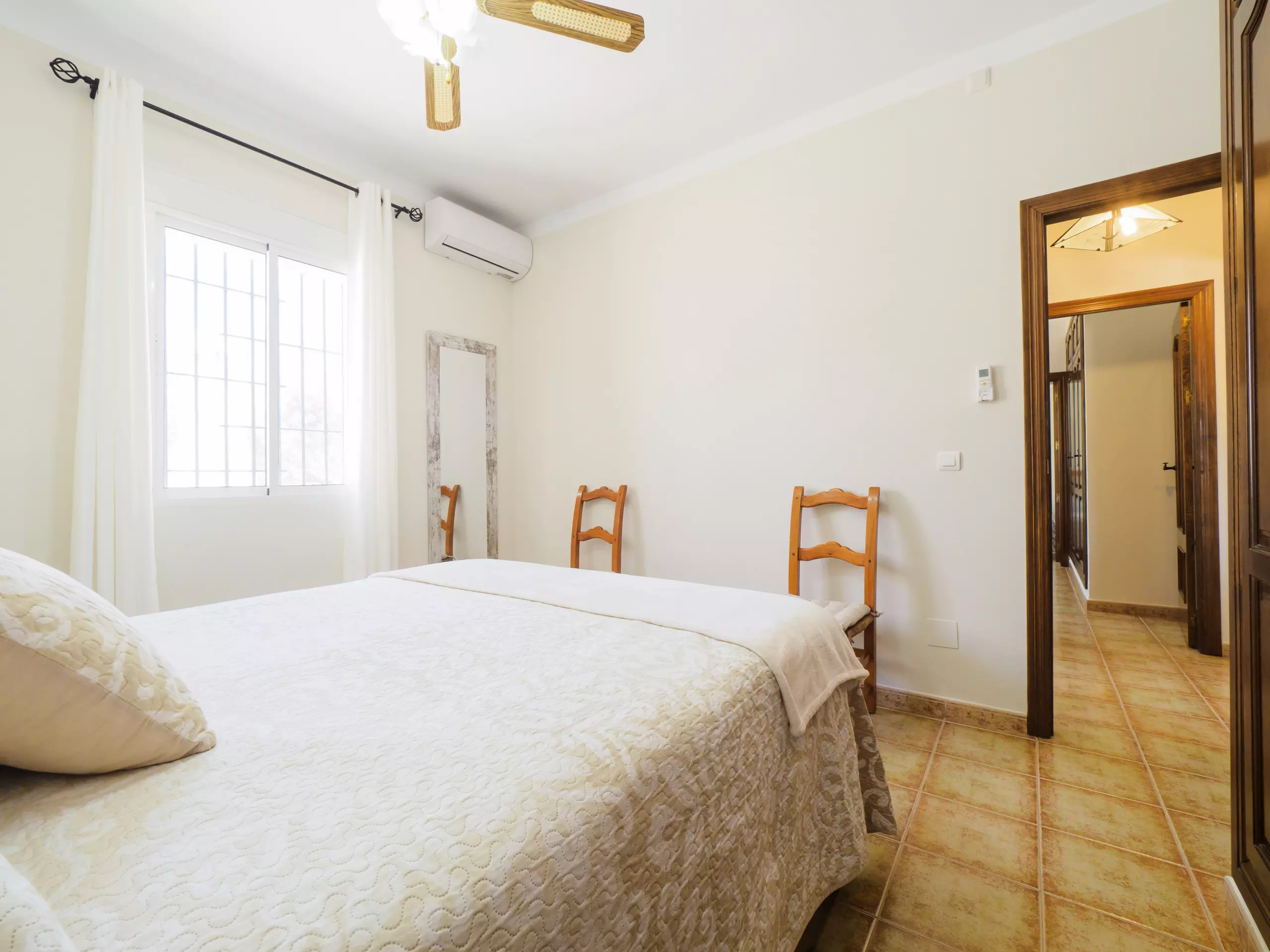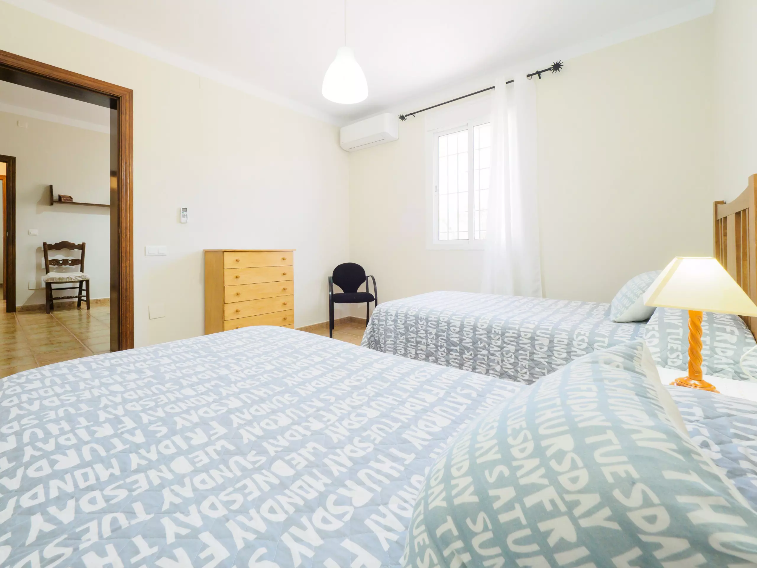 La maison dispose de trois chambres pour jusqu'à 6 personnes : une chambre avec un lit matrimonial de 1,35 cm, et deux chambres avec des lits individuels (3 lits de 1,05 cm et un lit d'appoint de 90 cm). L'une des chambres avec des lits individuels est communicante à travers une autre chambre, donc son accès se fait par cette dernière. Toutes les chambres ont des fenêtres donnant sur l'extérieur et un espace pour ranger les bagages de manière organisée. Entre elles se trouve une salle de bain complète avec baignoire pour plus de confort ??.