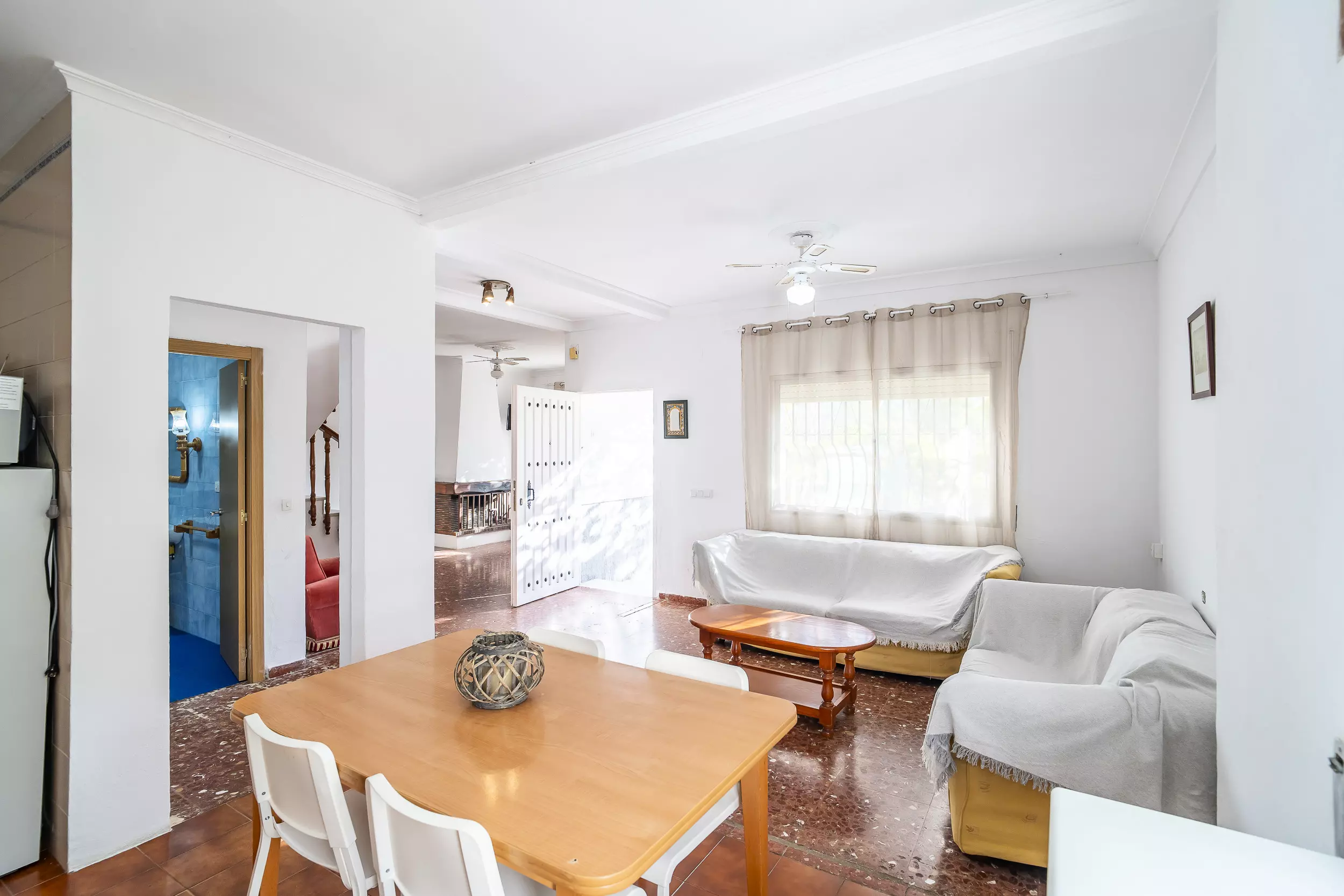 ? 6 ventilateurs de plafond (un par chambre et deux dans le salon). Pas de climatisation.