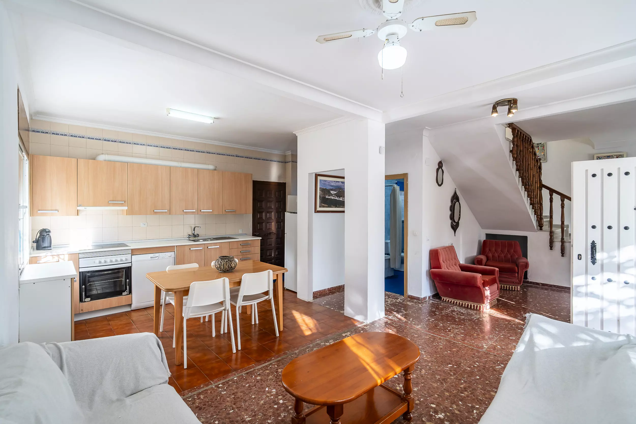 ? Salon-salle à manger confortable et cuisine américaine équipée (cafetière italienne et Dolce Gusto, four, micro-ondes, lave-vaisselle, vaisselle complète).