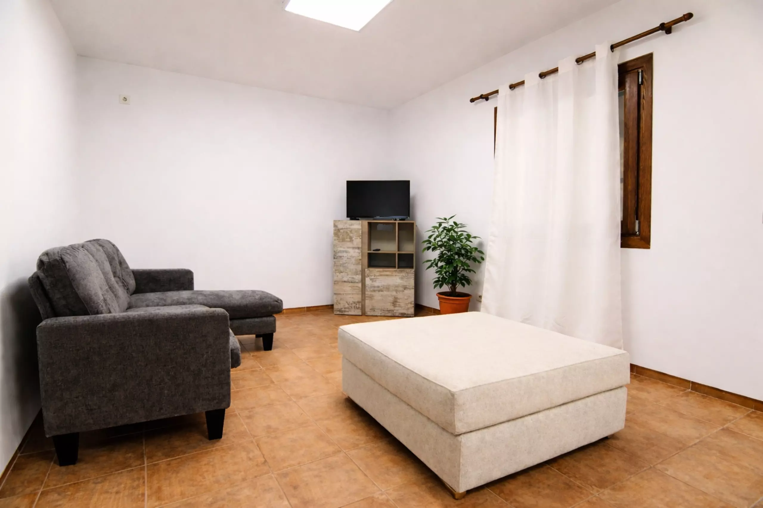 Au premier étage, il y a un autre salon avec canapé et télévision, deux chambres avec deux lits simples chacune et une salle de bain complète avec douche.