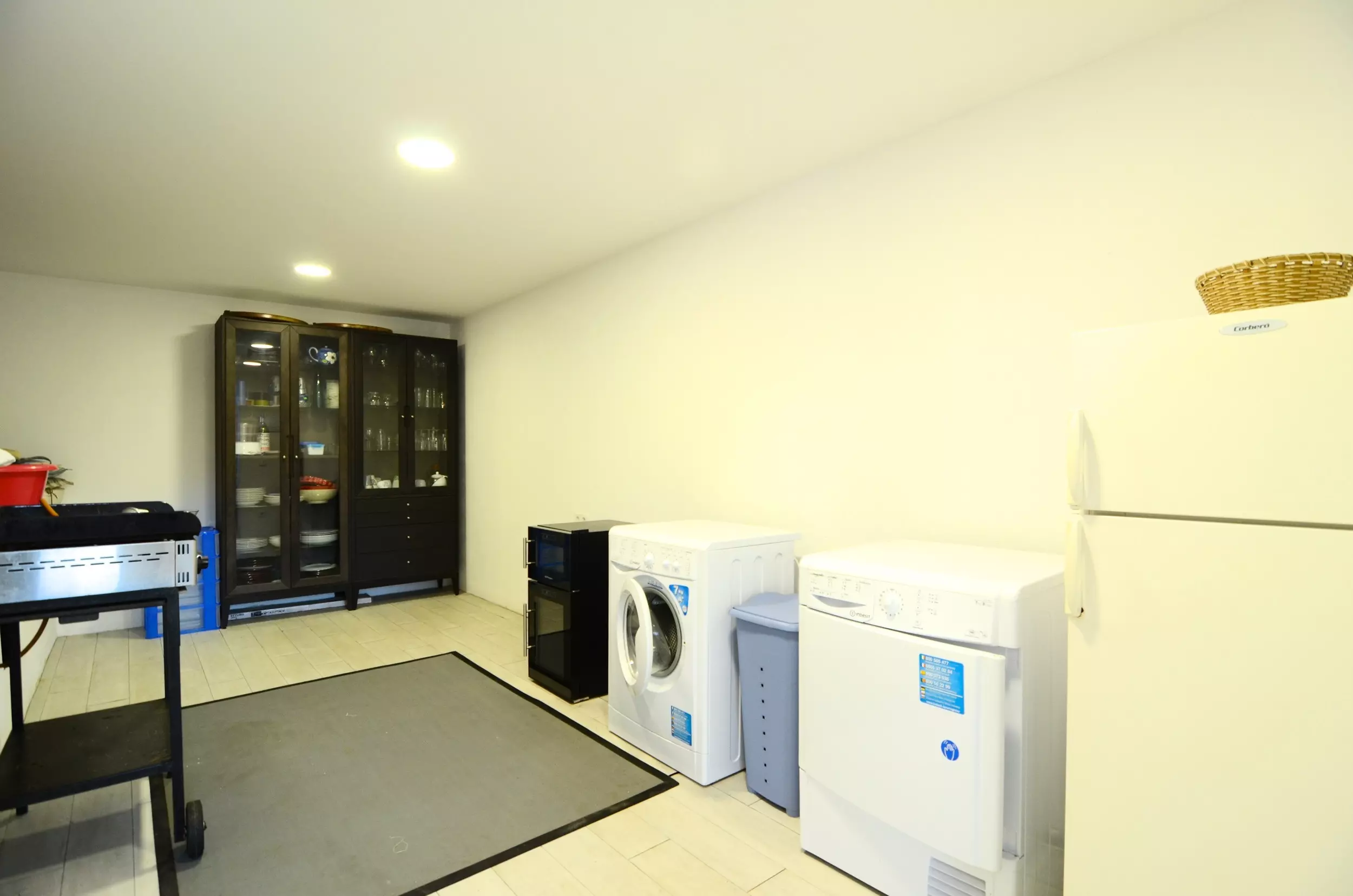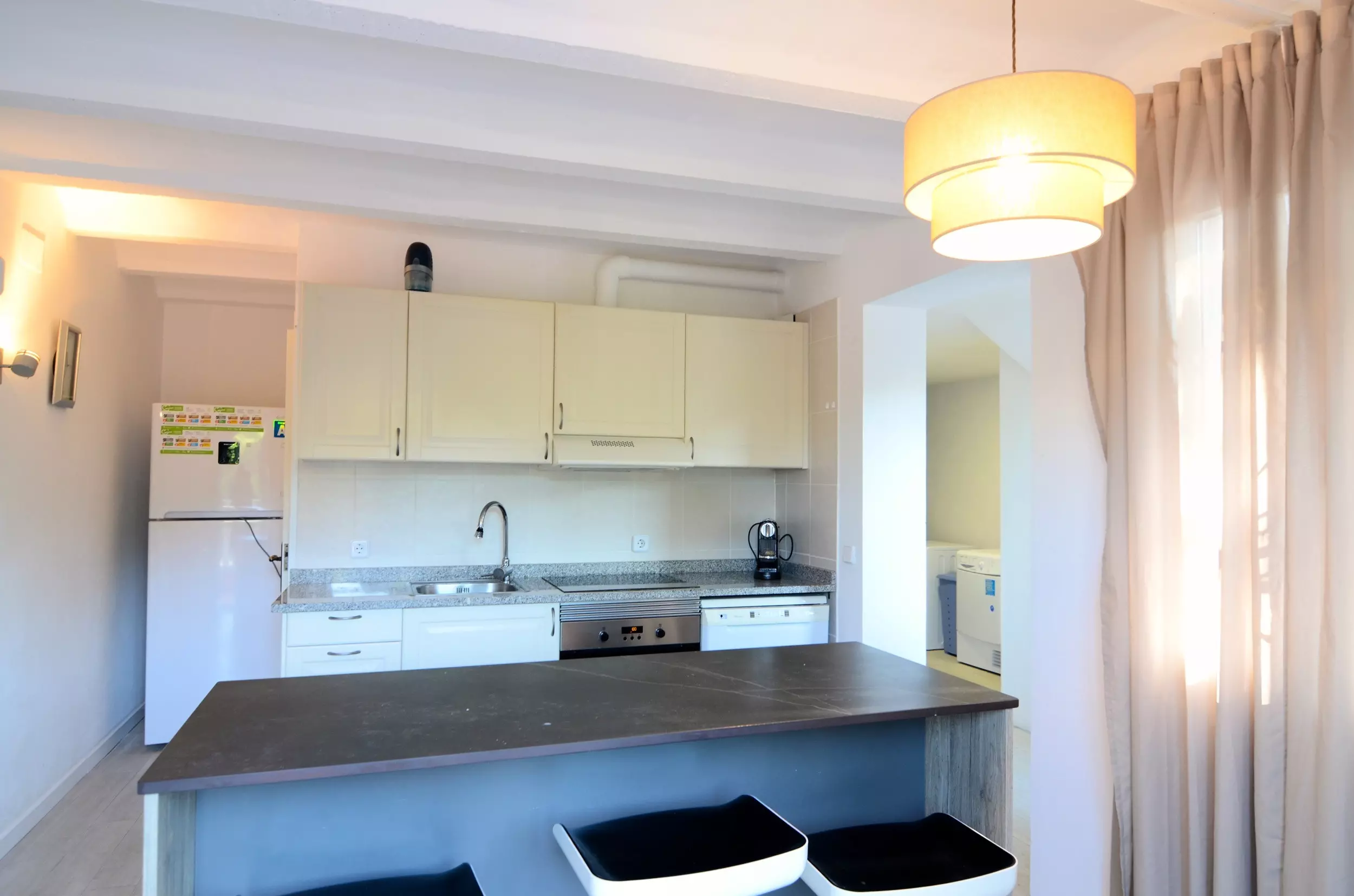 - Rez-de-chaussée avec un appartement complet comprenant cuisine, buanderie, chambre principale et salle de bain.
