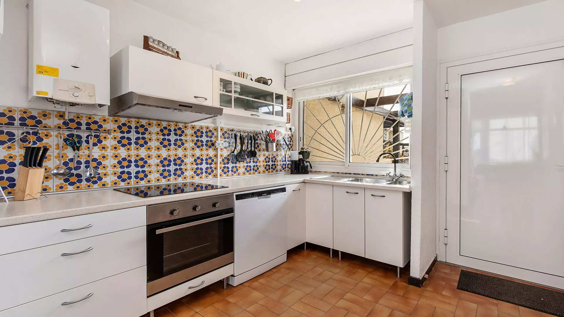 - D'une cuisine équipée : réfrigérateur, four, micro-ondes, bouilloire, cafetière, friteuse, lave-vaisselle, vaisselle, couverts et ustensiles de cuisine;