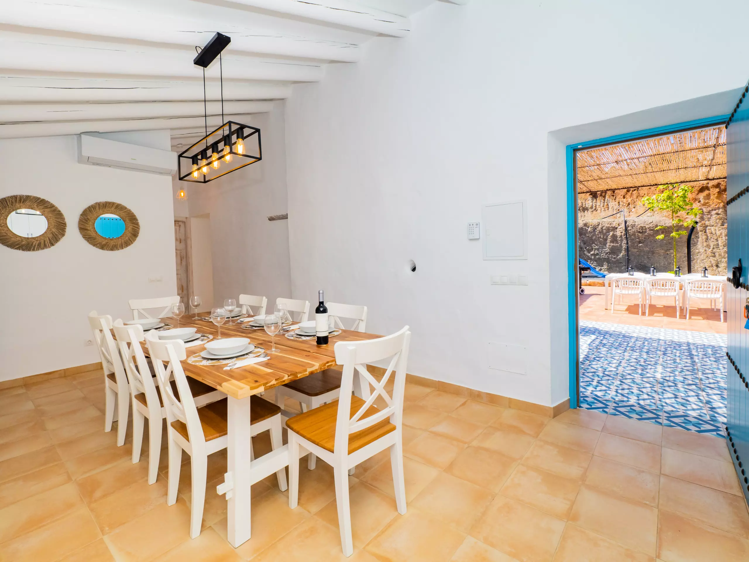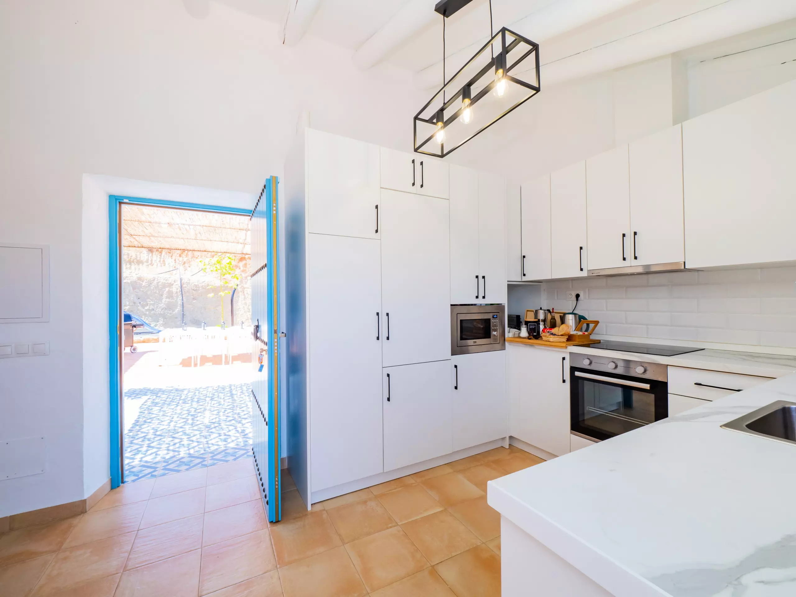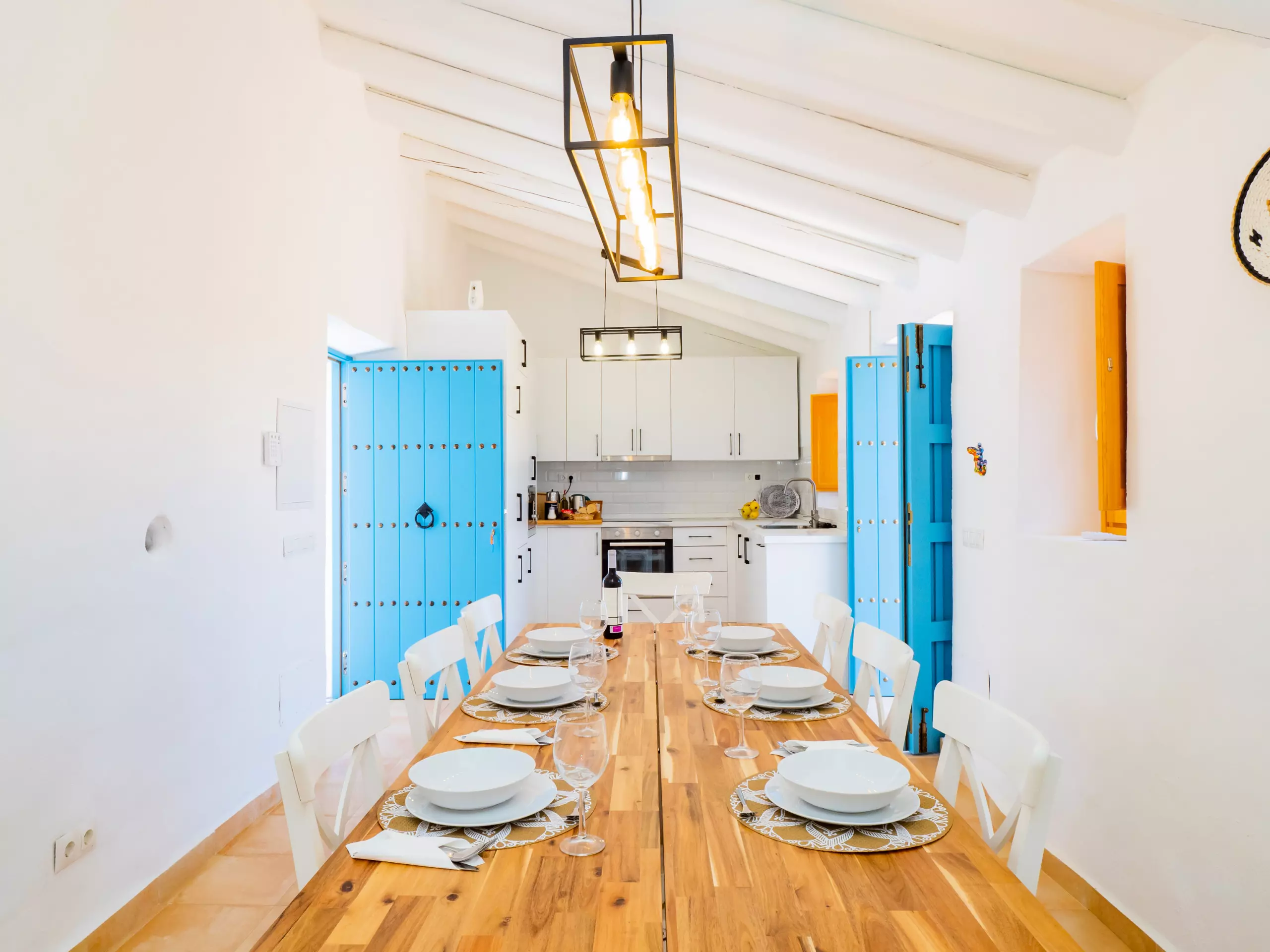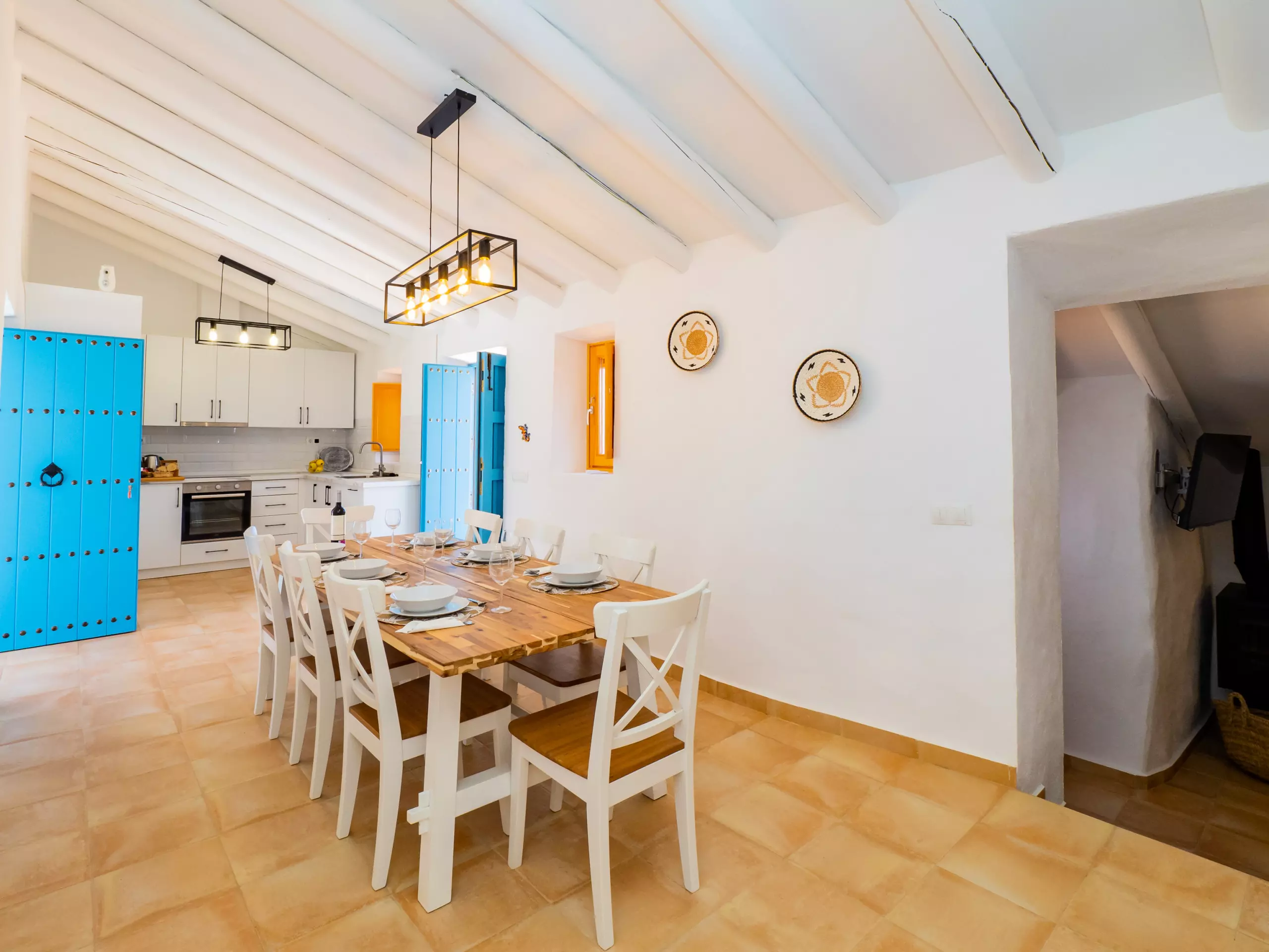 L'intérieur offre un salon indépendant avec cheminée et Smart TV, parfait pour les moments en famille, et une cuisine américaine entièrement équipée avec des appareils électroménagers de dernière génération, qui se connecte à la salle à manger et à l'extérieur. De plus, il dispose d'un barbecue à gaz pour profiter de repas en plein air sous la terrasse ou près du grand eucalyptus.