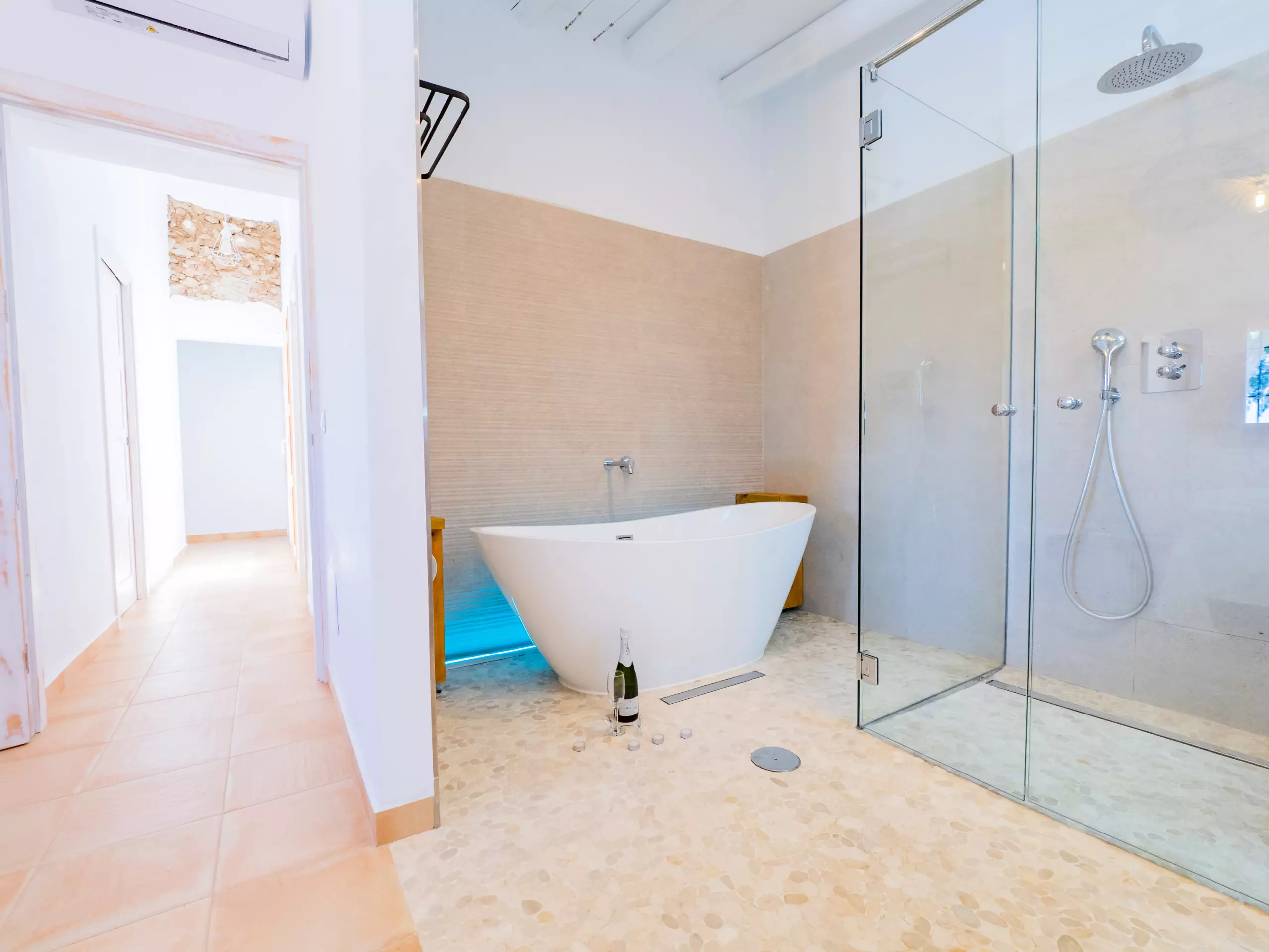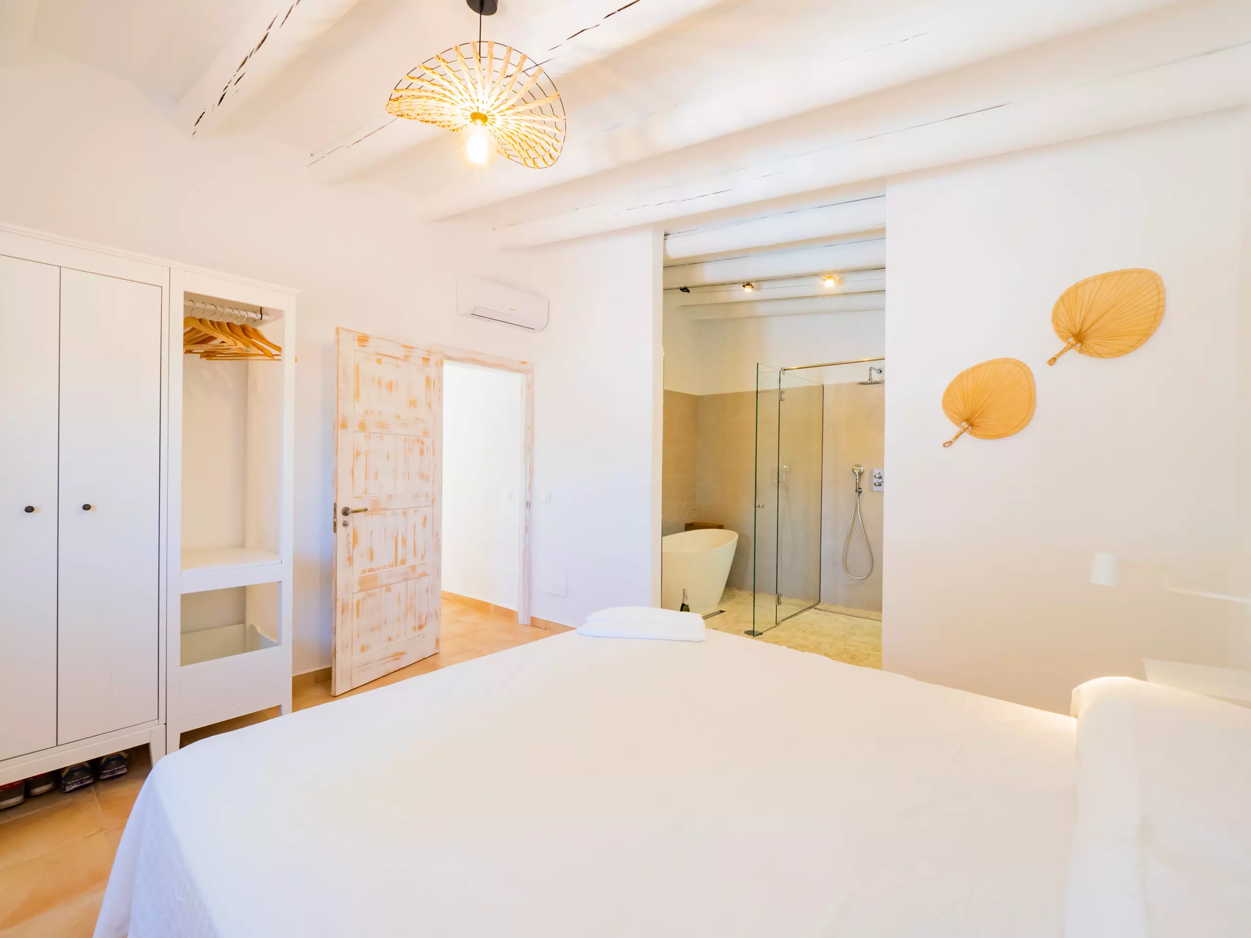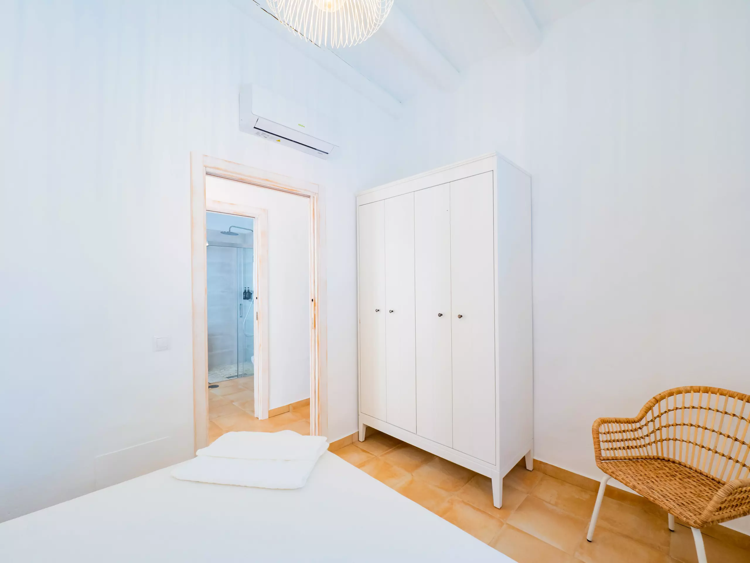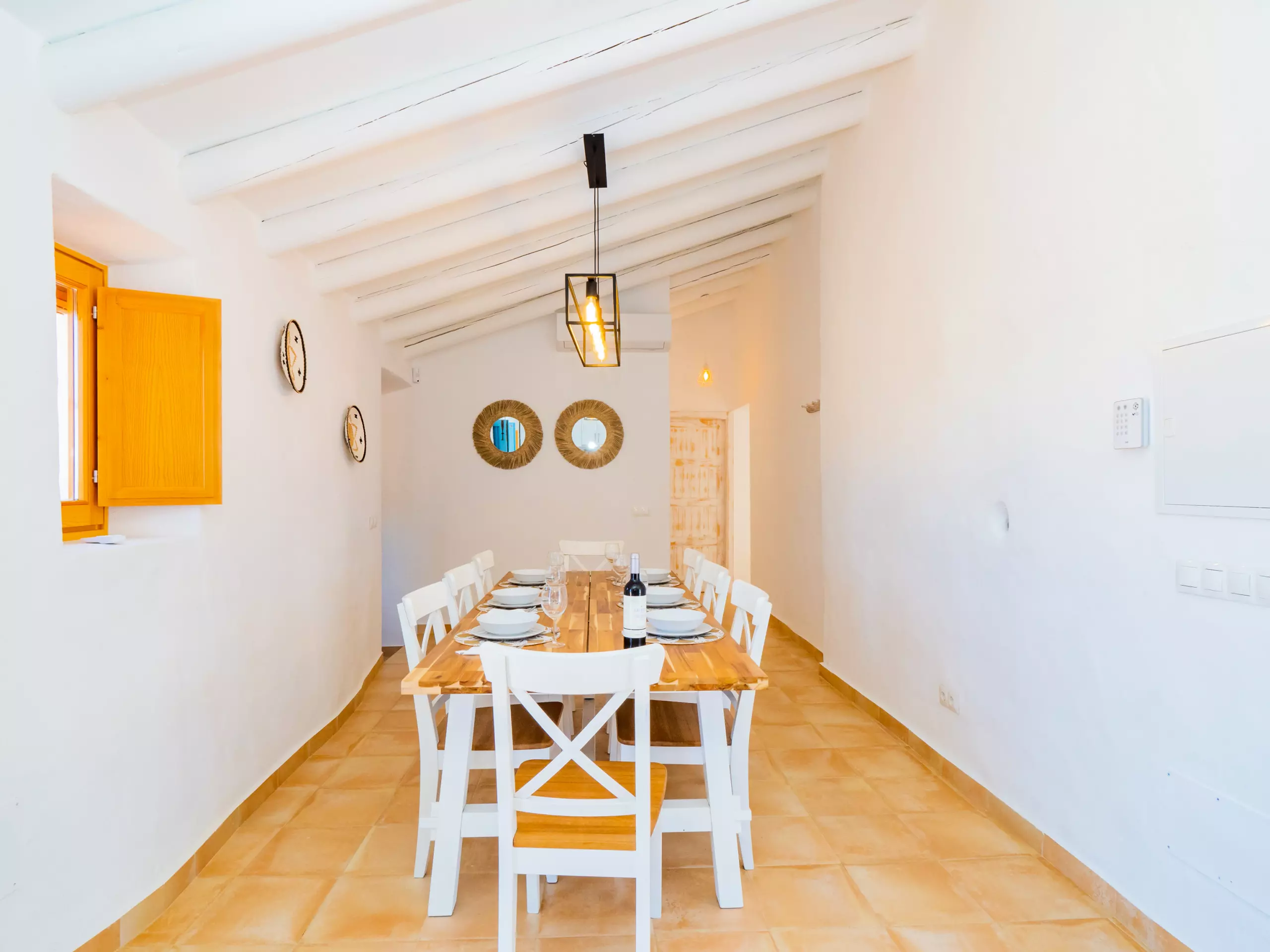 L'intérieur offre un salon indépendant avec cheminée et Smart TV, parfait pour les moments en famille, et une cuisine américaine entièrement équipée avec des appareils électroménagers de dernière génération, qui se connecte à la salle à manger et à l'extérieur. De plus, il dispose d'un barbecue à gaz pour profiter de repas en plein air sous la terrasse ou près du grand eucalyptus.