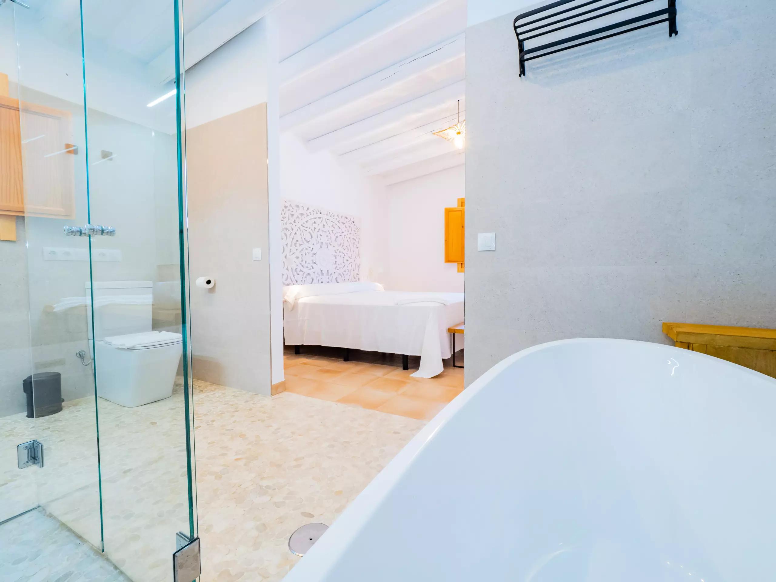 Ce logement à Cártama est idéal pour les familles qui recherchent du confort et du divertissement dans un environnement rural avec des vues impressionnantes sur la montagne. Avec 140 m², il dispose de trois chambres spacieuses et bien équipées pour jusqu'à 8 personnes, avec la climatisation dans toutes les chambres et une ambiance lumineuse de style rustique et moderne. La chambre principale se distingue avec un lit Queen size, une salle de bain attenante avec une baignoire ovale et une douche spacieuse pour un séjour relaxant.