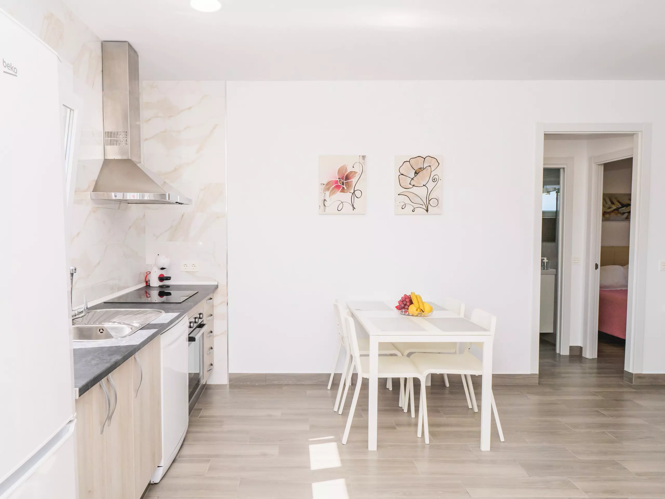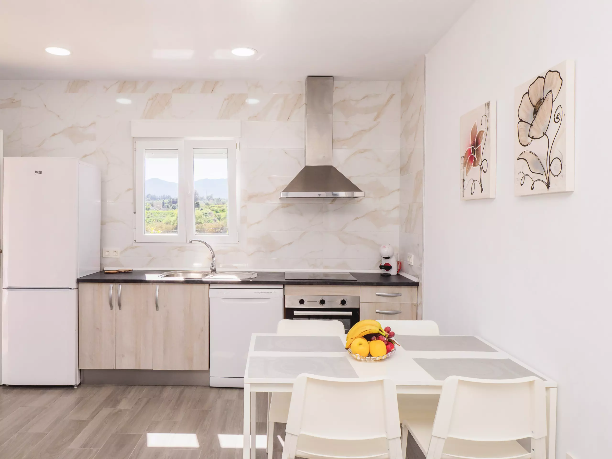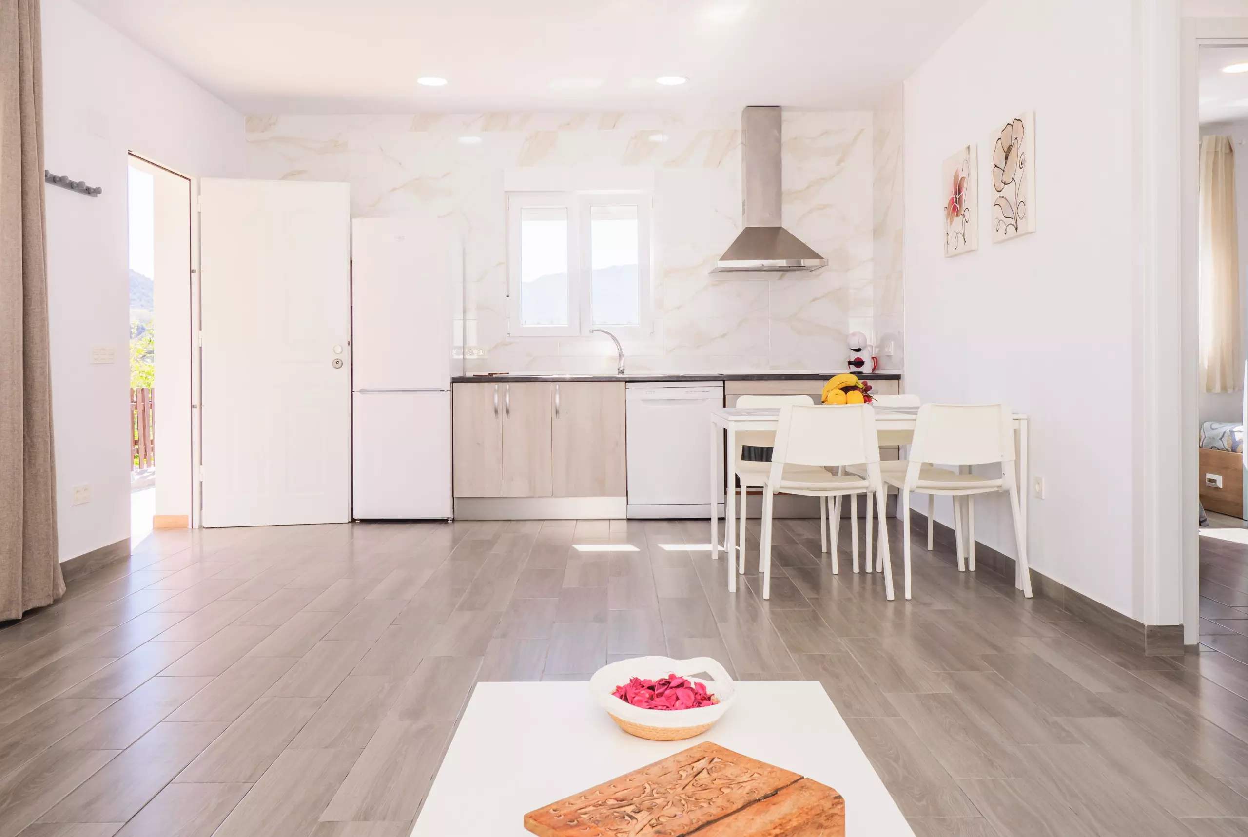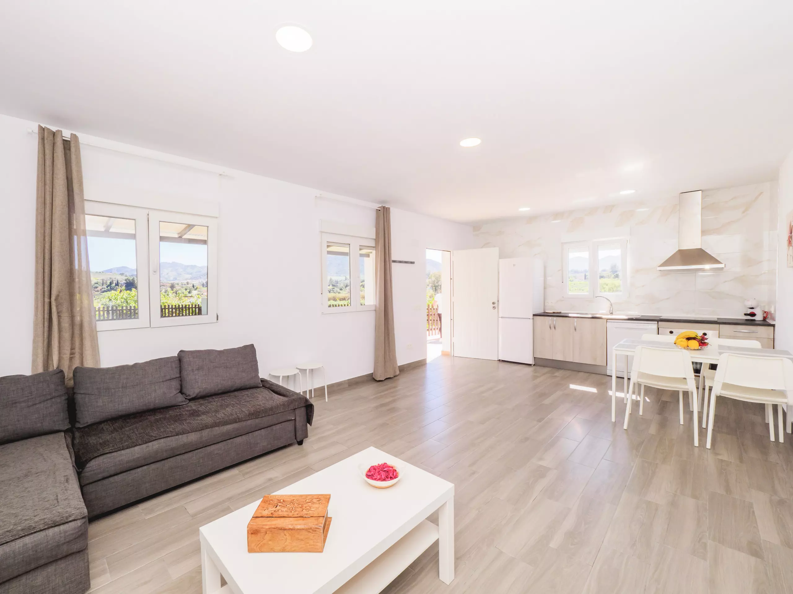 À l'intérieur, le logement se distingue par sa luminosité et son confort. Un grand salon-salle à manger avec une cuisine américaine équipée de vitrocéramique, réfrigérateur, micro-ondes, four, congélateur, lave-linge, cafetière, grille-pain, presse-agrumes et tous les ustensiles nécessaires, facilite un séjour pratique et agréable. Le canapé-lit dans le salon élargit la capacité pour une sixième personne et la connexion wifi ainsi que la télévision vous permettront de profiter de vos séries et films préférés ??.