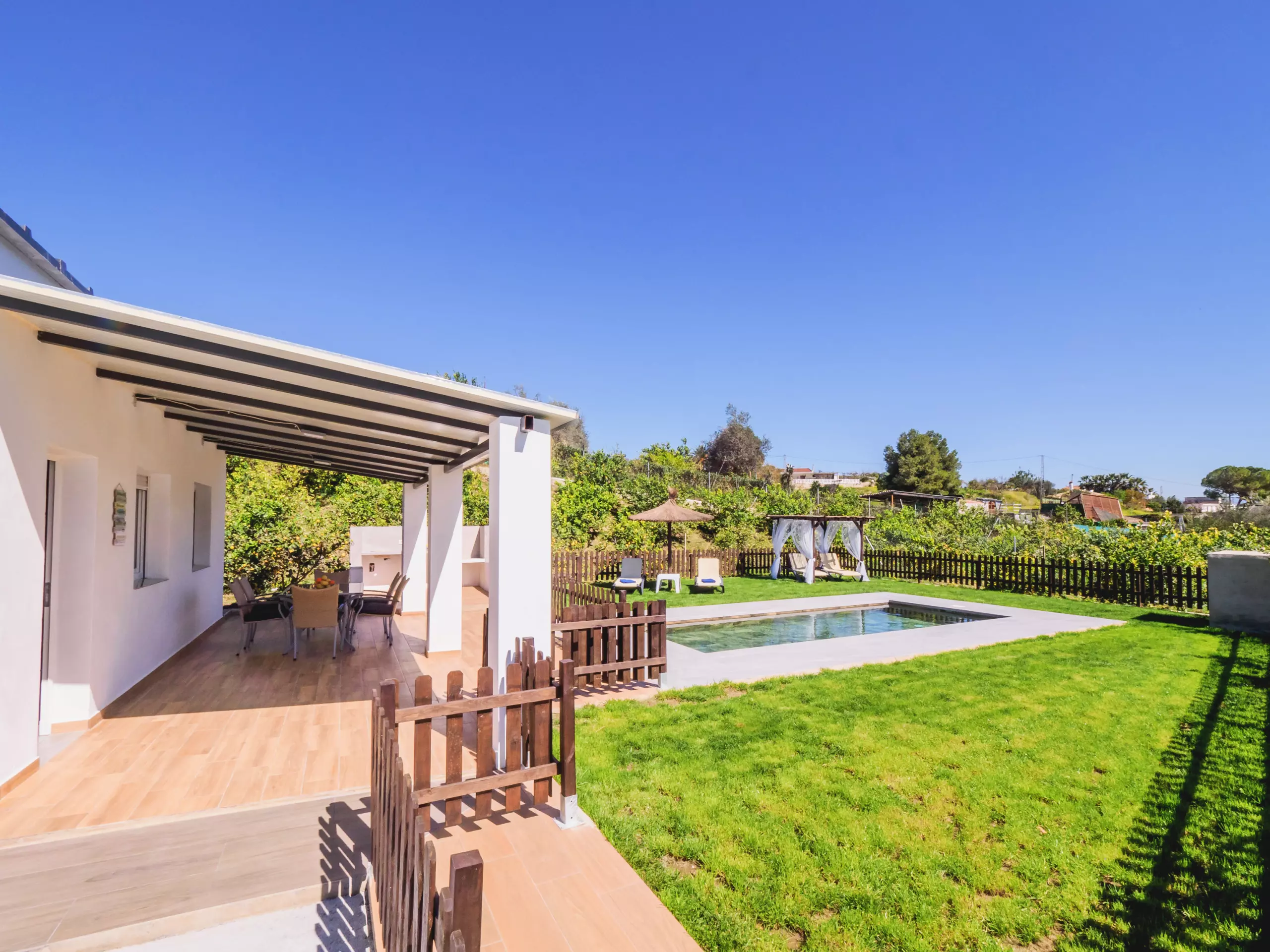 Découvrez ce logement moderne et accueillant dans un environnement rural idéal pour les familles et les groupes jusqu'à 6 personnes. La maison, d'une superficie de 90 m² de construction récente, offre des vues spectaculaires sur la montagne et une ambiance de paix et de tranquillité qui invite à se déconnecter. Sa parcelle entièrement clôturée comprend une piscine privée sécurisée pour les enfants, parfaite pour se rafraîchir et profiter du soleil de Malaga en toute sécurité ????. De plus, le jardin avec gazon naturel et une large terrasse extérieure sont le cadre parfait pour se détendre ou partager des moments en famille.
