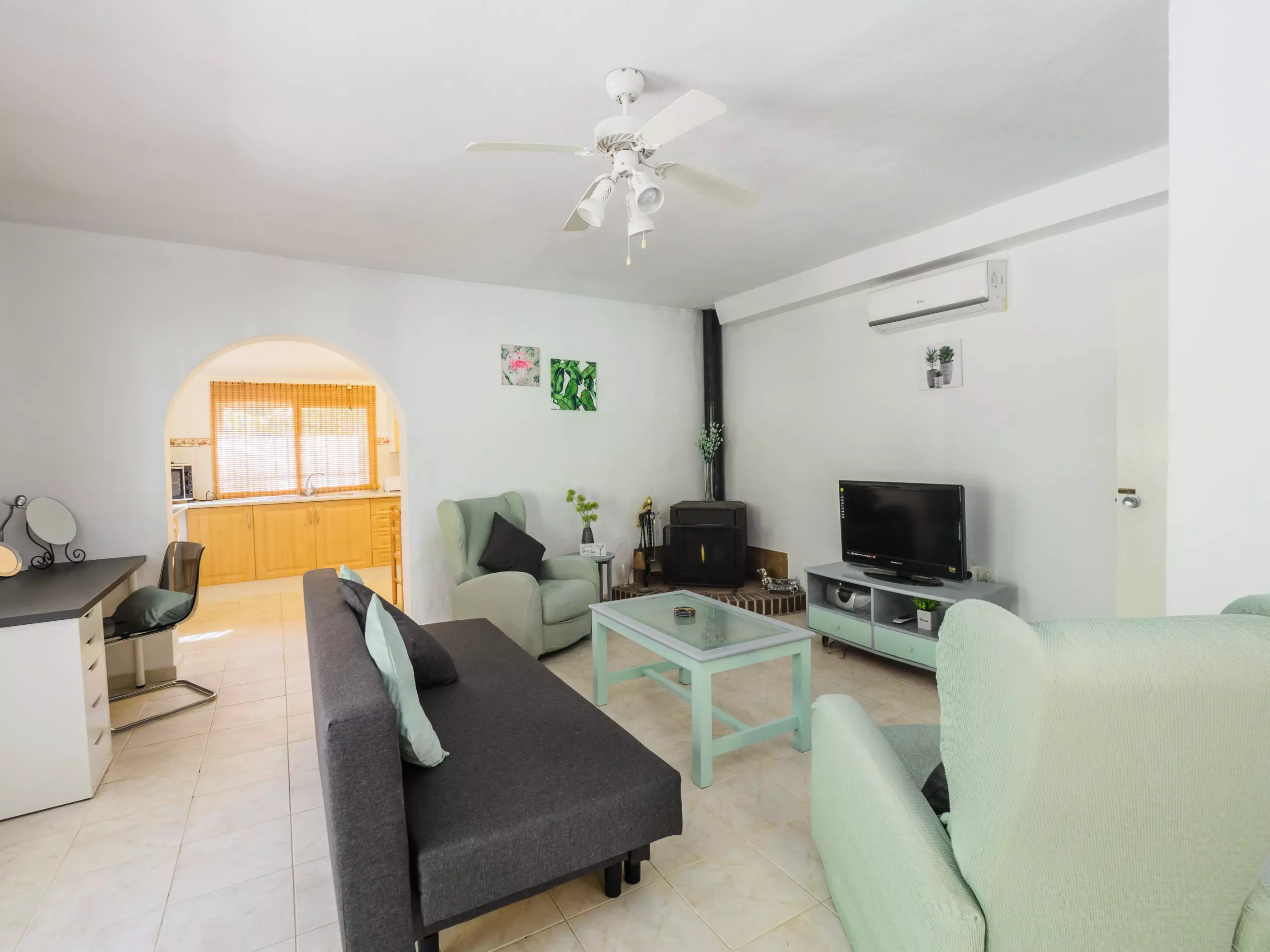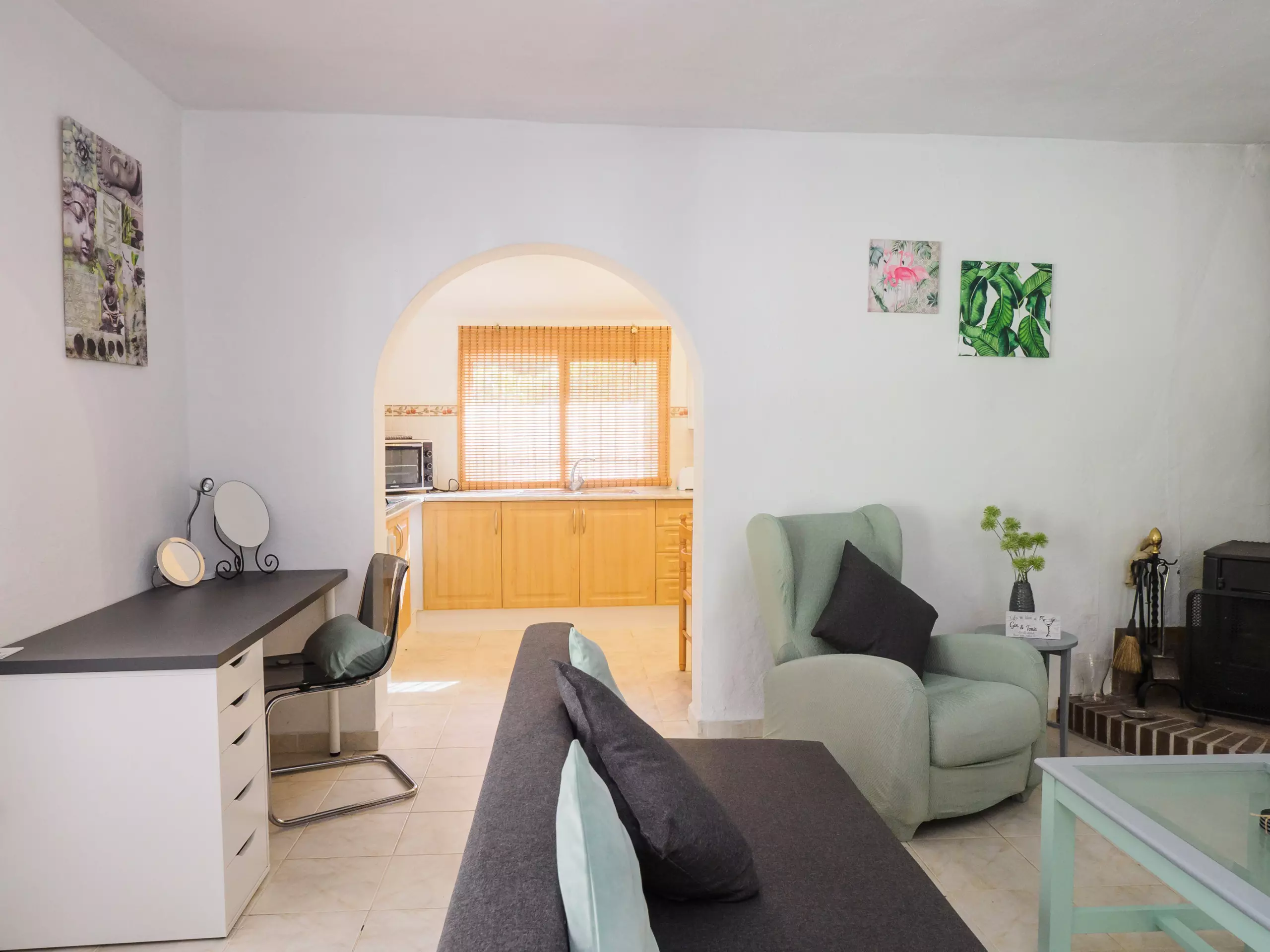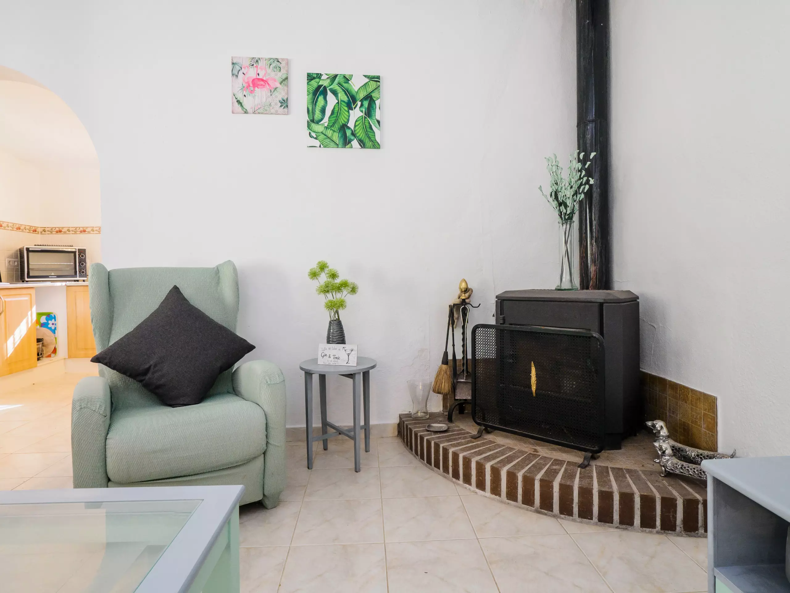 L'intérieur est conçu pour votre confort, avec une cuisine américaine au gaz entièrement équipée (réfrigérateur, micro-ondes, four, congélateur, machine à laver, lave-vaisselle, cafetière et plus) où préparer de délicieux déjeuners. Le salon-salle à manger, spacieux et lumineux, dispose d'une cheminée, d'une télévision et d'un canapé-lit, idéal pour les moments en famille.
