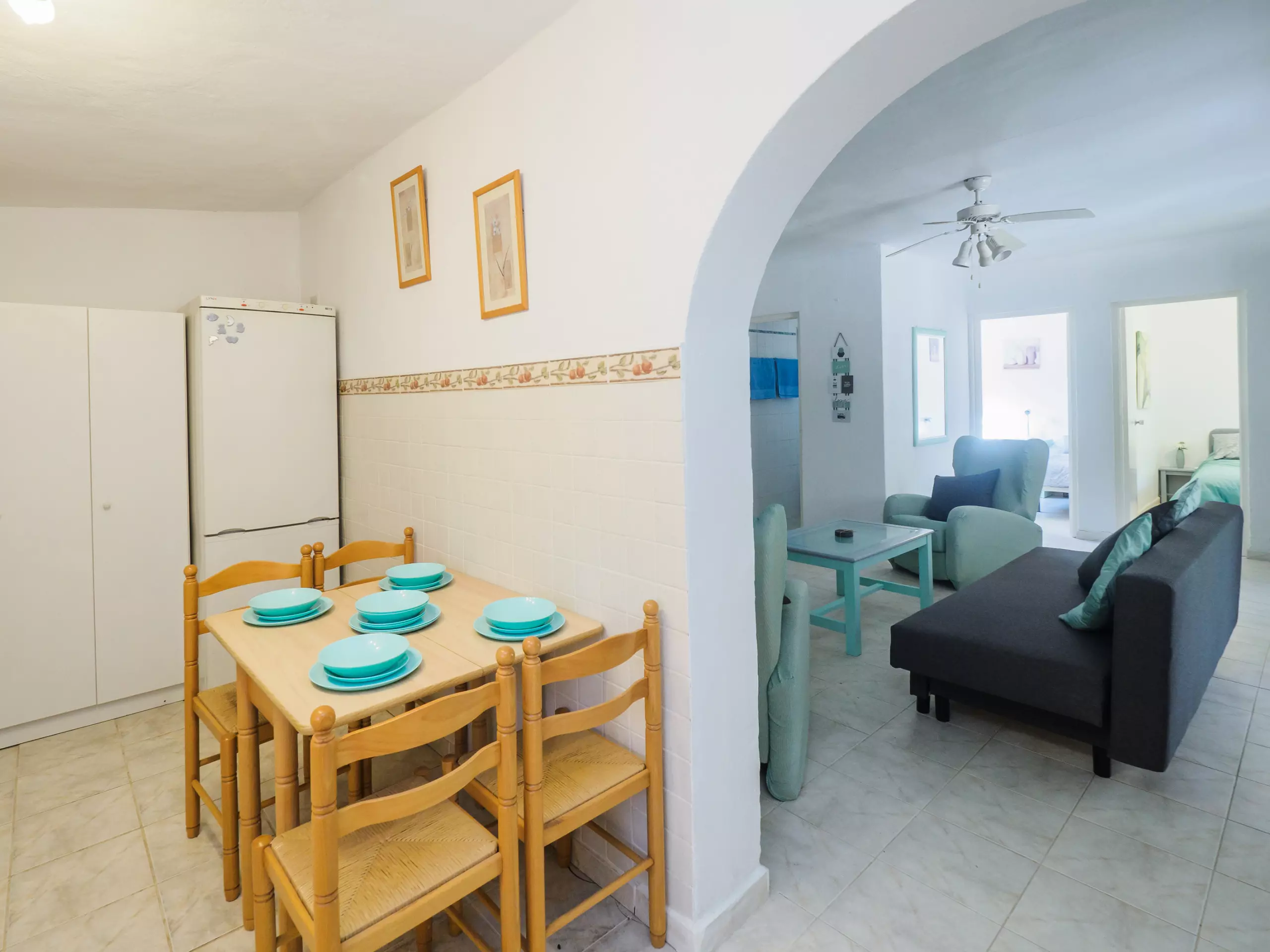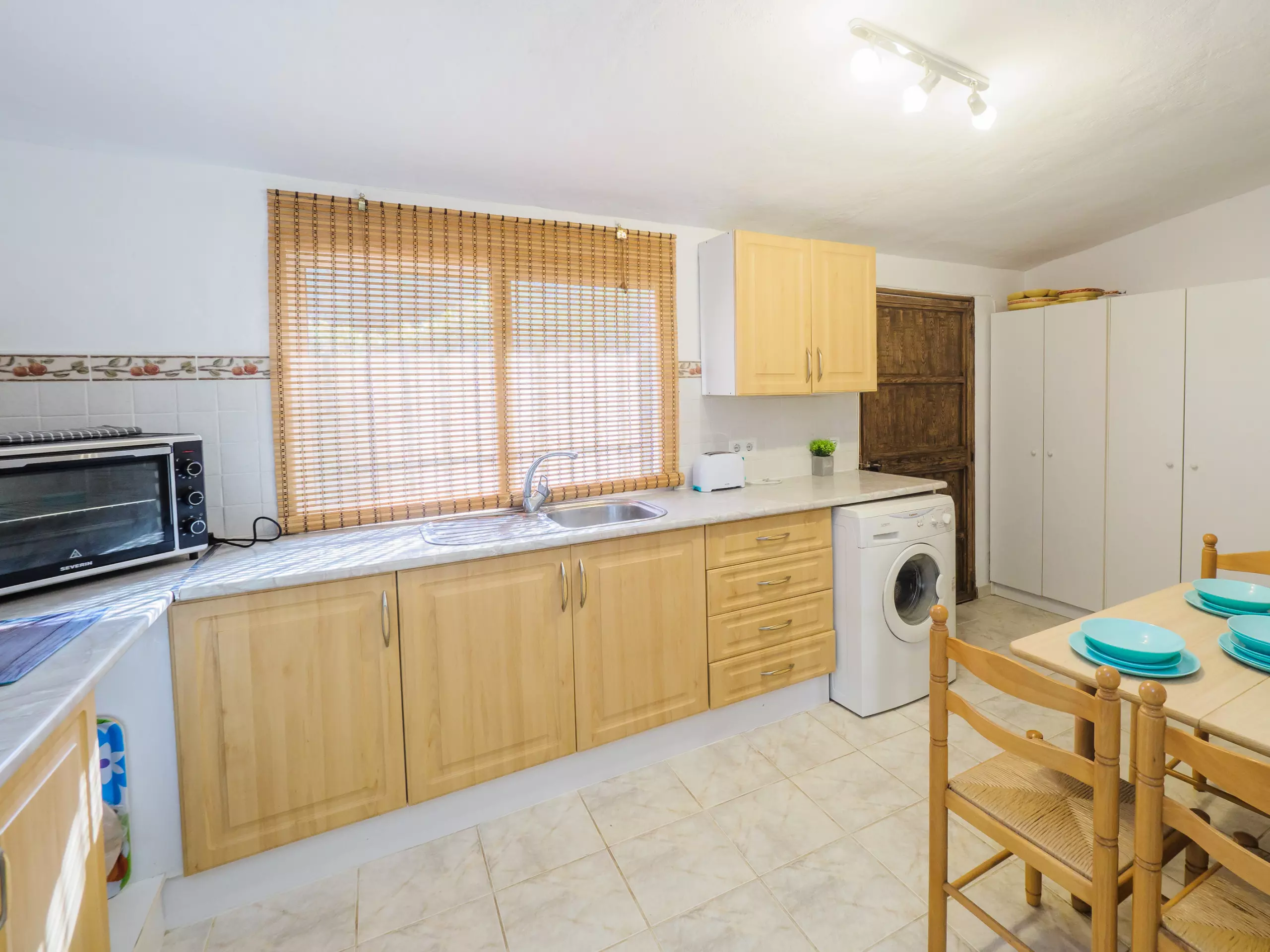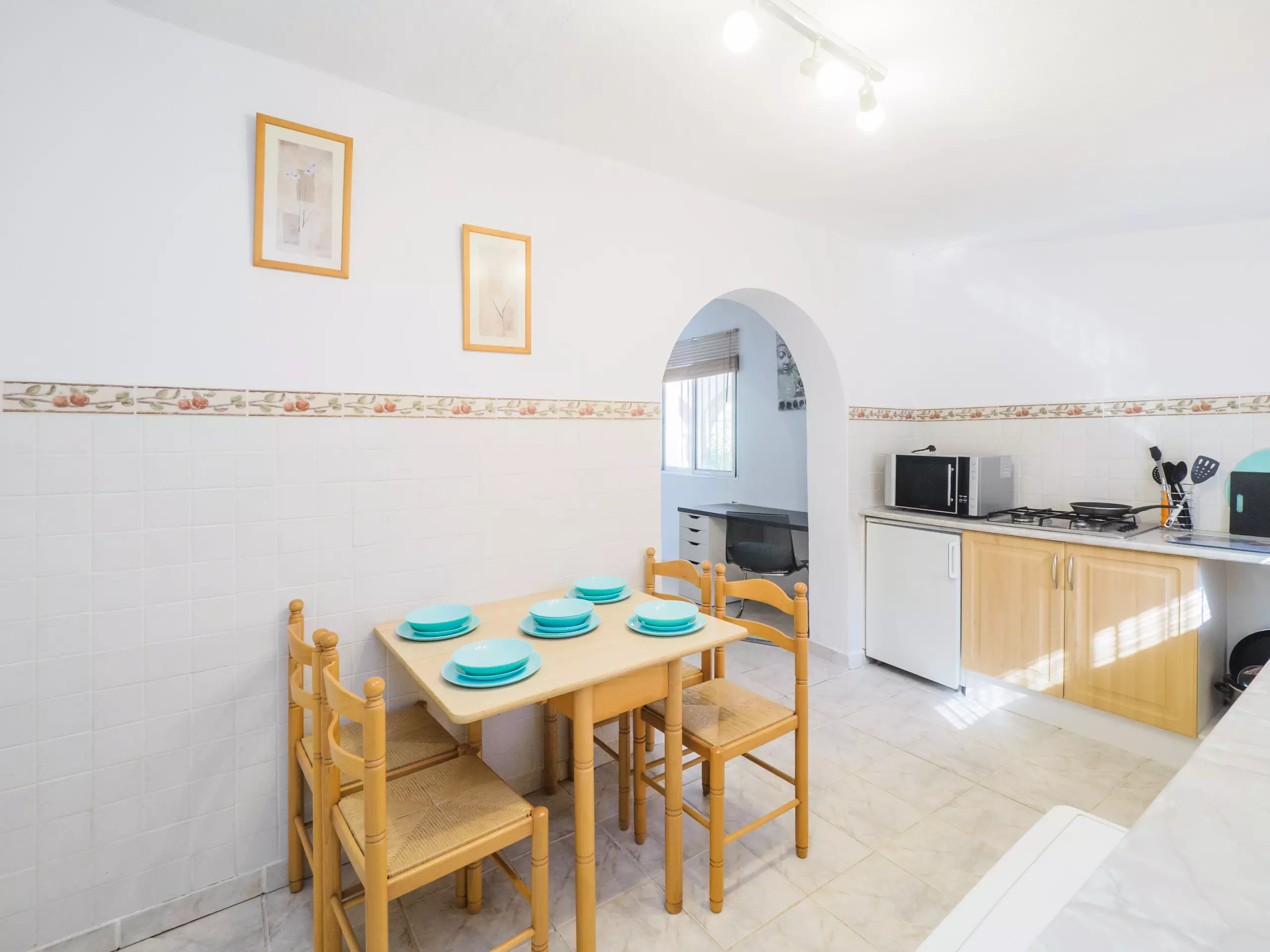 L'intérieur est conçu pour votre confort, avec une cuisine américaine au gaz entièrement équipée (réfrigérateur, micro-ondes, four, congélateur, machine à laver, lave-vaisselle, cafetière et plus) où préparer de délicieux déjeuners. Le salon-salle à manger, spacieux et lumineux, dispose d'une cheminée, d'une télévision et d'un canapé-lit, idéal pour les moments en famille.