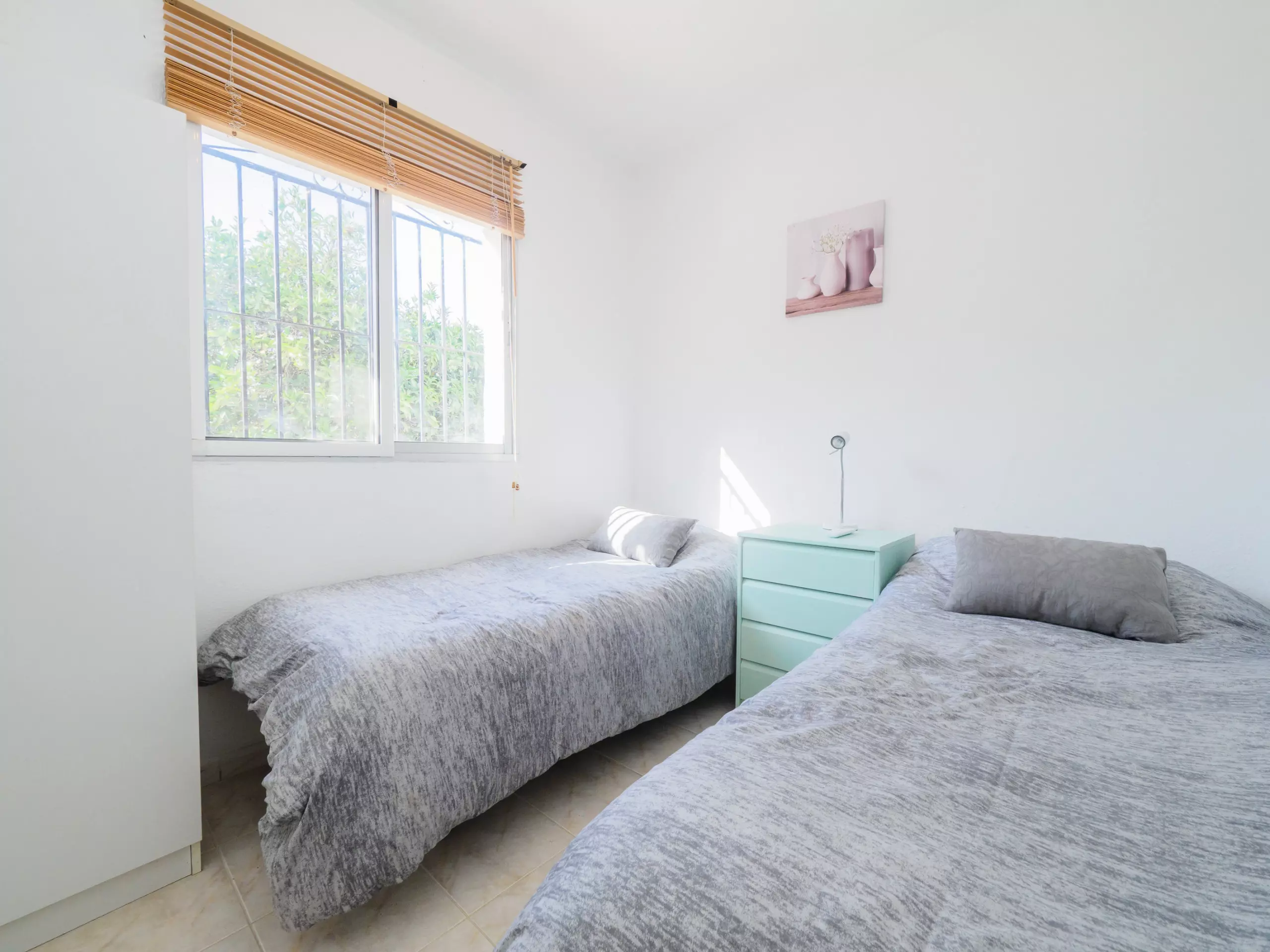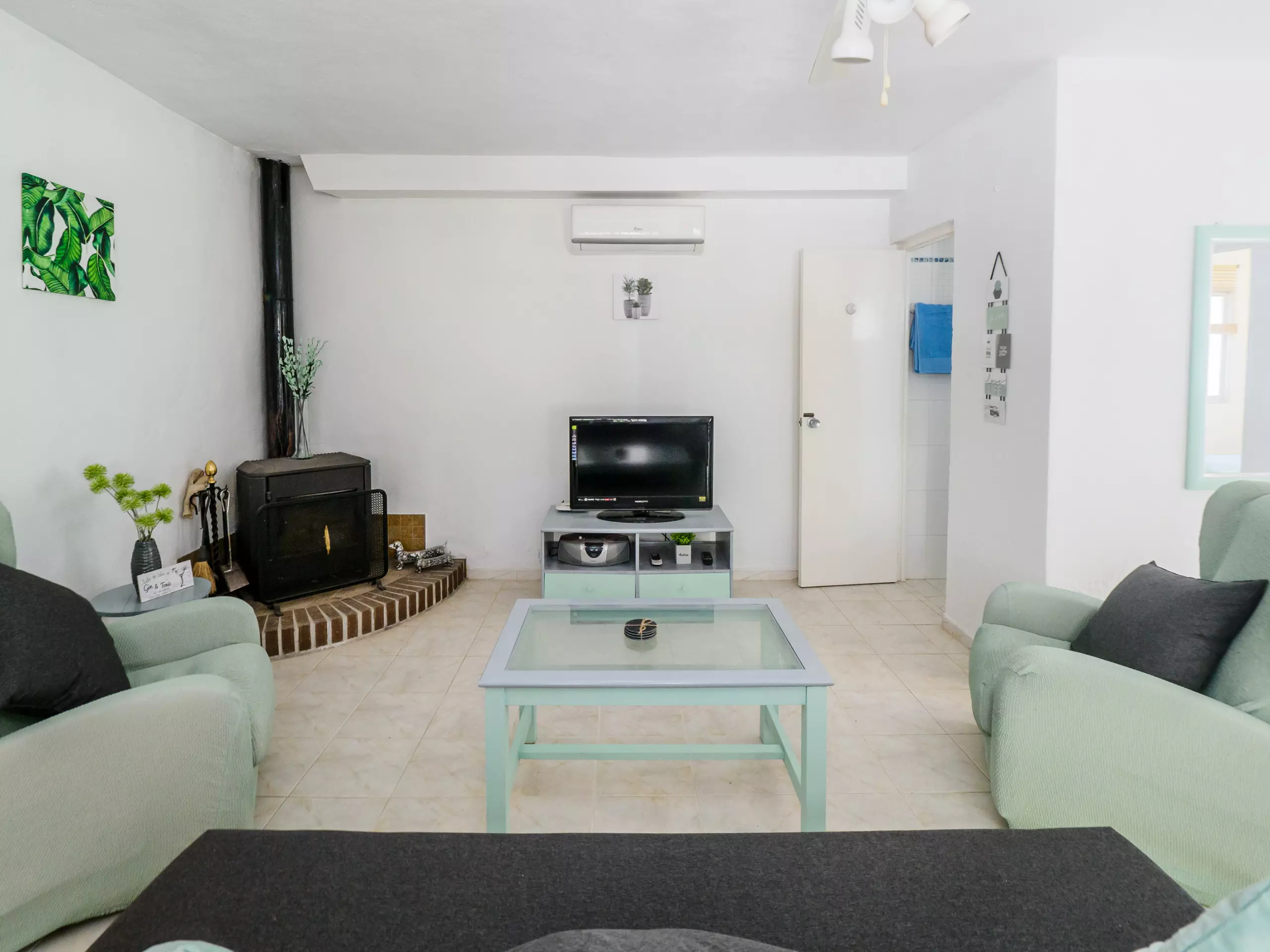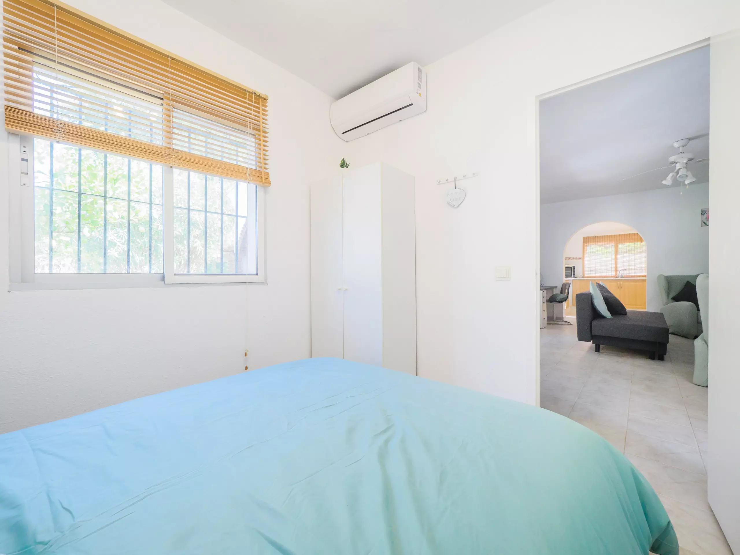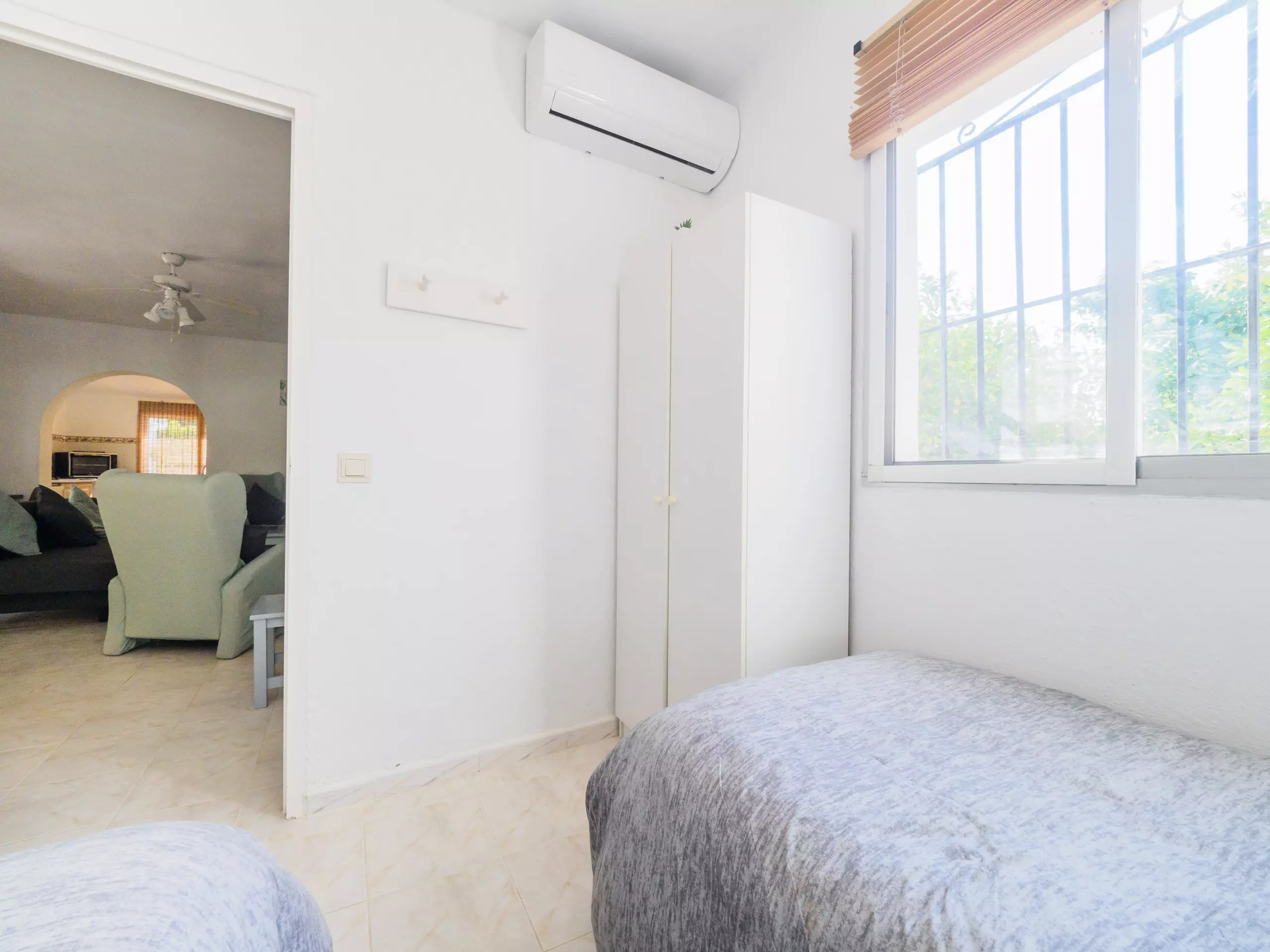 Reposez paisiblement dans les deux chambres climatisées avec air conditionné : l'une avec un lit de matrimoniale et l'autre avec deux lits individuels. De plus, il y a une salle de bain équipée d'une douche et d'un chauffage par pompe à chaleur pour votre confort à toute époque de l'année.