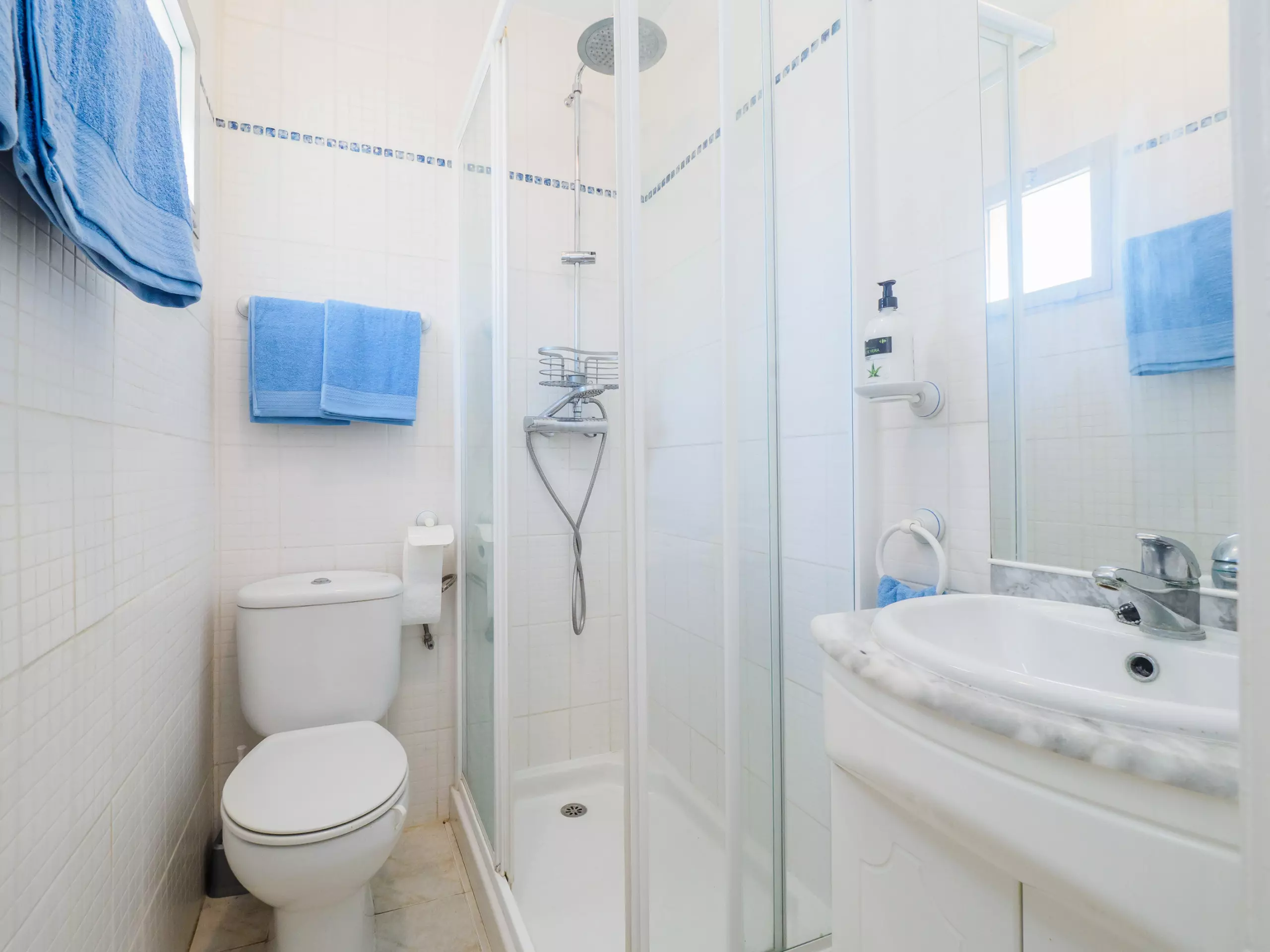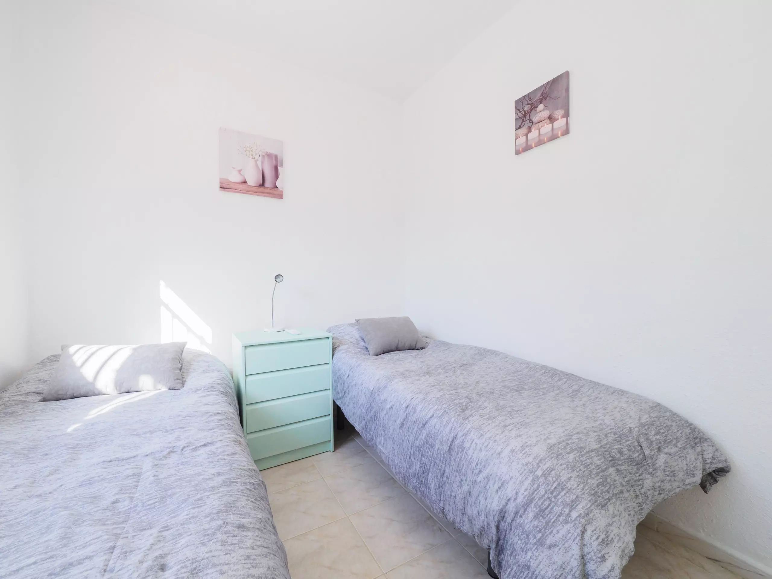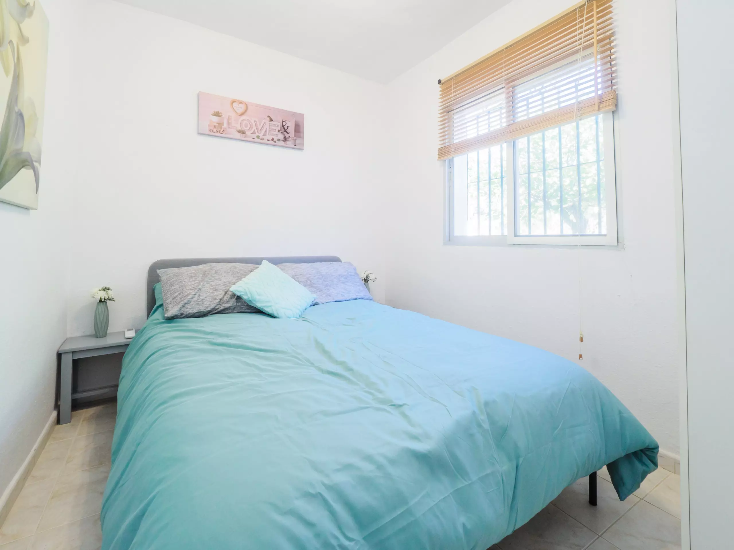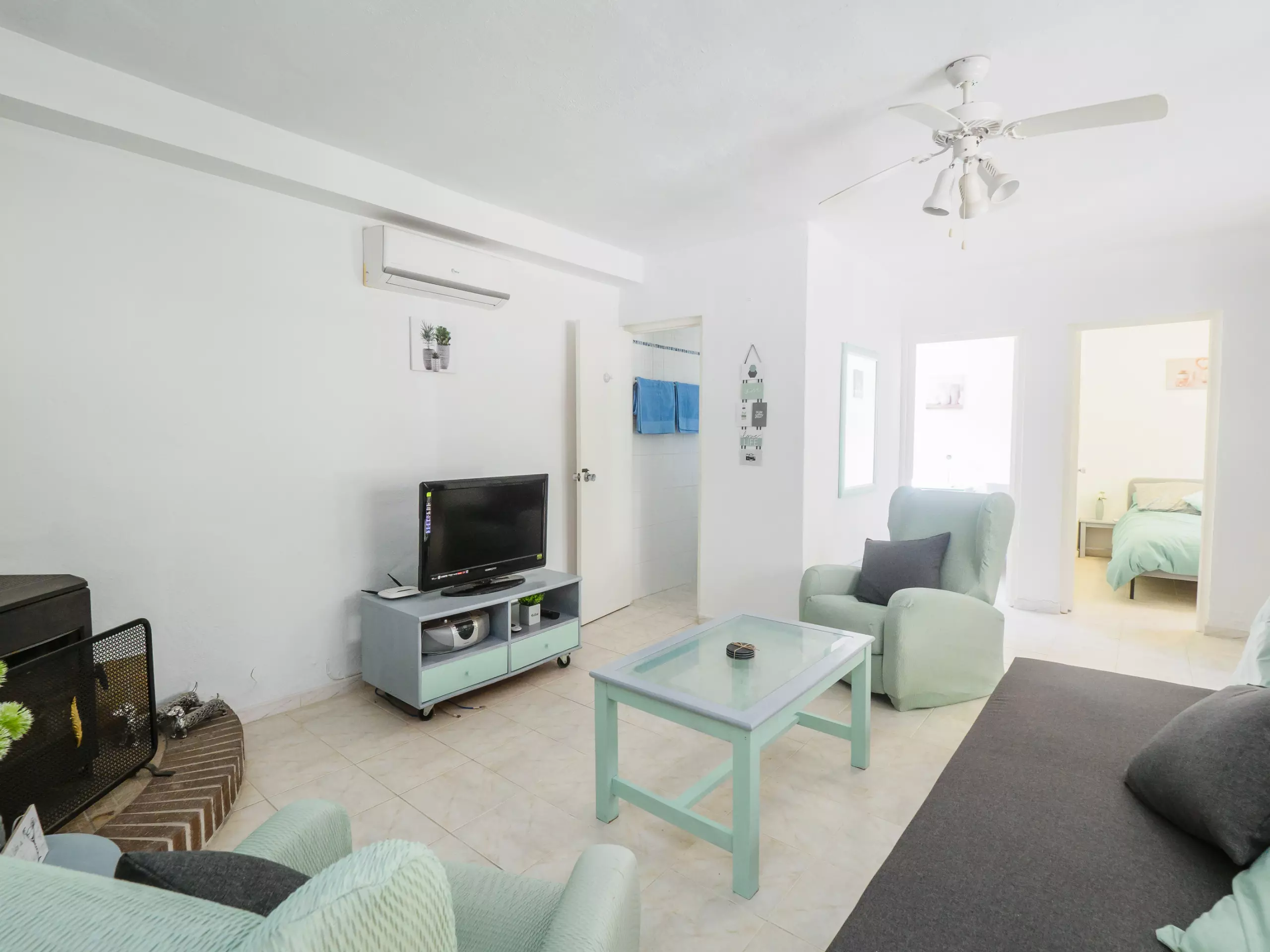 Reposez paisiblement dans les deux chambres climatisées avec air conditionné : l'une avec un lit de matrimoniale et l'autre avec deux lits individuels. De plus, il y a une salle de bain équipée d'une douche et d'un chauffage par pompe à chaleur pour votre confort à toute époque de l'année.
