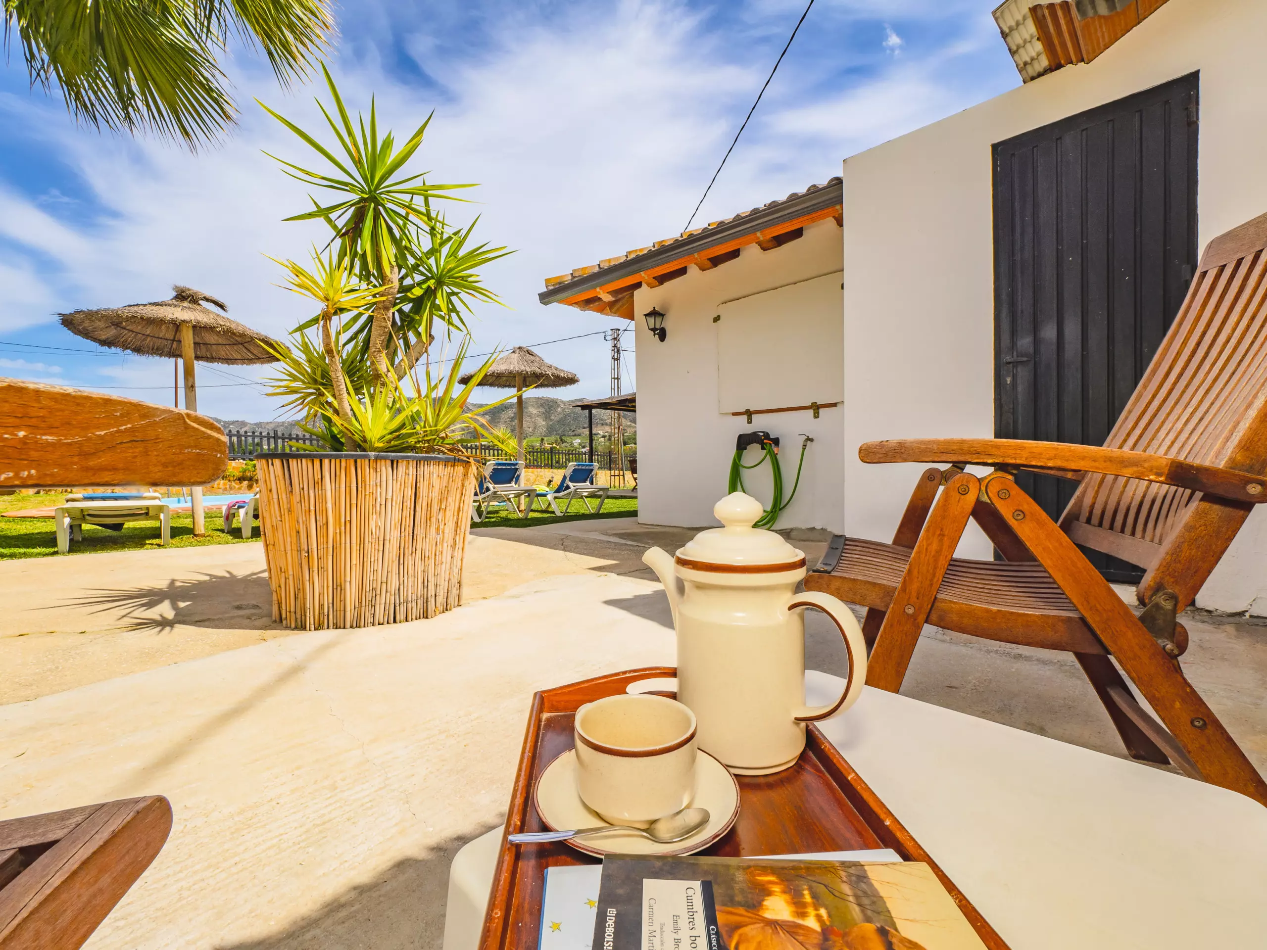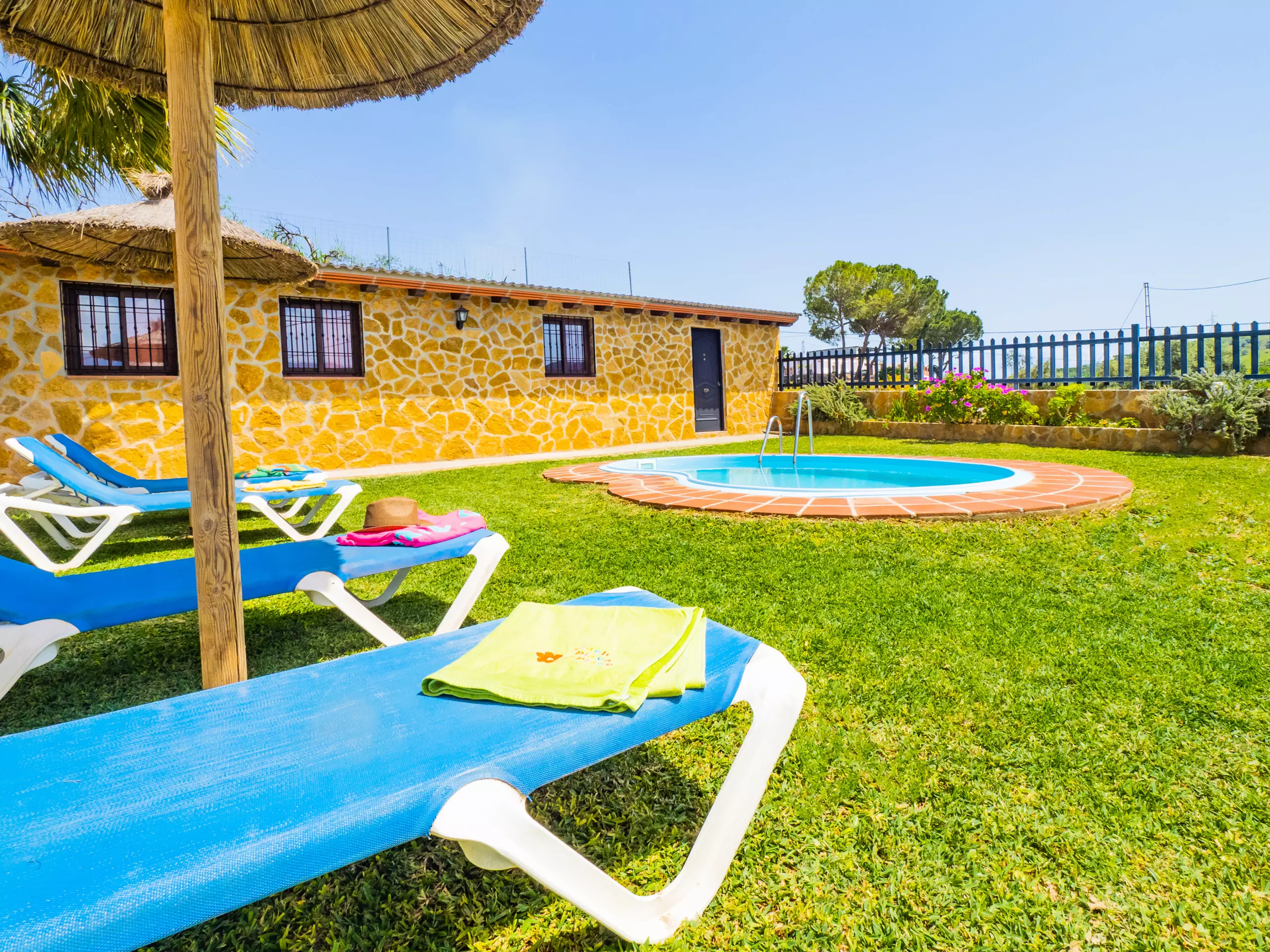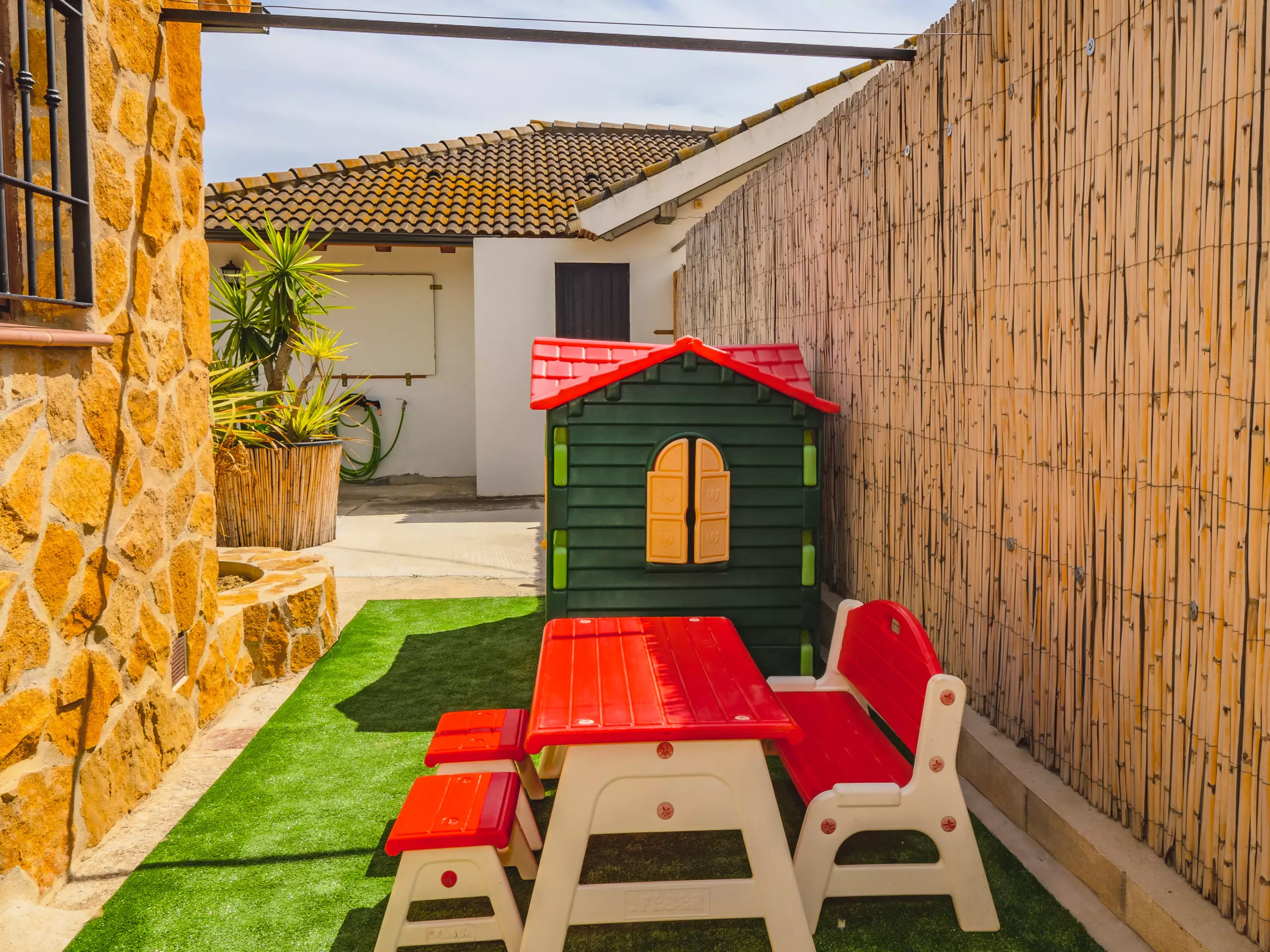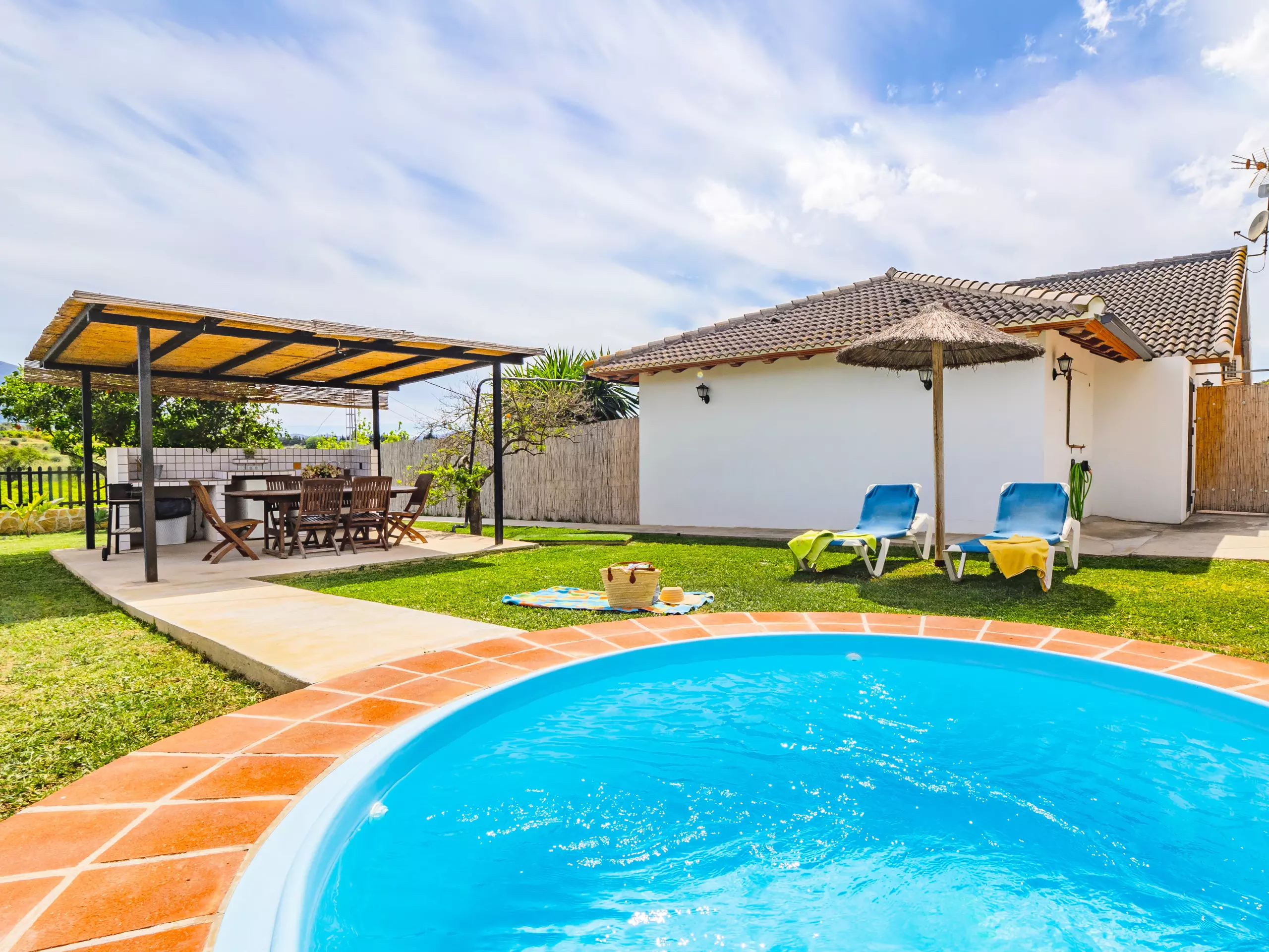 Le logement partage la parcelle avec la maison des propriétaires, mais grâce à son orientation soignée, aucune fenêtre ne donne sur votre espace réservé, garantissant une totale intimité. À l'extérieur, une zone de barbecue couverte est parfaite pour profiter de repas familiaux en plein air, tandis que deux parasols et des chaises longues permettent de se reposer à l'ombre après un bain dans la piscine. De plus, un coin aménagé pour prendre le thé ou lire offre un espace calme pour se déconnecter. ???