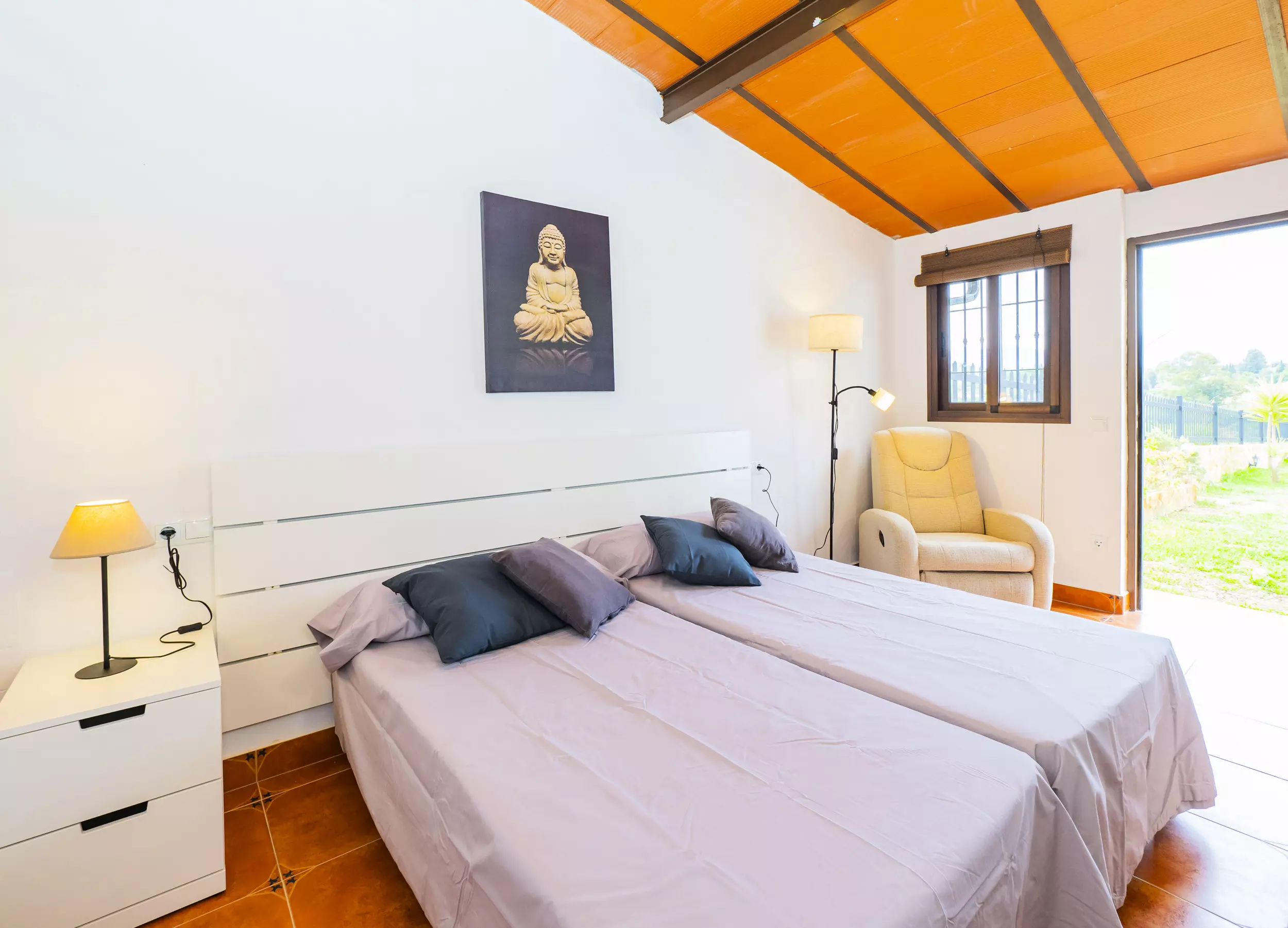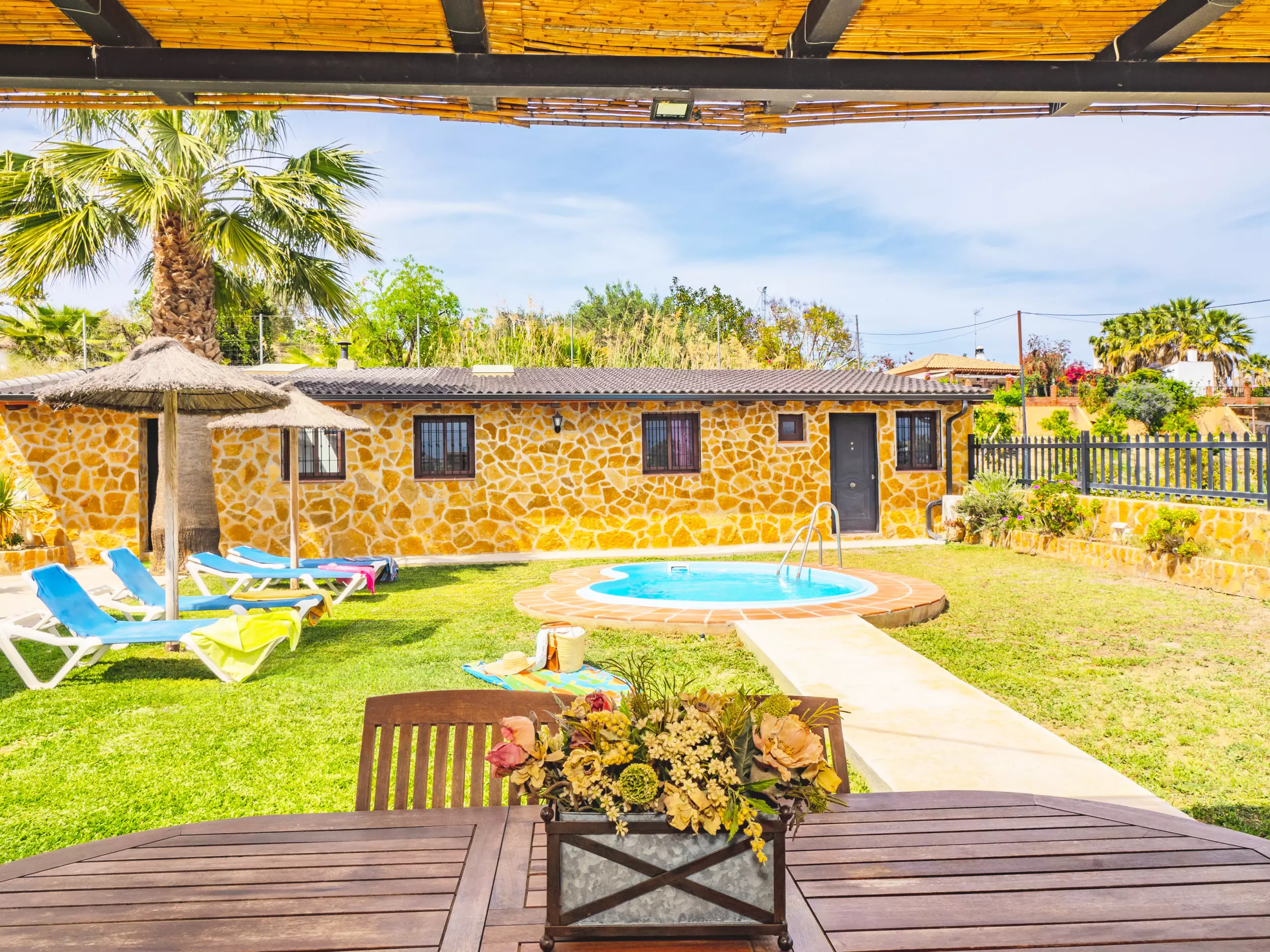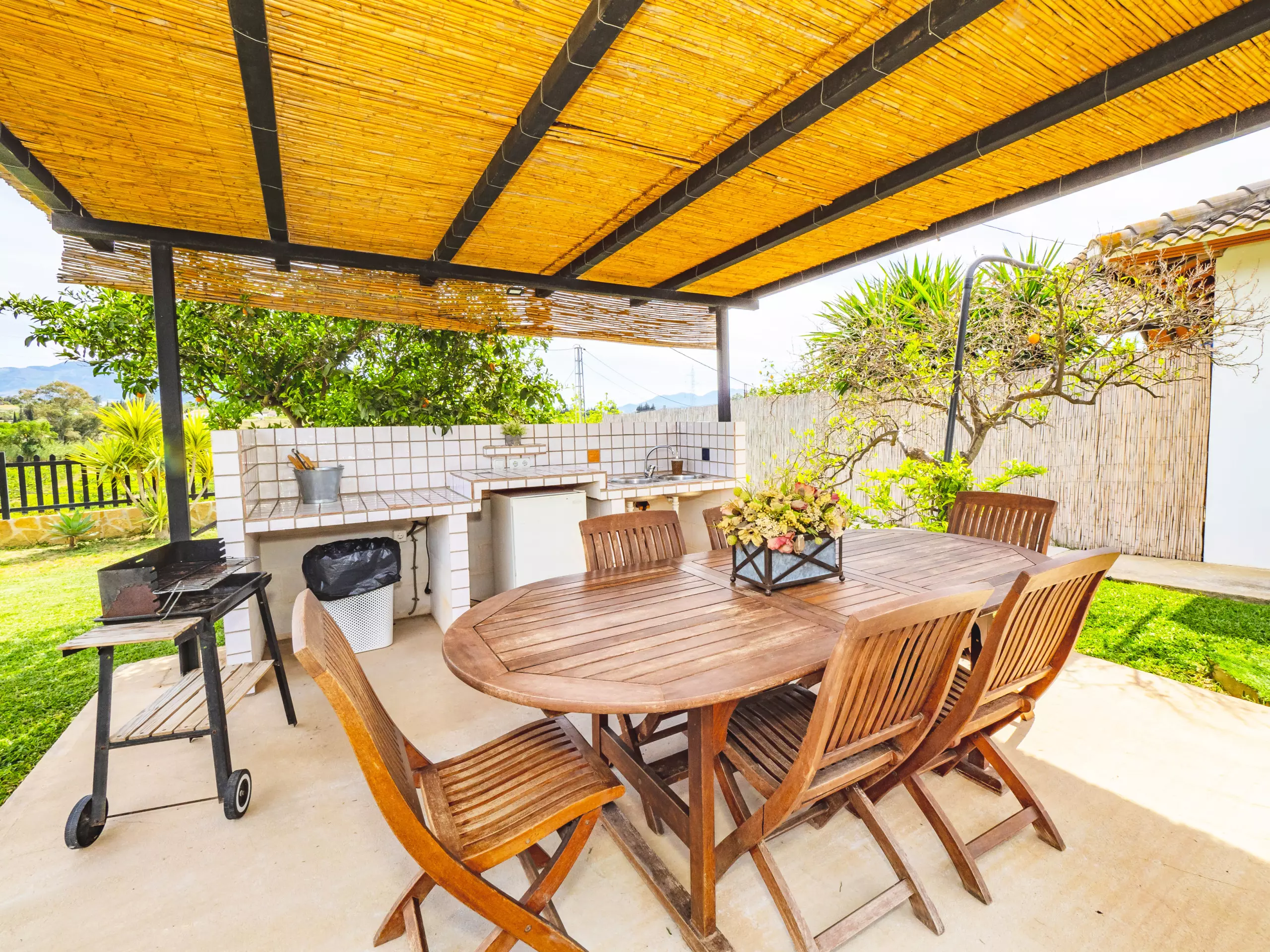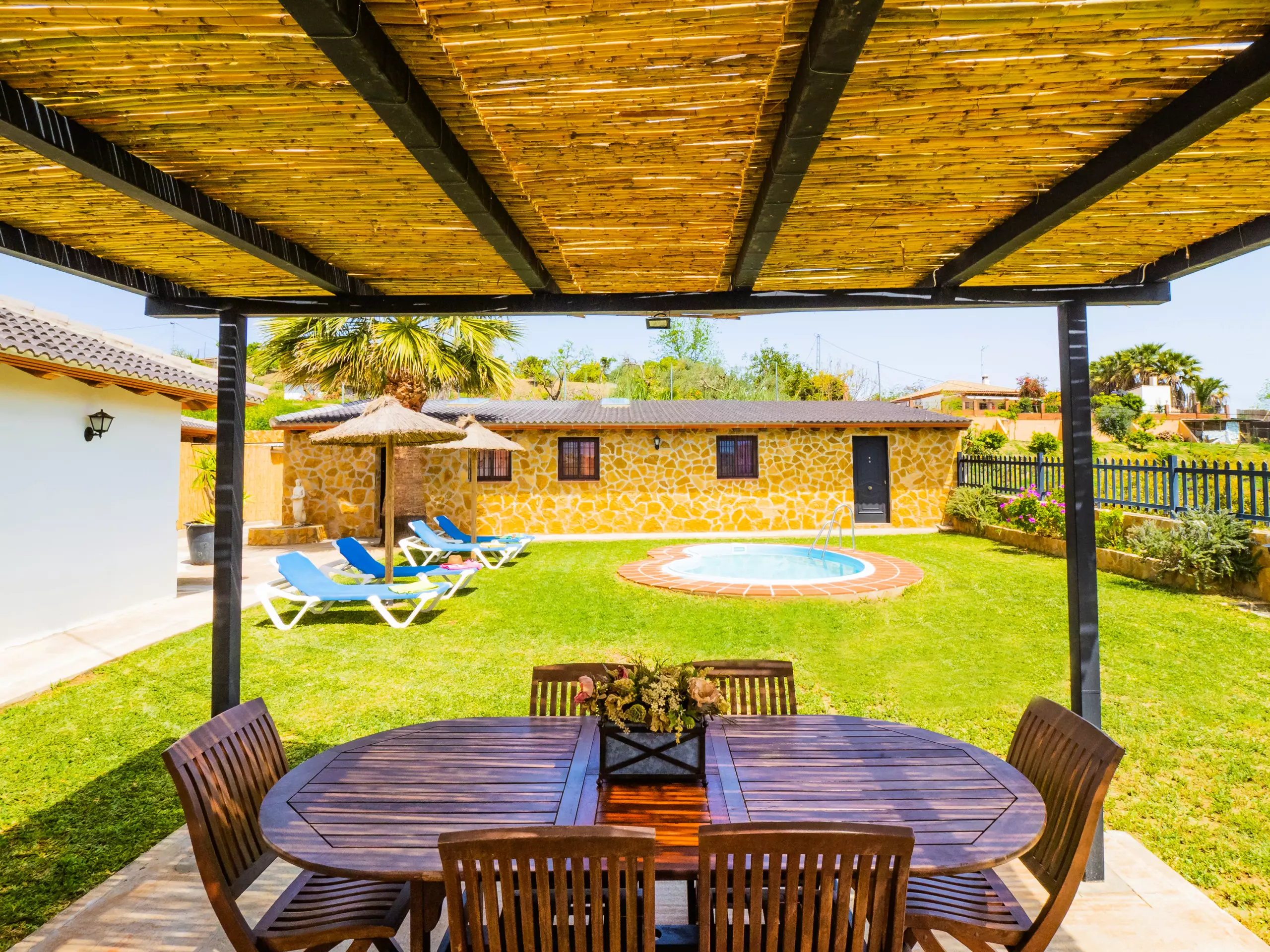 Le logement partage la parcelle avec la maison des propriétaires, mais grâce à son orientation soignée, aucune fenêtre ne donne sur votre espace réservé, garantissant une totale intimité. À l'extérieur, une zone de barbecue couverte est parfaite pour profiter de repas familiaux en plein air, tandis que deux parasols et des chaises longues permettent de se reposer à l'ombre après un bain dans la piscine. De plus, un coin aménagé pour prendre le thé ou lire offre un espace calme pour se déconnecter. ???