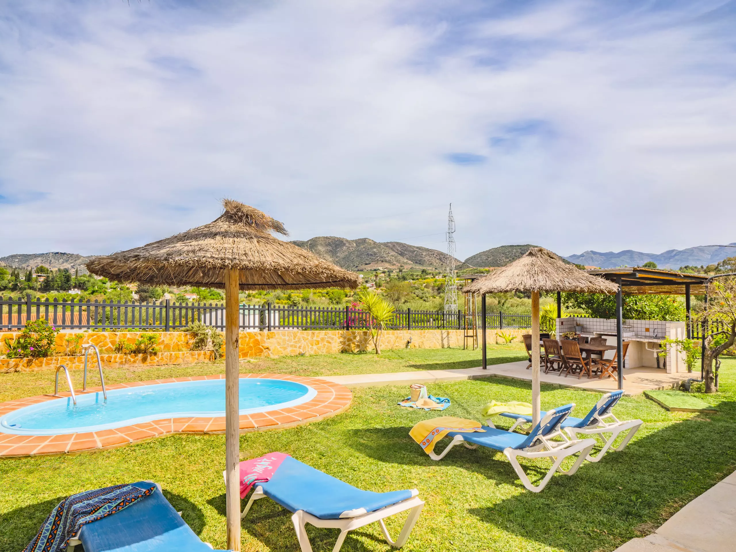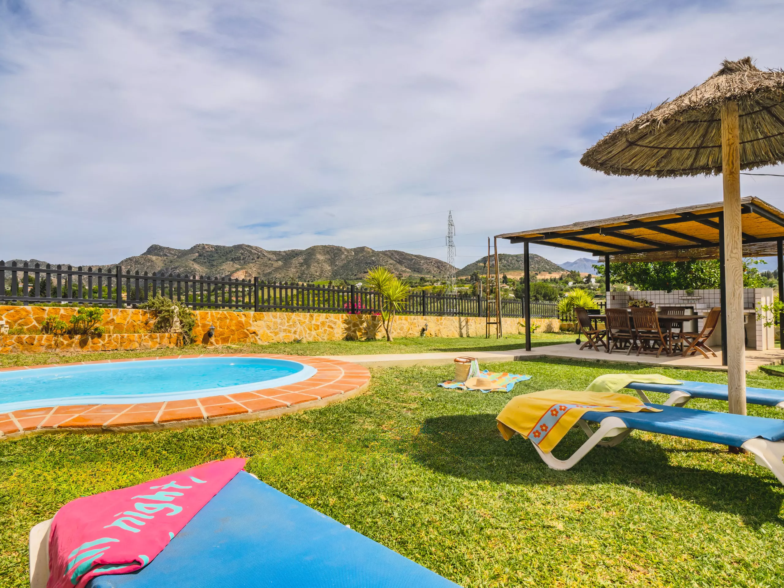 Profitez d'une charmante maison rurale à Cártama, pouvant accueillir 8 personnes, idéale pour les familles ou les groupes qui apprécient l'intimité et l'environnement naturel. Après avoir parcouru un petit chemin de terre compact et bien entretenu, vous arriverez sur la parcelle privée où vous pourrez vous garer confortablement. L'extérieur vous surprendra avec une pelouse verte luxuriante qui encadre des vues impressionnantes sur la montagne, complétées par la piscine privée rafraîchissante qui invite à se détendre sous le soleil. ??