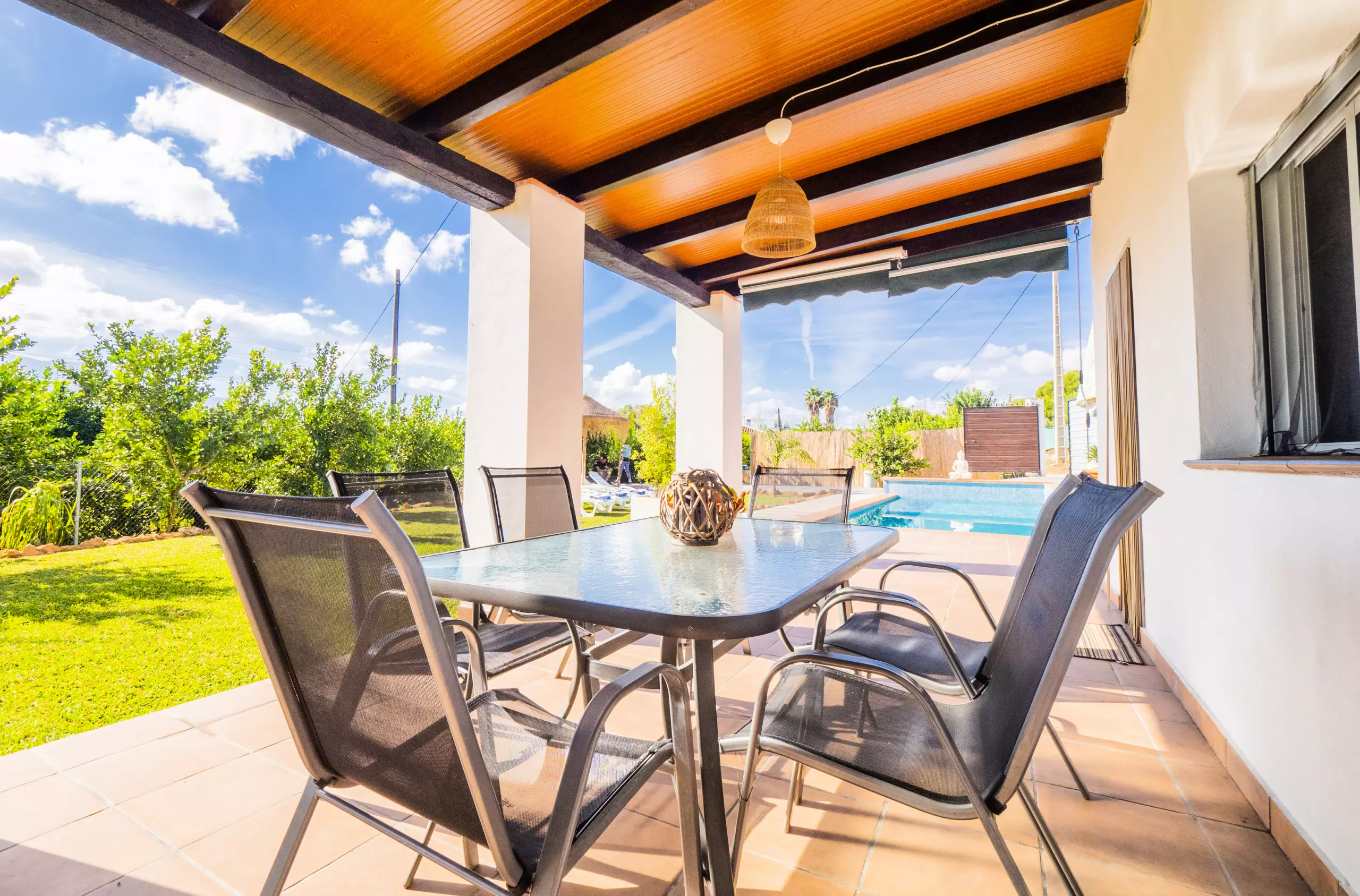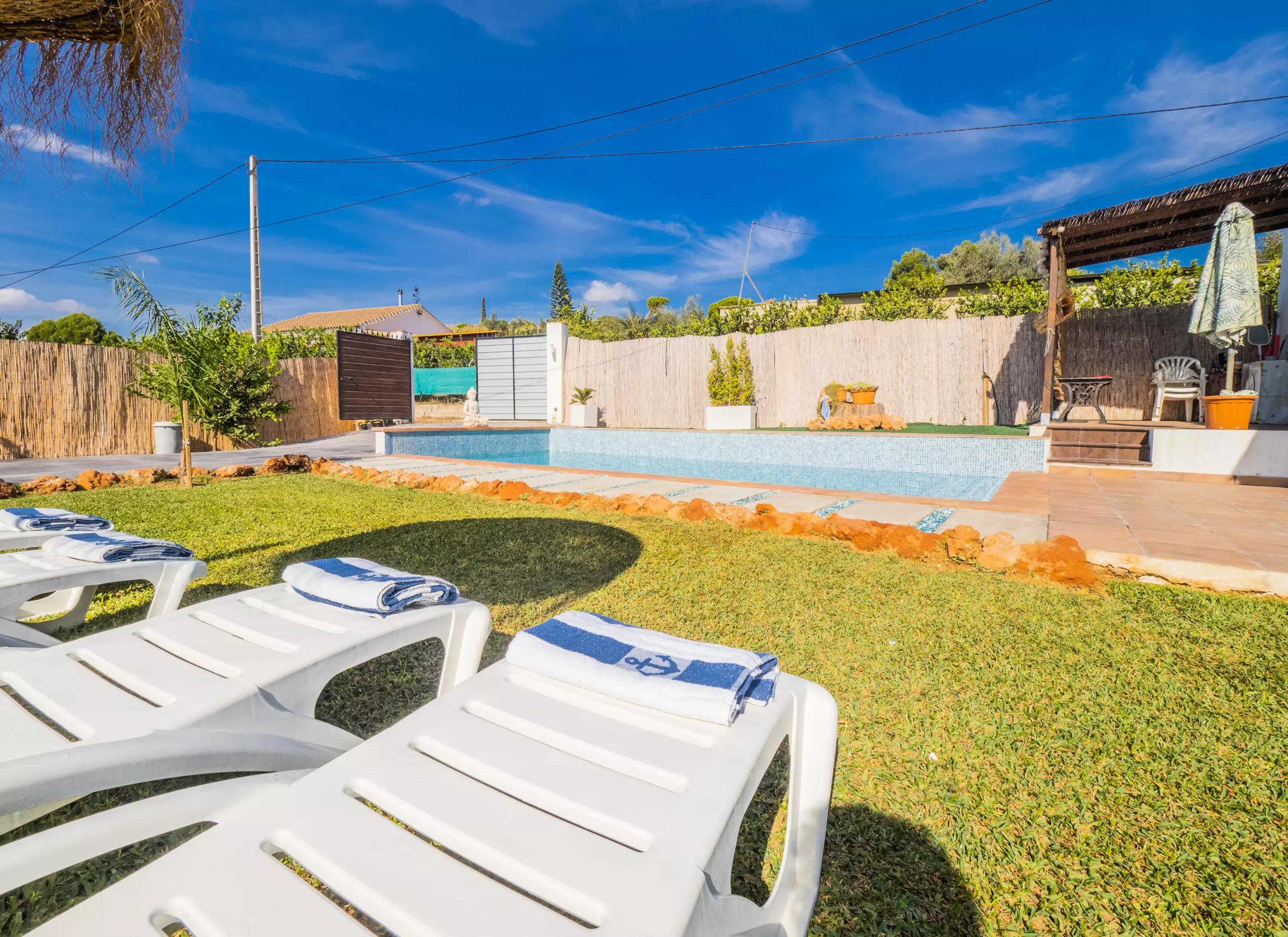 À l'extérieur, vous attend une large terrasse couverte parfaite pour se détendre, une zone de barbecue pour partager des moments inoubliables et des arbres fruitiers qui apportent une touche naturelle. La piscine privée de 7x3 mètres est disponible toute l'année et est accompagnée de chaises longues et de parasols pour que vous puissiez profiter du soleil en tout confort. ??