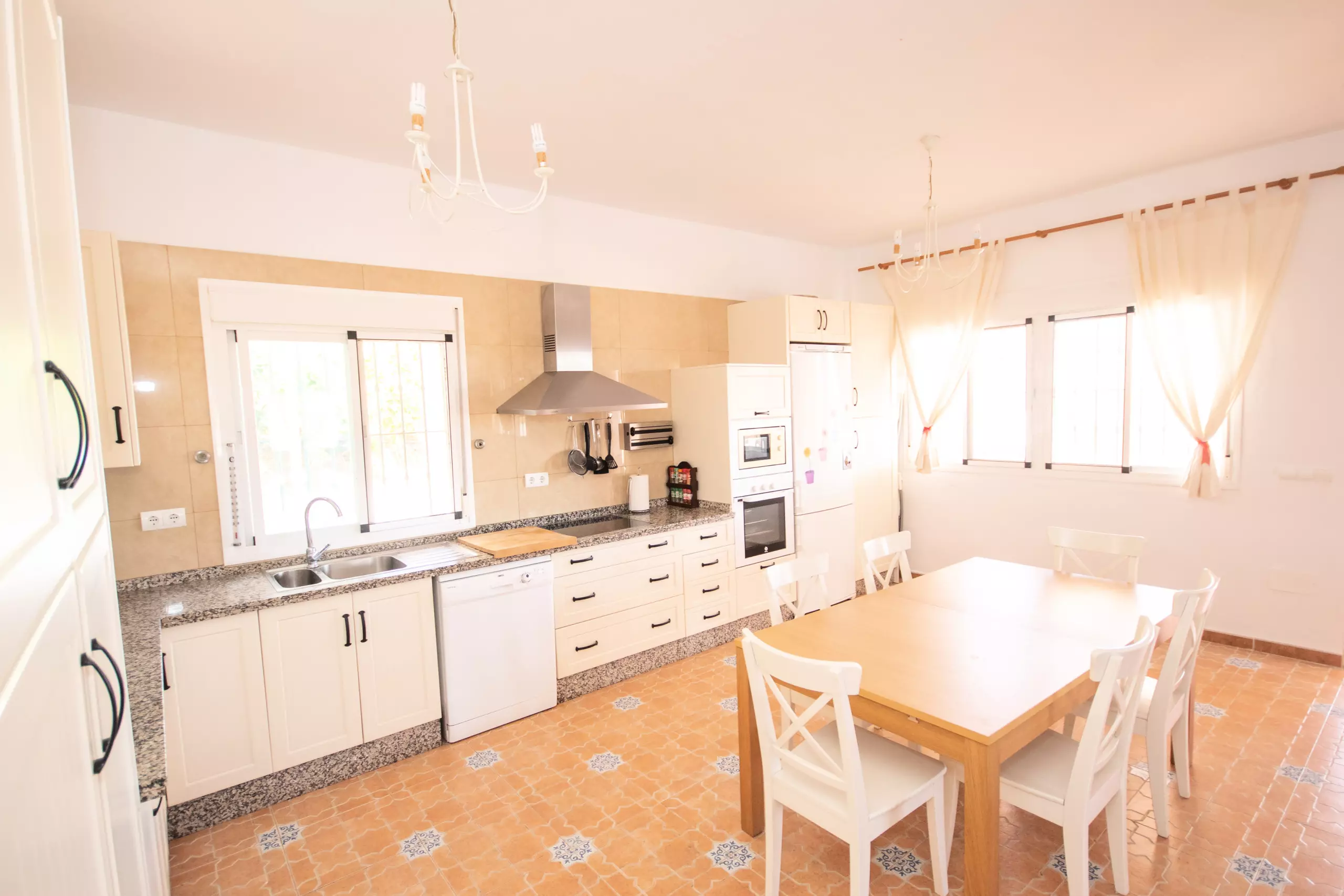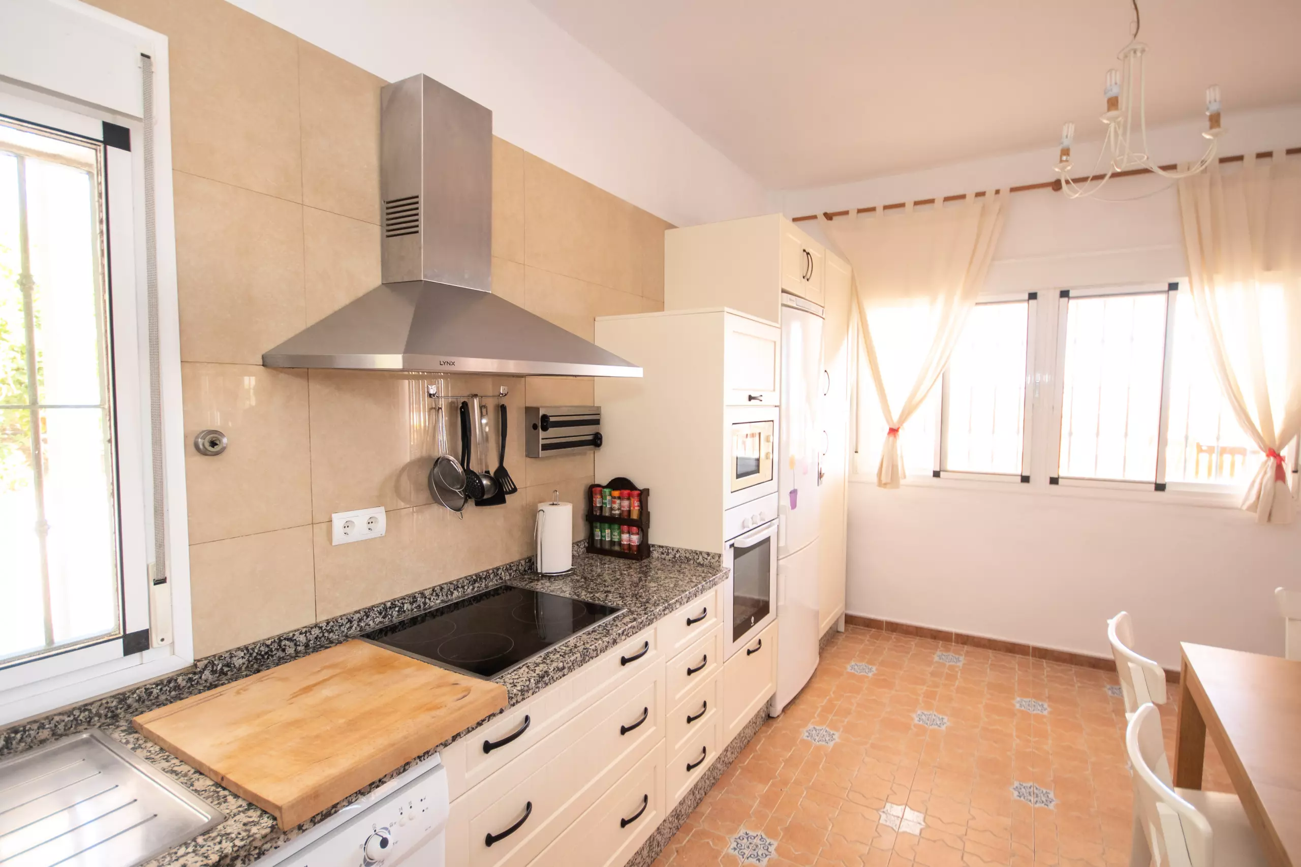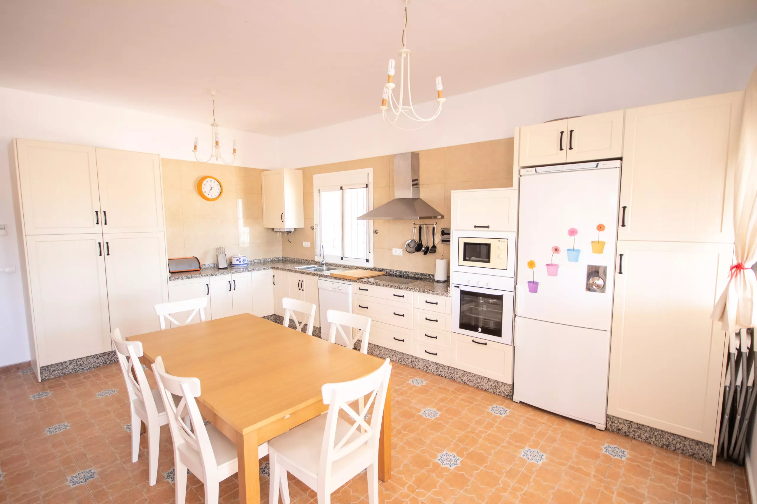 À l'intérieur, le salon climatisé avec air conditionné et cheminée vous garantit un confort à toute époque de l'année. La cuisine américaine est entièrement équipée de tous les appareils électroménagers nécessaires : réfrigérateur, congélateur, four, micro-ondes, presse-agrumes, cafetière, friteuse, grille-pain et lave-vaisselle, en plus de disposer d'un lave-linge pour plus de commodité. Toutes les fenêtres sont protégées par des moustiquaires, et la villa est entièrement clôturée pour plus de confidentialité et de sécurité.