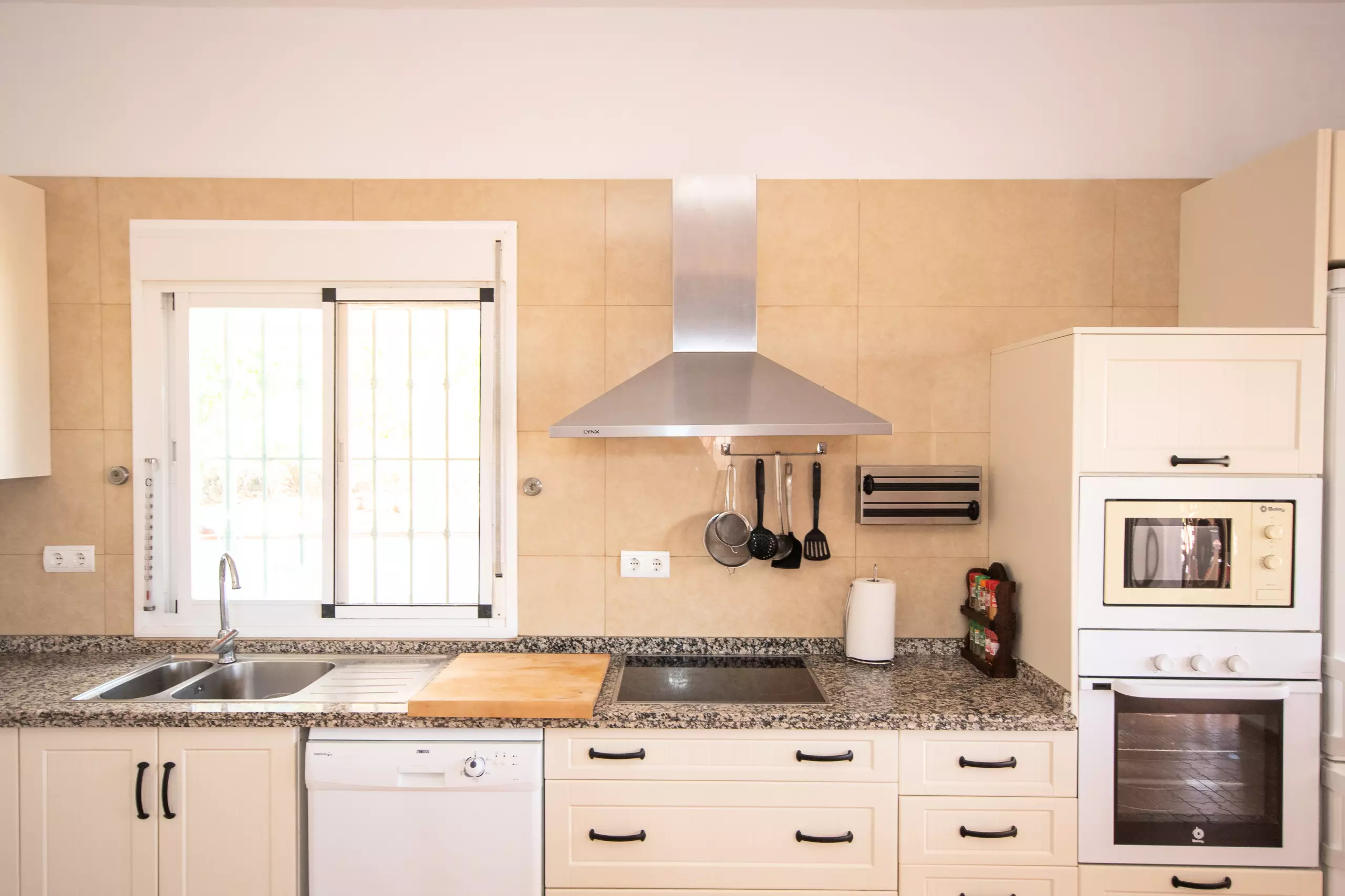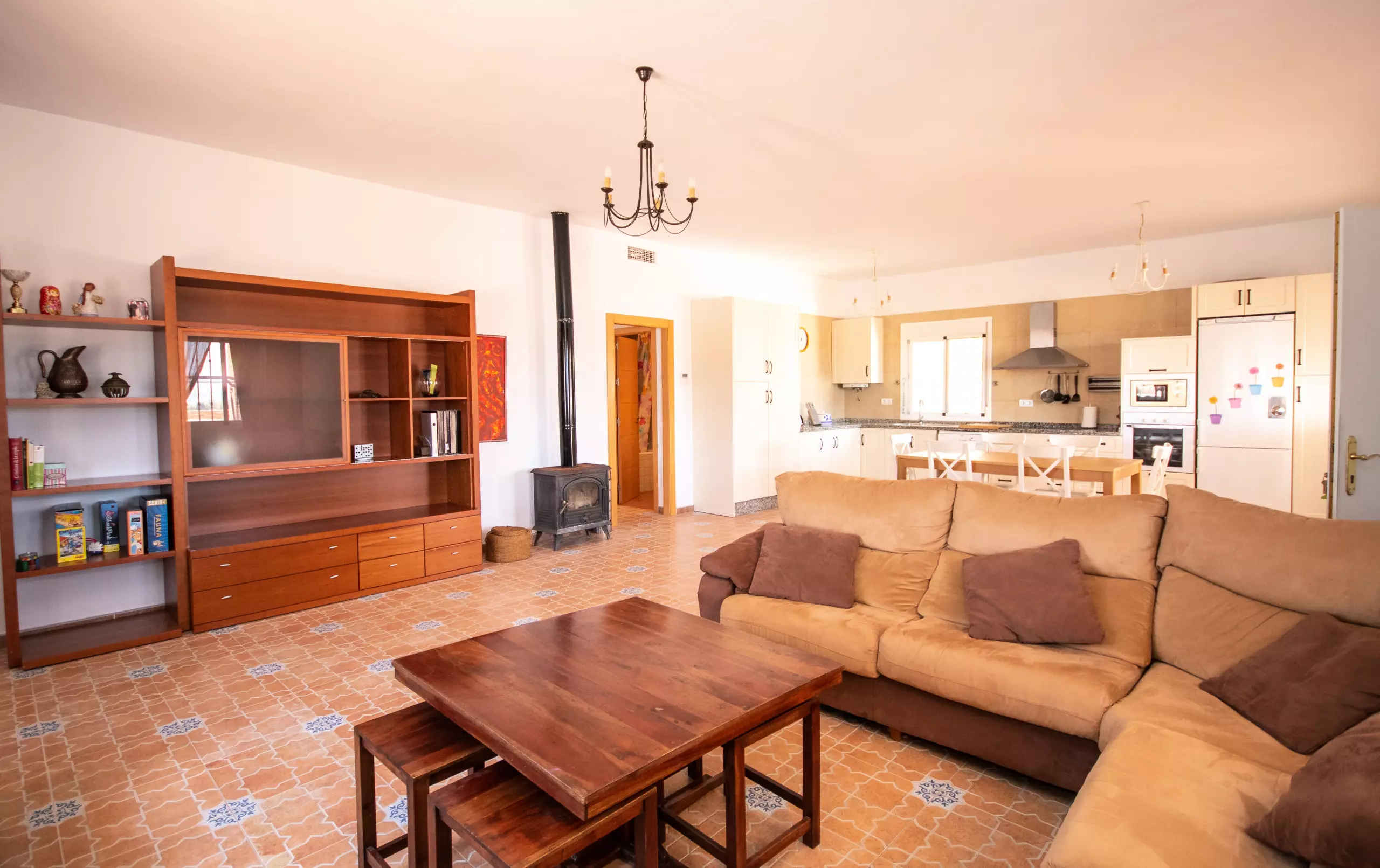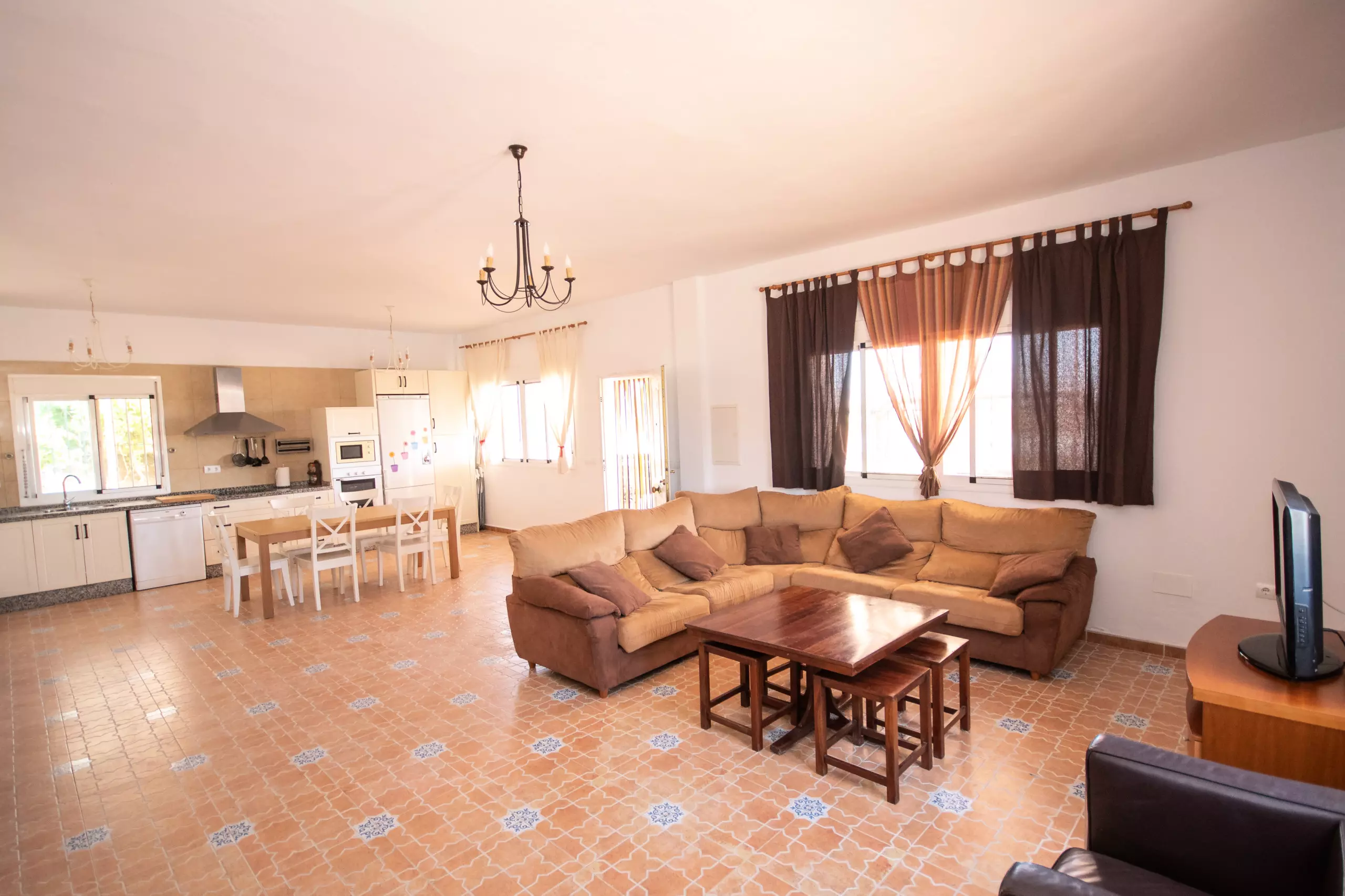 À l'intérieur, le salon climatisé avec air conditionné et cheminée vous garantit un confort à toute époque de l'année. La cuisine américaine est entièrement équipée de tous les appareils électroménagers nécessaires : réfrigérateur, congélateur, four, micro-ondes, presse-agrumes, cafetière, friteuse, grille-pain et lave-vaisselle, en plus de disposer d'un lave-linge pour plus de commodité. Toutes les fenêtres sont protégées par des moustiquaires, et la villa est entièrement clôturée pour plus de confidentialité et de sécurité.
