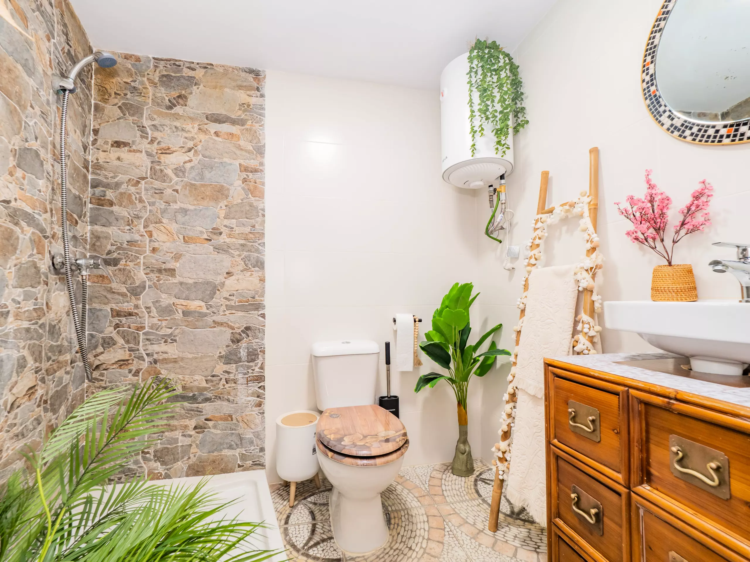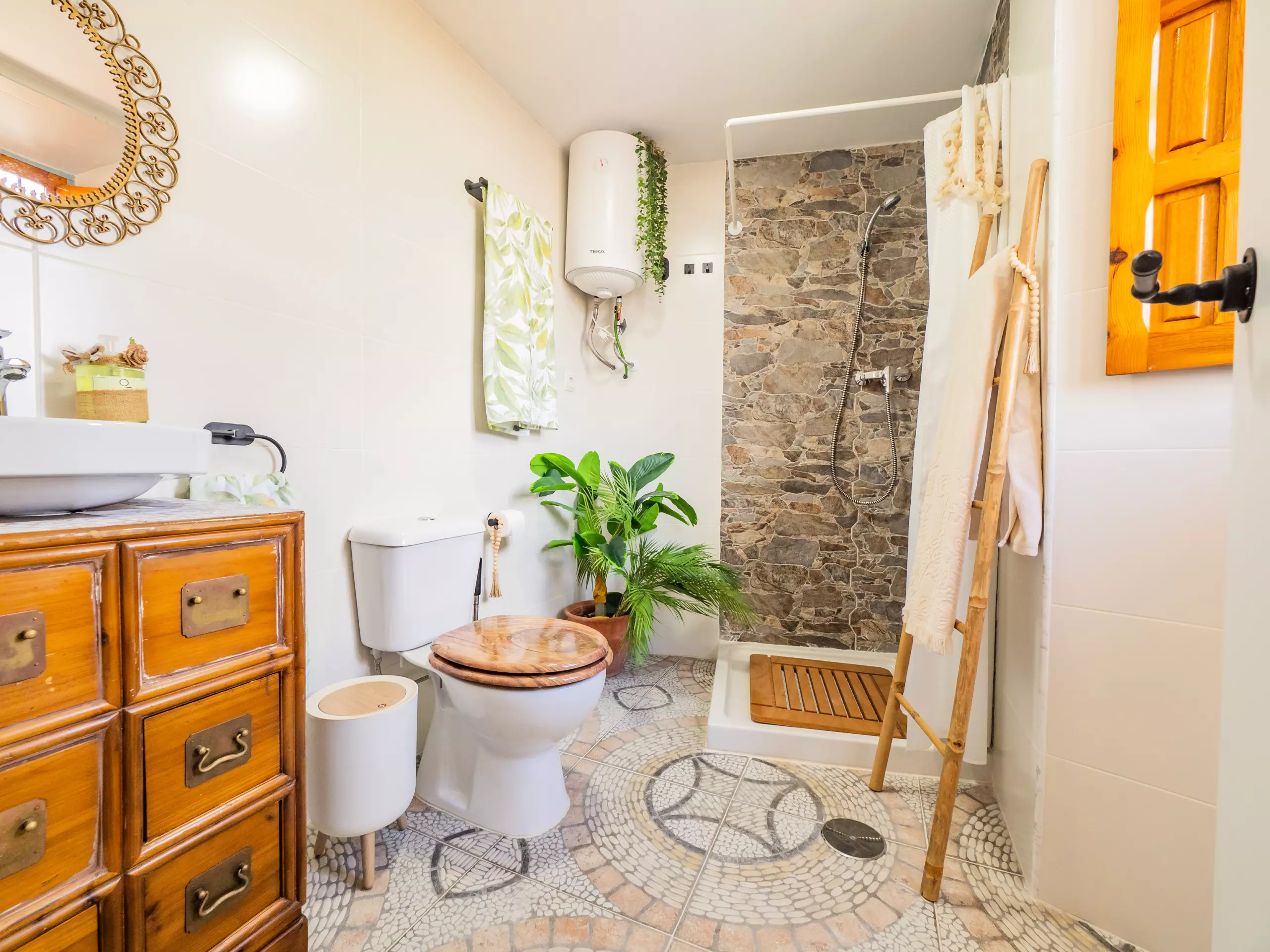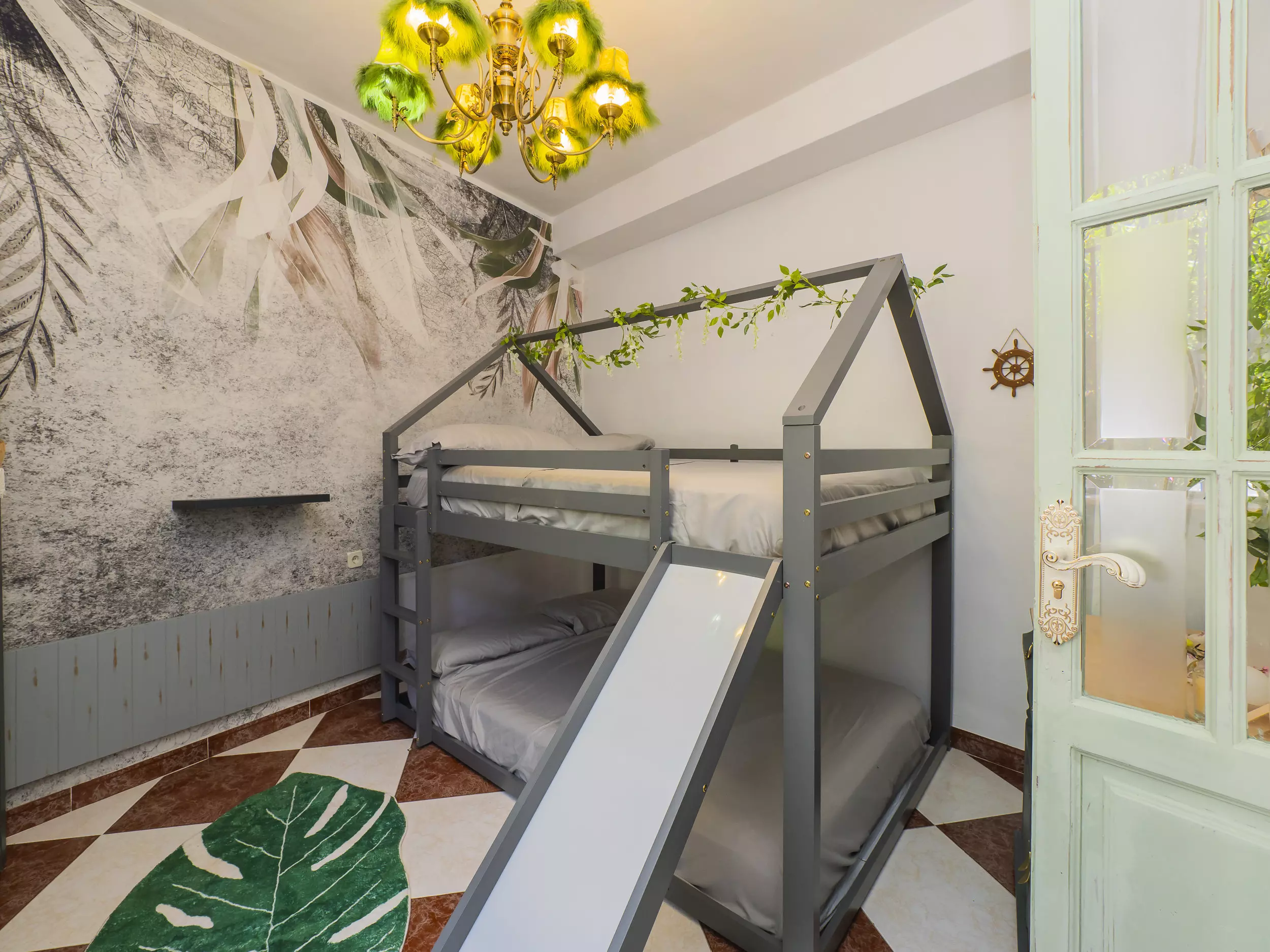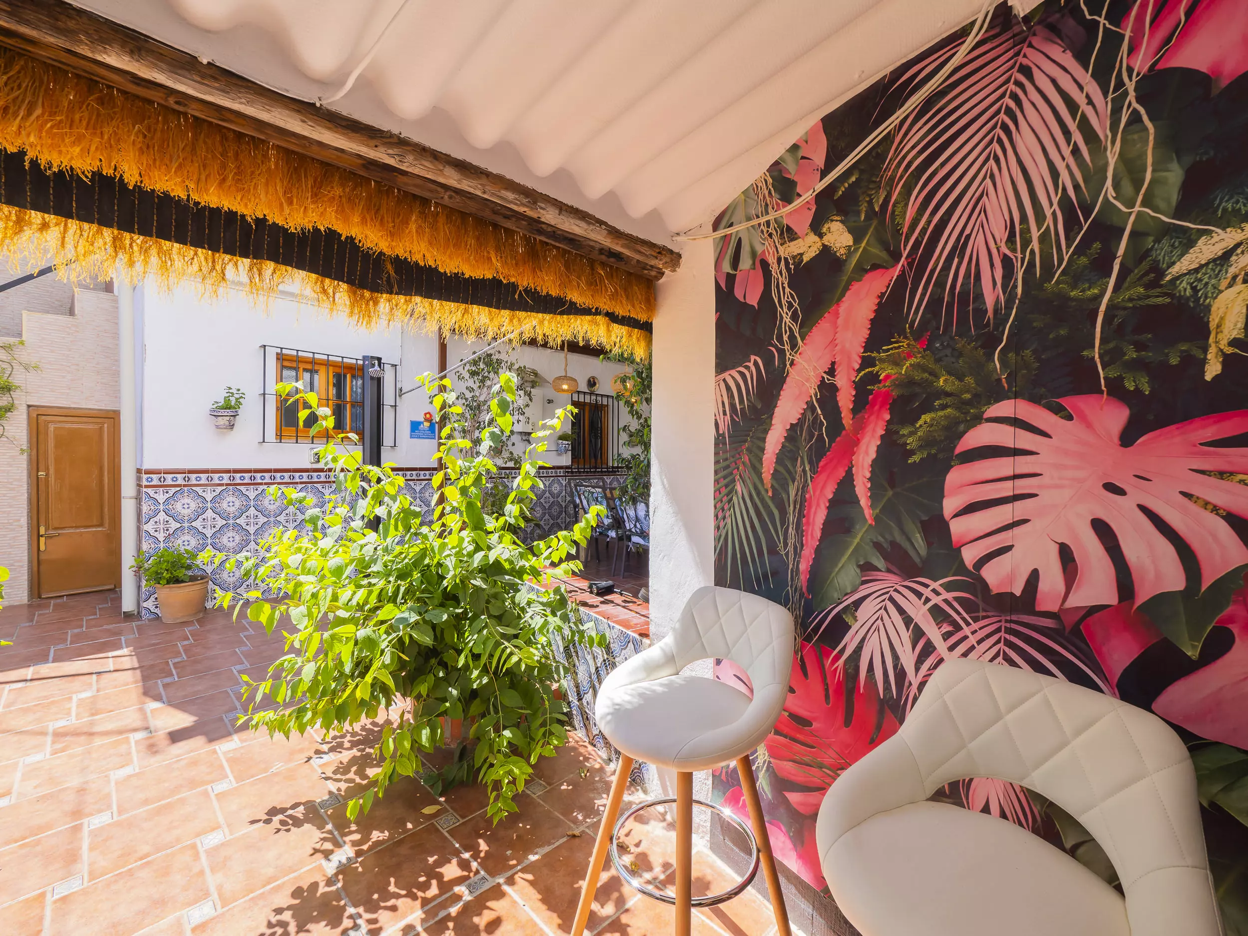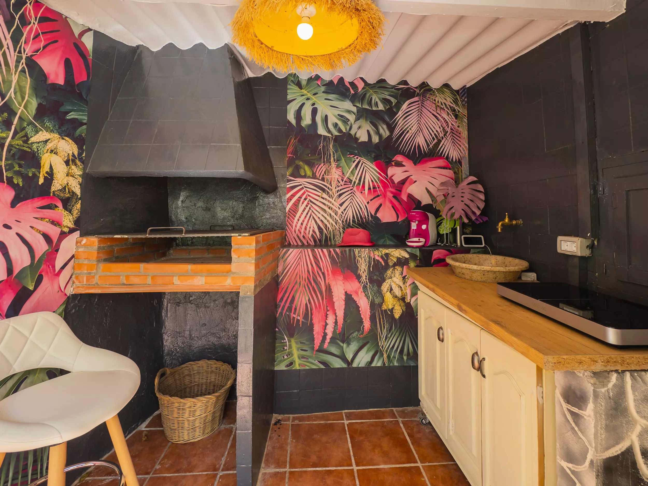 Au cœur du logement, vous trouverez une belle cour intérieure avec piscine privée, des zones d'ombre naturelle et du mobilier extérieur, avec des hamacs pour les plus petits. L'accès à la piscine se fait par des escaliers en maçonnerie ; une supervision est recommandée avec les enfants. À côté de la terrasse, la zone de barbecue et la grande table familiale invitent à des repas en plein air ; pour les soirées fraîches, la terrasse dispose d'un chauffage de plafond.