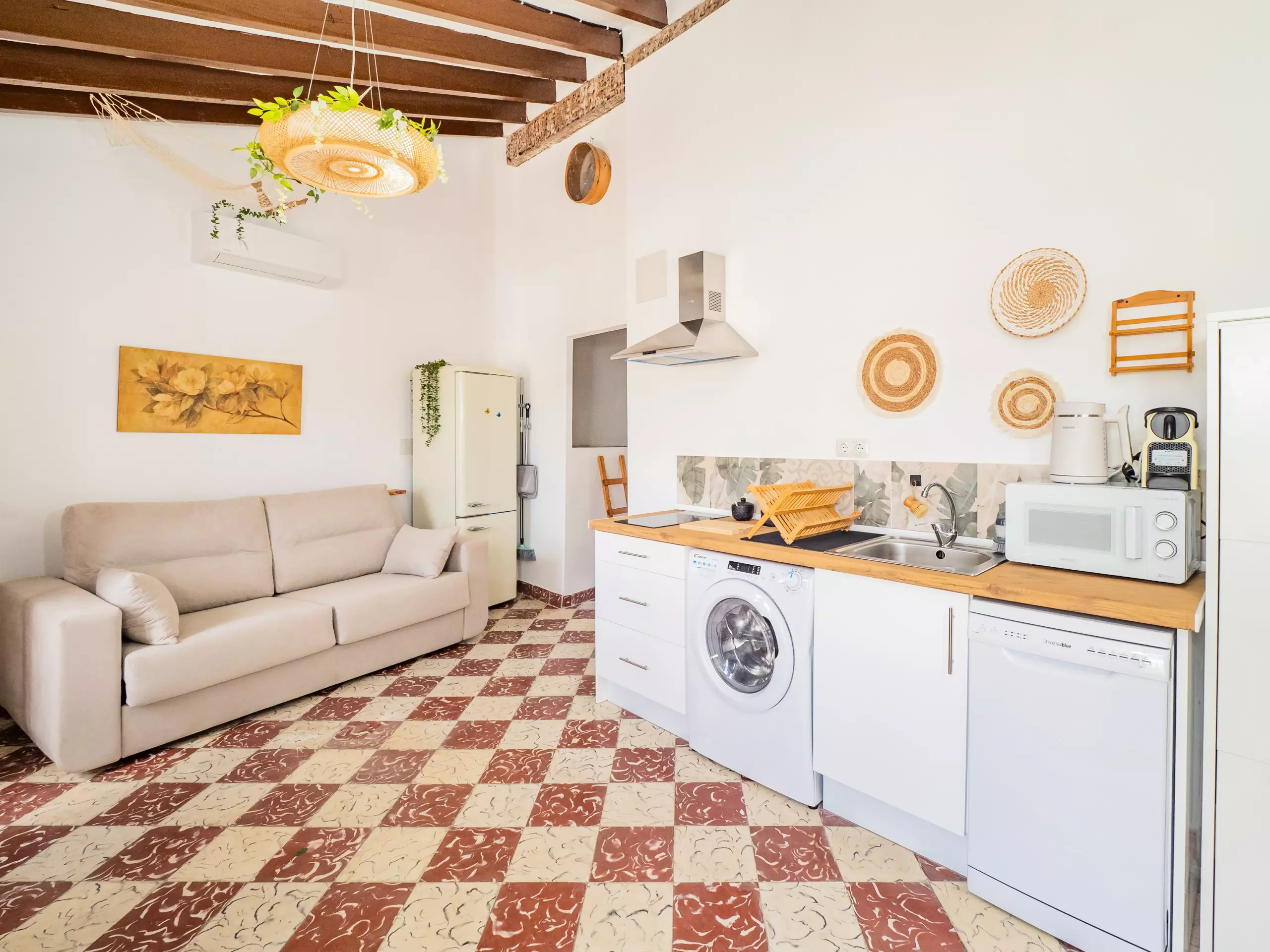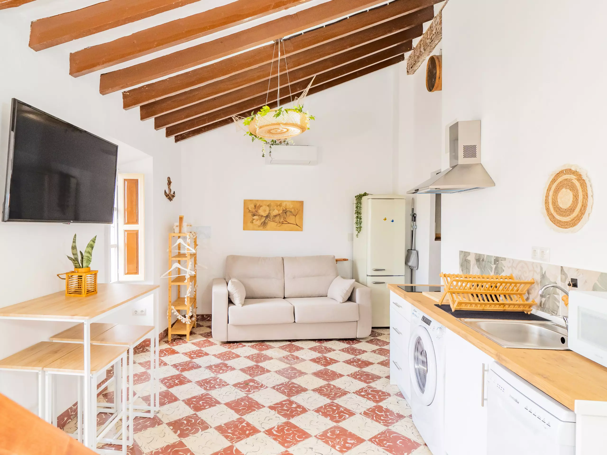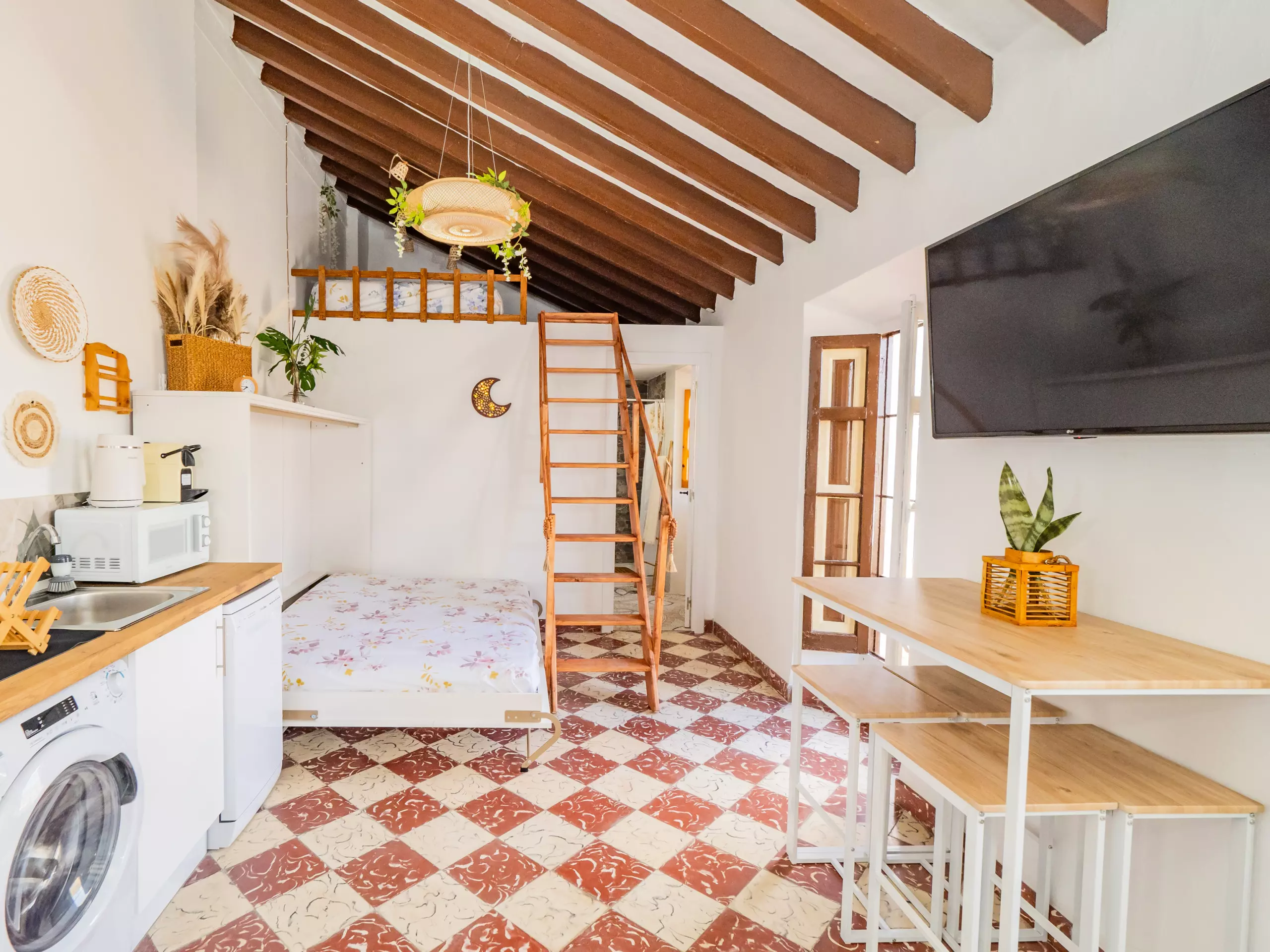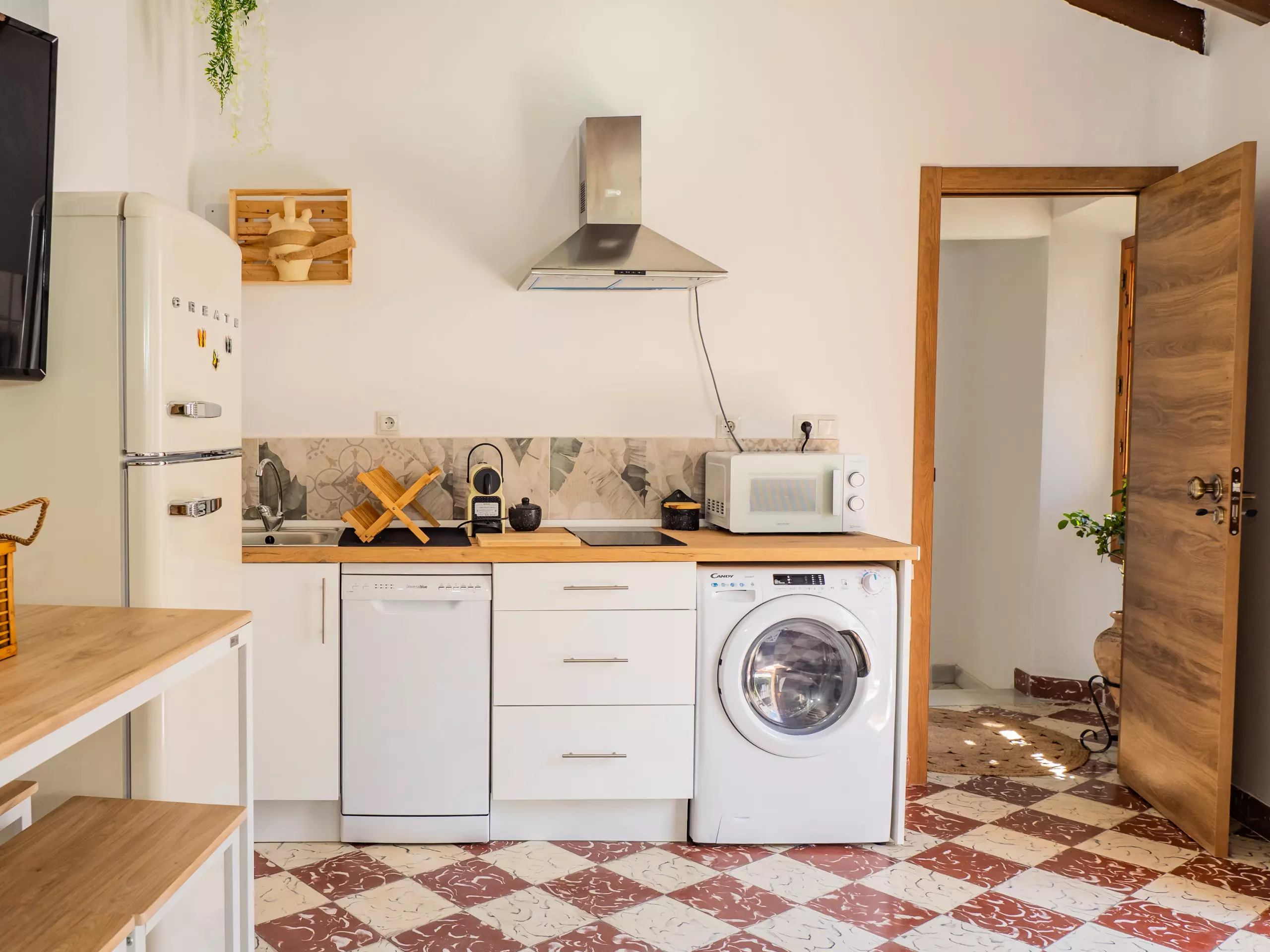 La maison principale offre une cuisine entièrement équipée (réfrigérateur, micro-ondes, four, induction, cafetière, grille-pain et plus) connectée au salon-chambre avec un canapé-lit double. Le repos est réparti dans deux chambres (une avec un lit de mariage et l'autre avec un lit superposé à deux niveaux) et une salle de bain complète qui comprend une table à langer pour bébés. Les studios disposent d'un lit de mariage, d'une cuisine privée, de la télévision et d'une salle de bain avec douche, offrant intimité et confort.