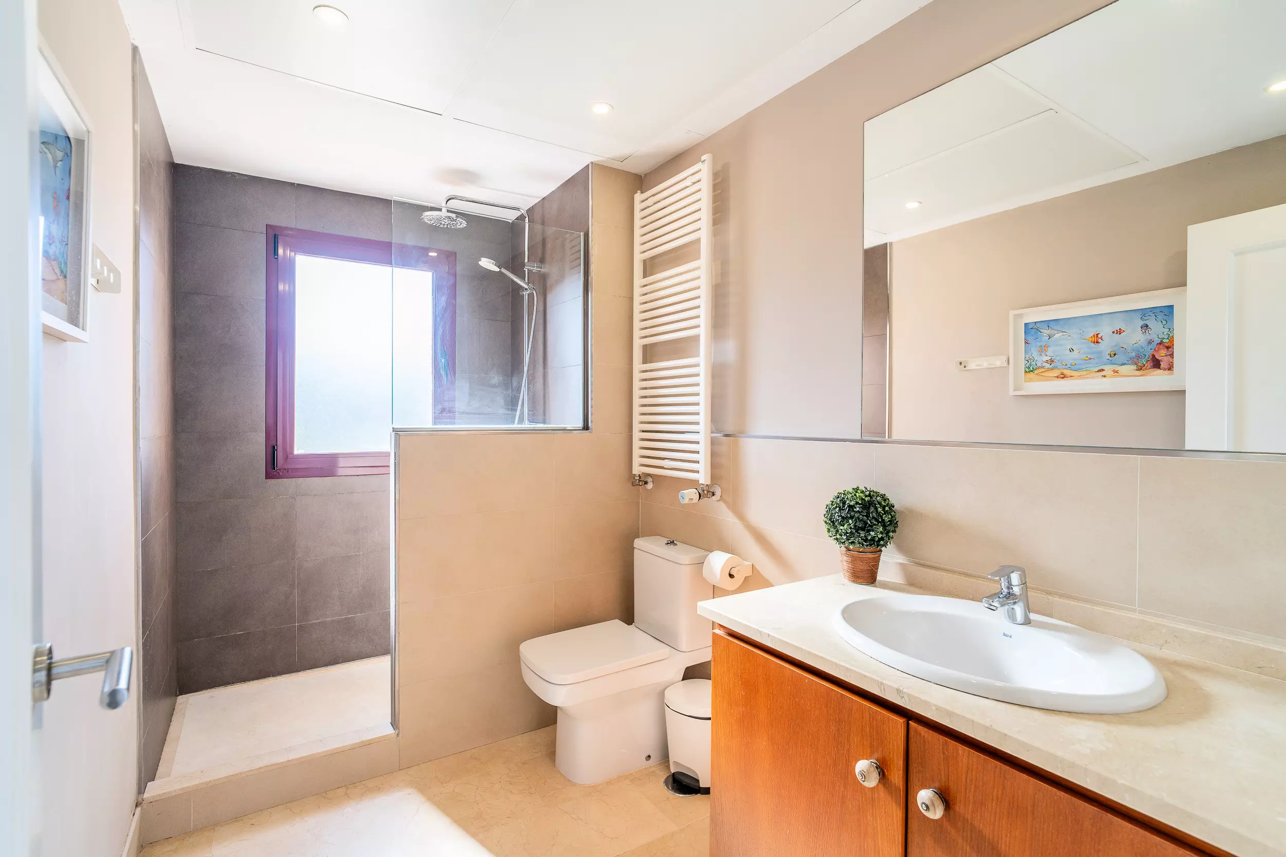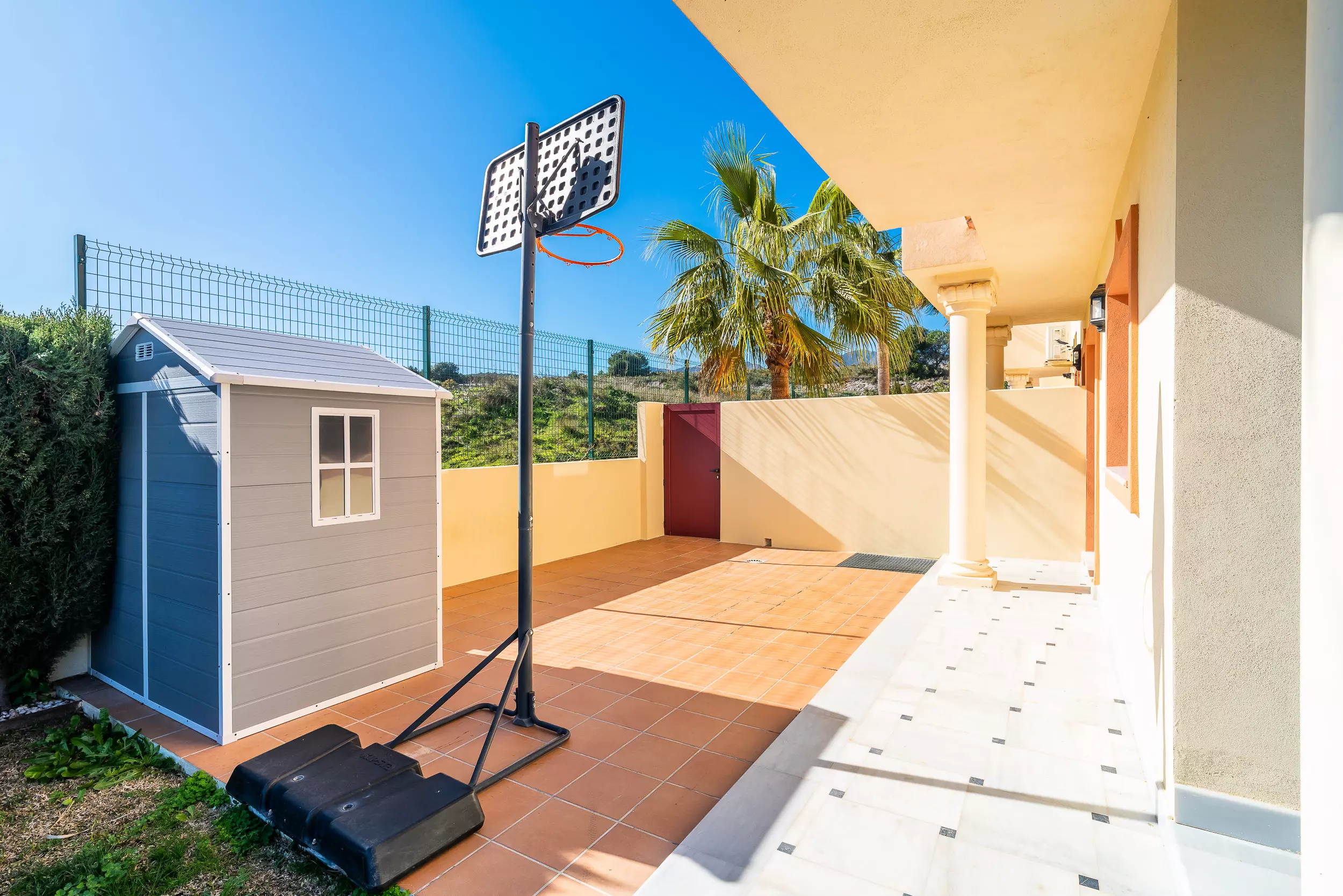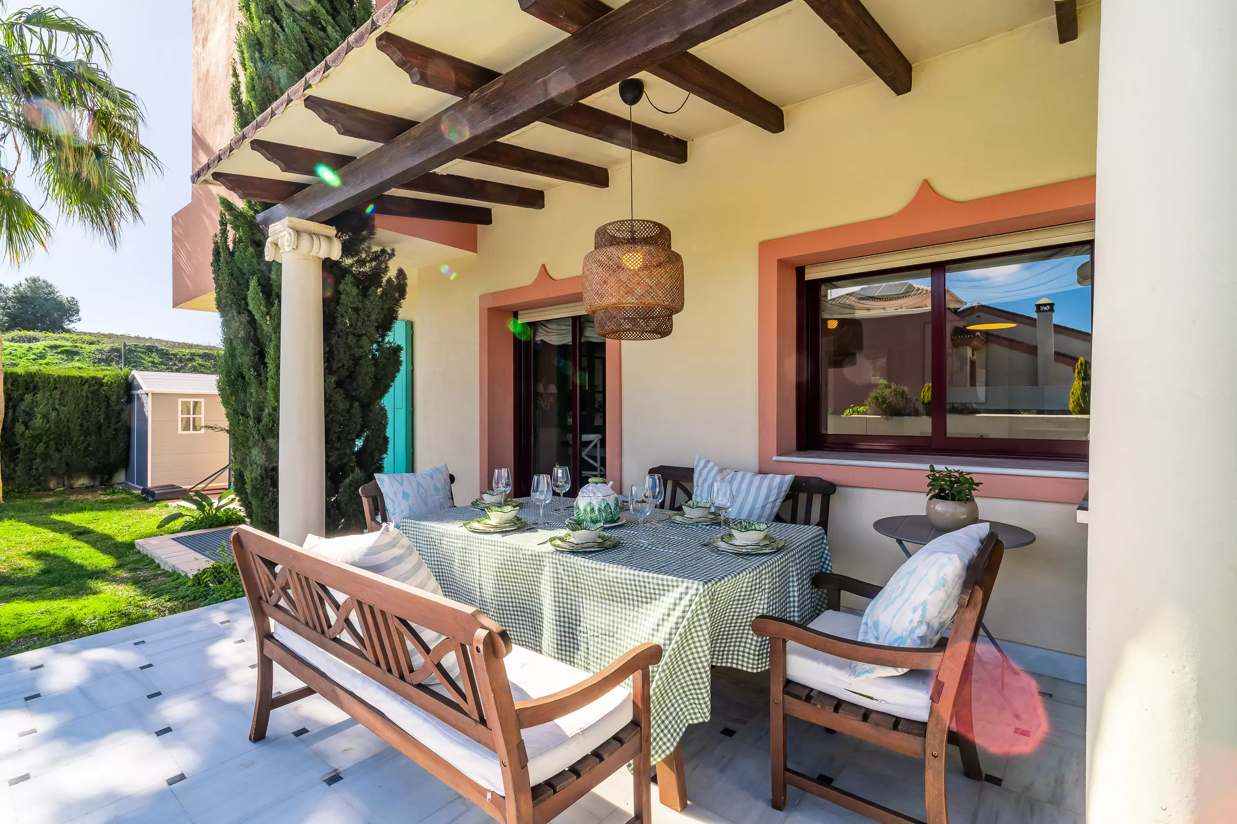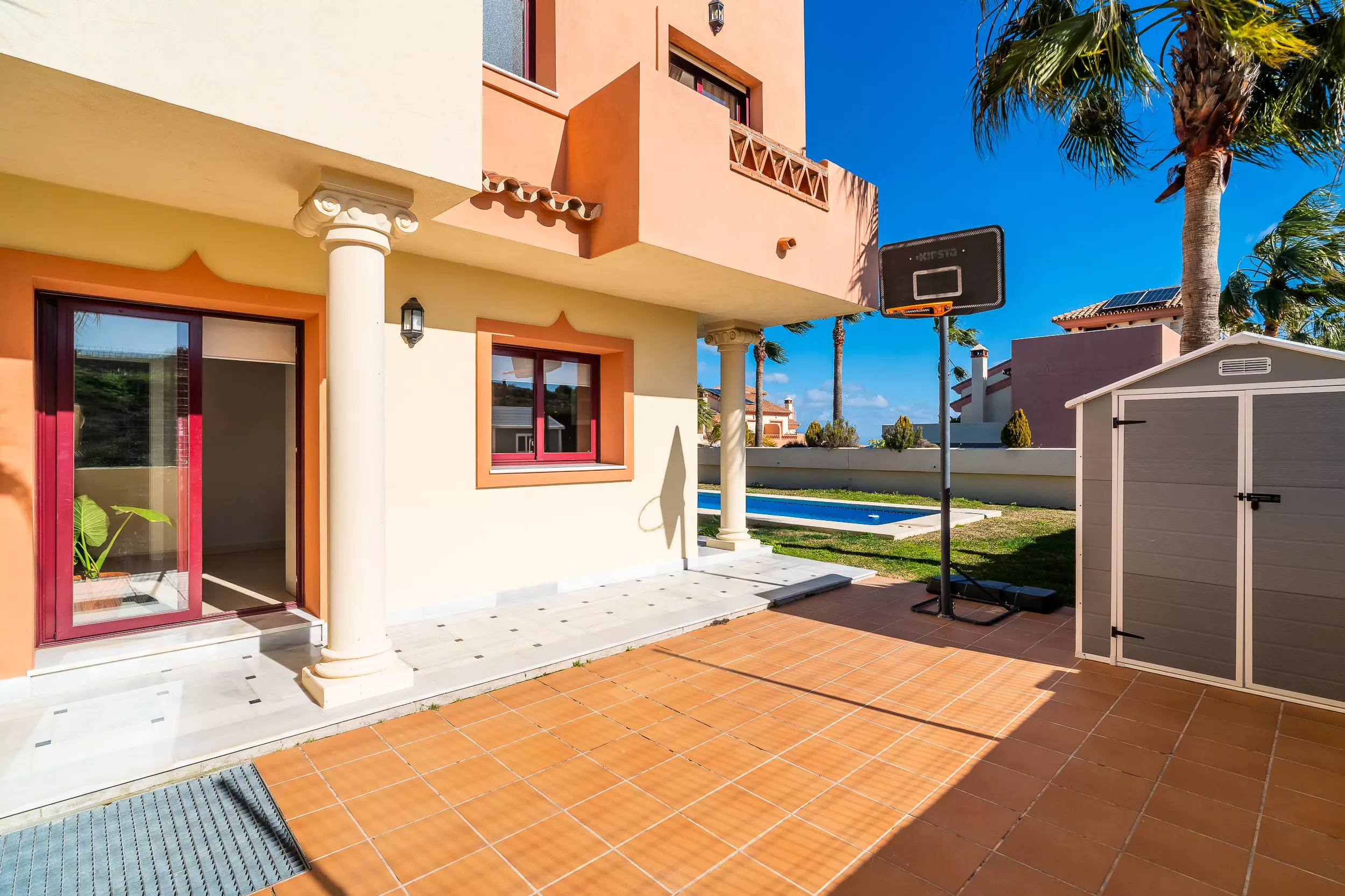 À l'extérieur, vous pourrez profiter d'un jardin privé, d'une terrasse de 40 m², d'un barbecue à gaz et d'une piscine privée, ainsi que d'un accès à une piscine communautaire supplémentaire dans l'urbanisation. Le stationnement est très pratique, car vous pouvez vous garer juste devant la maison à l'intérieur de l'enceinte fermée.