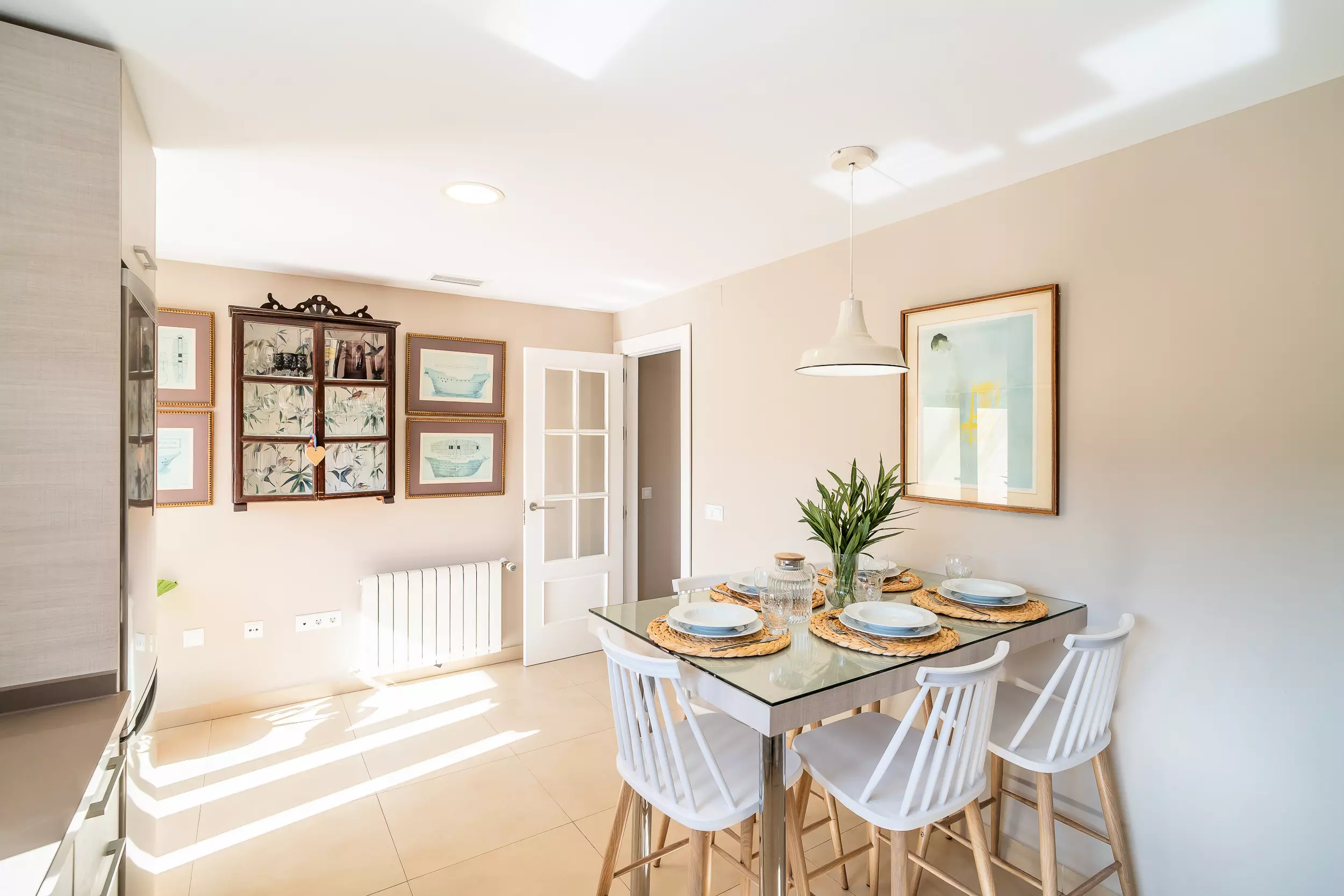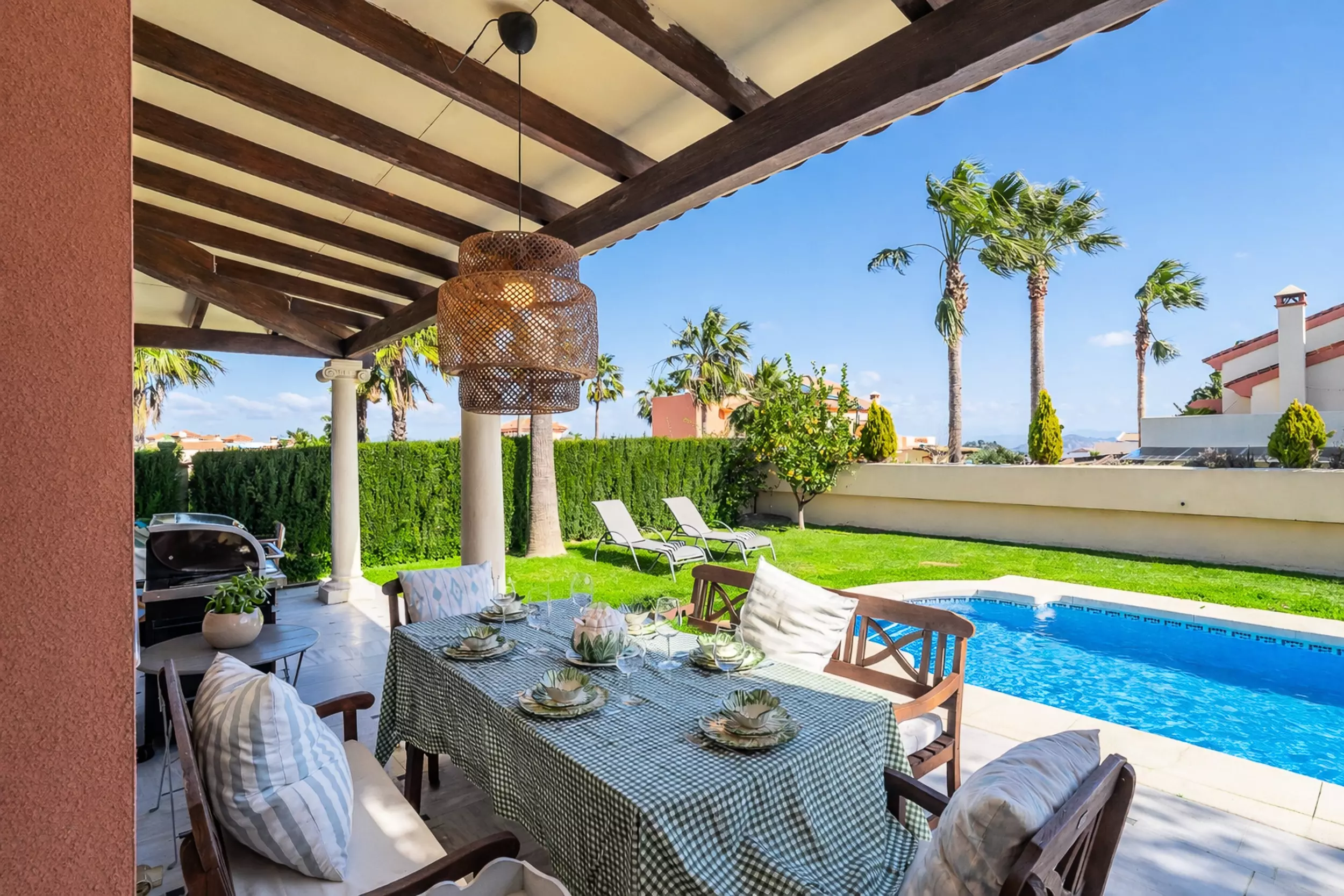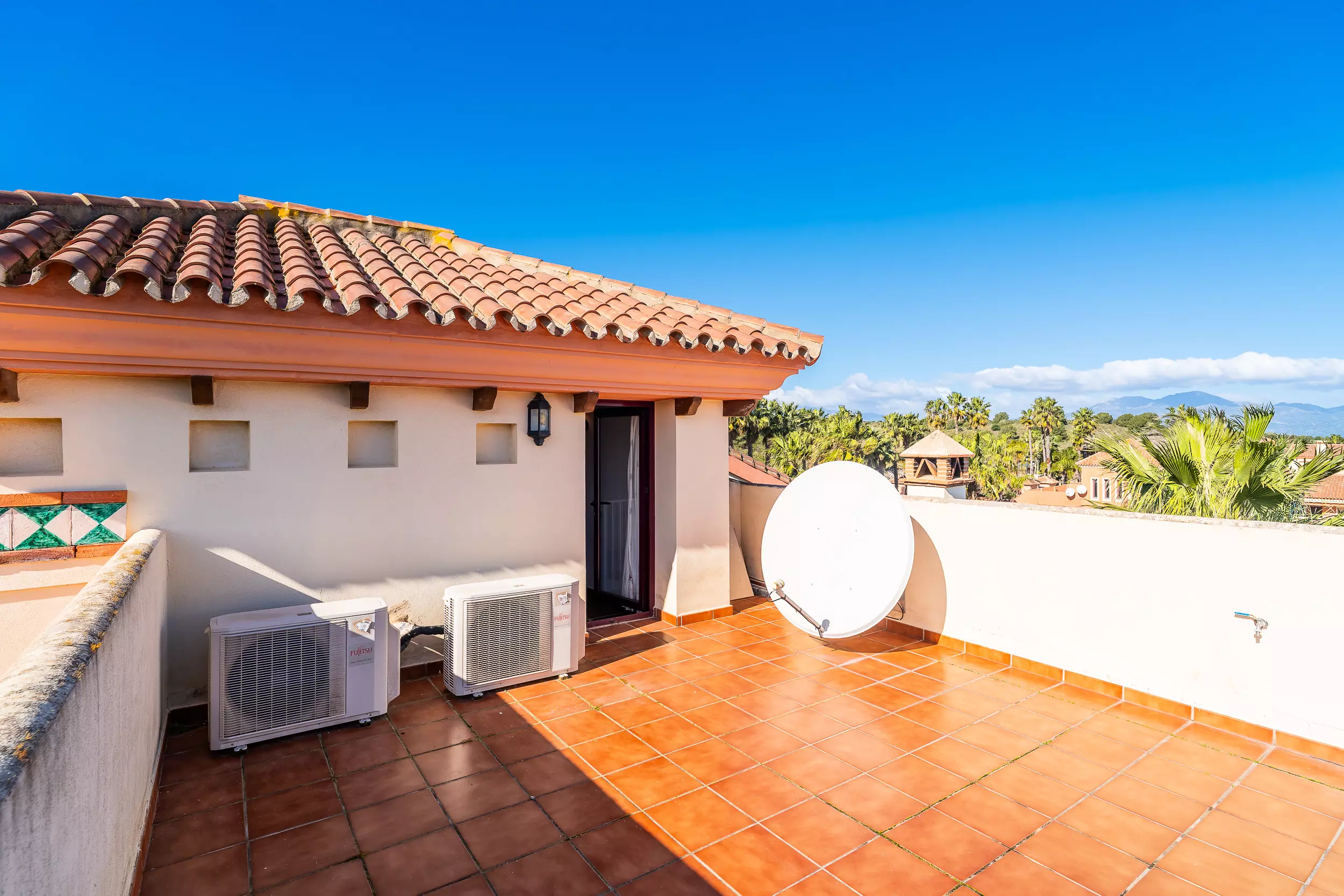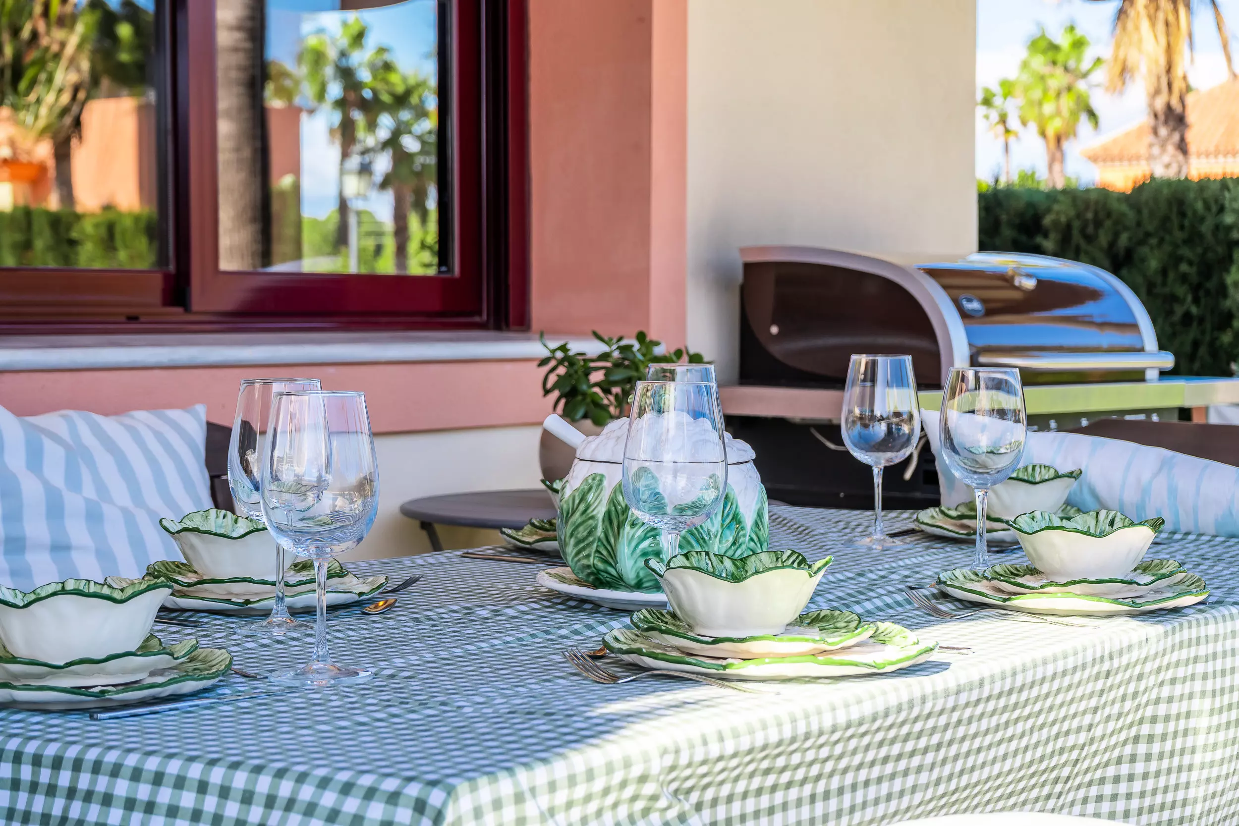À l'extérieur, vous pourrez profiter d'un jardin privé, d'une terrasse de 40 m², d'un barbecue à gaz et d'une piscine privée, ainsi que d'un accès à une piscine communautaire supplémentaire dans l'urbanisation. Le stationnement est très pratique, car vous pouvez vous garer juste devant la maison à l'intérieur de l'enceinte fermée.