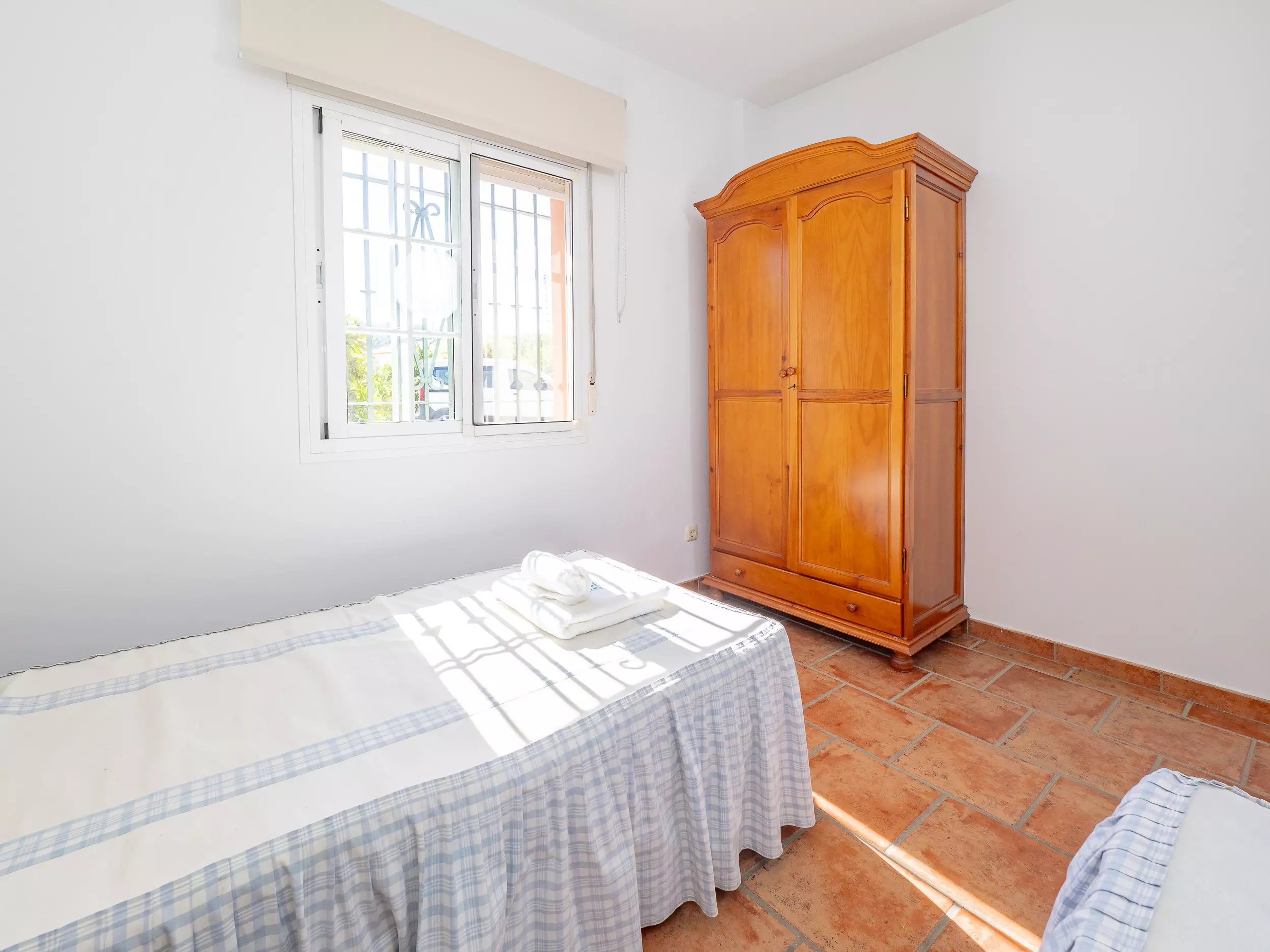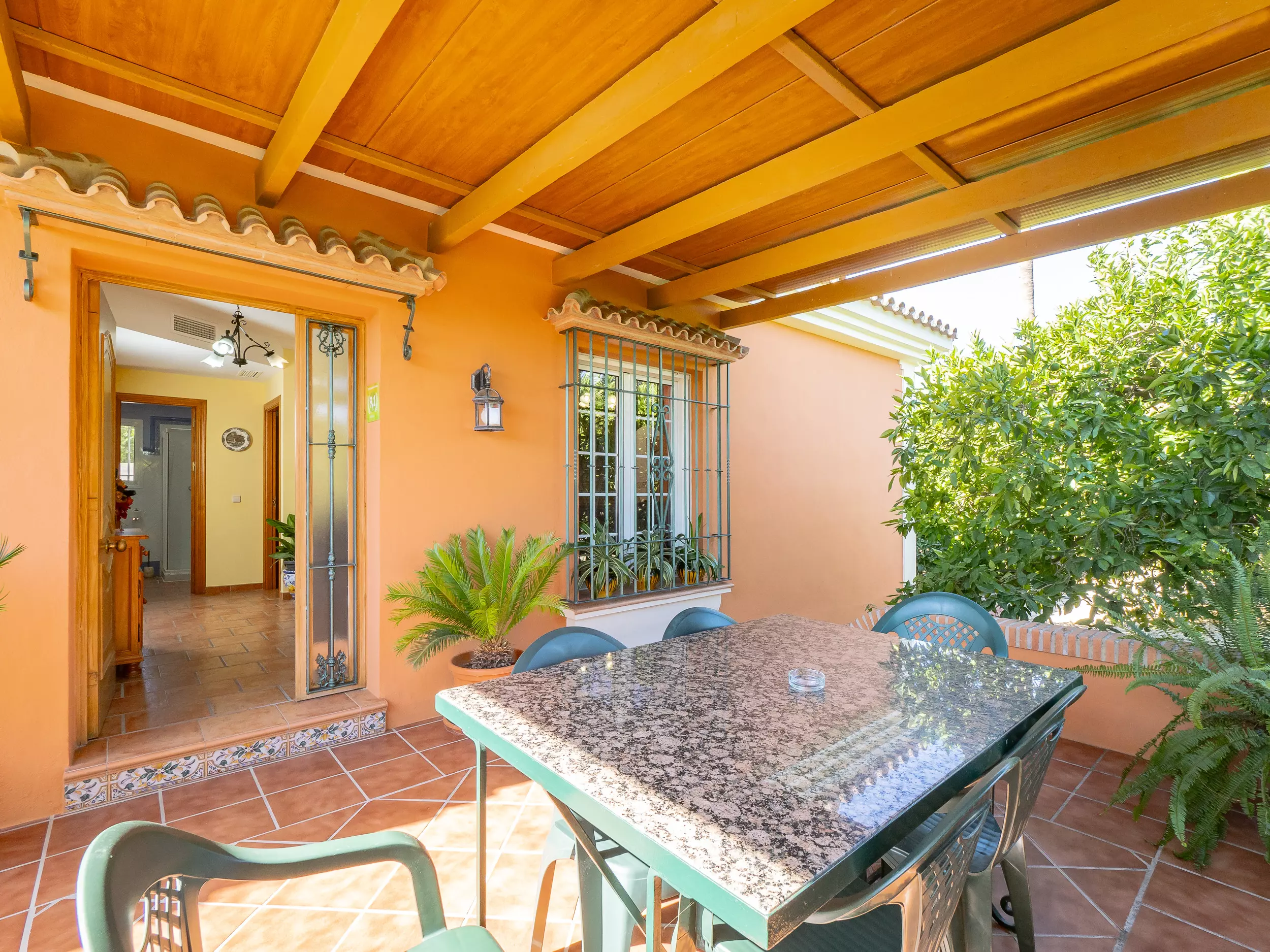 L'extérieur comprend un jardin, un terrain clôturé, une terrasse de 20 m², un barbecue et un parking en plein air dans le même bâtiment ?. De plus, toutes les fenêtres sont équipées de moustiquaires pour un repos agréable et sans dérangement.