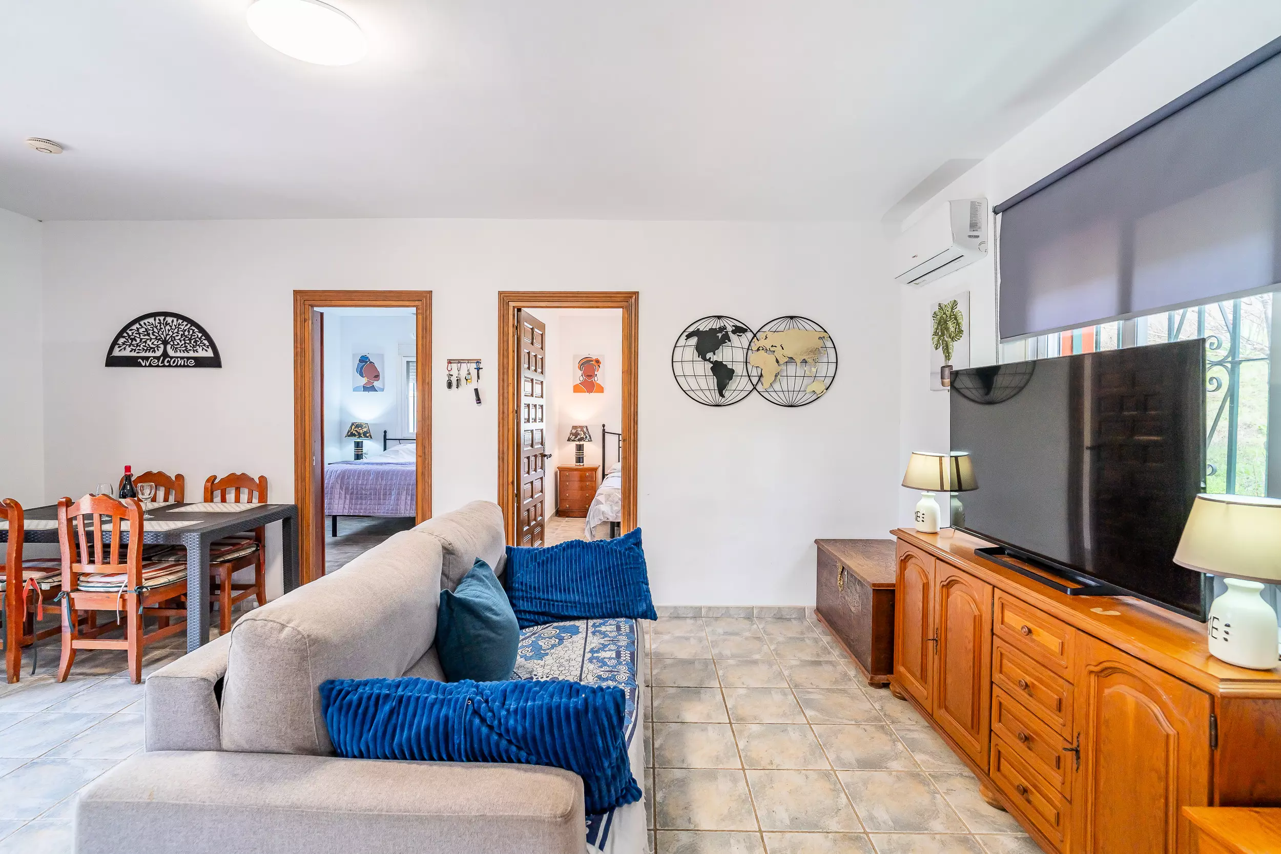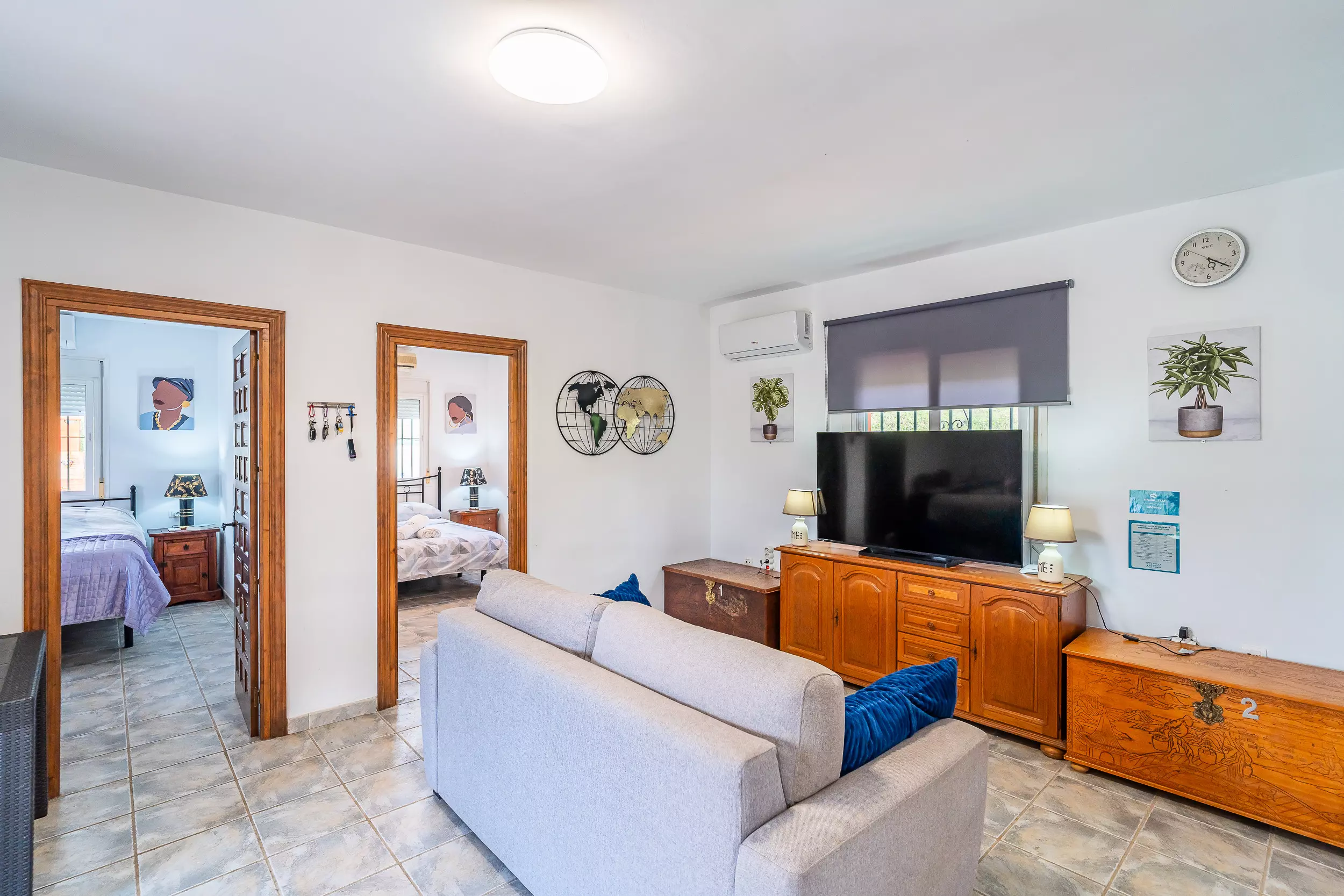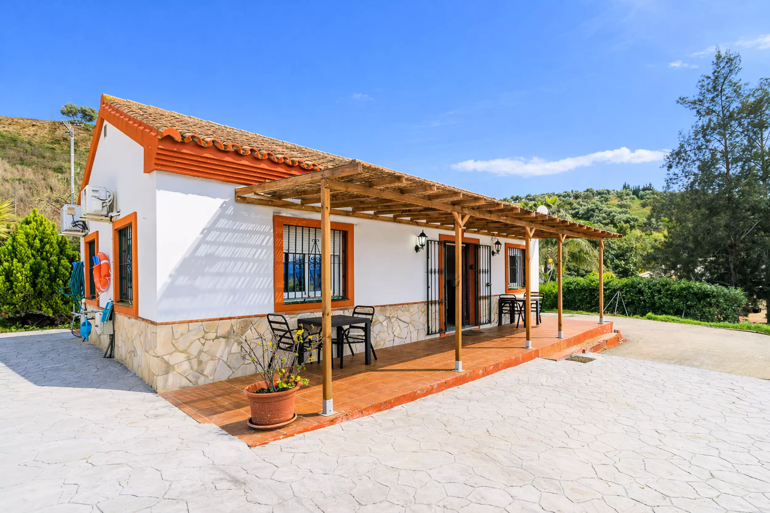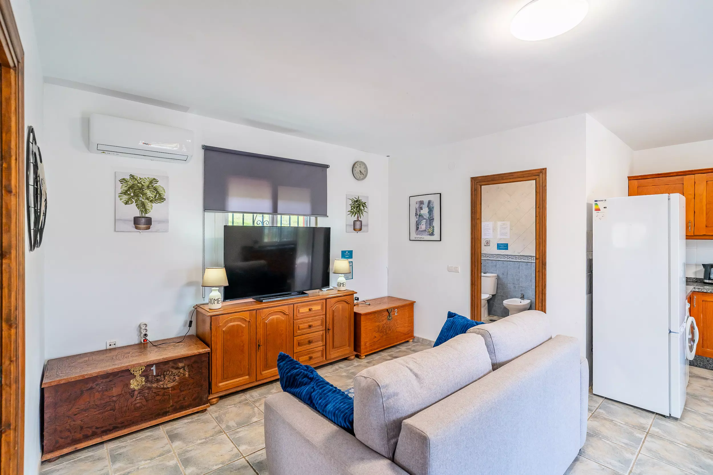 Cette maison de campagne accueillante à Coín vous offre un espace calme et familial pour se déconnecter, avec un terrain entièrement clôturé et une piscine privée où vous pourrez profiter de couchers de soleil avec vue sur la montagne. ? Le logement dispose de deux chambres avec climatisation, toutes deux avec un lit double et de l'espace pour ranger vos bagages, et un canapé-lit dans le salon-salle à manger qui permet d'héberger jusqu'à 6 personnes confortablement. Le salon-salle à manger est spacieux et dispose d'une cuisine américaine équipée d'un réfrigérateur, d'un micro-ondes, d'un four, d'un congélateur, d'une cafetière, d'un grille-pain, d'un bouilloire et d'un presse-agrumes, parfaite pour préparer vos repas pendant votre séjour. ??