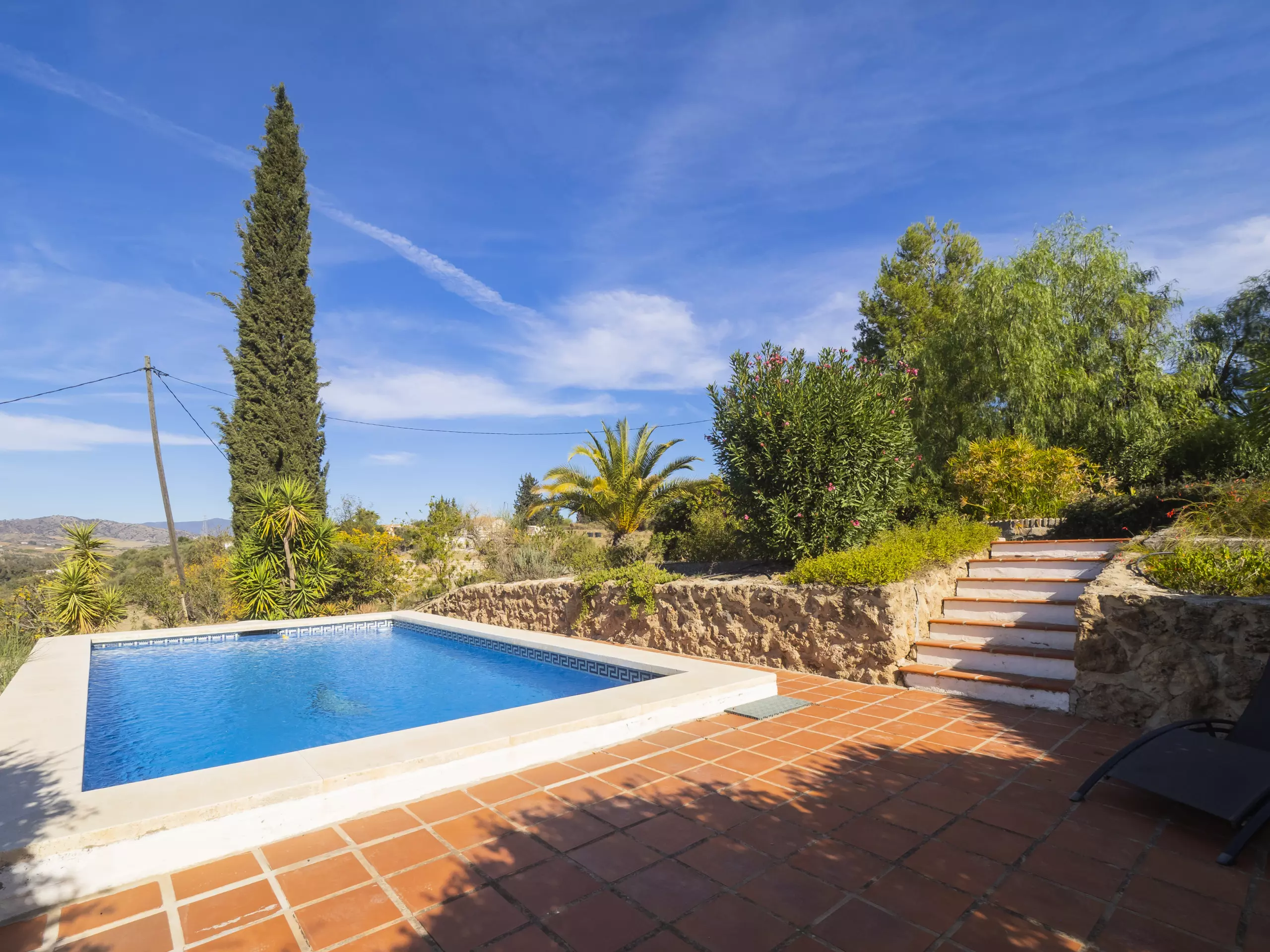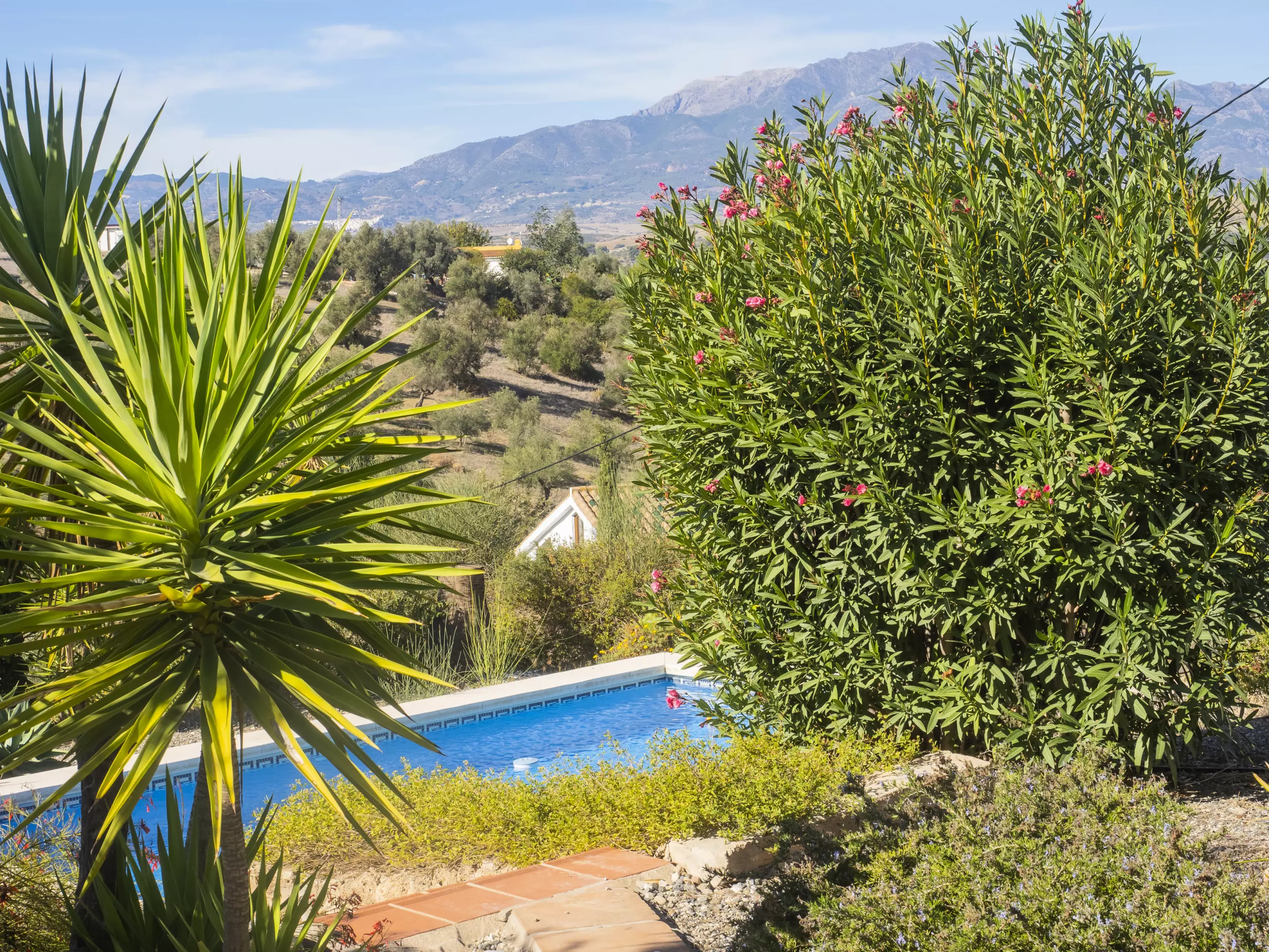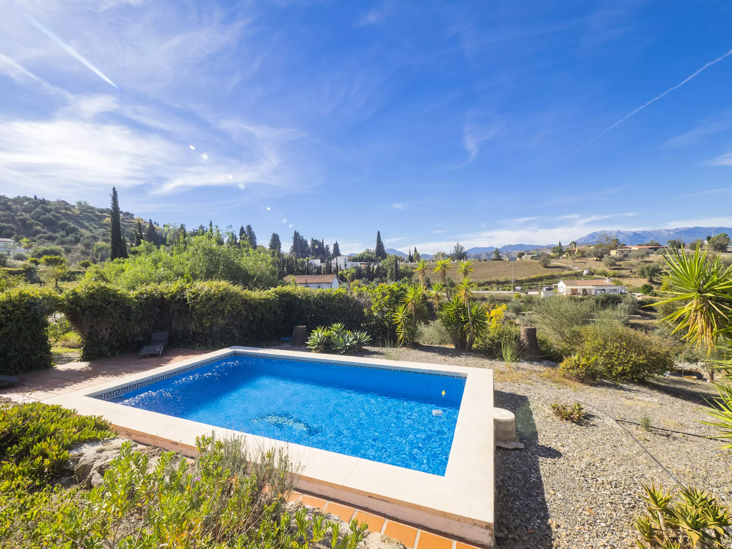Pour y arriver, vous parcourrez un chemin non bitumé mais bien entretenu d'environ 800 mètres. À l'intérieur de la parcelle, vous trouverez un environnement naturel avec plusieurs zones extérieures pour se détendre et profiter du soleil. La piscine privée, avec vue sur la montagne et entourée de végétation, garantit des moments d'intimité et de détente pour toute la famille. Elle est accessible depuis la terrasse extérieure et dispose de petits escaliers pour en faciliter l'utilisation. ????