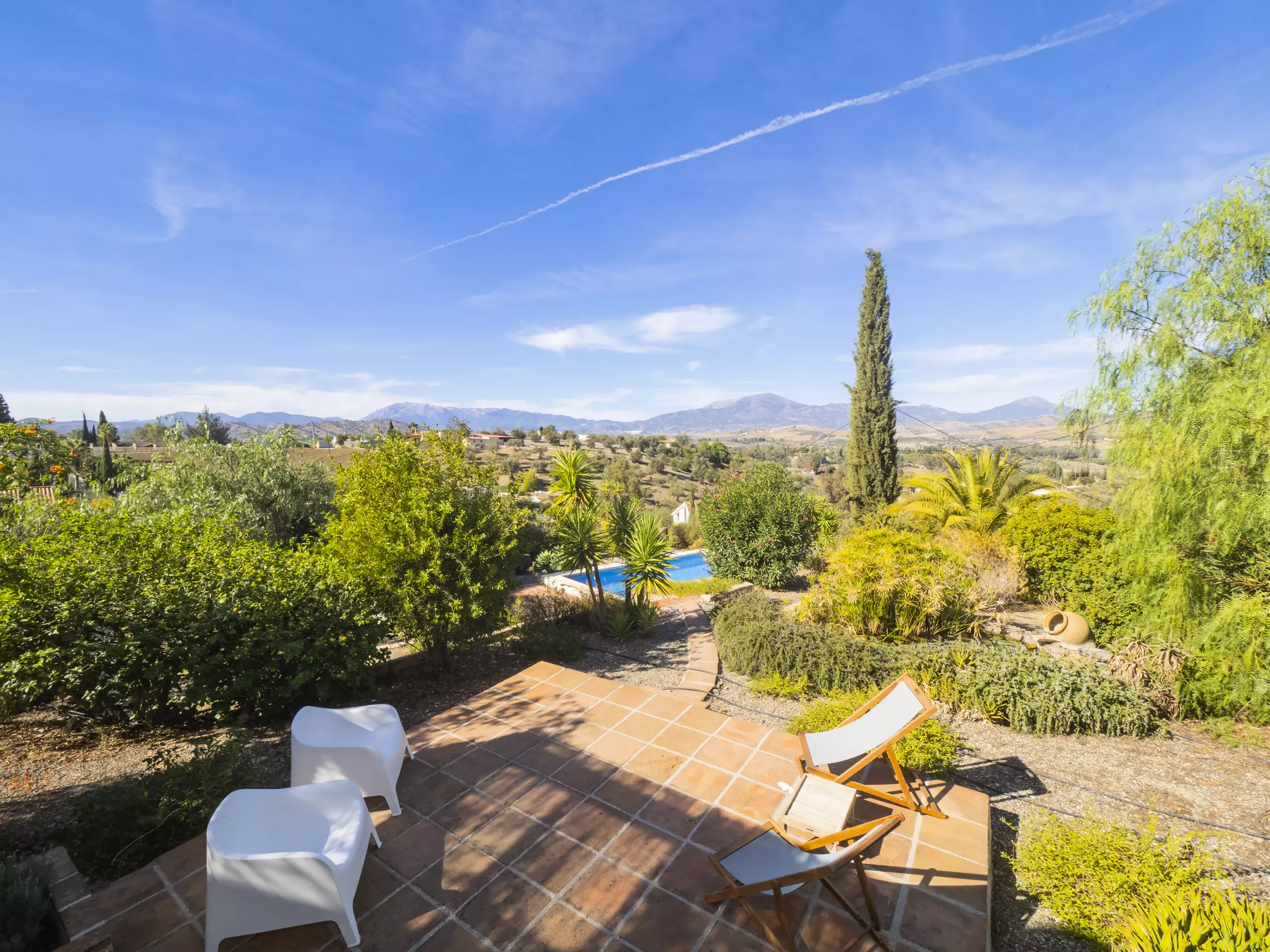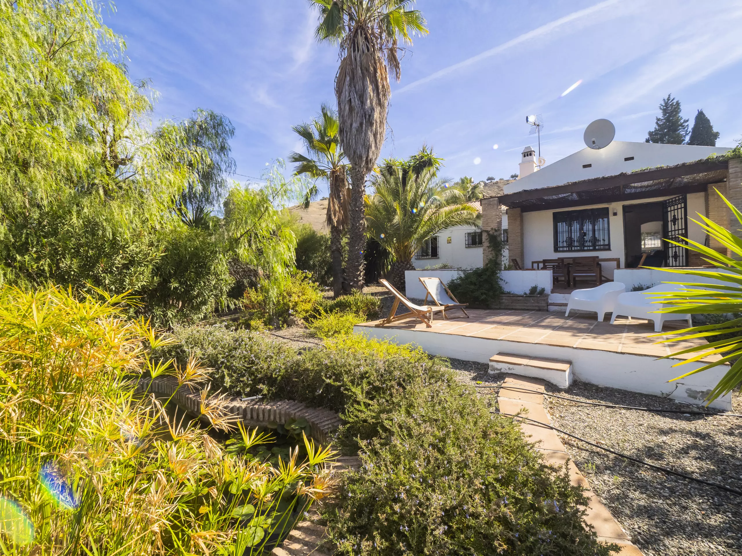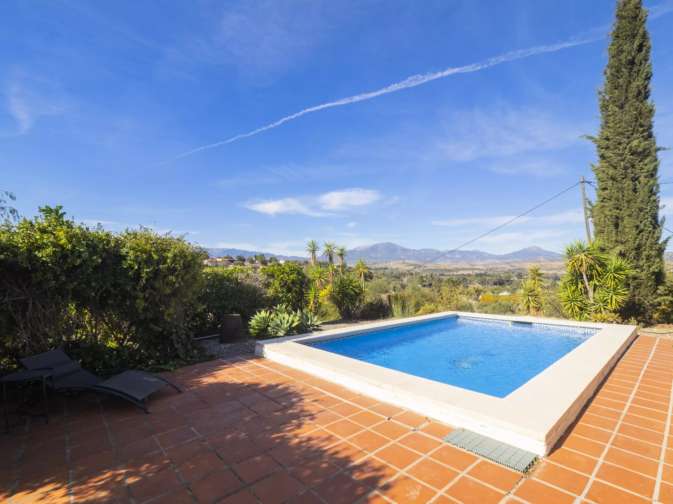 Pour y arriver, vous parcourrez un chemin non bitumé mais bien entretenu d'environ 800 mètres. À l'intérieur de la parcelle, vous trouverez un environnement naturel avec plusieurs zones extérieures pour se détendre et profiter du soleil. La piscine privée, avec vue sur la montagne et entourée de végétation, garantit des moments d'intimité et de détente pour toute la famille. Elle est accessible depuis la terrasse extérieure et dispose de petits escaliers pour en faciliter l'utilisation. ????
